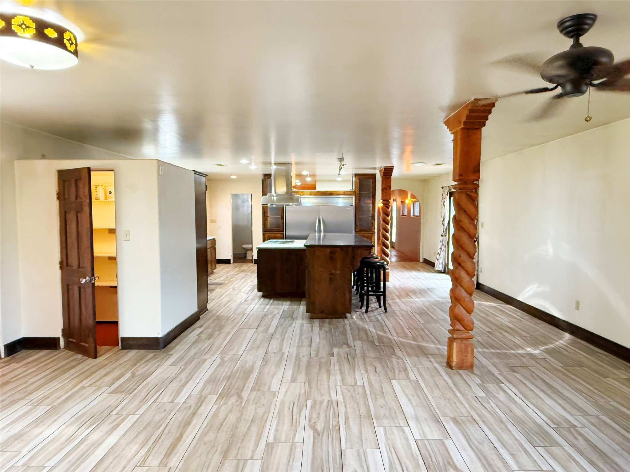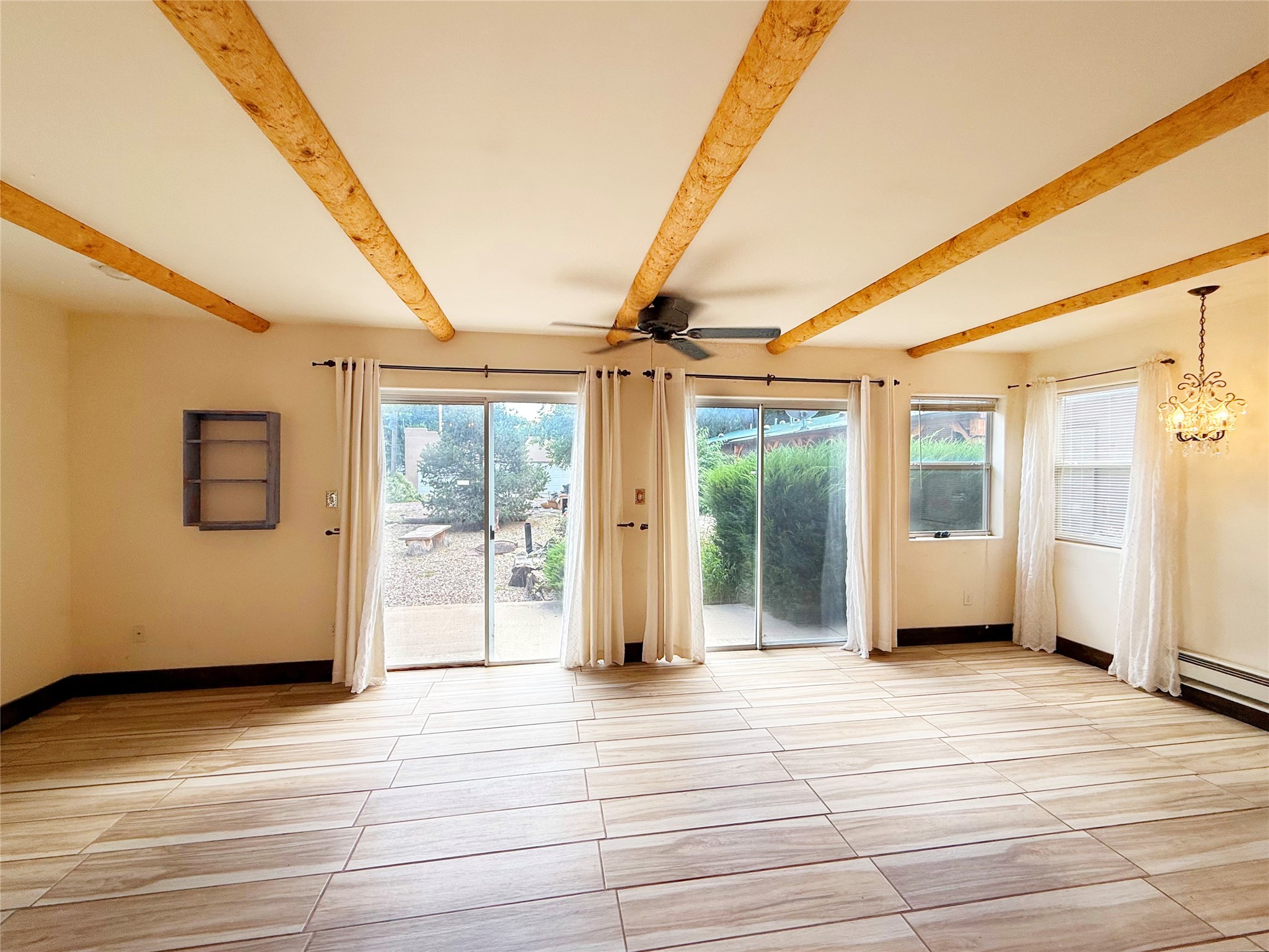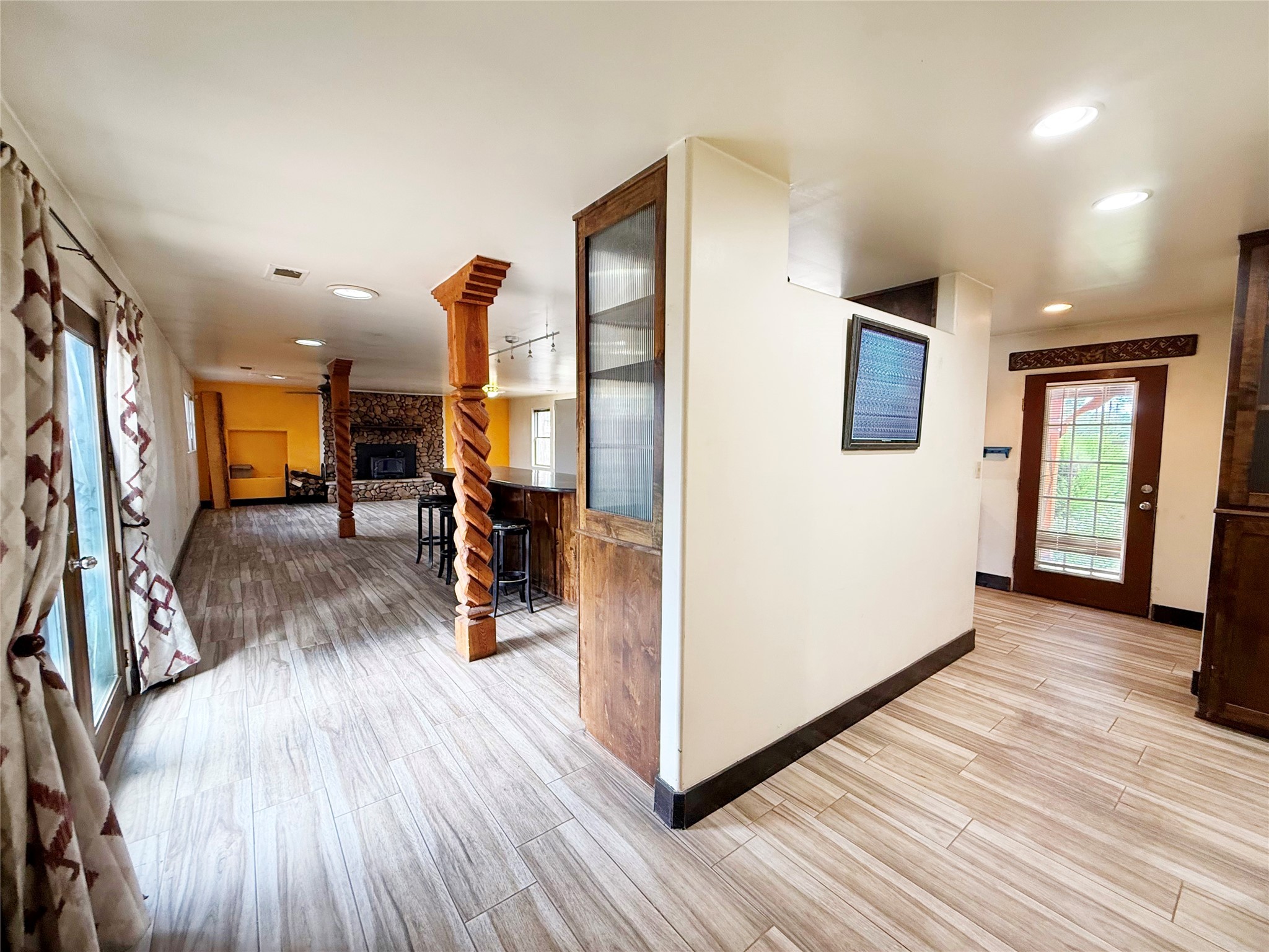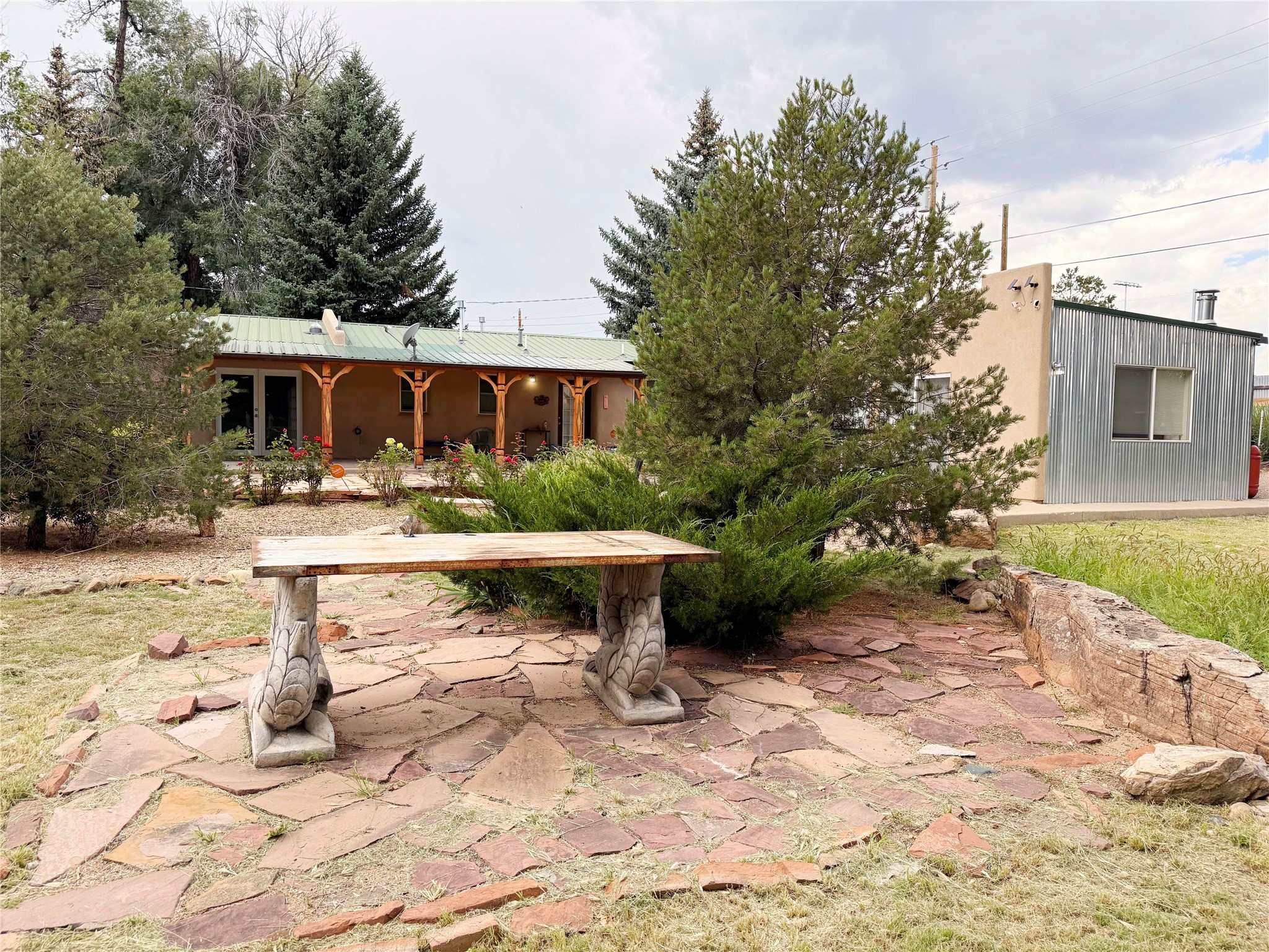 Stunning former hotel transformed into a luxurious 3-bedroom, 2.5-bathroom residence on almost 3/4 acre along the Gallinas River. This chef's dream home features an open-concept living area anchored by a beautiful river rock fireplace, seamlessly connecting to a gourmet kitchen with double-sized refrigerator and freezer, 6-burner gas cooktop island with bar seating, wine refrigerator, double oven, microwave, and abundant pantry and cabinet space with stunning display cabinets, space for a butler's pantry or coffee bar and hard surface countertops. The master suite features a gas kiva fireplace, dual closets, step-down rainfall shower, and French doors opening to landscaped gardens and patios. A versatile sunroom/den with gas fireplace offers endless possibilities for relaxation or entertainment. Three bedrooms are accessed via a dramatic long hallway, with rooms tastefully numbered as a nod to the property's historic hotel past. Nearly every living area in the home features French doors leading to beautifully landscaped patios throughout the lush, green grounds. The property includes a three-car detached garage with workshop, storage shed, garden shed, and covered firewood storage. Grounds are accented with beautiful large mountain rocks and offer wide open spaces perfect for outdoor living. Located directly next to the Gallinas River, this unique property combines luxury amenities with historic charm and natural beauty - truly a must-see opportunity.