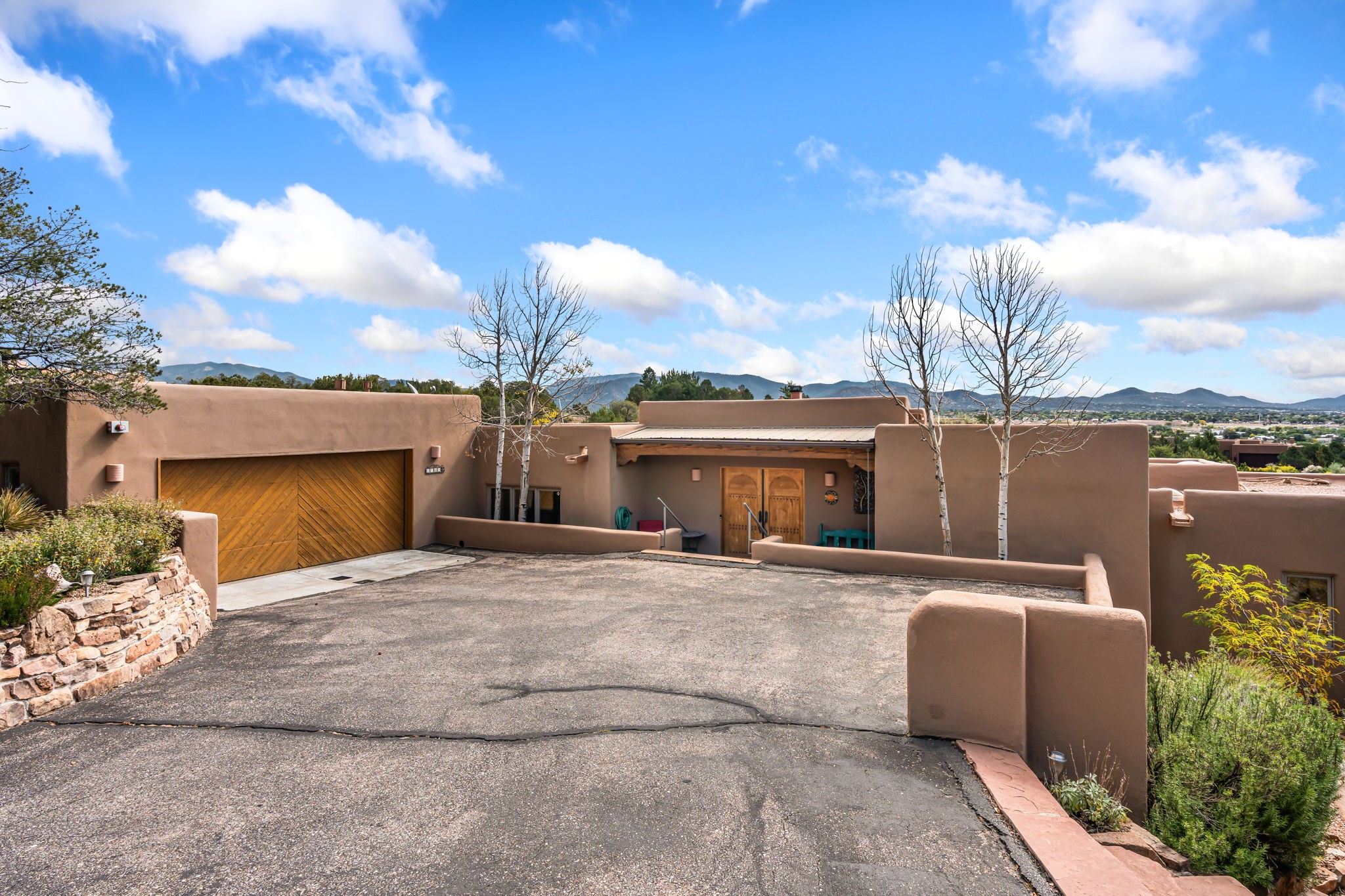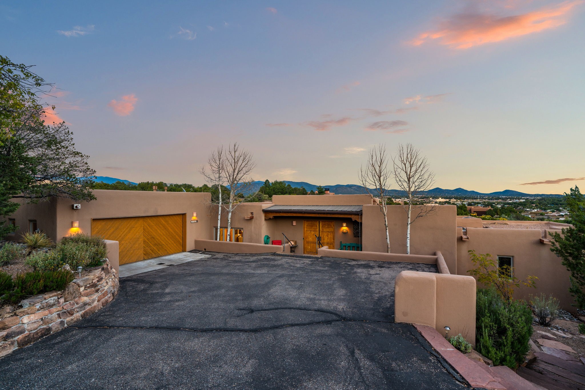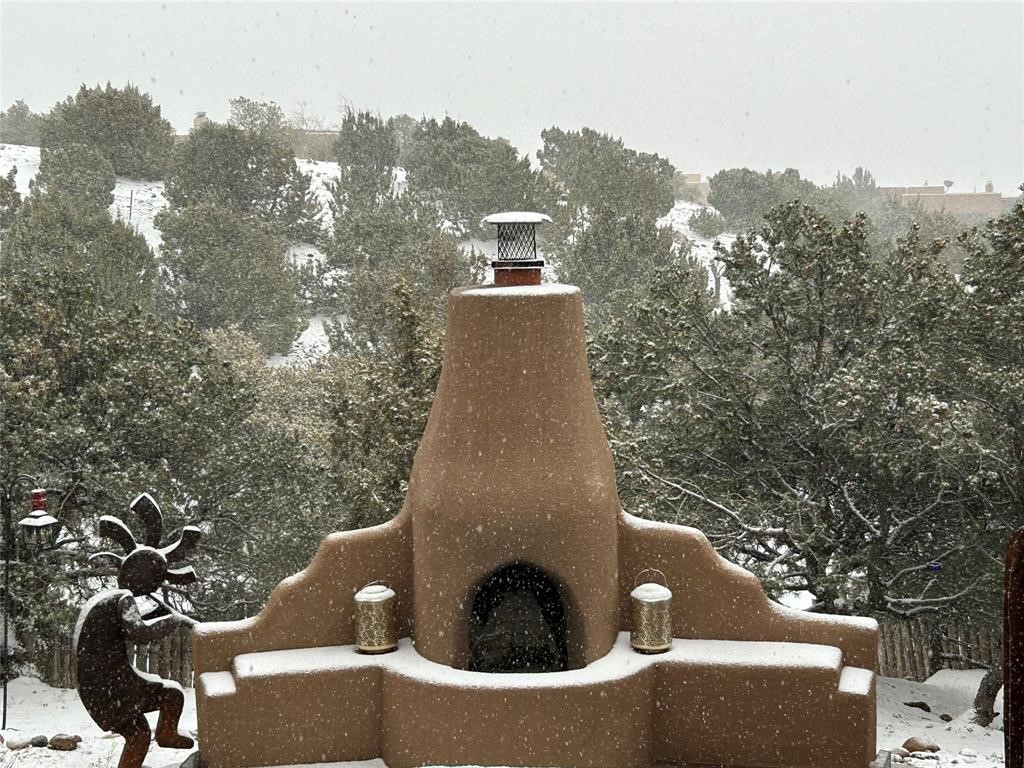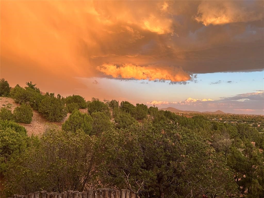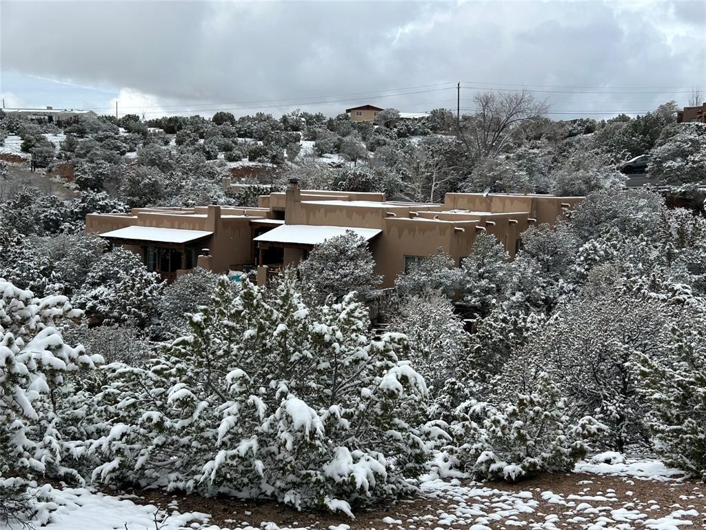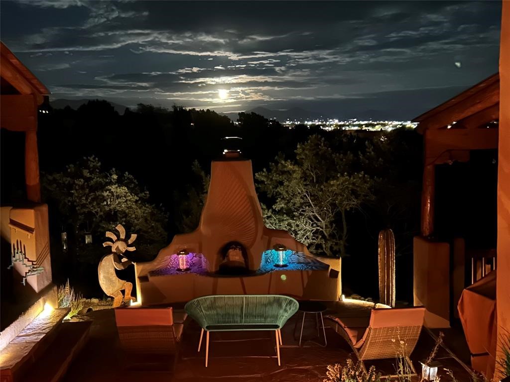 Very rarely, there is a property that combines incredible views from almost every room, ultimate Santa Fe style, modern amenities and an unbeatable location! 5 minutes from downtown, this 3 bed 3 bath custom build is the complete package!Enter the hand carved front doors and be greeted by dramatic views straight away. From here, step into the grand salon with soaring ceilings, a kiva fireplace and stately hand-troweled plaster. The dining room features a drop ceiling and recessed lighting for the most intimate ambience. You'll be serving your happy guests in style from the updated chef's kitchen -featuring Silestone quartz countertops, stainless appliances, a playful handpainted tile backsplash, and a sleek modern design. Almost every room in the home has house outdoor access for that seamless indoor-outdoor living. The views from the portal will be sure to impress: city lights at night and Sangre De Cristo-facing sunsets for that gorgeous Santa Fe color palette. The generous primary suite has its own kiva fireplace, outdoor portal, and a sumptuous bath - with oversized pebble shower, dedicated water closet, deep-soaking tub and dual sinks. The two guest rooms share a large full bath. Recent upgrades (2022) include a new foam and gravel roof with a 10-year warranty, plaster walls in the main living areas, latilla ceilings and 40 new recessed lights in dining and guest rooms, a new alarm system, and an outdoor kiva fireplace flanked by bancos. The oversized 2-car garage has direct entry into the kitchen and dedicated laundry area for easy access. With plenty of storage, this home is perfect for a primary residence, or make it your Santa Fe getaway! Don't miss this opportunity to own all the best Santa Fe has to offer! Schedule a showing today!