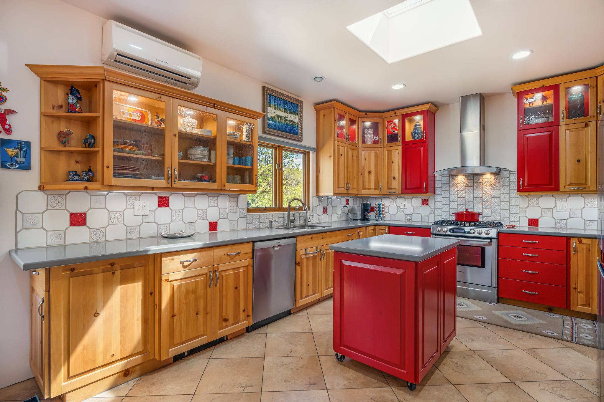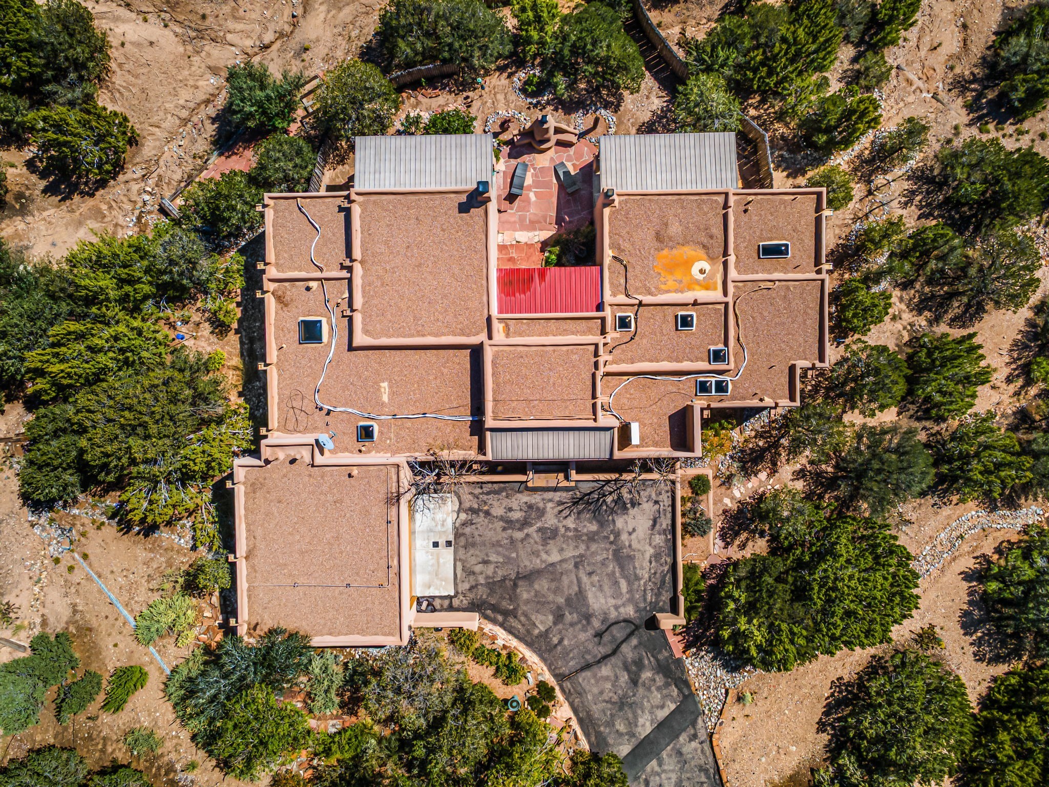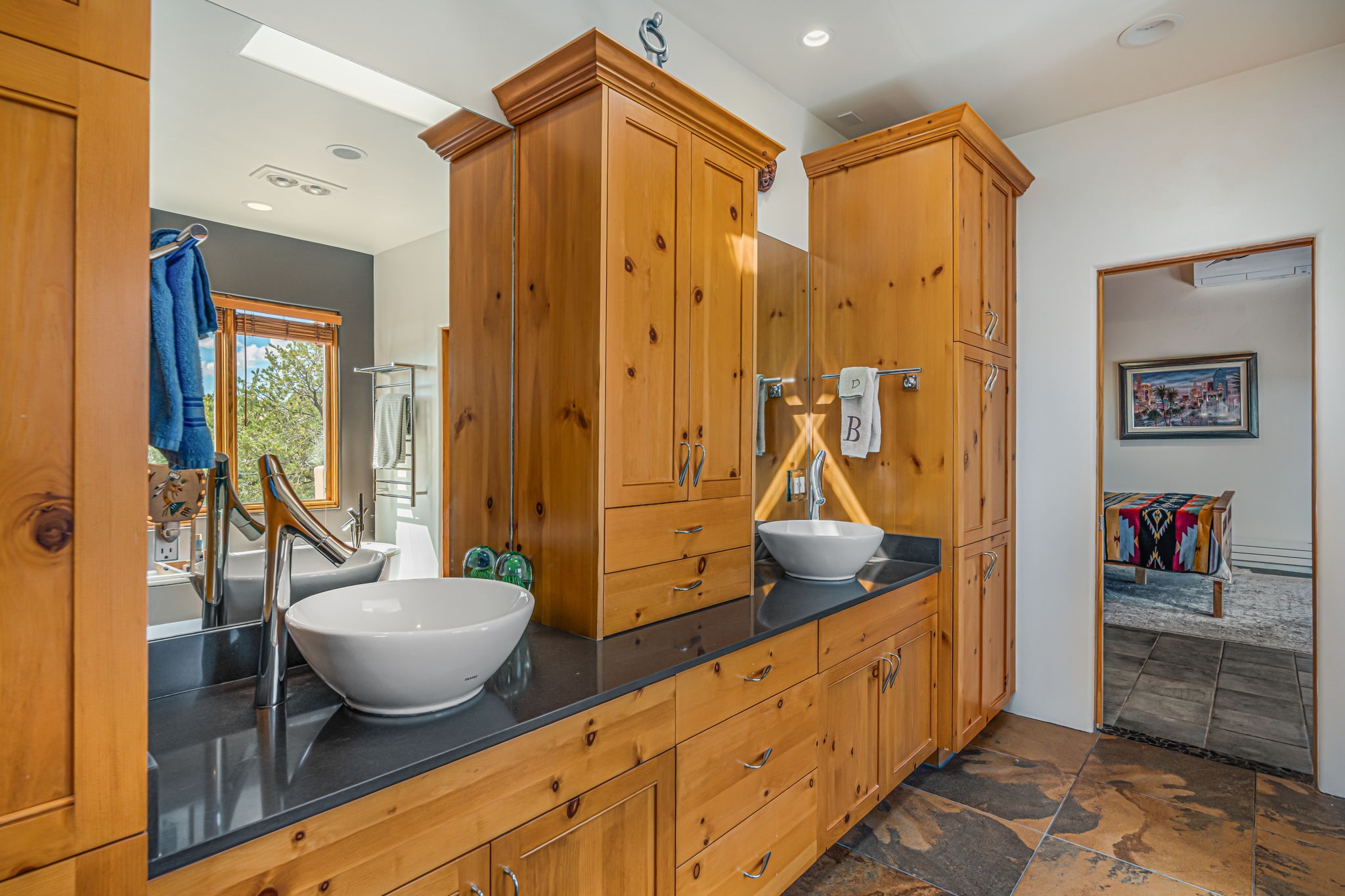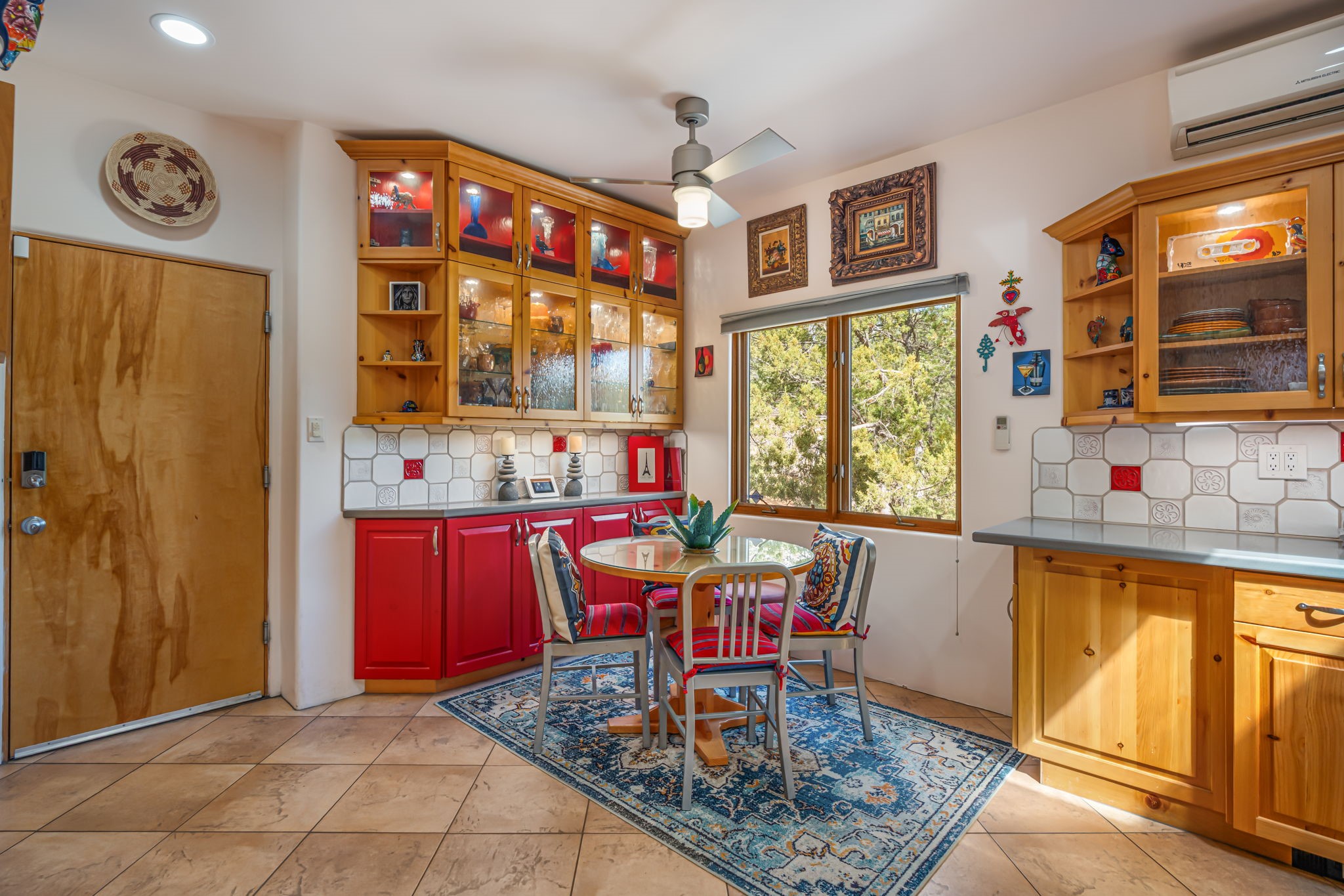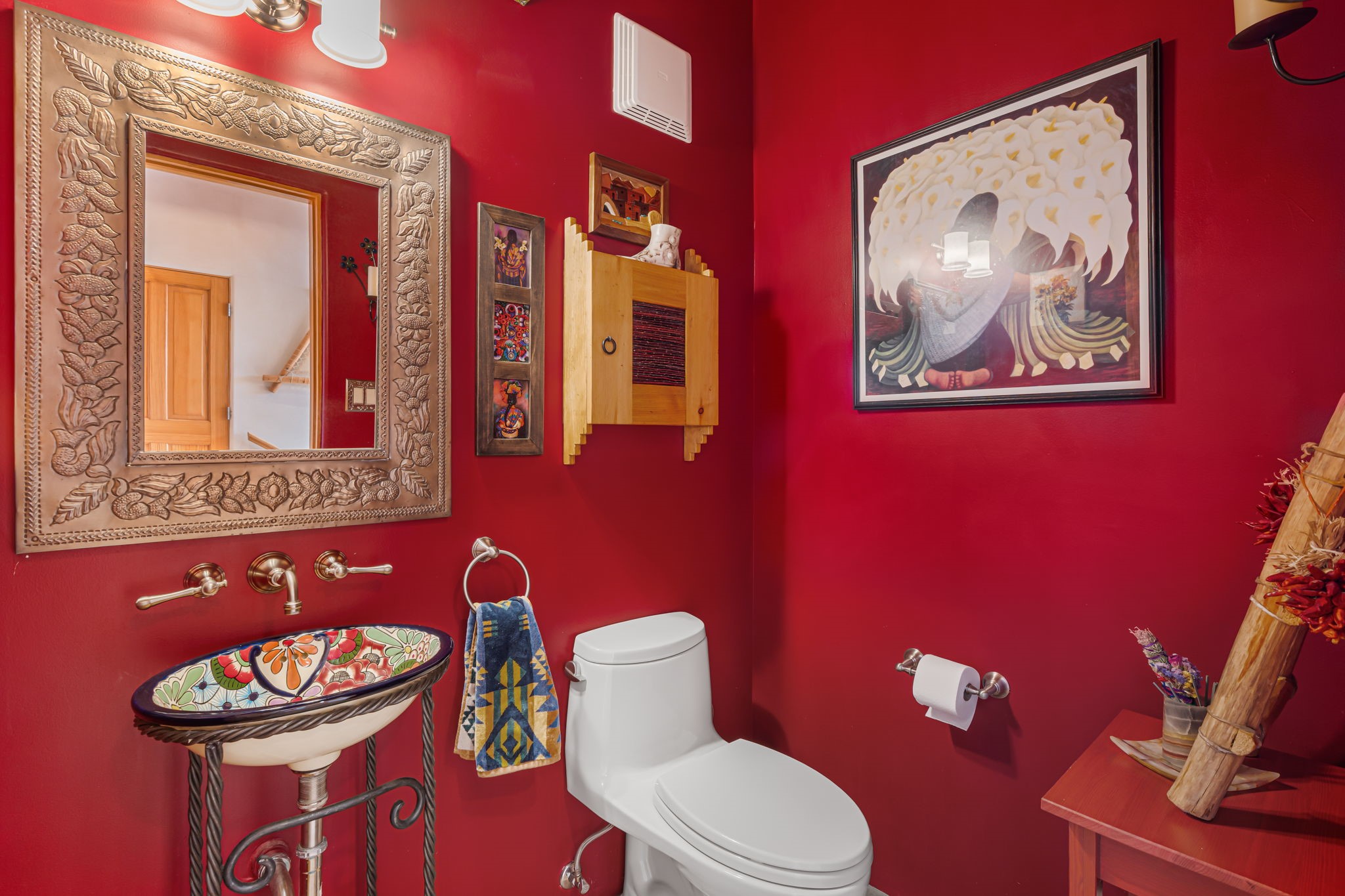 Very rarely, there is a property that combines incredible views from almost every room, ultimate Santa Fe style, modern amenities and an unbeatable location! 5 minutes from downtown, this 3 bed 3 bath custom build is the complete package!Enter the hand carved front doors and be greeted by dramatic views straight away. From here, step into the grand salon with soaring ceilings, a kiva fireplace and stately hand-troweled plaster. The dining room features a drop ceiling and recessed lighting for the most intimate ambience. You'll be serving your happy guests in style from the updated chef's kitchen -featuring Silestone quartz countertops, stainless appliances, a playful handpainted tile backsplash, and a sleek modern design. Almost every room in the home has house outdoor access for that seamless indoor-outdoor living. The views from the portal will be sure to impress: city lights at night and Sangre De Cristo-facing sunsets for that gorgeous Santa Fe color palette. The generous primary suite has its own kiva fireplace, outdoor portal, and a sumptuous bath - with oversized pebble shower, dedicated water closet, deep-soaking tub and dual sinks. The two guest rooms share a large full bath. Recent upgrades (2022) include a new foam and gravel roof with a 10-year warranty, plaster walls in the main living areas, latilla ceilings and 40 new recessed lights in dining and guest rooms, a new alarm system, and an outdoor kiva fireplace flanked by bancos. The oversized 2-car garage has direct entry into the kitchen and dedicated laundry area for easy access. With plenty of storage, this home is perfect for a primary residence, or make it your Santa Fe getaway! Don't miss this opportunity to own all the best Santa Fe has to offer! Schedule a showing today!