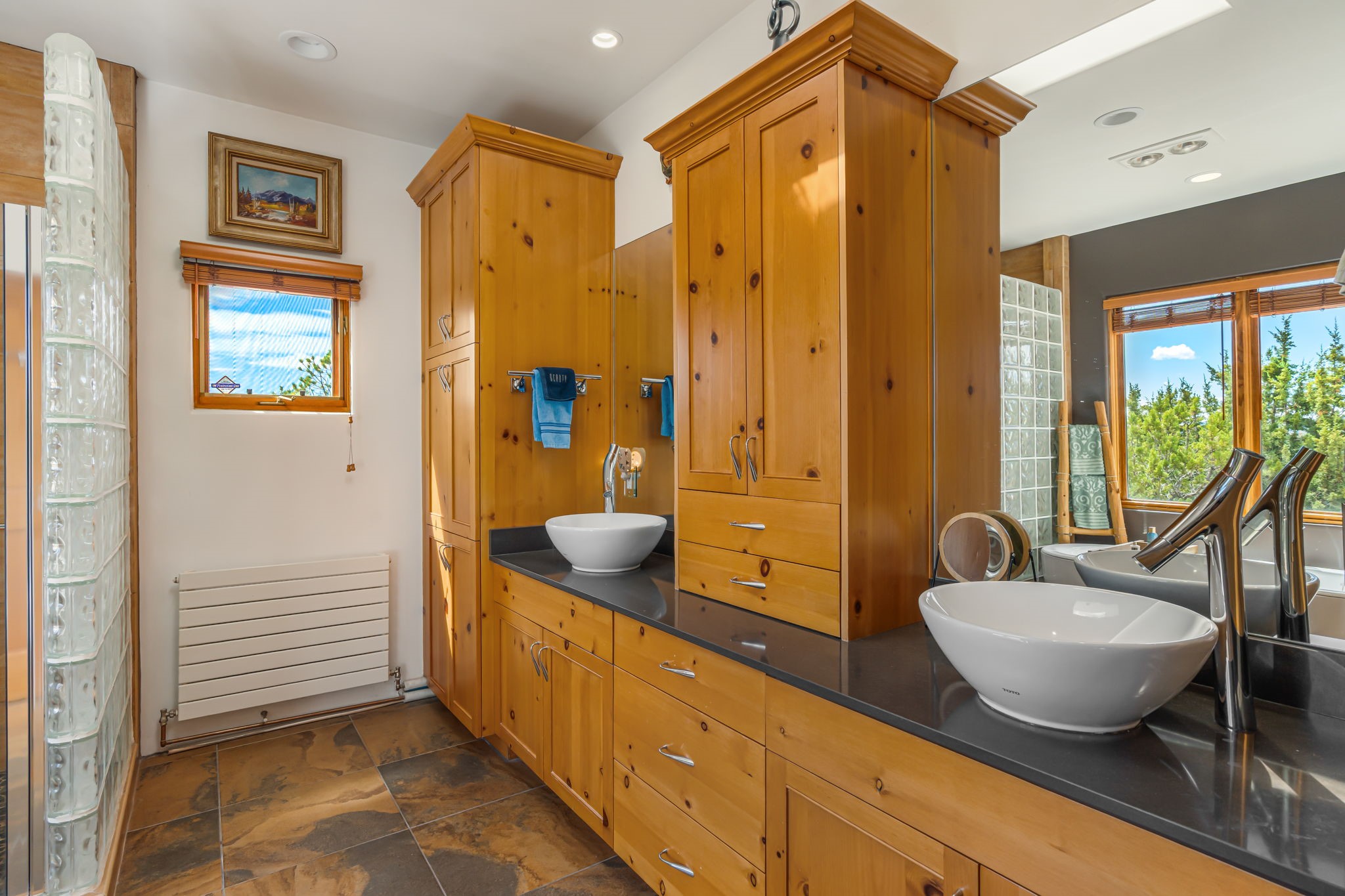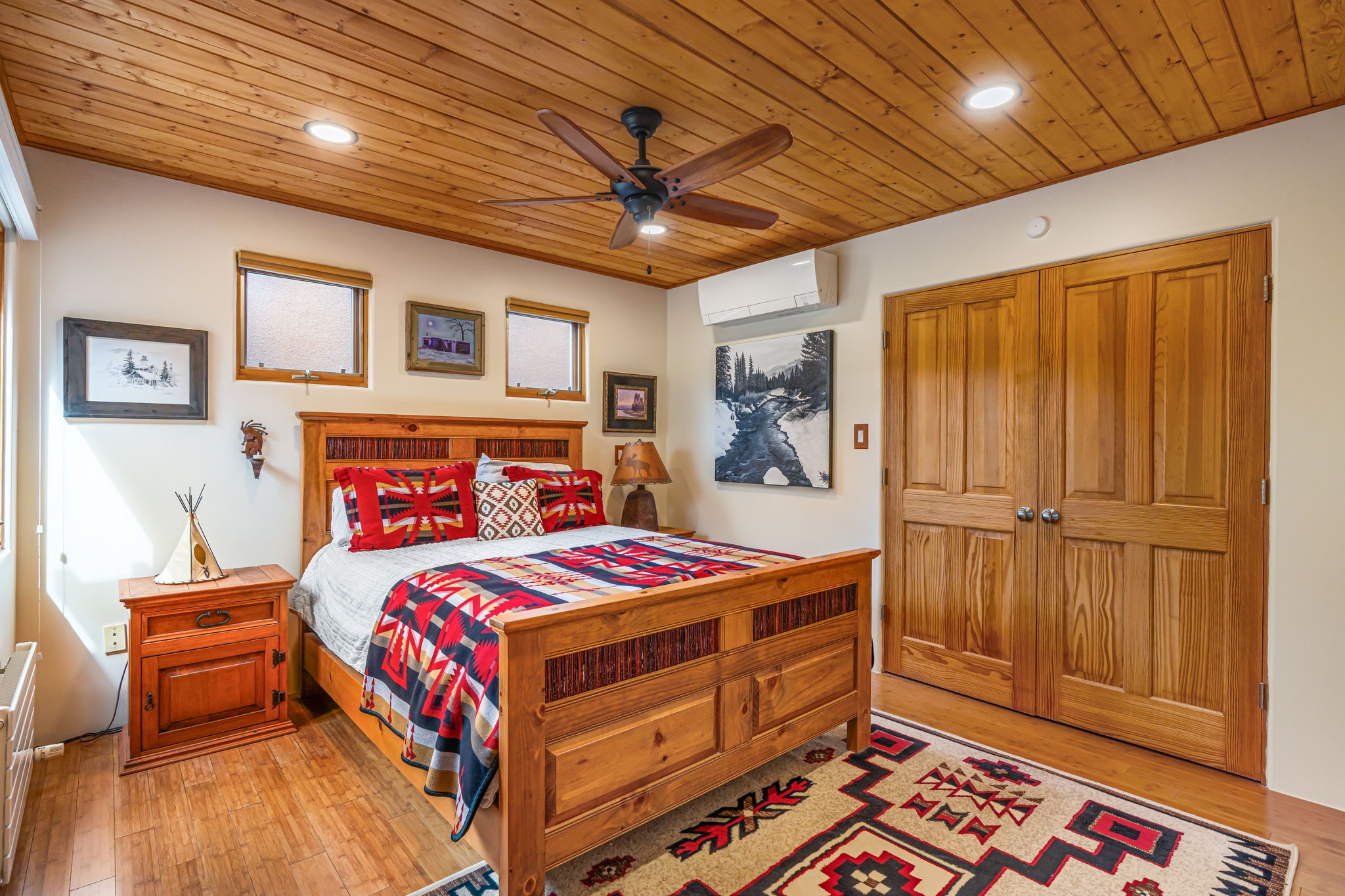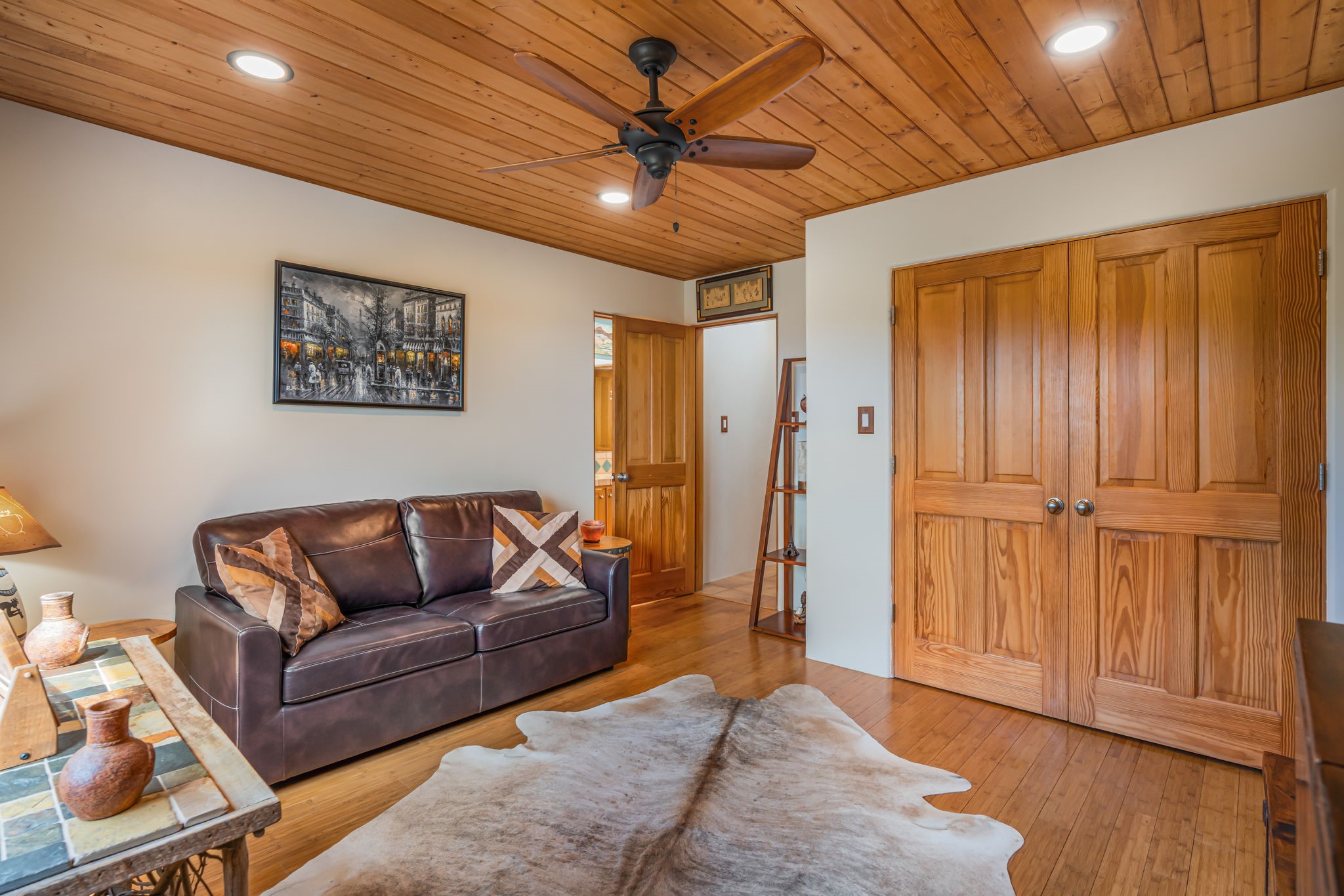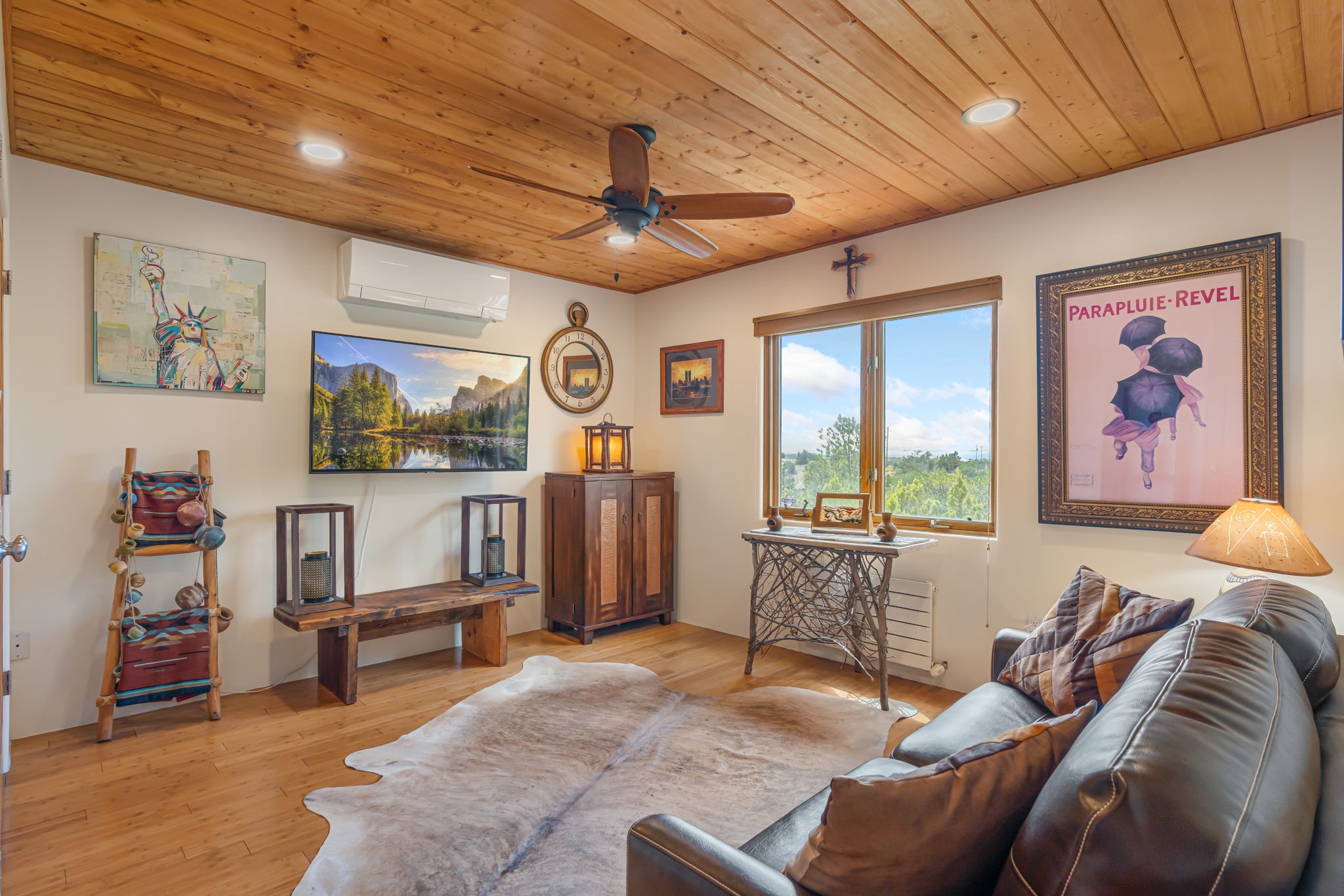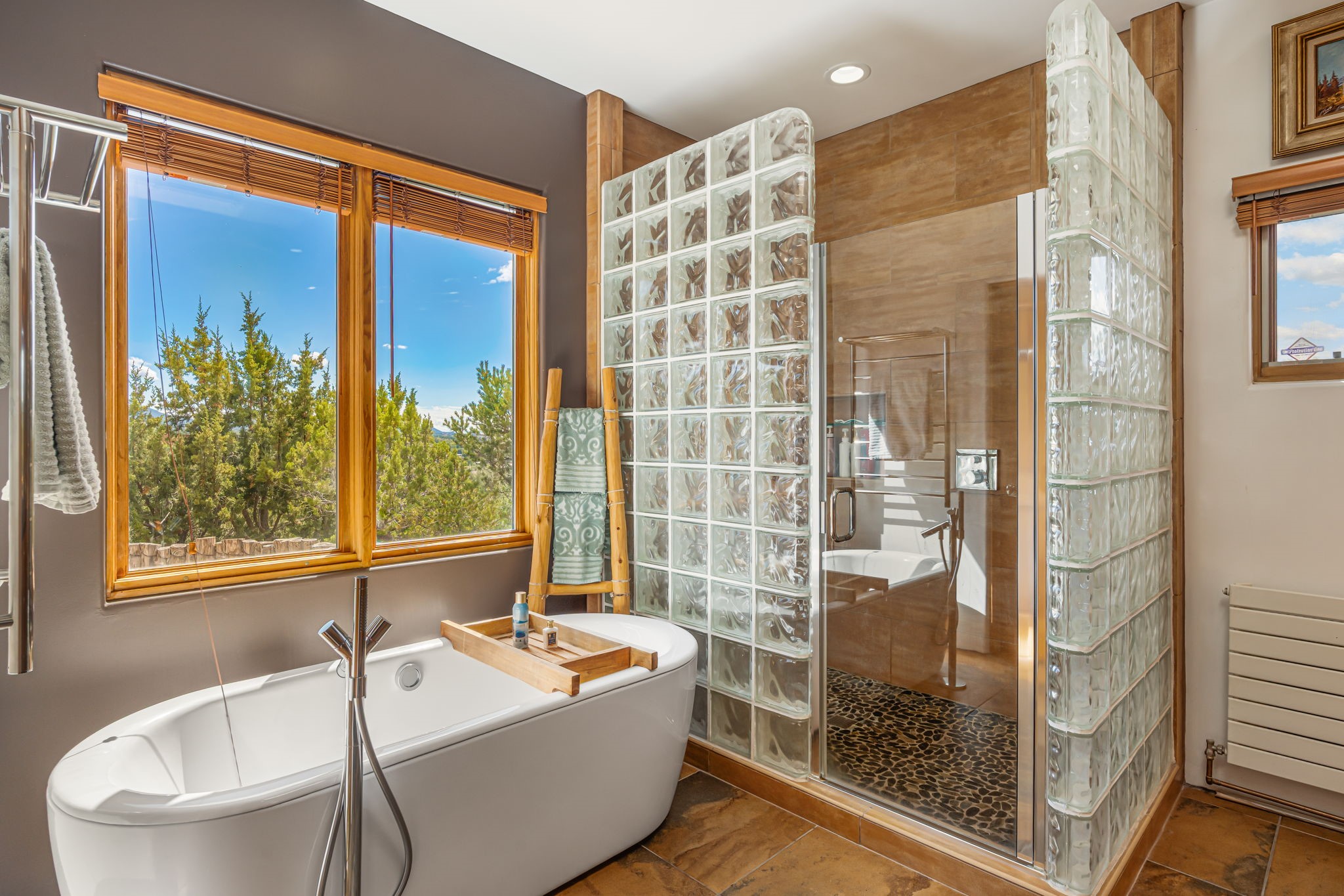 Very rarely, there is a property that combines incredible views from almost every room, ultimate Santa Fe style, modern amenities and an unbeatable location! 5 minutes from downtown, this 3 bed 3 bath custom build is the complete package!Enter the hand carved front doors and be greeted by dramatic views straight away. From here, step into the grand salon with soaring ceilings, a kiva fireplace and stately hand-troweled plaster. The dining room features a drop ceiling and recessed lighting for the most intimate ambience. You'll be serving your happy guests in style from the updated chef's kitchen -featuring Silestone quartz countertops, stainless appliances, a playful handpainted tile backsplash, and a sleek modern design. Almost every room in the home has house outdoor access for that seamless indoor-outdoor living. The views from the portal will be sure to impress: city lights at night and Sangre De Cristo-facing sunsets for that gorgeous Santa Fe color palette. The generous primary suite has its own kiva fireplace, outdoor portal, and a sumptuous bath - with oversized pebble shower, dedicated water closet, deep-soaking tub and dual sinks. The two guest rooms share a large full bath. Recent upgrades (2022) include a new foam and gravel roof with a 10-year warranty, plaster walls in the main living areas, latilla ceilings and 40 new recessed lights in dining and guest rooms, a new alarm system, and an outdoor kiva fireplace flanked by bancos. The oversized 2-car garage has direct entry into the kitchen and dedicated laundry area for easy access. With plenty of storage, this home is perfect for a primary residence, or make it your Santa Fe getaway! Don't miss this opportunity to own all the best Santa Fe has to offer! Schedule a showing today!