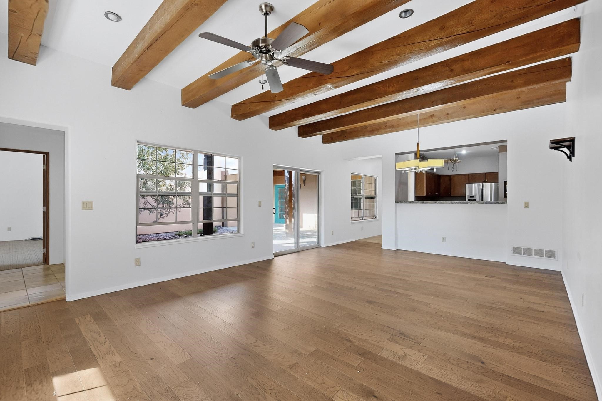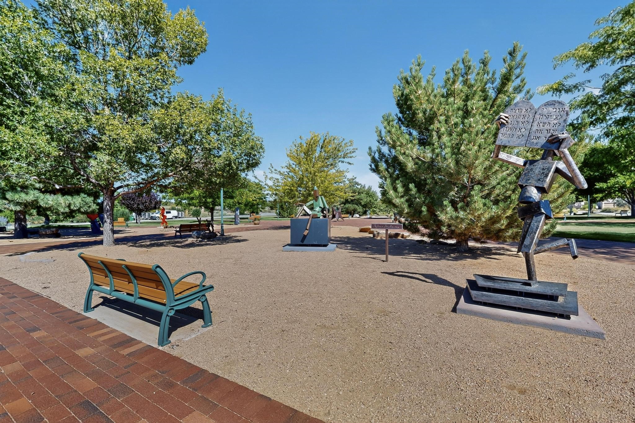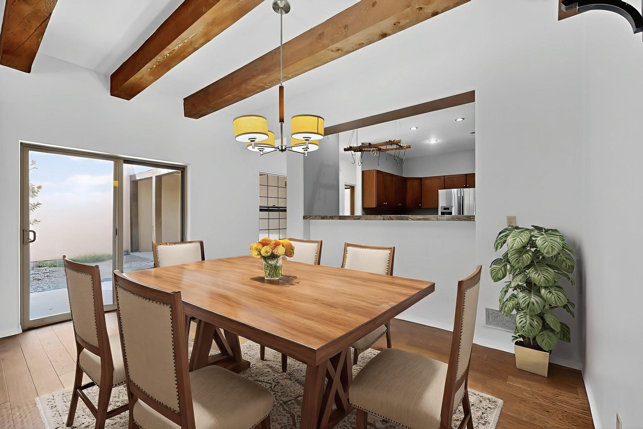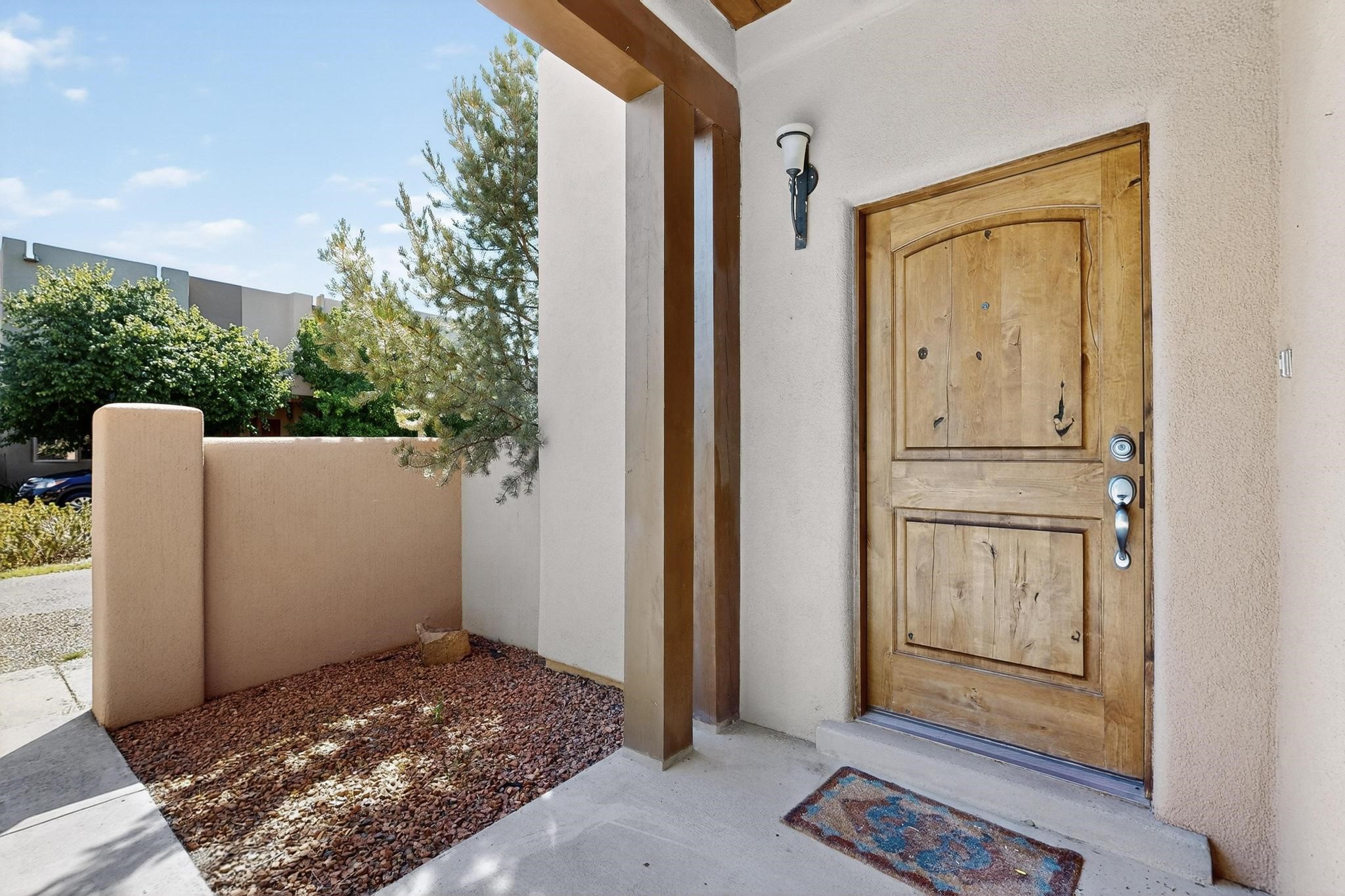Centrally located in the vibrant Oshara Village, this move-in ready townhome features 2 spacious suites on the main level, along with 2 additional bedrooms and a full bath upstairs, offering comfort and flexibility. The open floor plan connects the kitchen, dining and living areas to a delightful central courtyard, perfect for entertaining or private relaxation. Additional perks include a detached two-car garage, fully-paid solar panels, transferable roof warranty, and a private fenced backyard with low-maintenance xeriscaping. This location offers easy access to medical facilities and diverse dining and shopping options. Whether you're seeking a cozy retreat or a dynamic live/work/play environment, this home has it all!