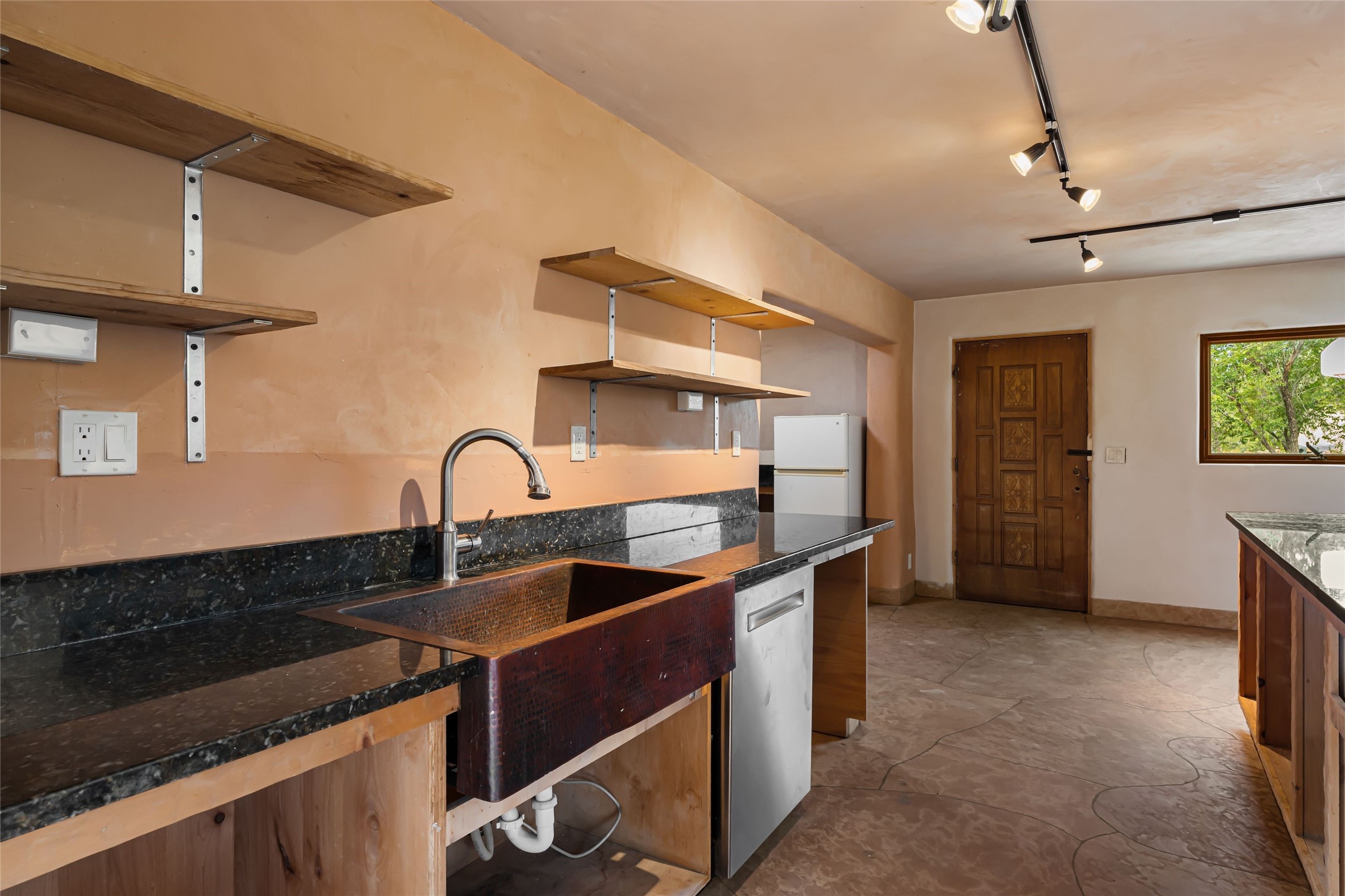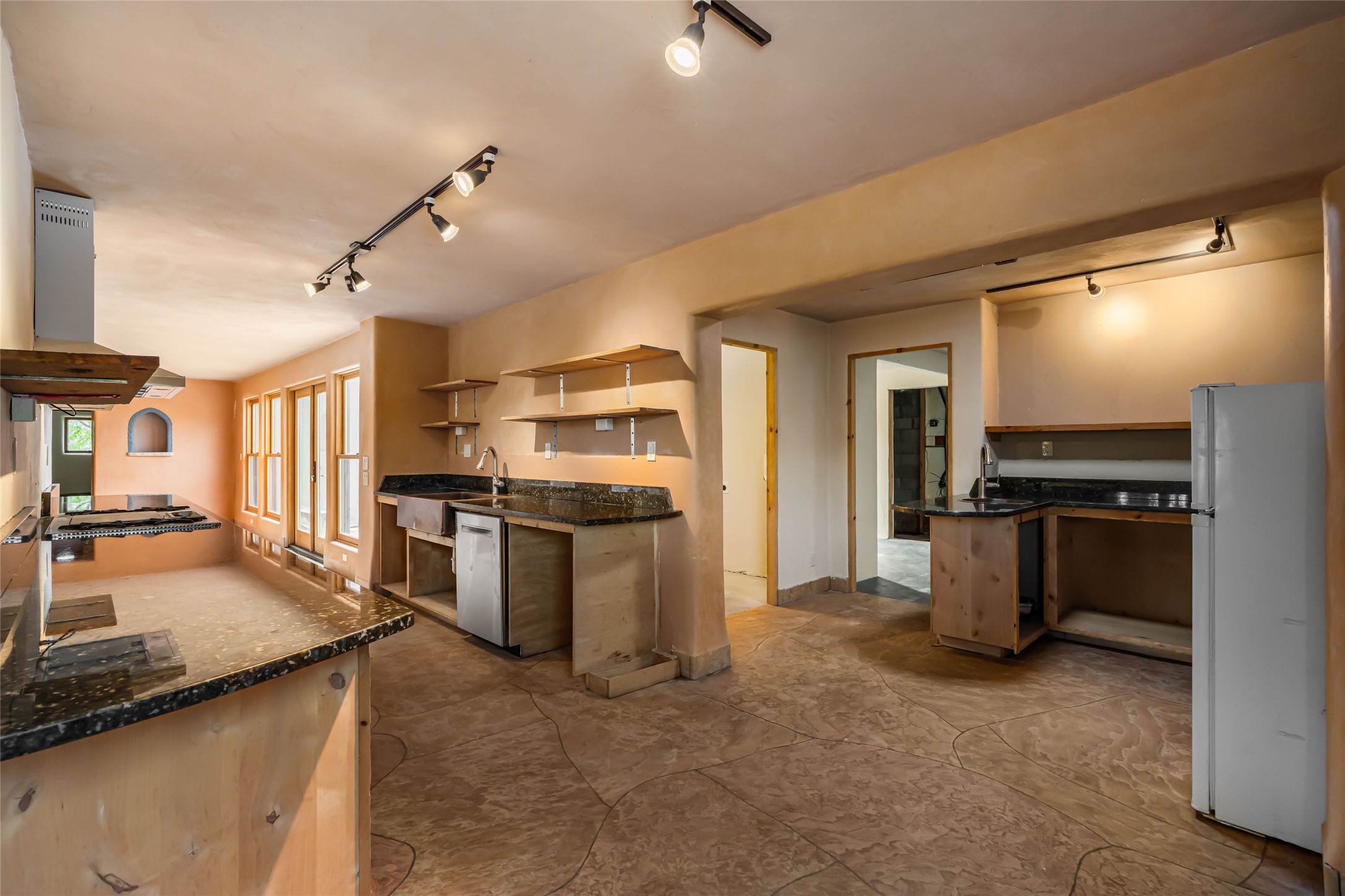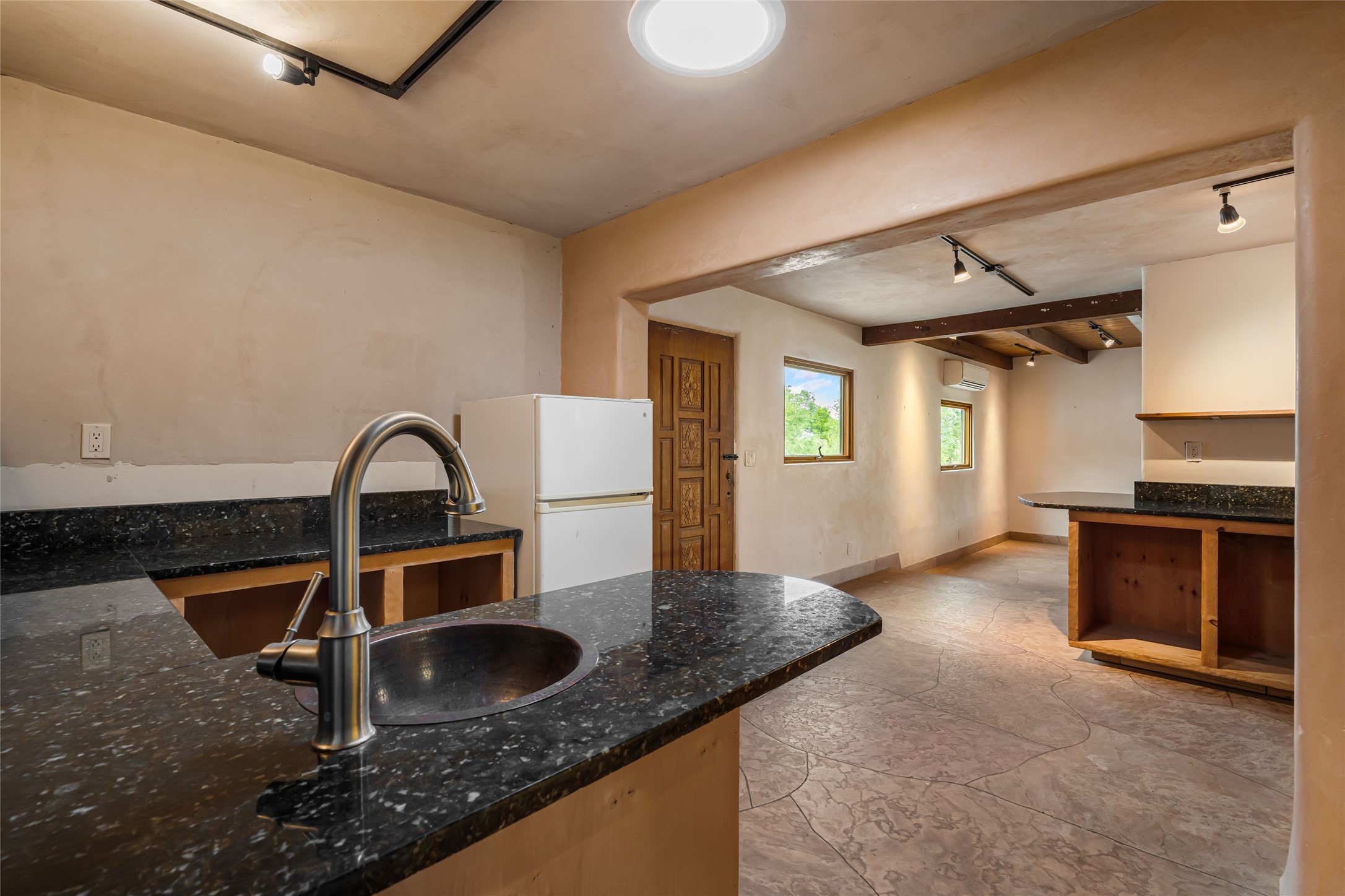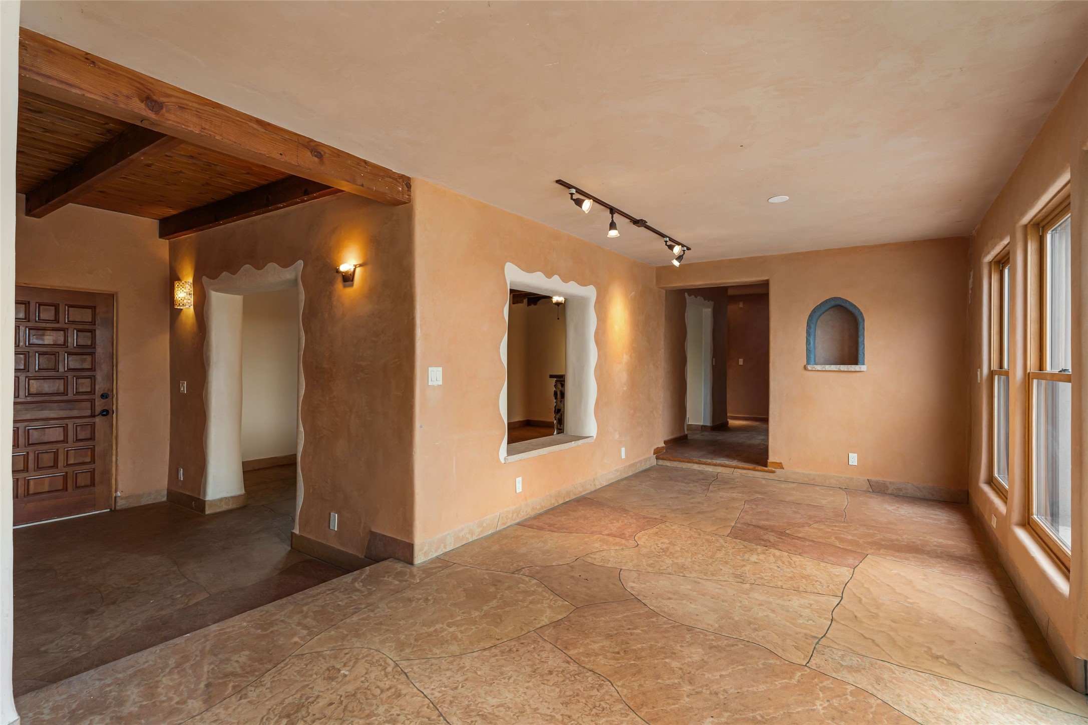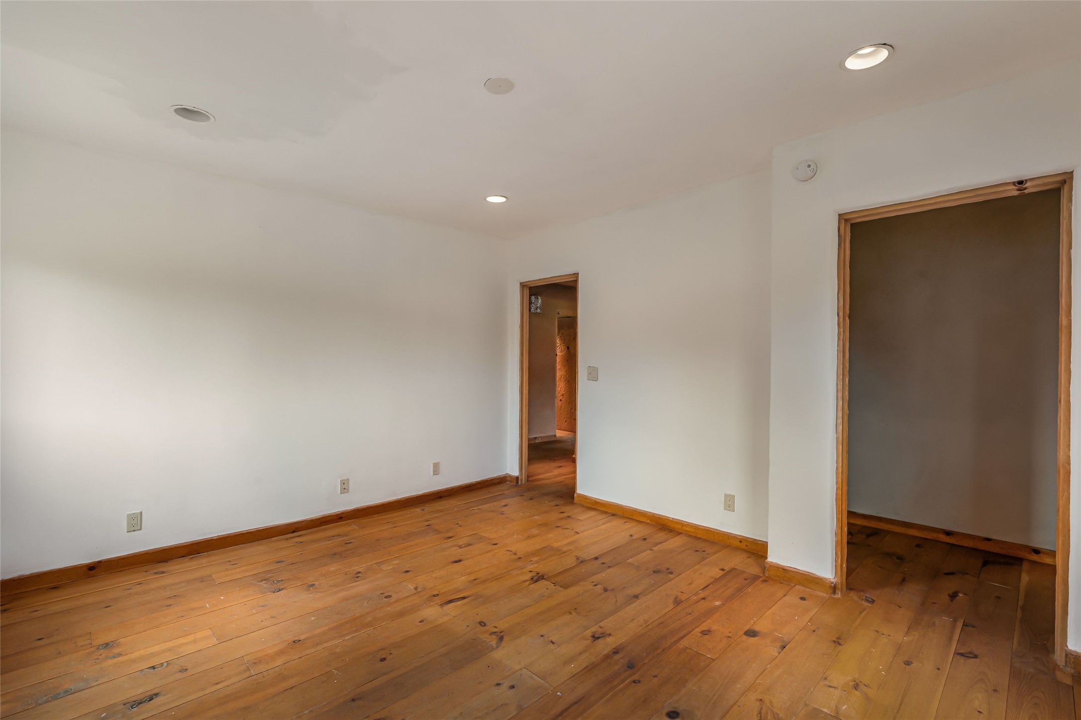 Wonderful opportunity to own a Sol Y Lomas adobe gem. Set your sights on the final finishing touches and upgrades on this adobe, three bedroom, two bathroom home at the end of the Santa Barbara Drive. Home is situated on a 3/4 acre lot with mature trees. Large Sunken Living Room and Dining Room with room for lots of entertaining, both with wood burning Fireplaces and flagstone floors. Beautiful Ceilings with Vigas and Latillas. New Marvin double pane wood windows and hardwood floors. Beautiful carved doors and wood accents in the home. The oversized two car garage has enough additional space for a small workshop. Ductless mini-splits heat and cool. Rinnai tankless hot water heater. Brand new stucco done in 2025. Bathroom includes tub, separate shower and dual sinks with nice tile accents. Lots of storage space. Outside in the back yard is a patio with an older brick fireplace. In the back of home is a space to be finished for a studio apartment with an additional bathroom and access to the back patio. Minutes to Downtown Santa Fe, hospital, shopping, and I-25.