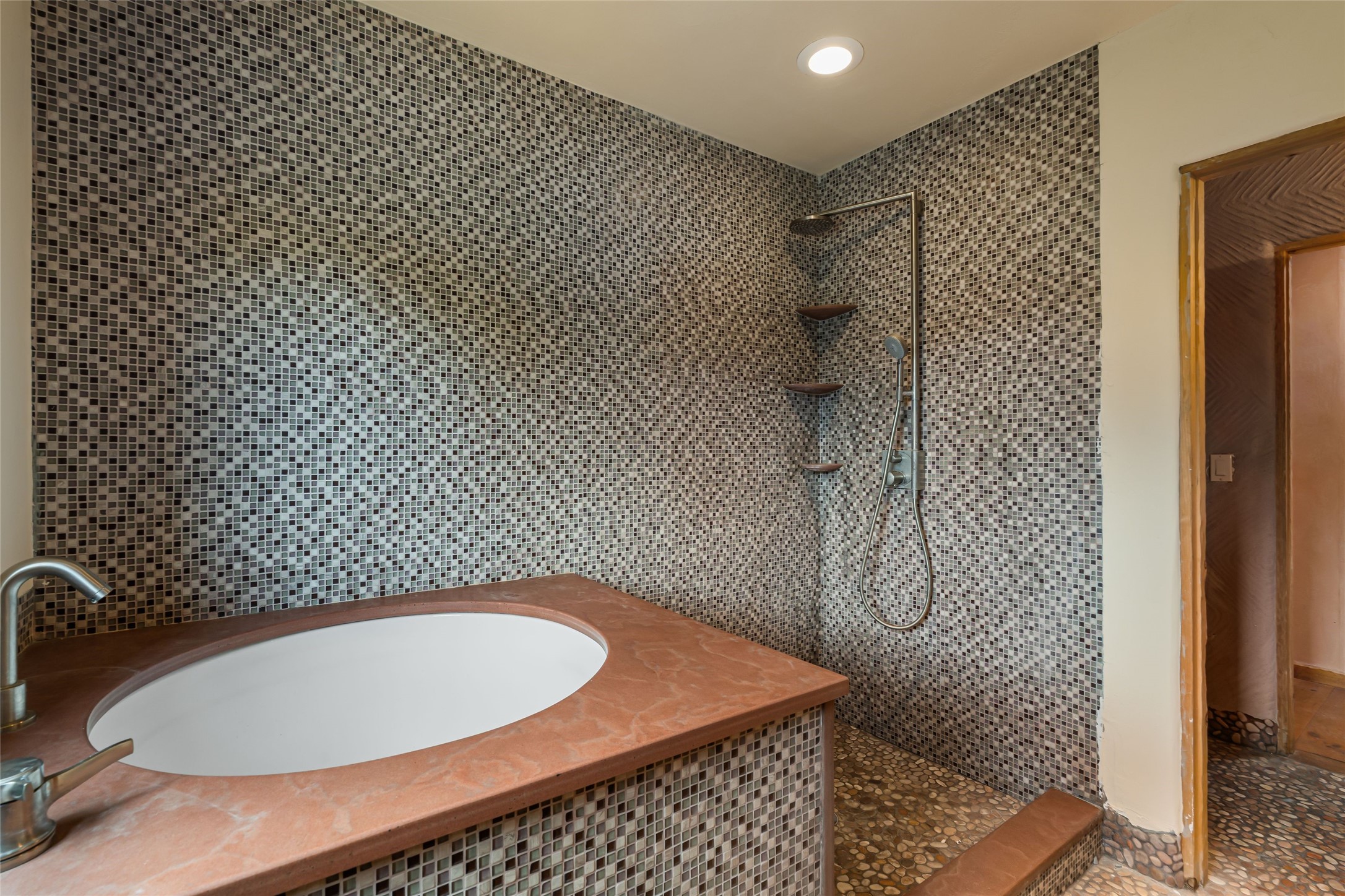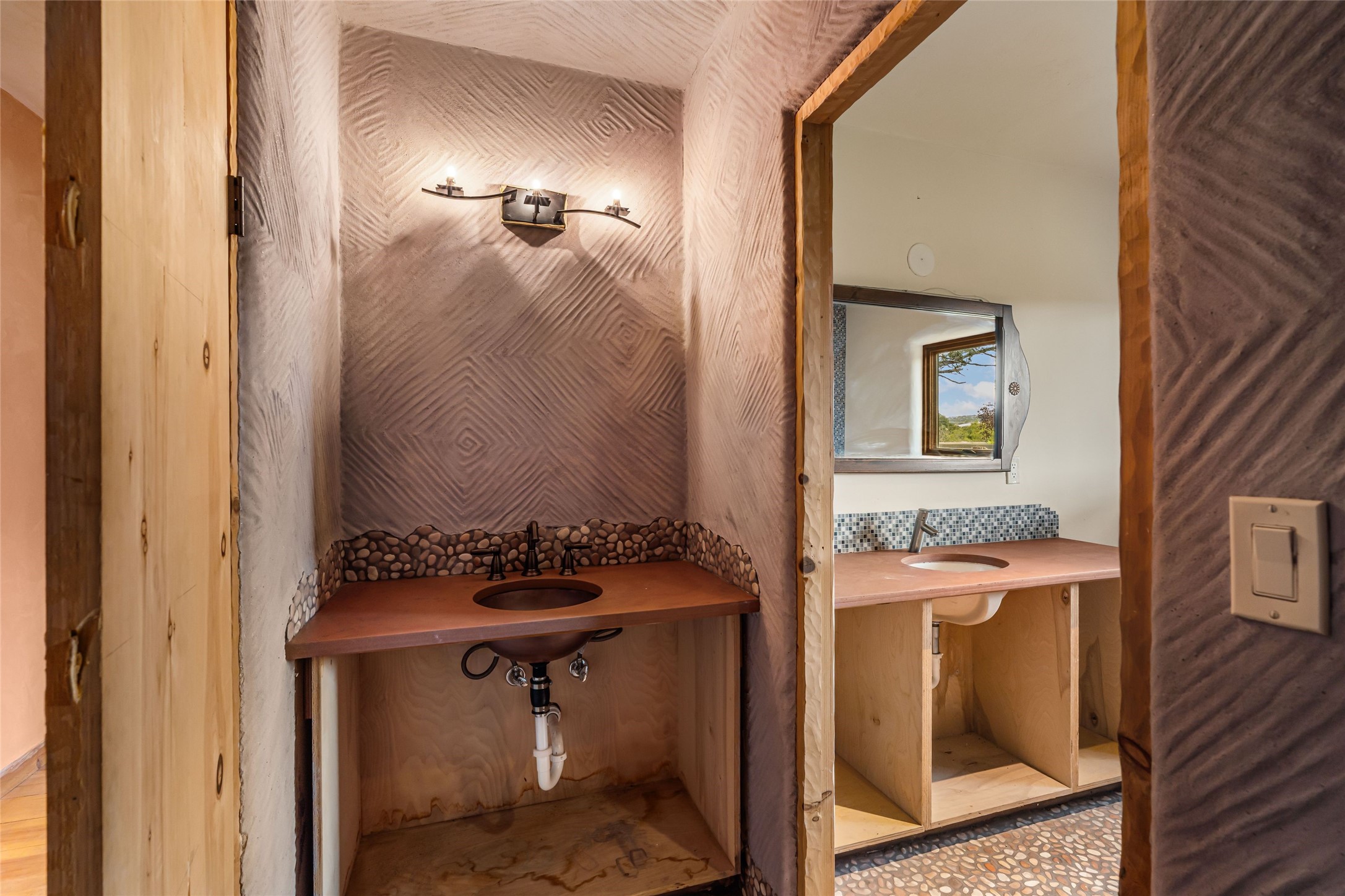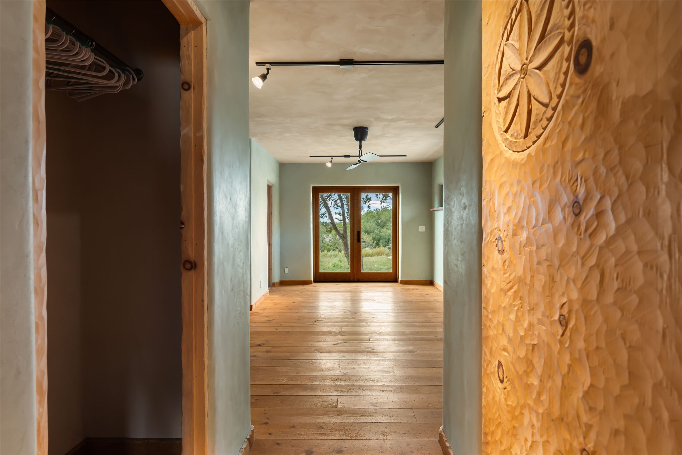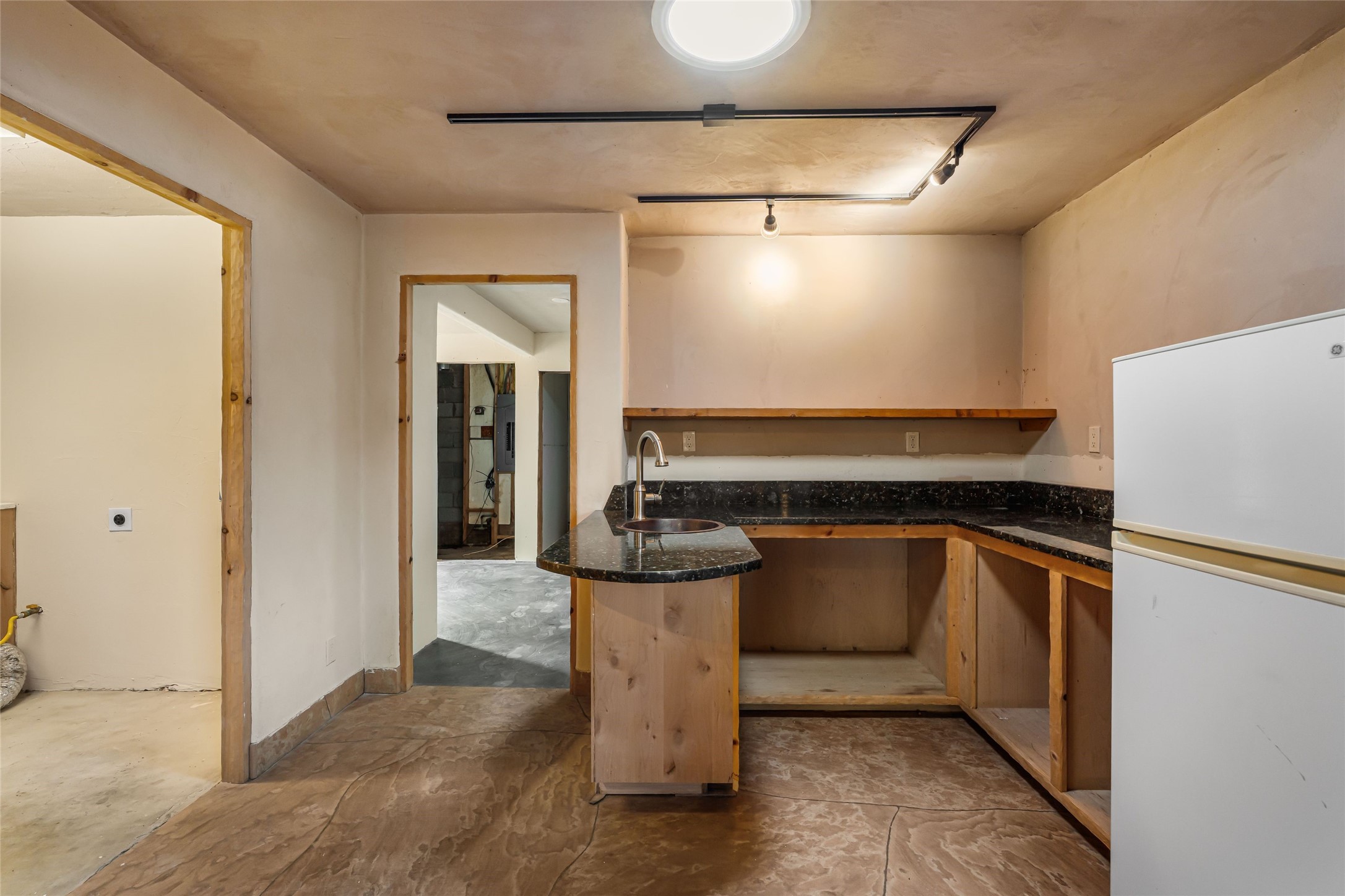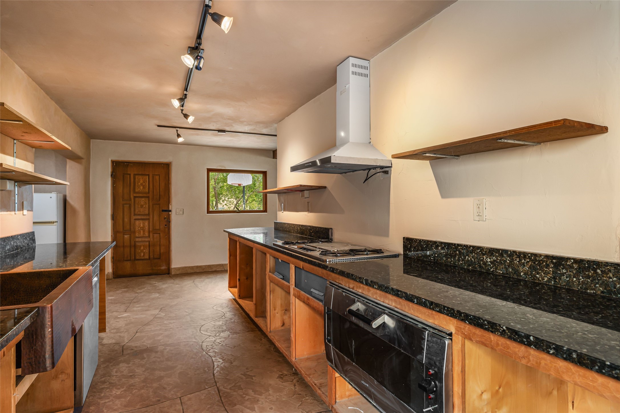 Wonderful opportunity to own a Sol Y Lomas adobe gem. Set your sights on the final finishing touches and upgrades on this adobe, three bedroom, two bathroom home at the end of the Santa Barbara Drive. Home is situated on a 3/4 acre lot with mature trees. Large Sunken Living Room and Dining Room with room for lots of entertaining, both with wood burning Fireplaces and flagstone floors. Beautiful Ceilings with Vigas and Latillas. New Marvin double pane wood windows and hardwood floors. Beautiful carved doors and wood accents in the home. The oversized two car garage has enough additional space for a small workshop. Ductless mini-splits heat and cool. Rinnai tankless hot water heater. Brand new stucco done in 2025. Bathroom includes tub, separate shower and dual sinks with nice tile accents. Lots of storage space. Outside in the back yard is a patio with an older brick fireplace. In the back of home is a space to be finished for a studio apartment with an additional bathroom and access to the back patio. Minutes to Downtown Santa Fe, hospital, shopping, and I-25.