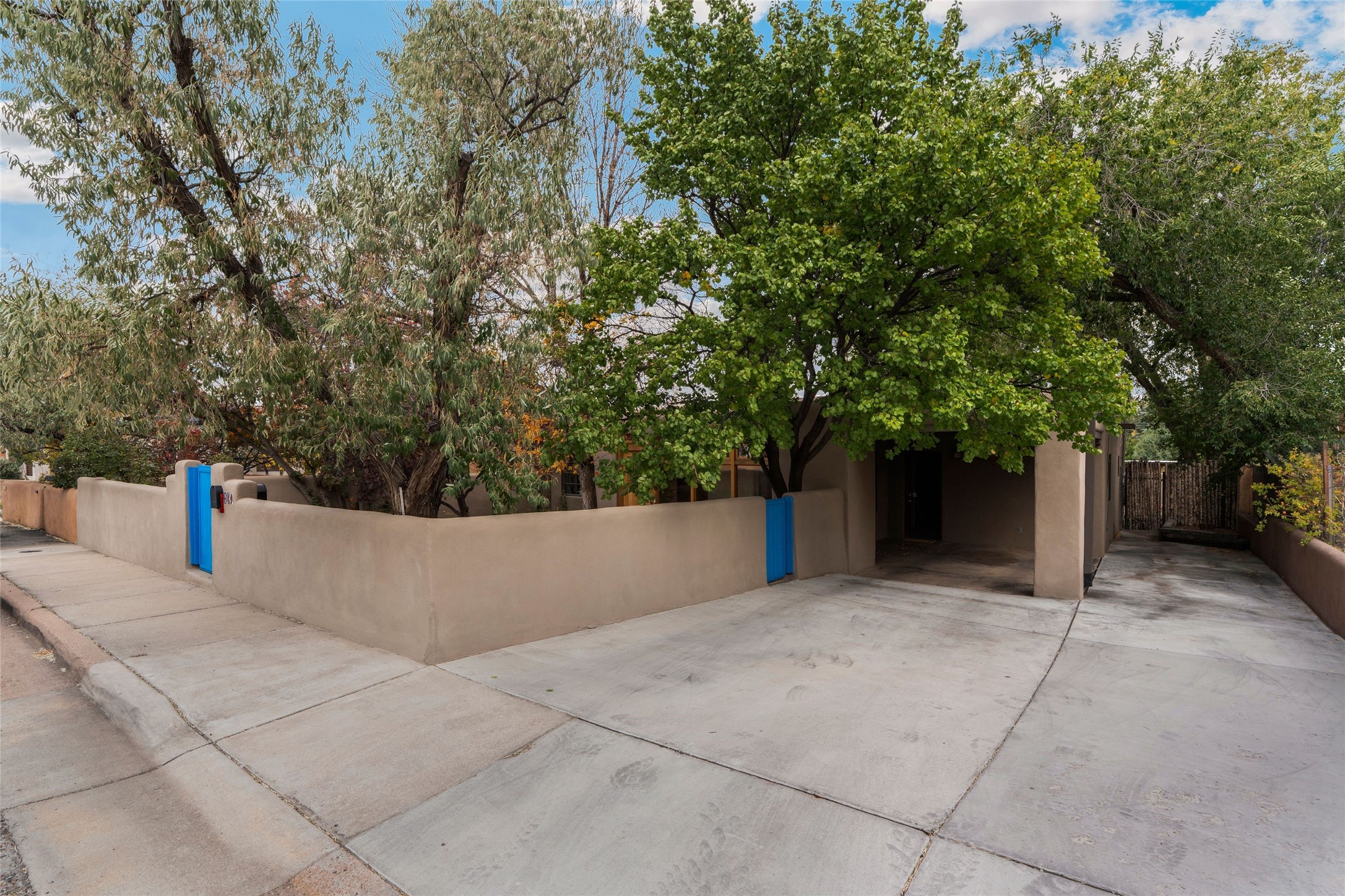 South Capital Gem with Modern Upgrades and Timeless Charm. This beautifully maintained single-level home blends classic Santa Fe character with thoughtful modern updates. The brand-new modern kitchen features sleek finishes and opens seamlessly to a spacious dining area with a classic wood-burning fireplace, creating a warm and inviting atmosphere for gatherings. Natural light fills the home through the charming wood sunroom, leading into a generous living area perfect for relaxing or entertaining. The primary suite offers a private retreat with an additional flex room ideal for an office or reading nook, along with a stylish bath featuring a stone countertop. A comfortable guest bedroom and library or media room share a beautifully updated three-quarter bath. Outside, enjoy the shady front lawn, covered porch, and private backyard surrounded by mature fruit trees and lush vegetation, offering both privacy and a tranquil garden setting. Solar panels provide energy efficiency and long-term savings. Located in one of Santa Fe's most desirable neighborhoods, this home offers peace and quiet while being just minutes from the Plaza, restaurants, and galleries. Classic style meets modern living in this South Capital treasure.