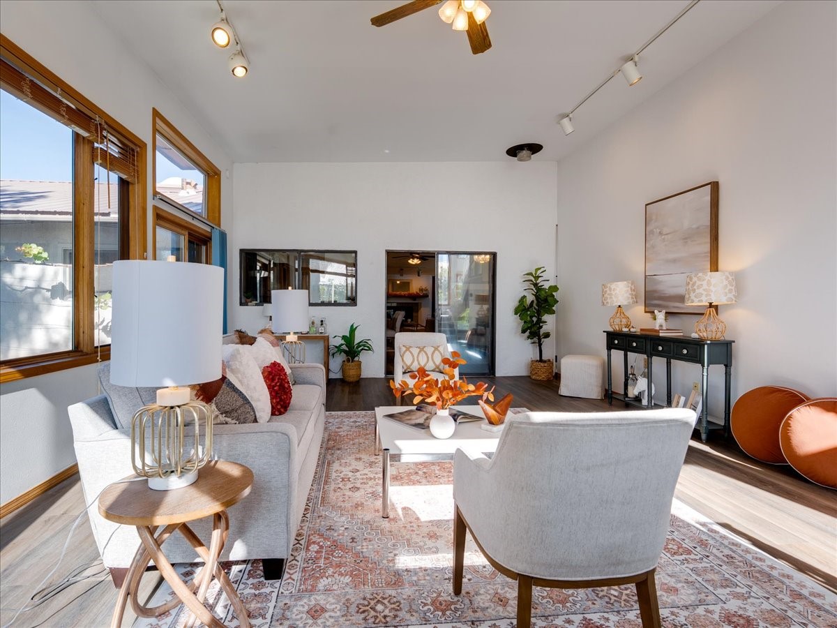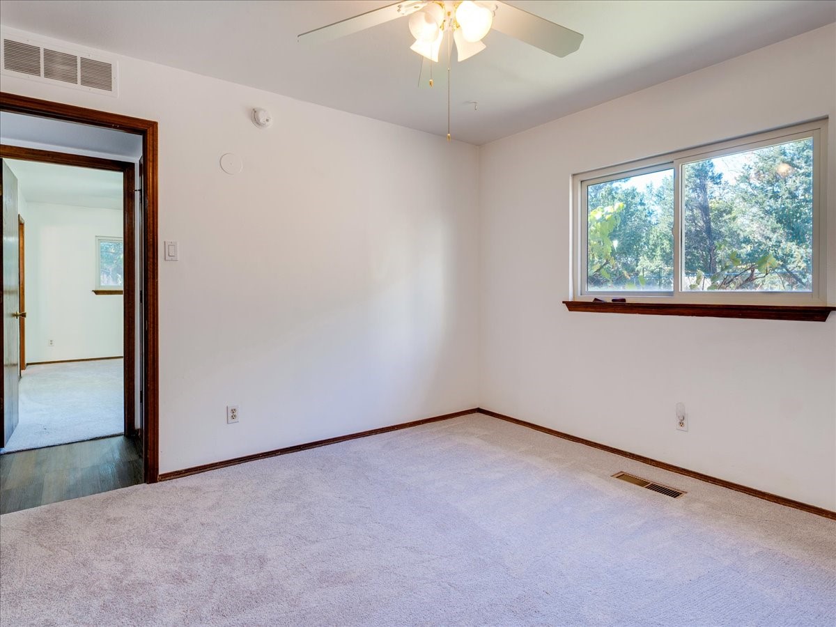 Welcome to this lovely 2,766-square-foot home. This spacious 4-bedroom, 3-bath home boasts vaulted ceilings, abundant natural light, and easy layout. The bright addition includes a generous main suite and sitting area, living room, and office. Recent updates include a new front door, driveway, stove range, and flooring. Features include energy-efficient double-paned windows and a wood-burning fireplace. Central air conditioning in the main part of the home. The beautifully landscaped yard features mature evergreen trees-- Colorado Blue Spruce, a 40-year-old black seedless grapevine draping gracefully over the garage, and a rare registered Stark Jumbo Dwarf apple tree. This home offers the perfect blend of comfort and character in a peaceful, well-established neighborhood. Schedule your showing today!