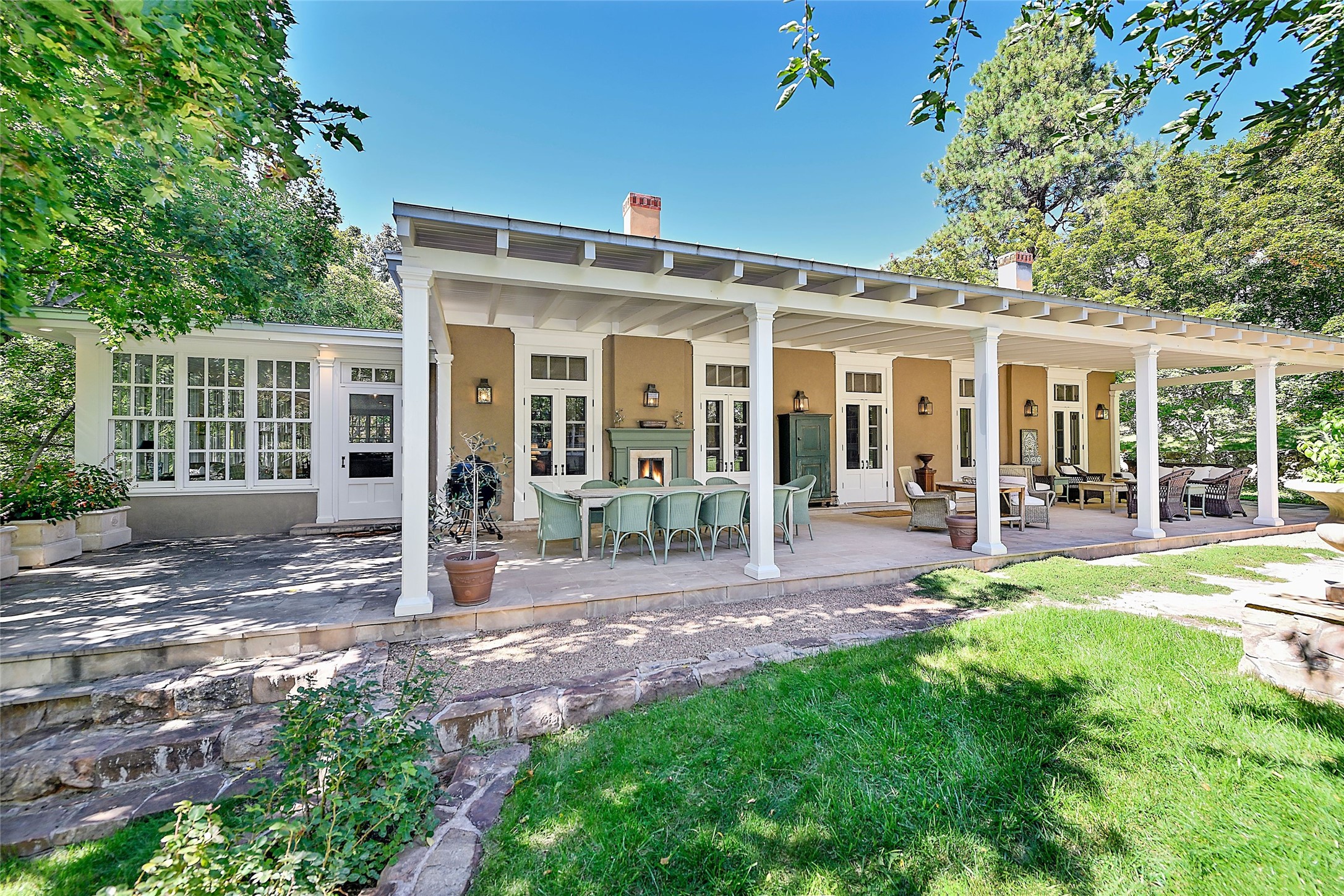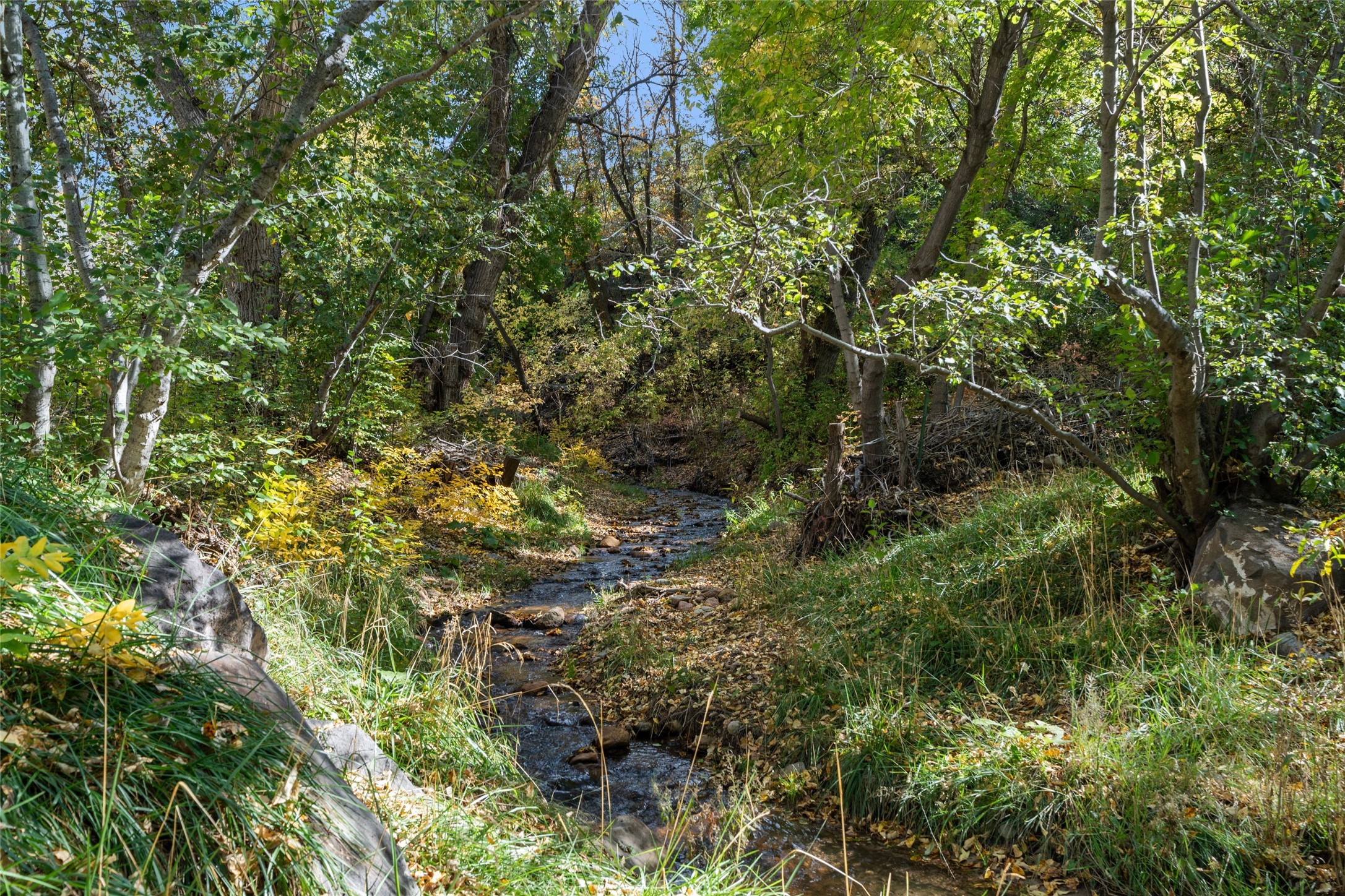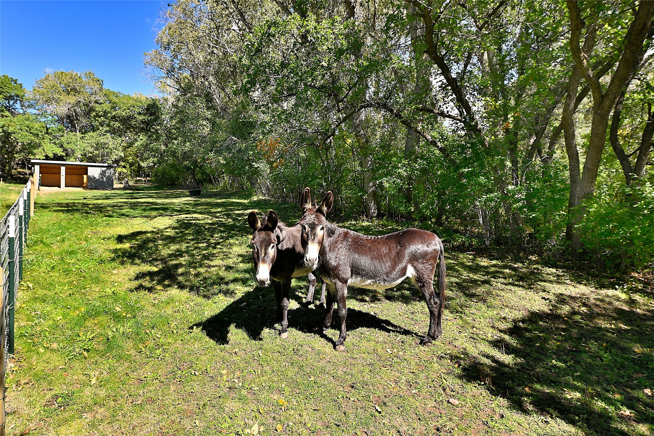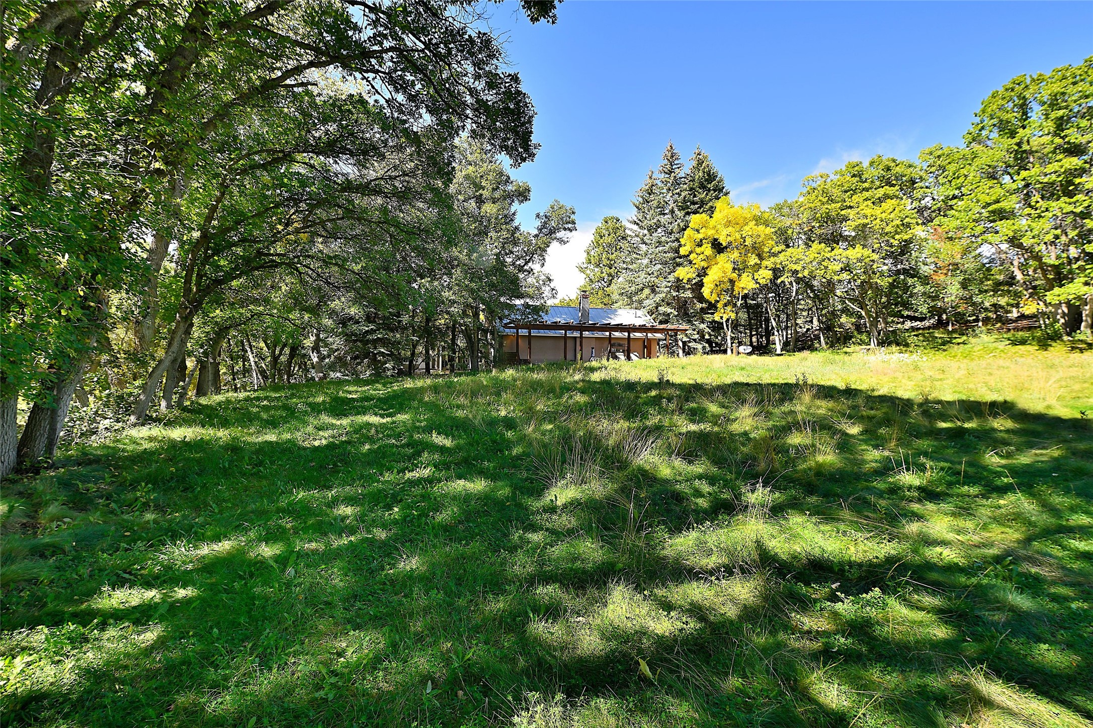 Nestled 3.5 miles past the Four Seasons Resort, and set on 25 acres along the Rio en Medio, this double adobe Territorial estate includes a main house and two guesthouses with five bedrooms in total, surrounded by orchards, meadows, and protected land stretching far beyond the property's boundaries. With 20+ acre feet of water rights, the estate sustains lush grounds, a swimming pond with stone decking, and an organic orchard. The main house features a chef's kitchen with two Sub-Zero refrigerators and a La Cornue range, plus seven fireplaces and floor-to-ceiling windows blending Southern detailing with Territorial design. The first guesthouse offers three bedrooms with its own kitchen and living room, while the second is an open-plan suite with a redwood portal and sunken hot tub overlooking the wildflower meadow. Amenities include commercial-grade irrigation and solar systems, a 6+ car garage, gated fencing, and a second private entrance. With a dedicated access road, with ample water rights, and 4 separately deeded parcels, the property presents appealing possibilities for future expansion or additional structures, subject to buyer verification.