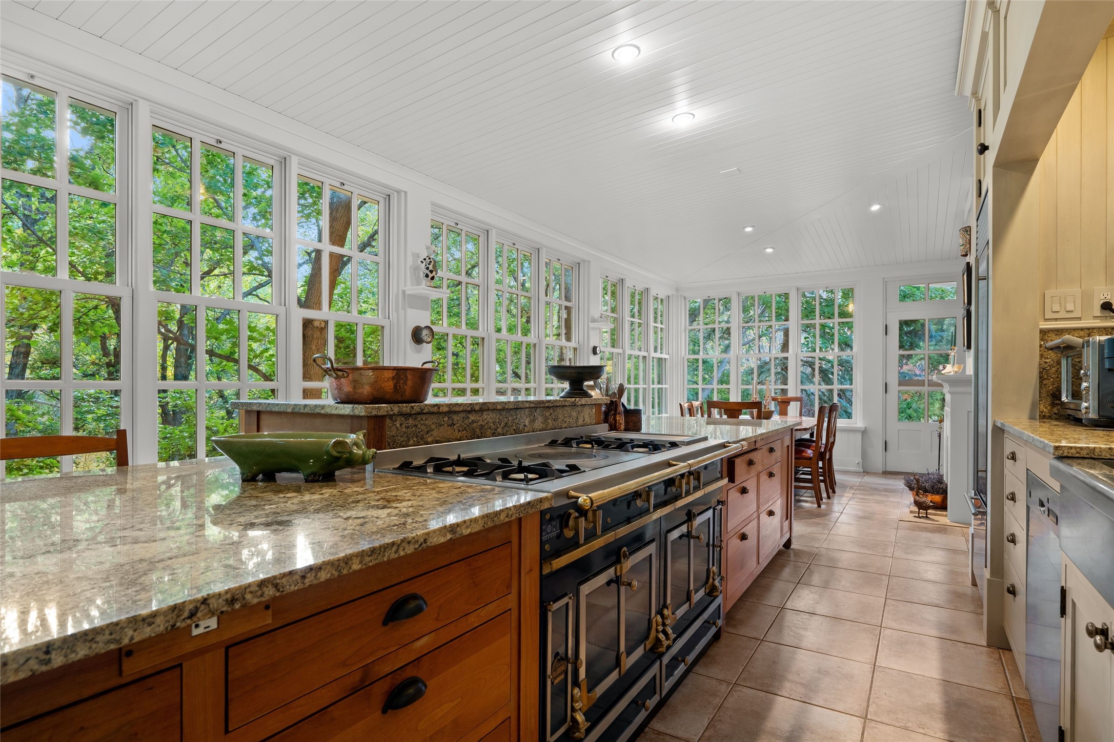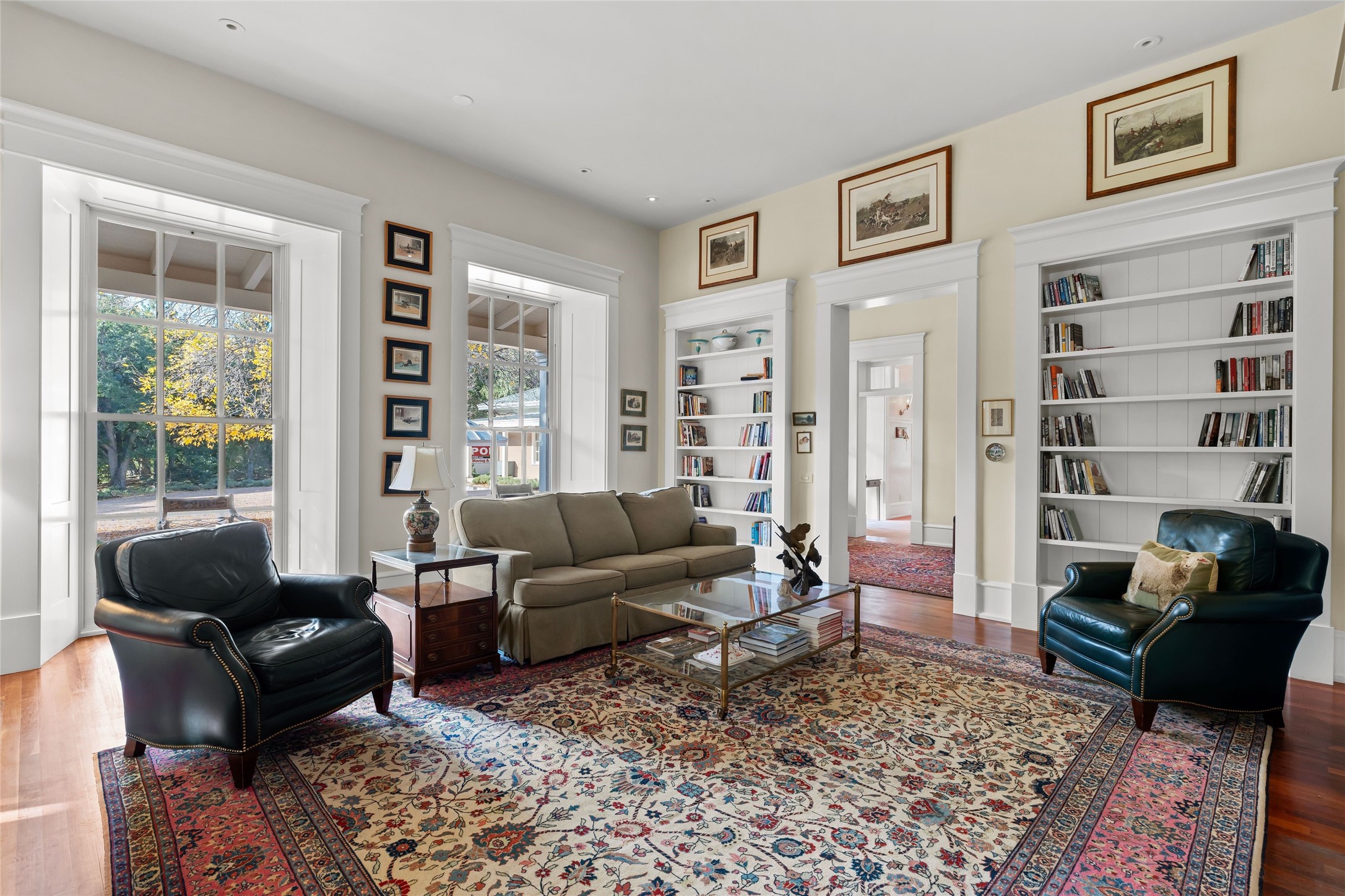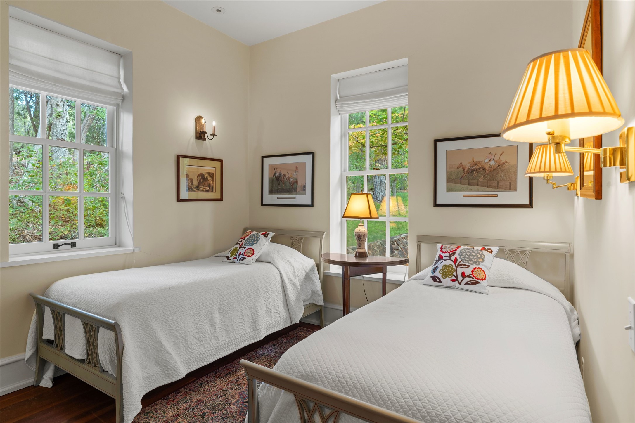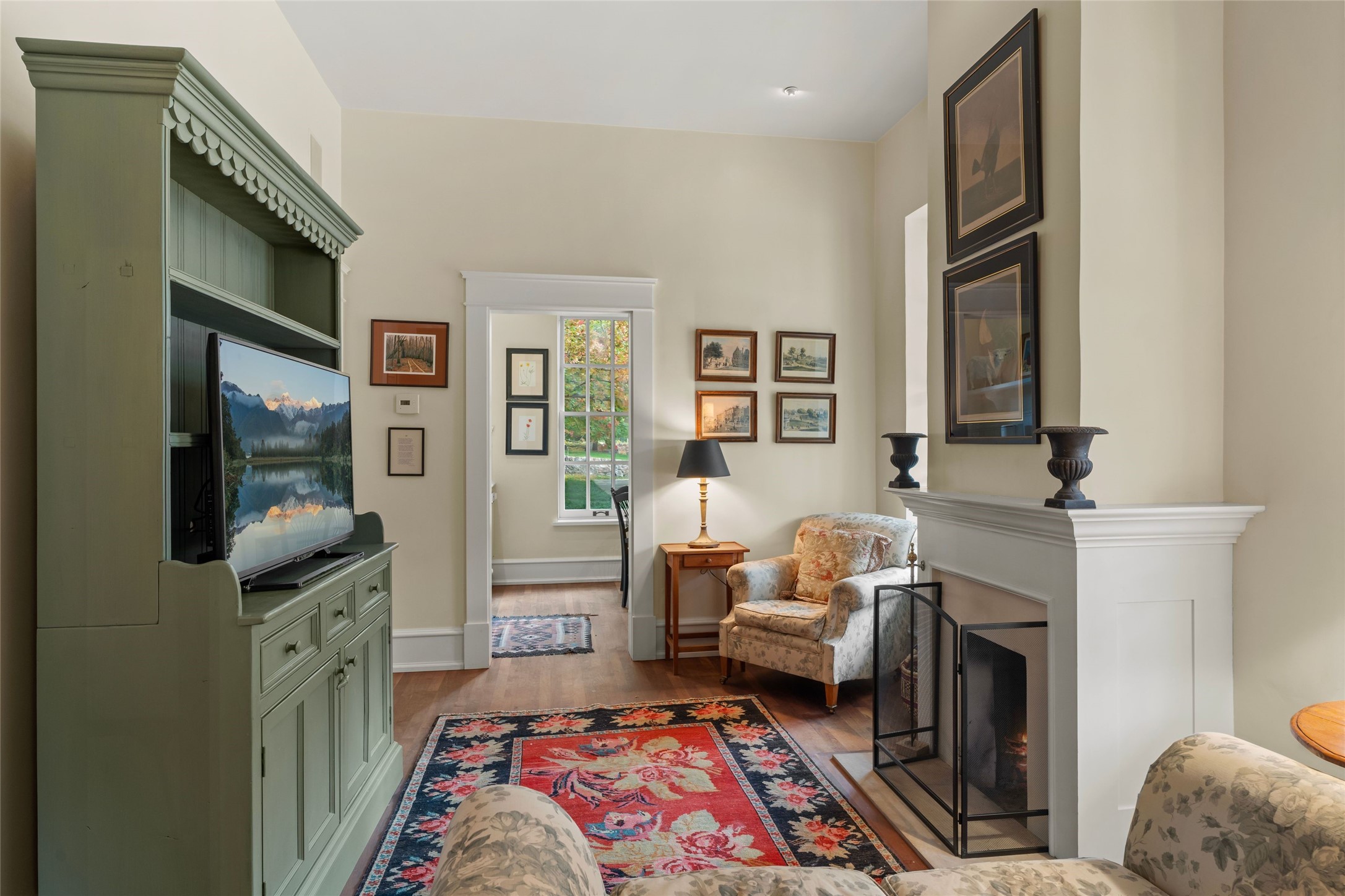 Nestled 3.5 miles past the Four Seasons Resort, and set on 25 acres along the Rio en Medio, this double adobe Territorial estate includes a main house and two guesthouses with five bedrooms in total, surrounded by orchards, meadows, and protected land stretching far beyond the property's boundaries. With 20+ acre feet of water rights, the estate sustains lush grounds, a swimming pond with stone decking, and an organic orchard. The main house features a chef's kitchen with two Sub-Zero refrigerators and a La Cornue range, plus seven fireplaces and floor-to-ceiling windows blending Southern detailing with Territorial design. The first guesthouse offers three bedrooms with its own kitchen and living room, while the second is an open-plan suite with a redwood portal and sunken hot tub overlooking the wildflower meadow. Amenities include commercial-grade irrigation and solar systems, a 6+ car garage, gated fencing, and a second private entrance. With a dedicated access road, with ample water rights, and 4 separately deeded parcels, the property presents appealing possibilities for future expansion or additional structures, subject to buyer verification.