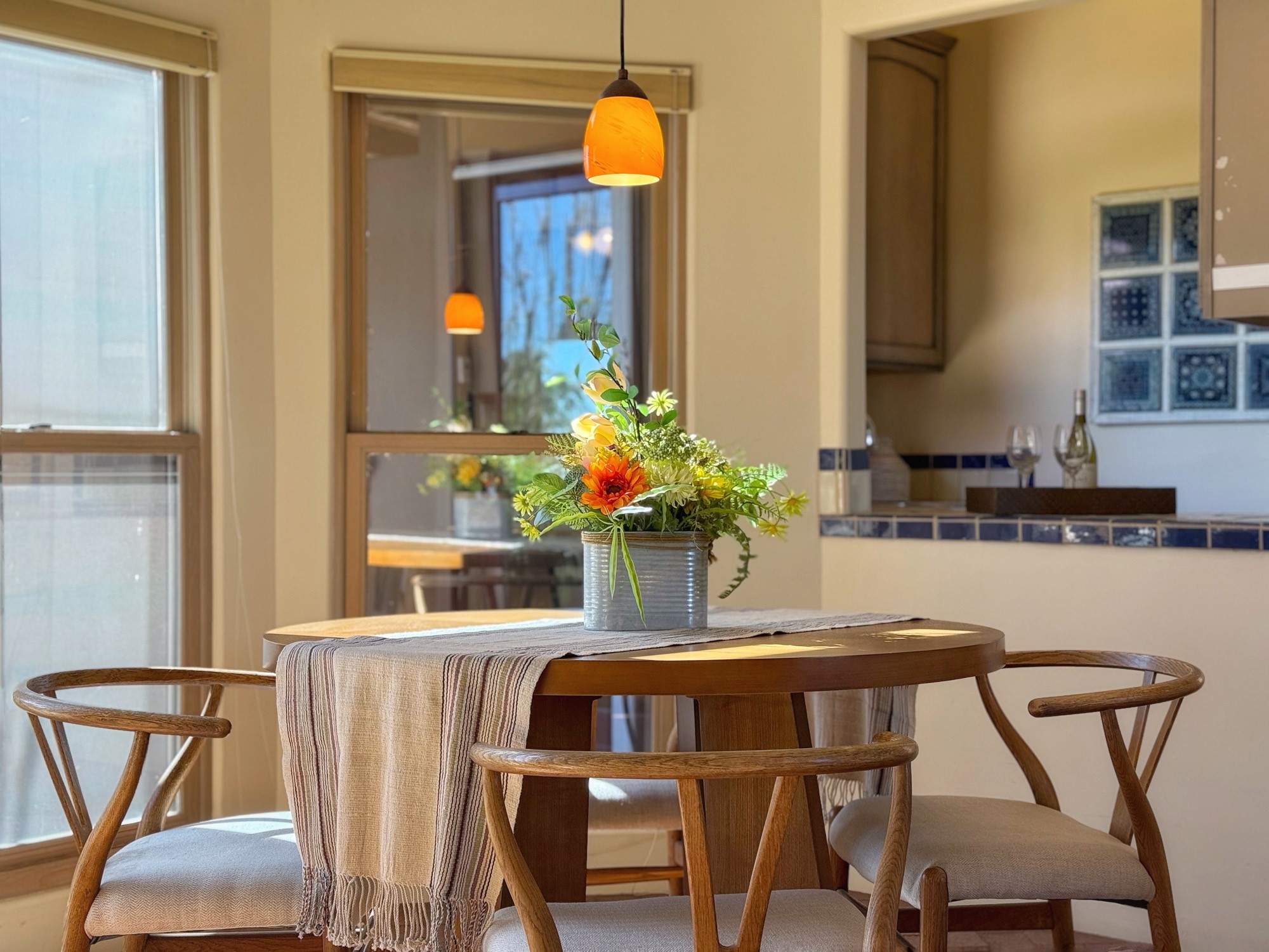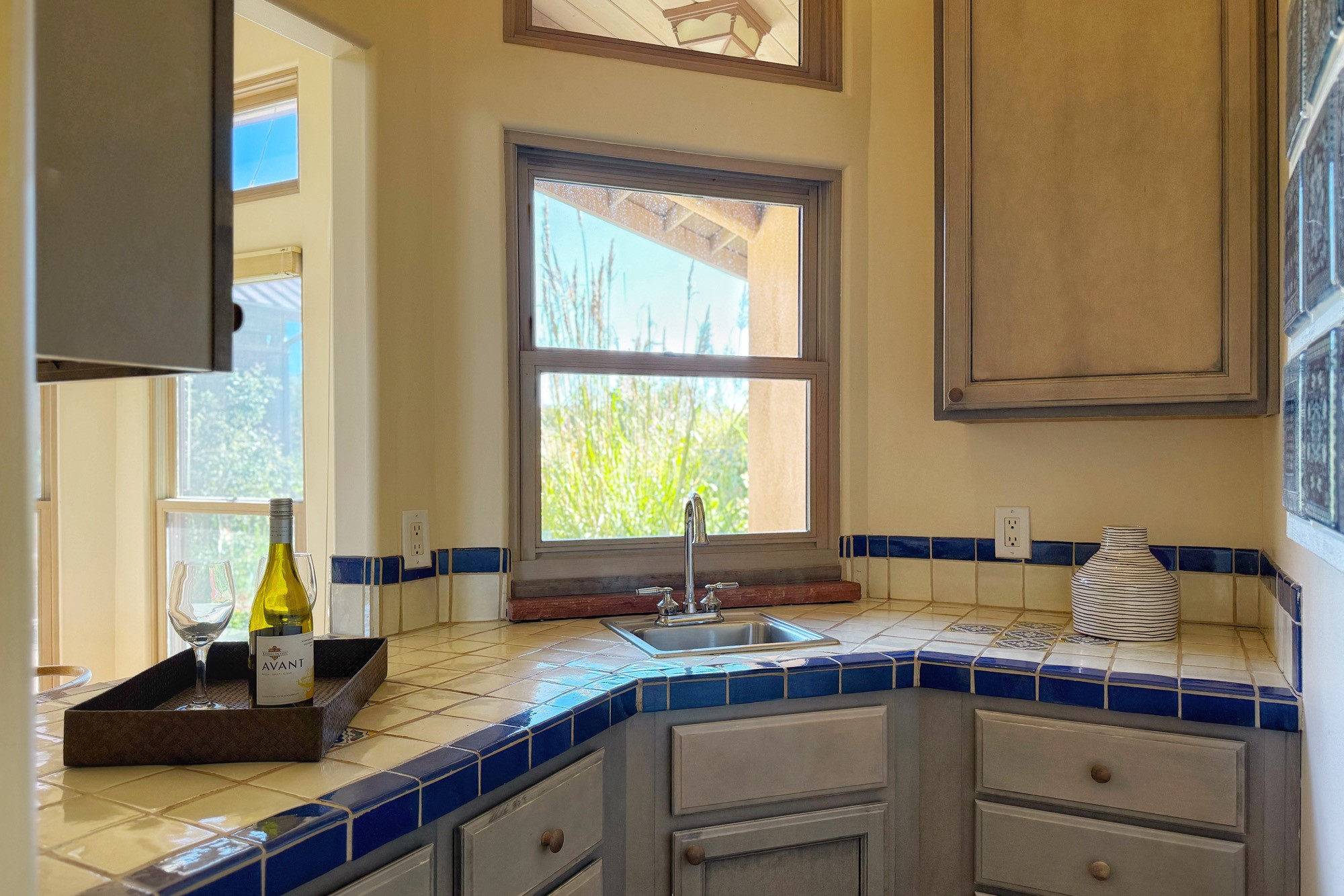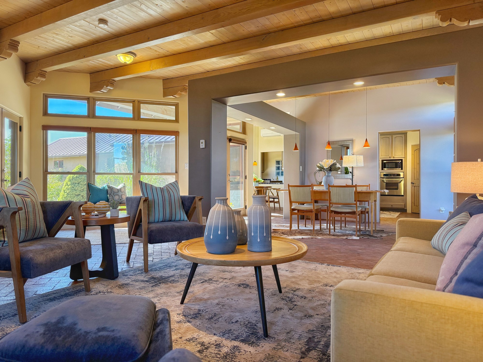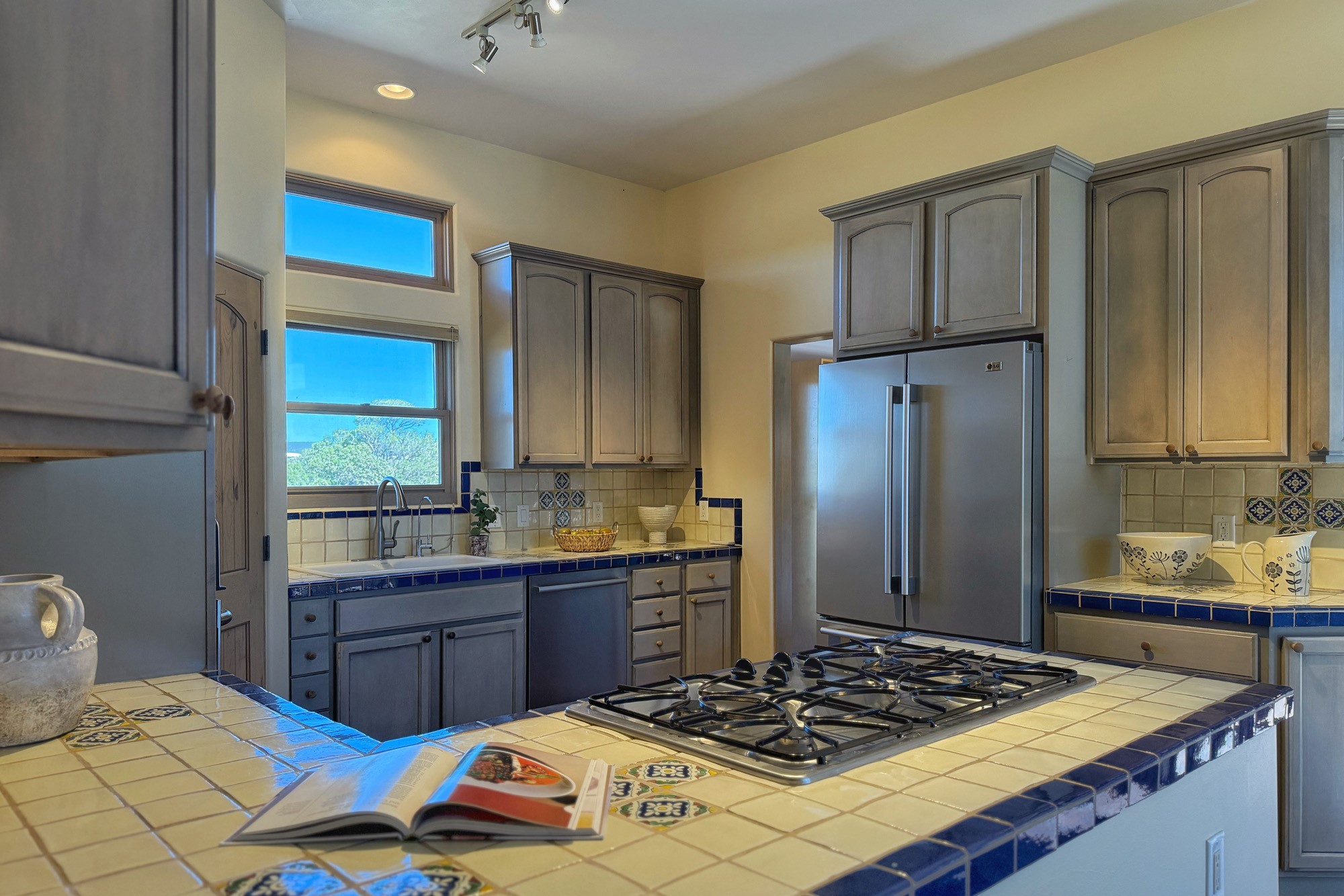 SELLER OFFERING $10,000 CREDIT AT CLOSING TO BUYER! This single-level home, built in 2005, offers the perfect blend of traditional Northern New Mexico architecture and modern comforts. Set on 1.44+/- acres with adjoining open space in the subdivision, the property welcomes you with lush, mature gardens and a beautiful entryway, framed by mountain views and proximity to equestrian facilities. Spanning approximately 2,272 sq. ft. the home features 3 bedrooms and 2 full baths. The spacious living room boasts high ceilings with wooden beams and corbels, a kiva fireplace, and brick floors that extend throughout. The kitchen includes stainless steel appliances, a walk-in pantry, custom cabinets, Mexican tile accents, and an eat-in breakfast nook. The primary suite is a private retreat with a generous walk-in closet and a large bathroom featuring double sinks, a jetted tub, and a separate shower. Two thoughtfully positioned guest bedrooms share a full bath with double sinks. Additional highlights include in-floor radiant heat, split units for supplemental heating and cooling and a two-car garage that offers a built-in workbench, custom cabinetry, and attic storage. Ideally located just minutes from Eldorado, this home is close to shopping, restaurants, gyms, banks, a post office, hardware stores, and pet services.