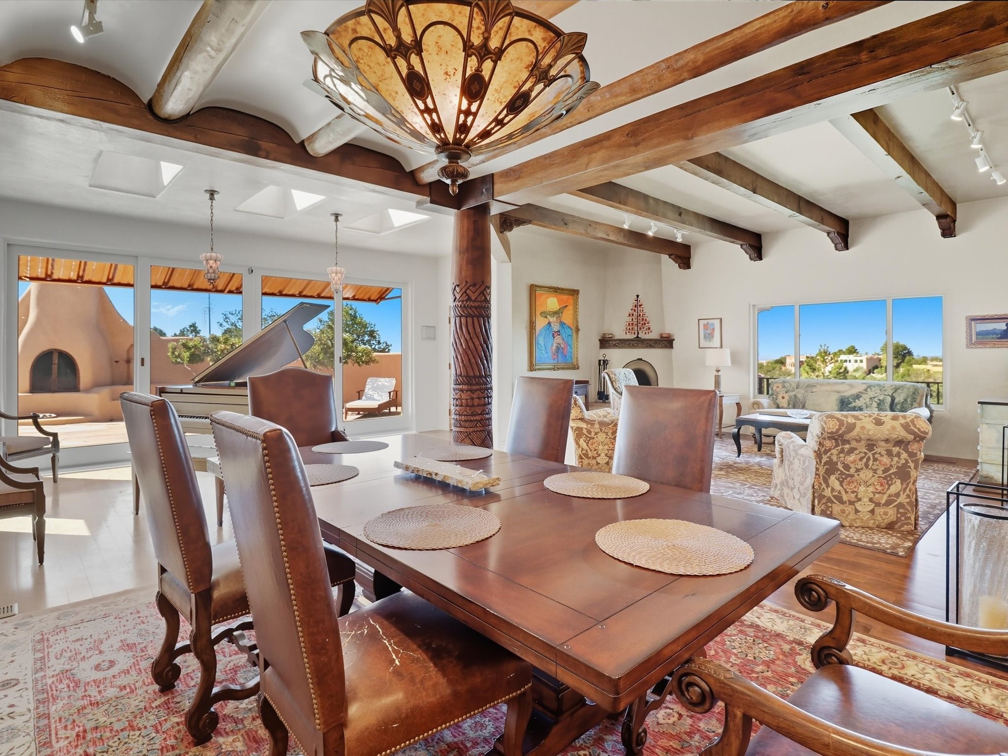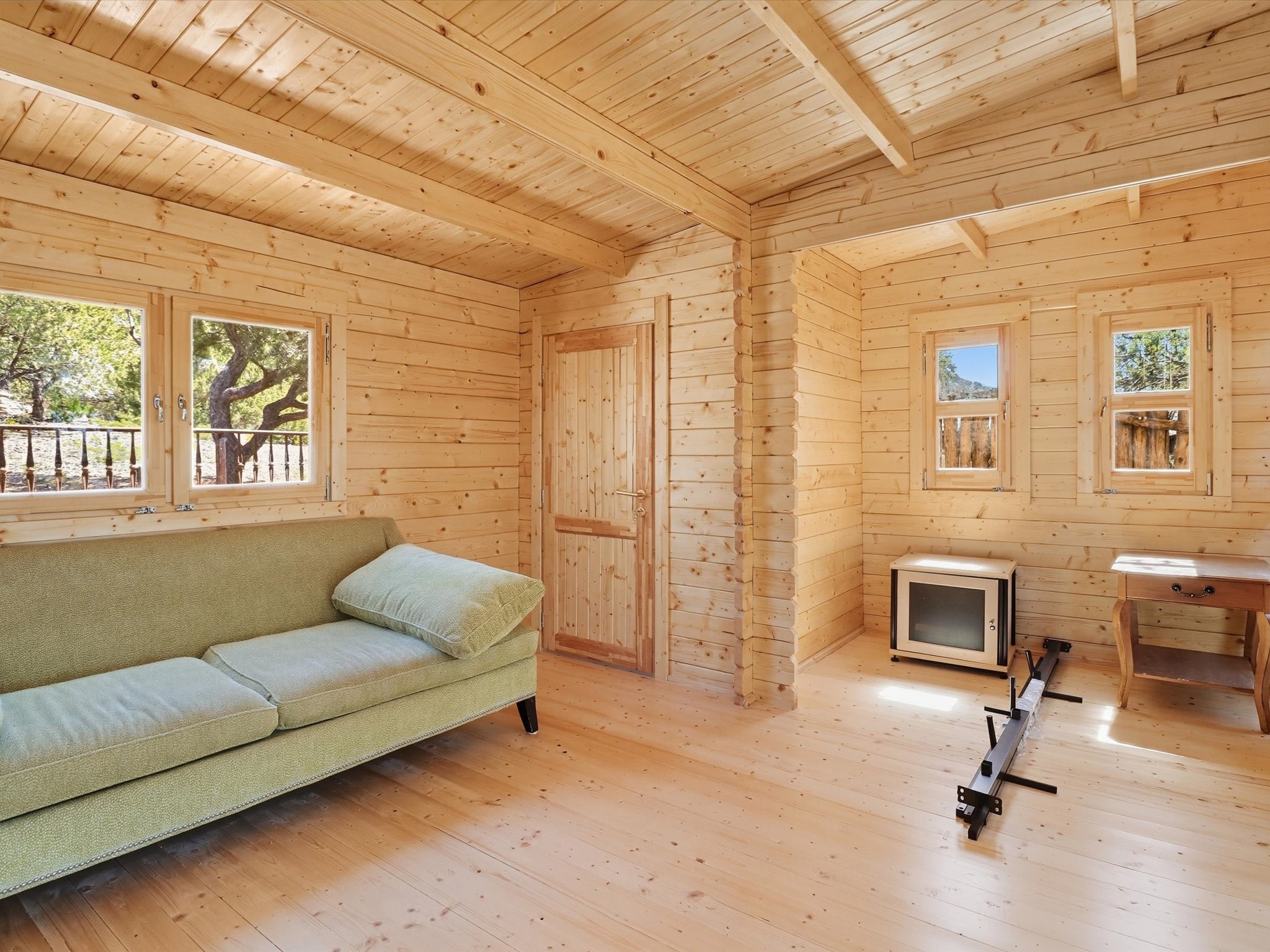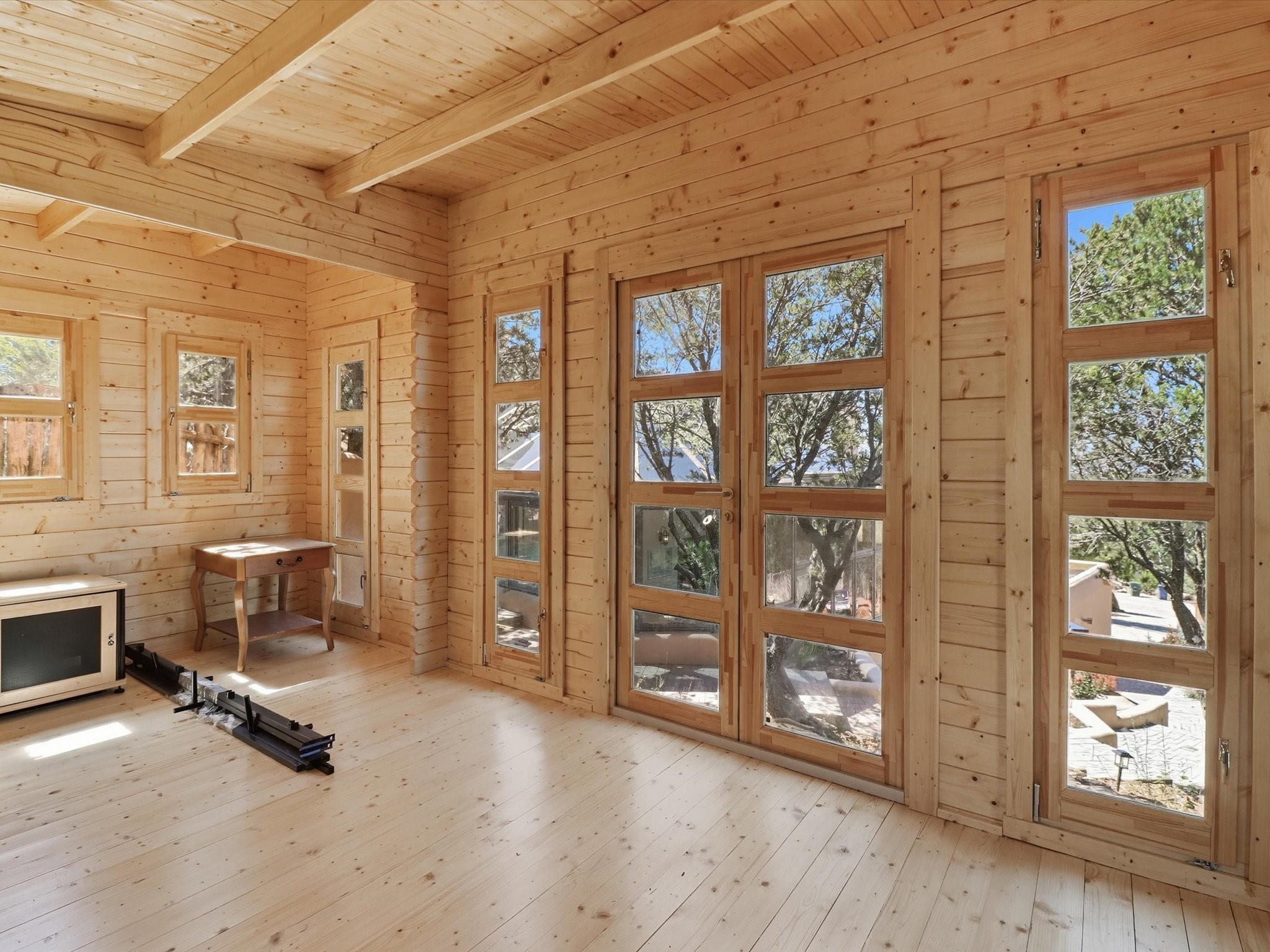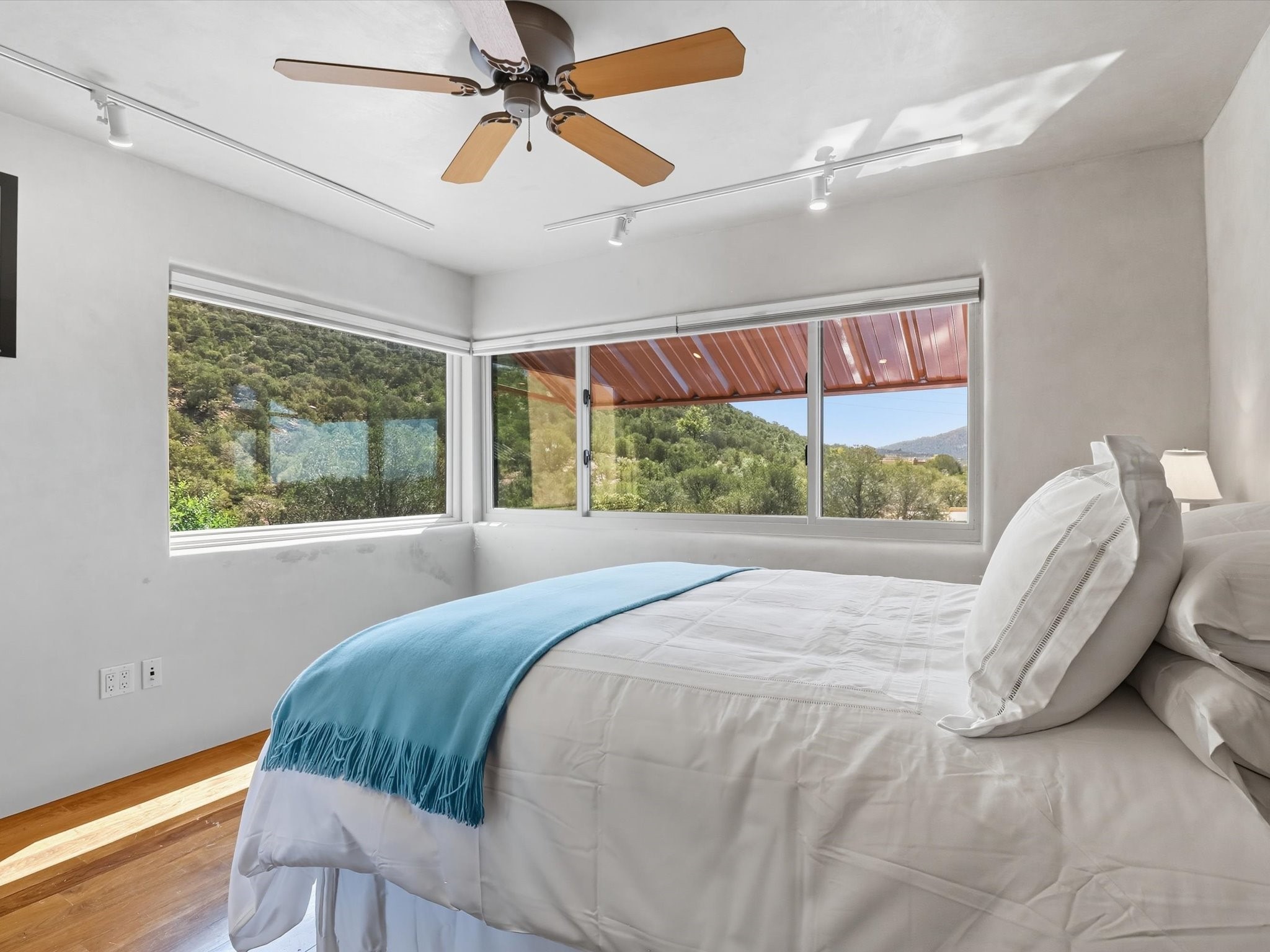 WANTED: A New Owner With a Taste for the Extraordinary! Be prepared to be inspired--inspired to live effortlessly in a mountain escape where Old World charm meets modern-day refinement. This elevated estate isn't just a home, it's a sanctuary, a hideaway, a place where sunsets stretch for miles and every corner whispers character. Step through newly designed gardens with stone walkways and an elegant driveway that sets the stage for what's within. Inside, custom wood accents, artisan ironwork, walnut floors, and hand-troweled plaster walls warm the soul. Two living areas -- plus a sunlit, heated, and cooled solarium with a sauna off to the side -- offer spaces to gather and relax. The primary suite is its own retreat, with custom entry doors, a sitting area anchored by a kiva fireplace, and direct access to a private deck where sunsets put on their nightly show. The owners have thoughtfully elevated this property with recent upgrades: a transformed garden landscape, extensive stonework, Anderson windows and doors, and major enhancements to the arroyo. Outdoors, the amenities read like a resort--solar panels, a pool with two hot tubs and a waterslide, plus all-new heating systems to keep each pool zone comfortable year-round. And there's more: an amazing shed ready for conversion to living space, plus the possibility of adding a casita at the top of the lot--perfect for guests or creative ventures. This isn't just a property. It's a rare opportunity to claim your own mountain retreat, one where history, craftsmanship, and modern comfort converge.REWARD: Unmatched views, inspired living, and the chance to call this mountain haven your own.