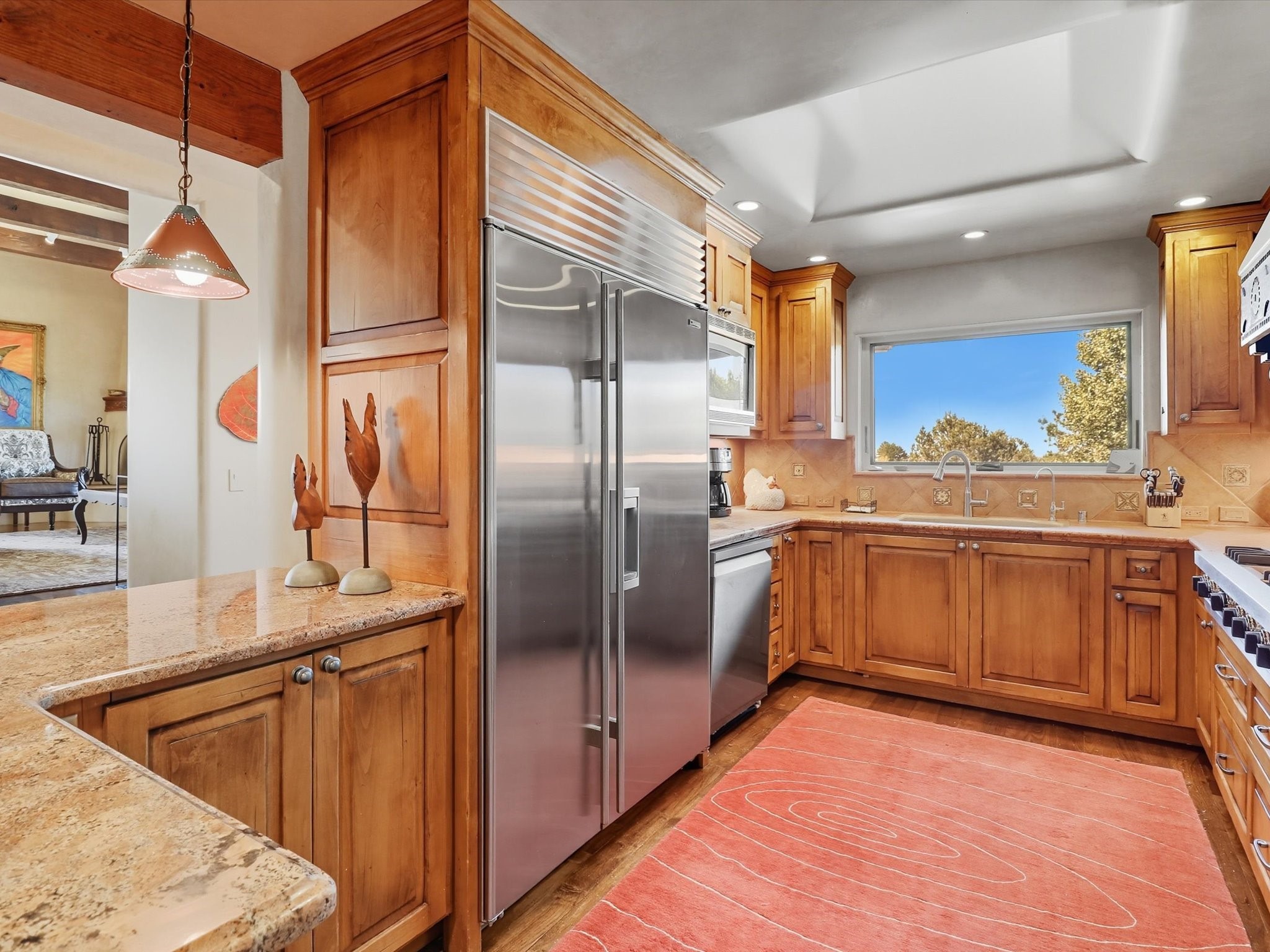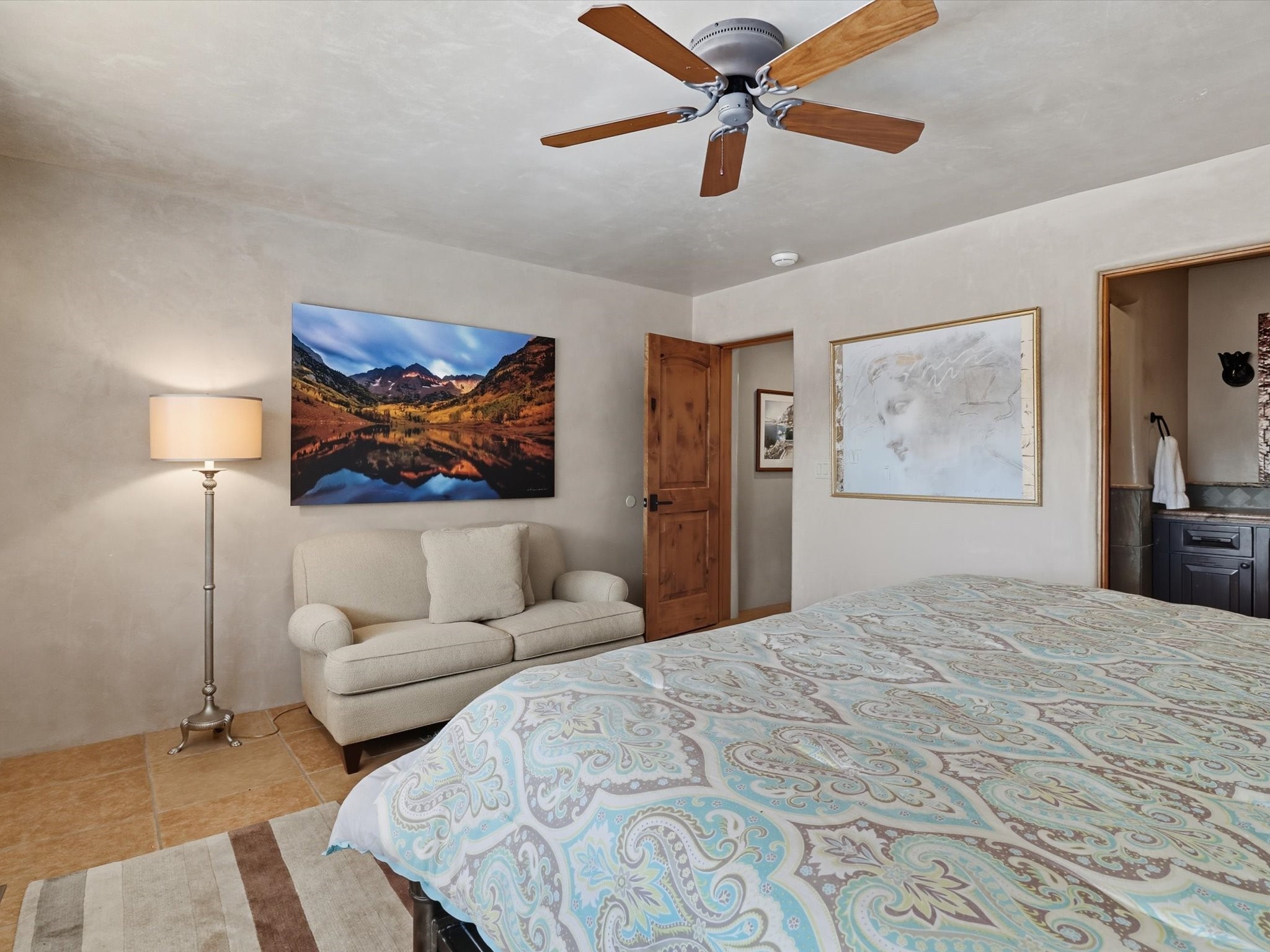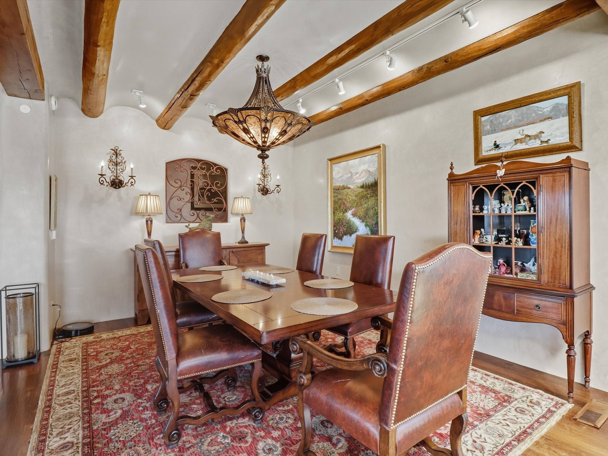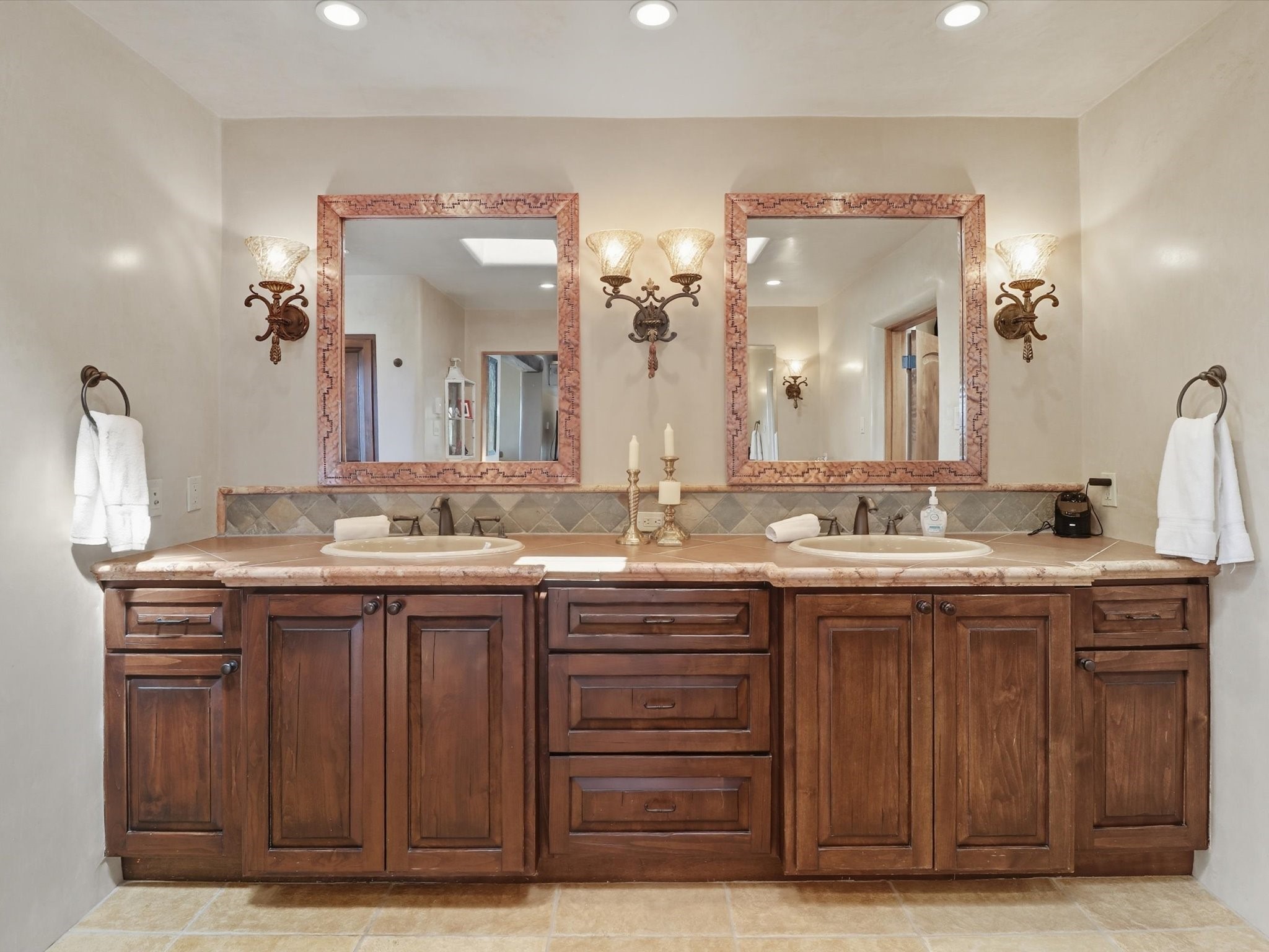 WANTED: A New Owner With a Taste for the Extraordinary! Be prepared to be inspired--inspired to live effortlessly in a mountain escape where Old World charm meets modern-day refinement. This elevated estate isn't just a home, it's a sanctuary, a hideaway, a place where sunsets stretch for miles and every corner whispers character. Step through newly designed gardens with stone walkways and an elegant driveway that sets the stage for what's within. Inside, custom wood accents, artisan ironwork, walnut floors, and hand-troweled plaster walls warm the soul. Two living areas -- plus a sunlit, heated, and cooled solarium with a sauna off to the side -- offer spaces to gather and relax. The primary suite is its own retreat, with custom entry doors, a sitting area anchored by a kiva fireplace, and direct access to a private deck where sunsets put on their nightly show. The owners have thoughtfully elevated this property with recent upgrades: a transformed garden landscape, extensive stonework, Anderson windows and doors, and major enhancements to the arroyo. Outdoors, the amenities read like a resort--solar panels, a pool with two hot tubs and a waterslide, plus all-new heating systems to keep each pool zone comfortable year-round. And there's more: an amazing shed ready for conversion to living space, plus the possibility of adding a casita at the top of the lot--perfect for guests or creative ventures. This isn't just a property. It's a rare opportunity to claim your own mountain retreat, one where history, craftsmanship, and modern comfort converge.REWARD: Unmatched views, inspired living, and the chance to call this mountain haven your own.