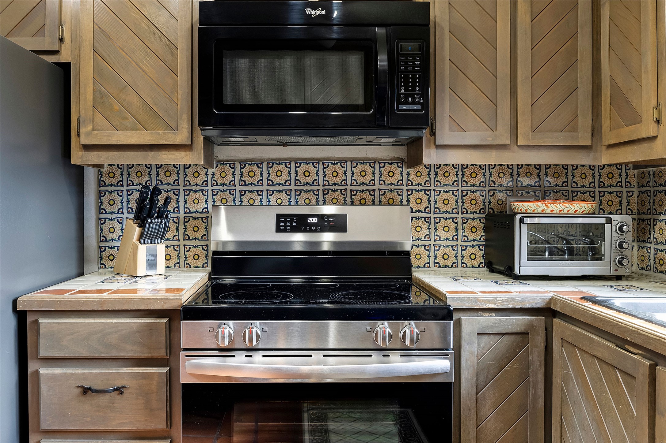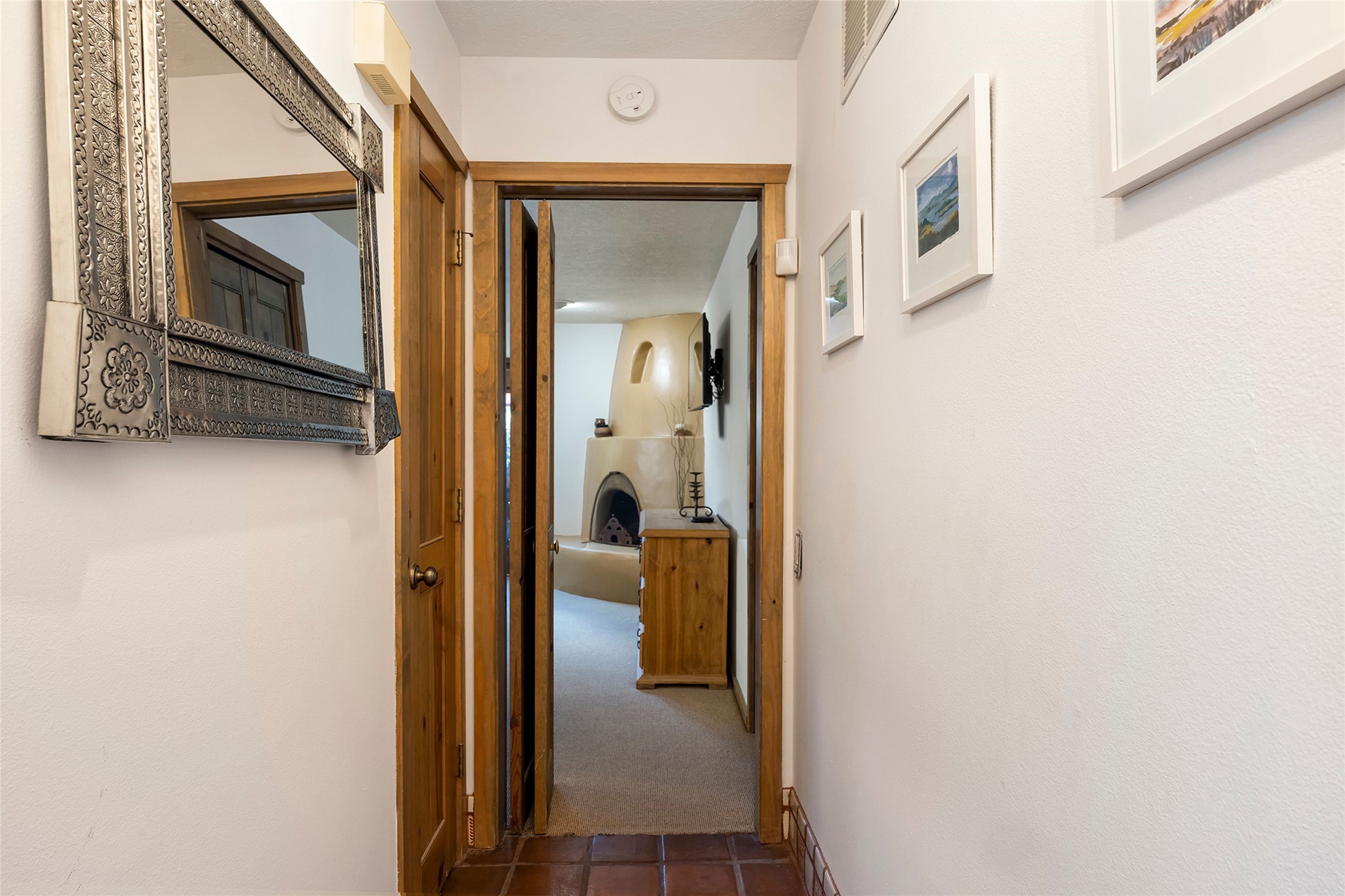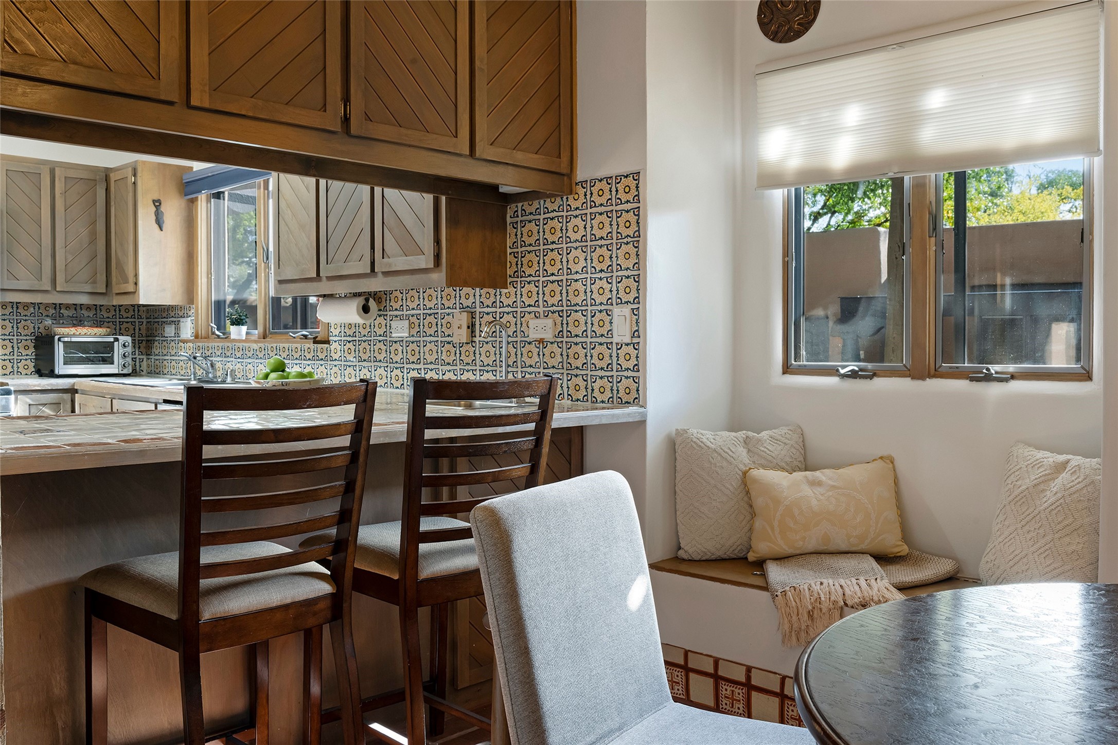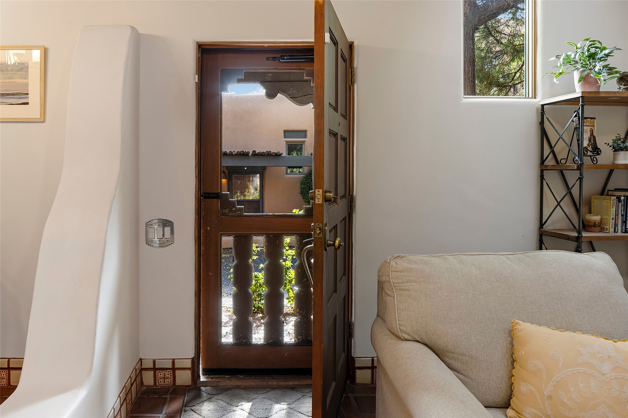 In-town Santa Fe living at its best!Rare single-level, 2-bedroom, 2-bath Santa Fe-style condo in the highly sought-after Griffin Park Condo community--just a few blocks from the Plaza. This charming home features classic Santa Fe details including a front portal with Latillas, Vigas, Saltillo tile floors and two Kiva wood burning fireplaces. In September 2025, the seller added a built in wine refrigerator and a stainless steel Frigidaire appliance package that included a stove, refrigerator and dishwasher. The kitchen has a bar seating and the pantry/laundry room connects directly to the attached single car garage for easy access and extra storage. The spacious primary suite offers a large closet and its own fireplace with French doors that open to the private courtyard under a canopy of trees. Modern comforts include central heating and air, tankless water heater and full-size washer and dryer. HOA covers water, sewer, trash, roof, stucco, and exterior landscaping. Quiet end-unit location on a peaceful street--ideal as a primary residence, pied--terre, or investment.