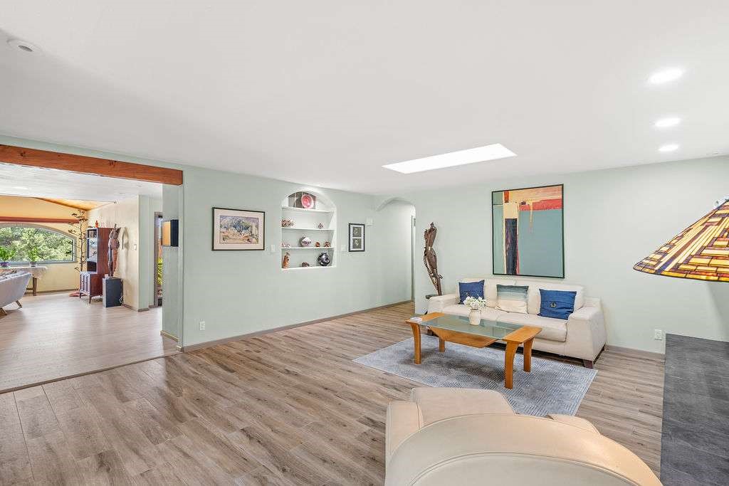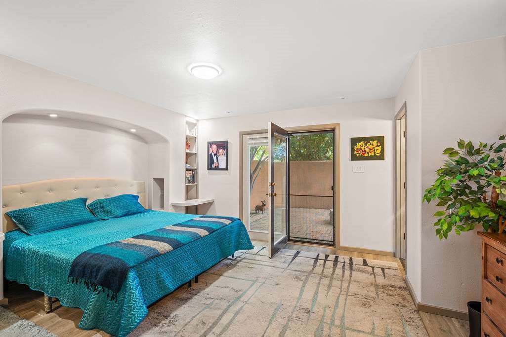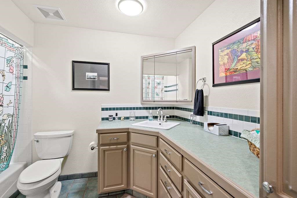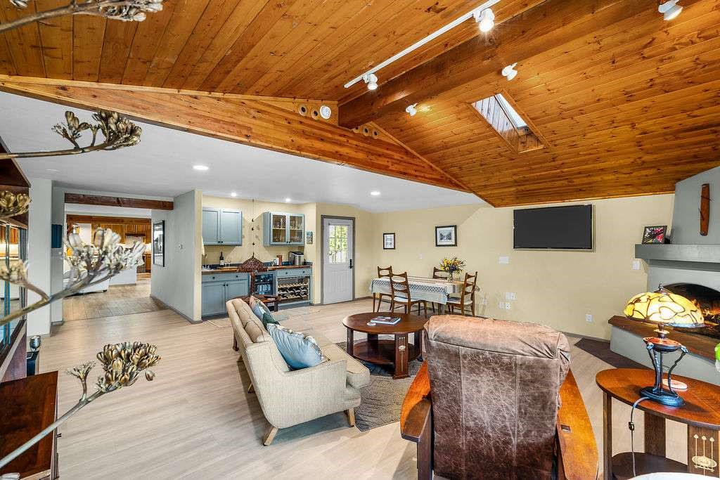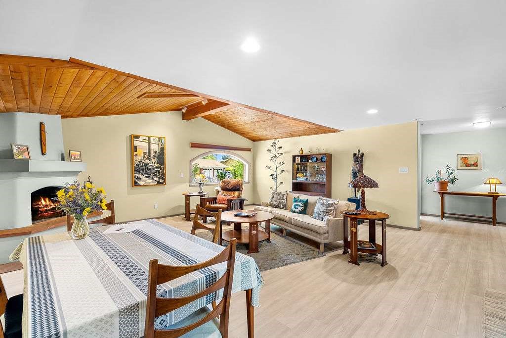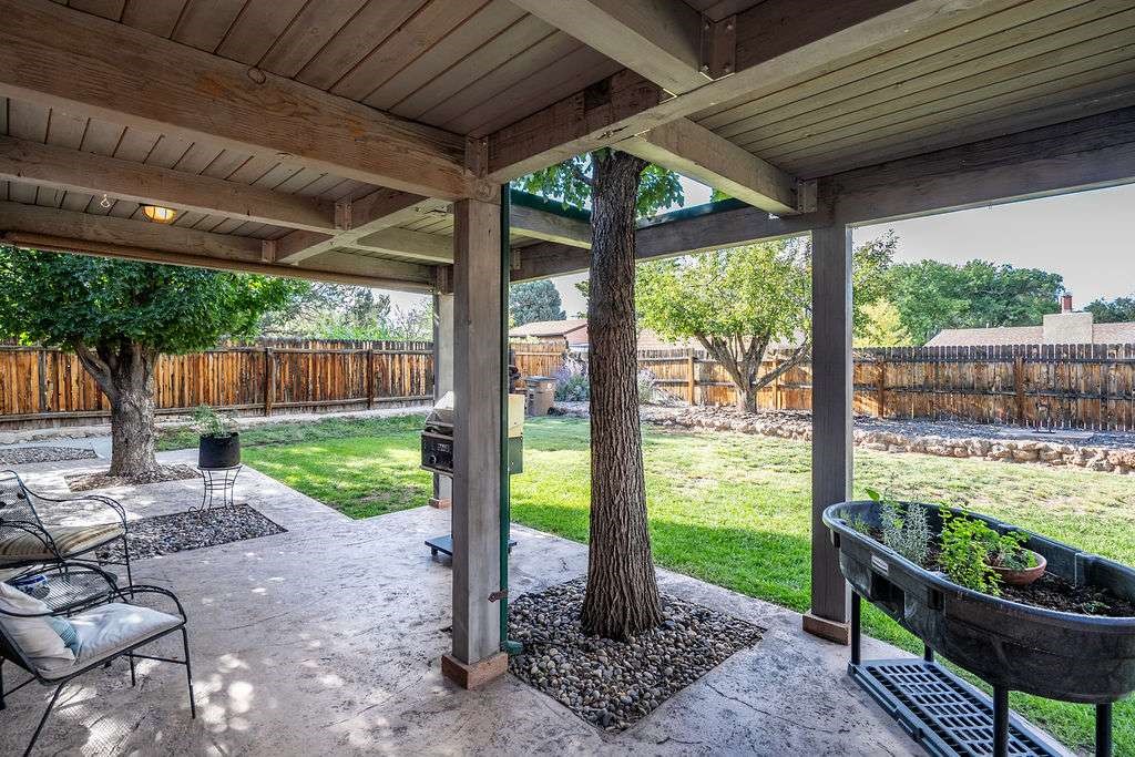 Gorgeous single-level home with an open floor plan and numerous updated architectural finishes. Property includes spacious bedrooms and office, expansive kitchen, and large great room with built-in bar. The primary bedroom has an en suite bath and walk-in closet. Additionally, property has an oversized detached garage and a separate storage shed for your treasures. Mature landscaping with cherry and apple trees is included! Amenities include stainless steel appliances, two fireplaces, convenient location, radiant floor heat, central air conditioning, private fenced back yard, two living room areas, large laundry room with more storage, private walled-off patio adjacent to primary suite with fire pit. Landscaped yard with irrigation system and rainwater collection features. Front driveway gate closes off access to garage and back patios. Best of all, no HOA dues.