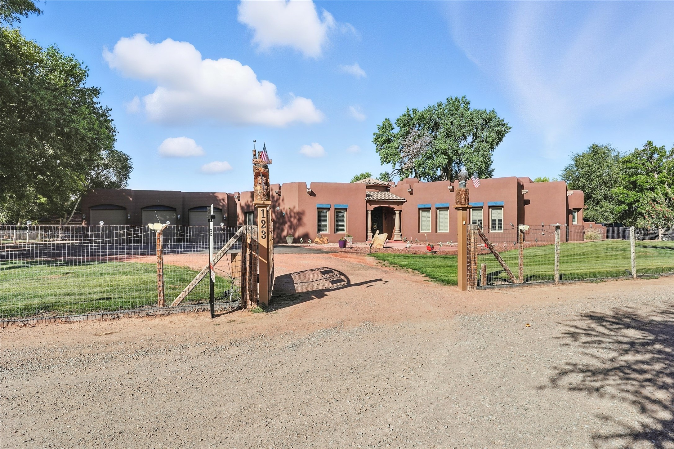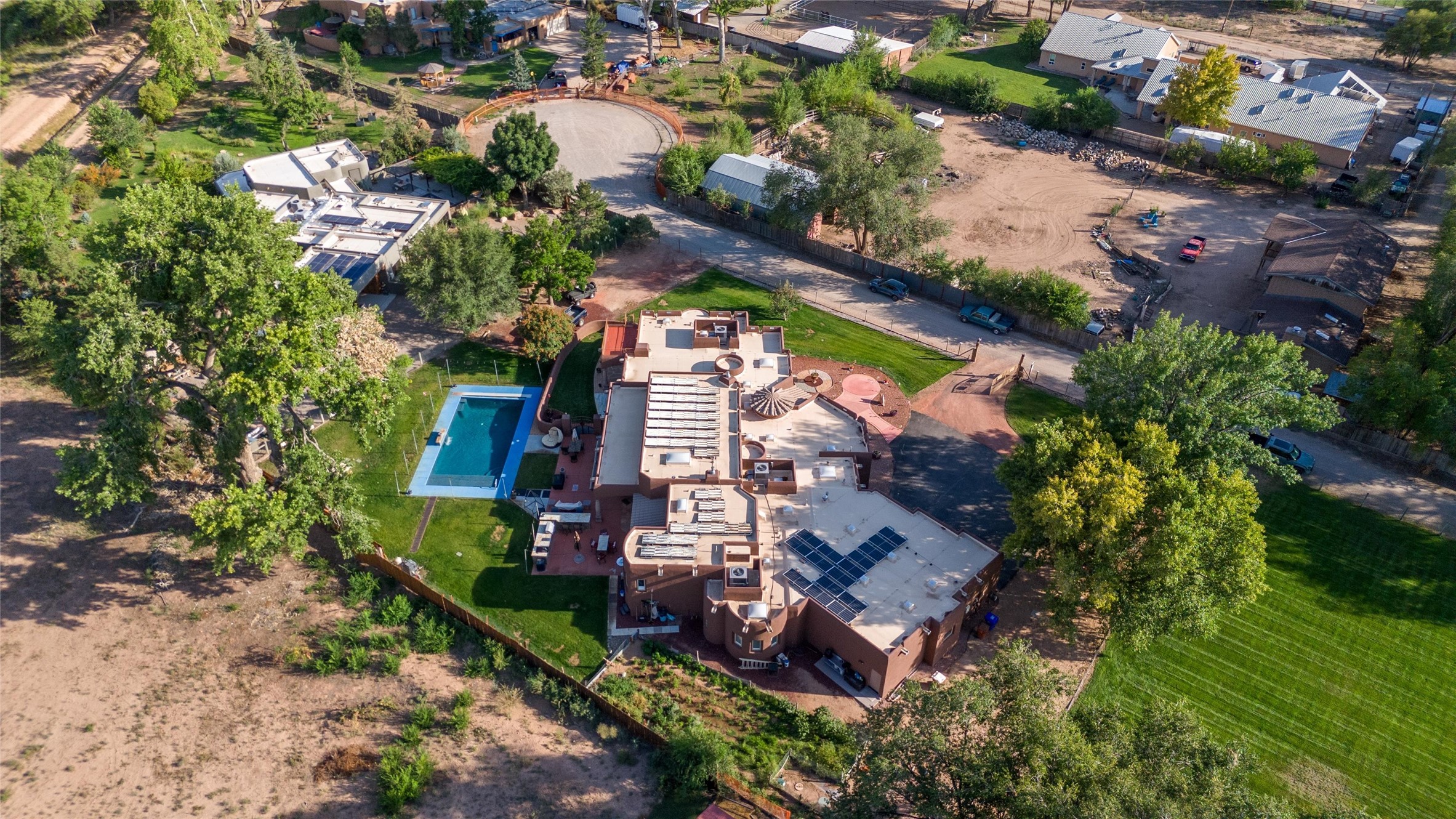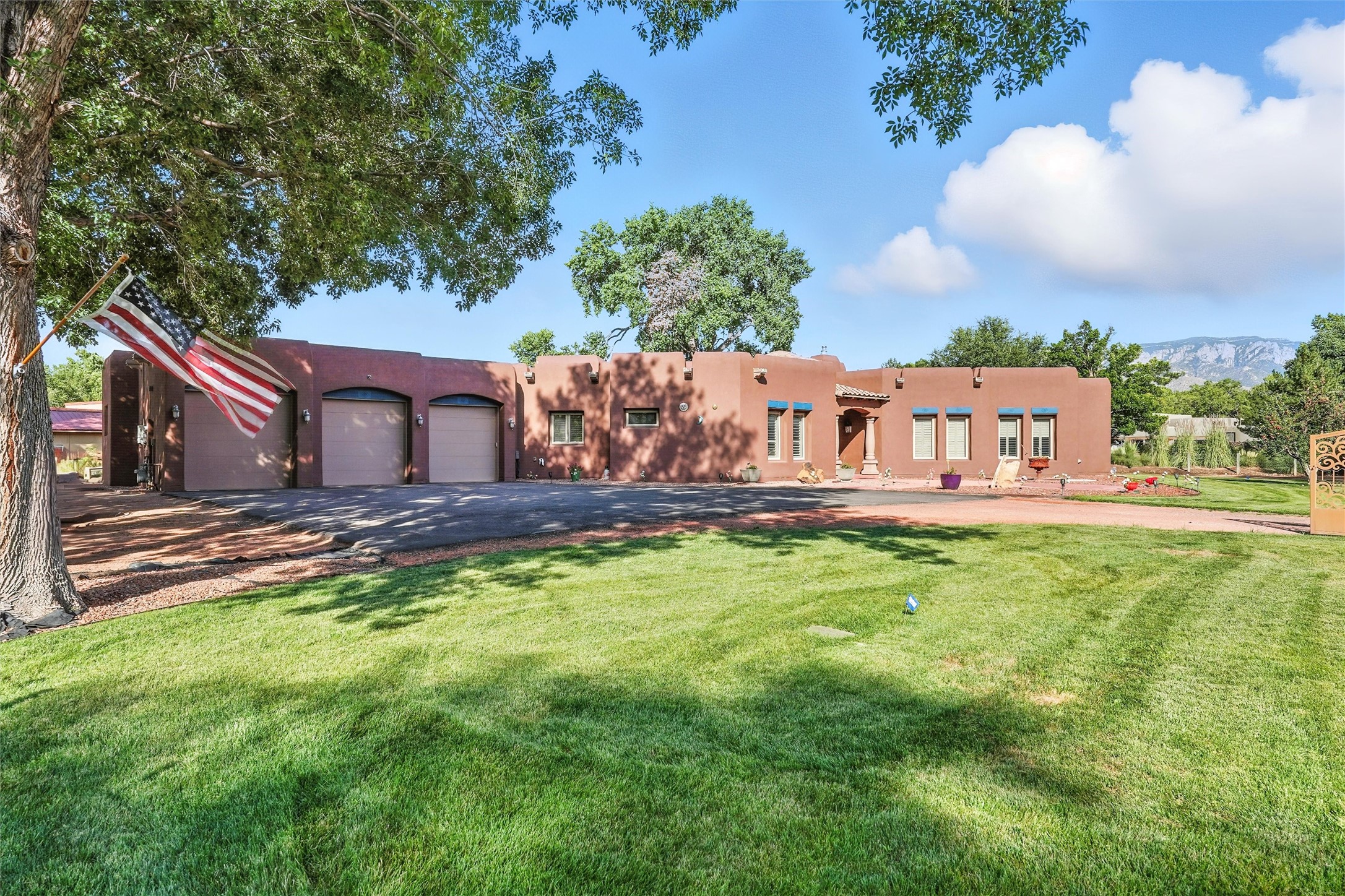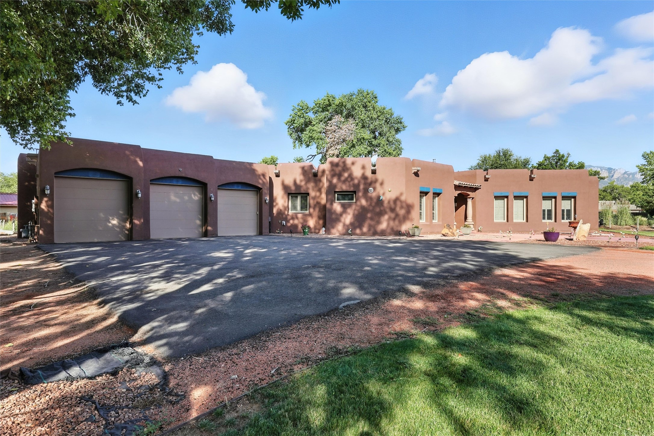 IMAGINE WAKING TO THE BOSQUE'S COTTONWOODS AT YOUR DREAM HOME! Nestled on a quiet cul-de-sac in NM's coolest village with PAID OFF SOLAR, this custom adobe exudes luxury. Sunlight streams thru clerestory windows and beam ceilings, lighting travertine floors in a vast great room with a fireplace. The gourmet kitchen boasts granite counters, prep sink, WOLF six-burner cooktop, oven, micro, and warming drawer--its huge island ideal for gatherings. A separate outdoor kitchen awaits. The master suite features a loft for an office, plus a spa-like bath with steam shower, jetted tub, and double sinks. Four beds + office and 4.5 baths ensure room for all. Pella windows frame deck views; a heated 4-car garage awaits. Dive into the inground pool or relax on an open patio. Seize the day and call!