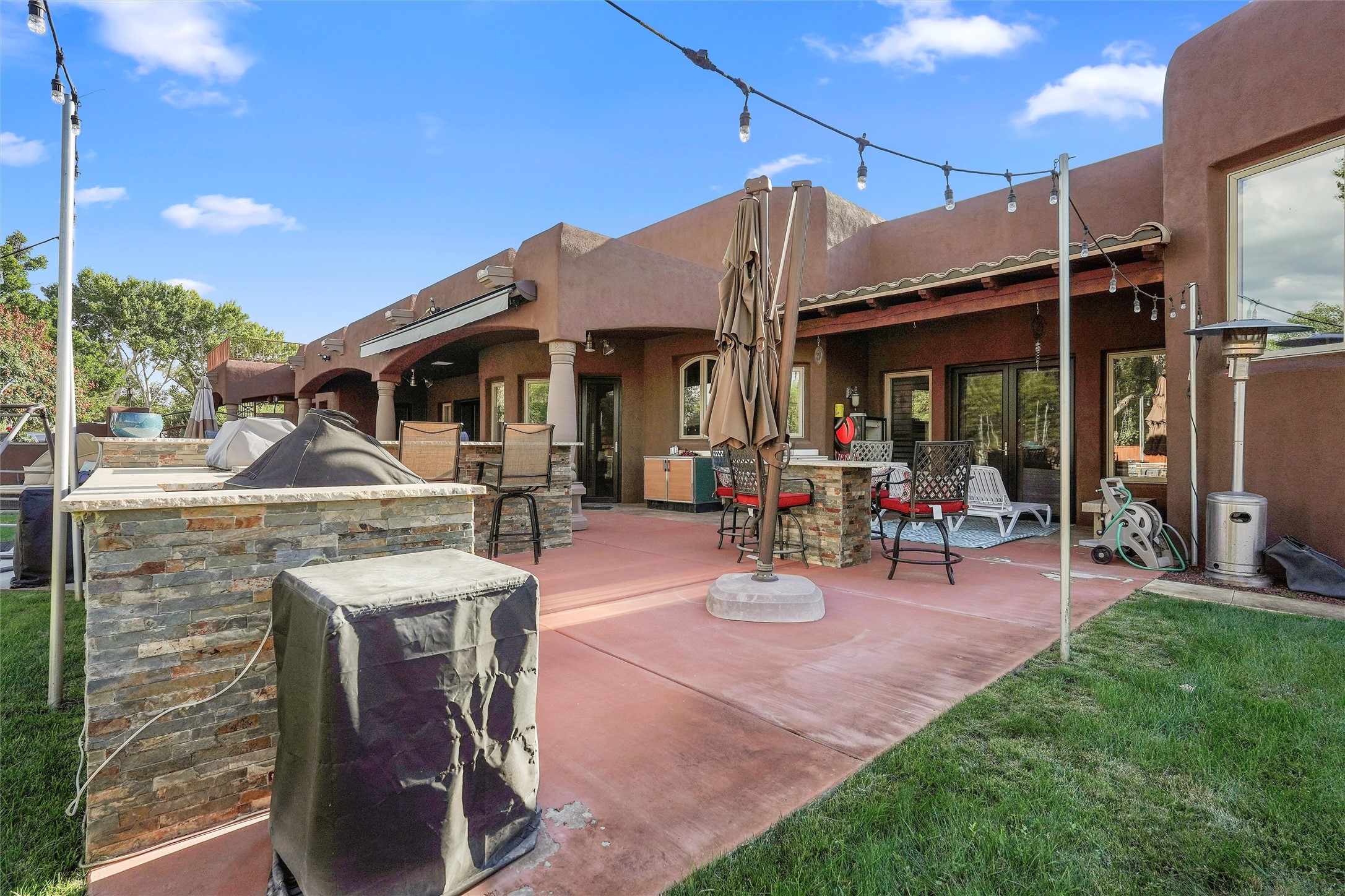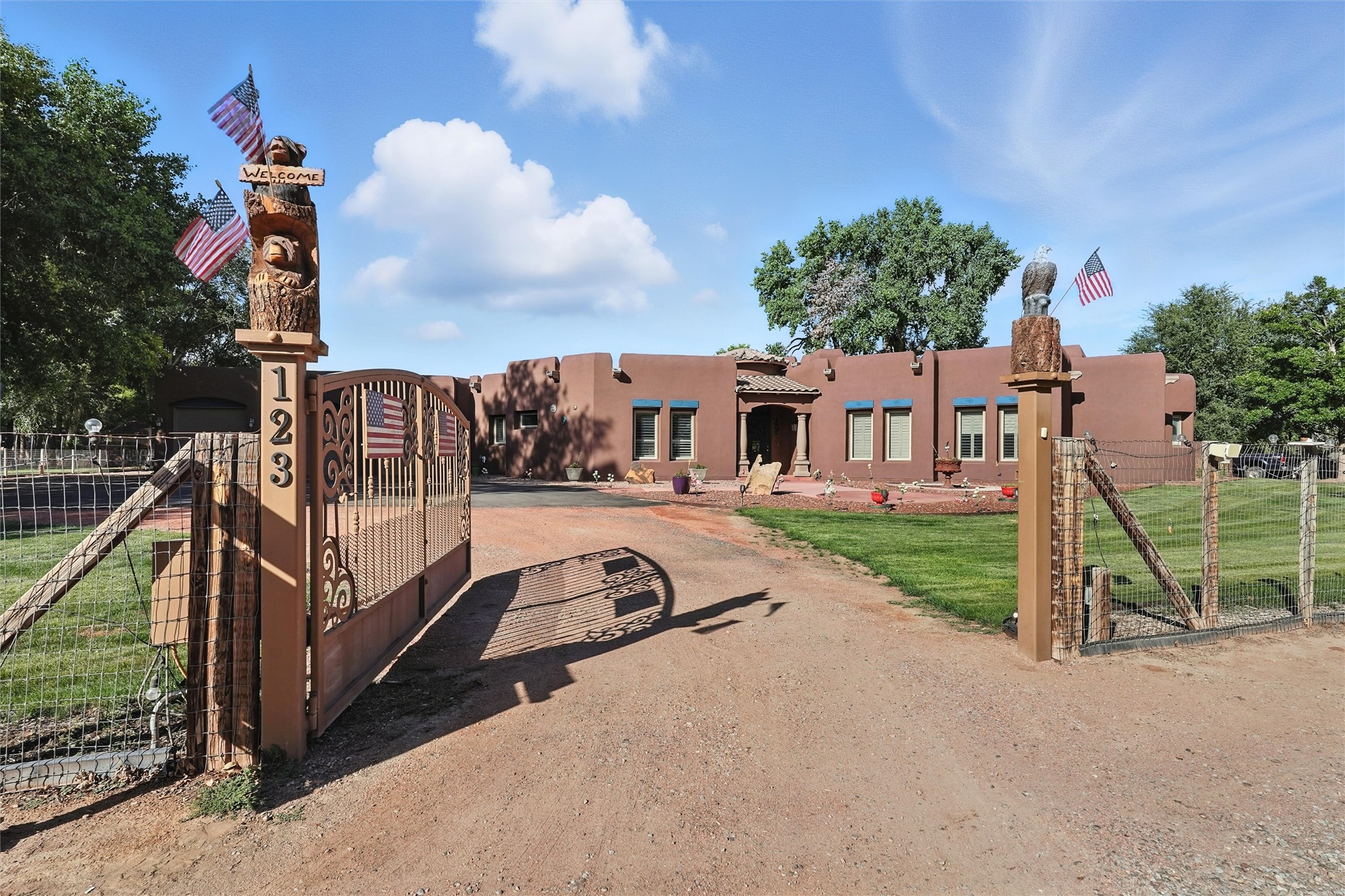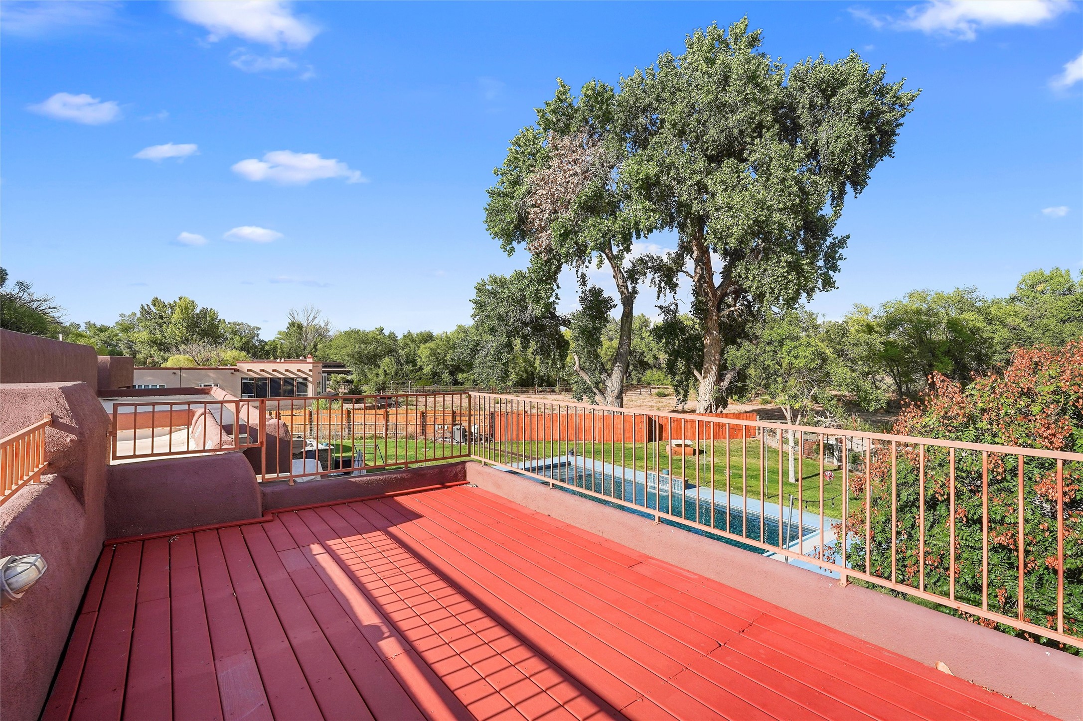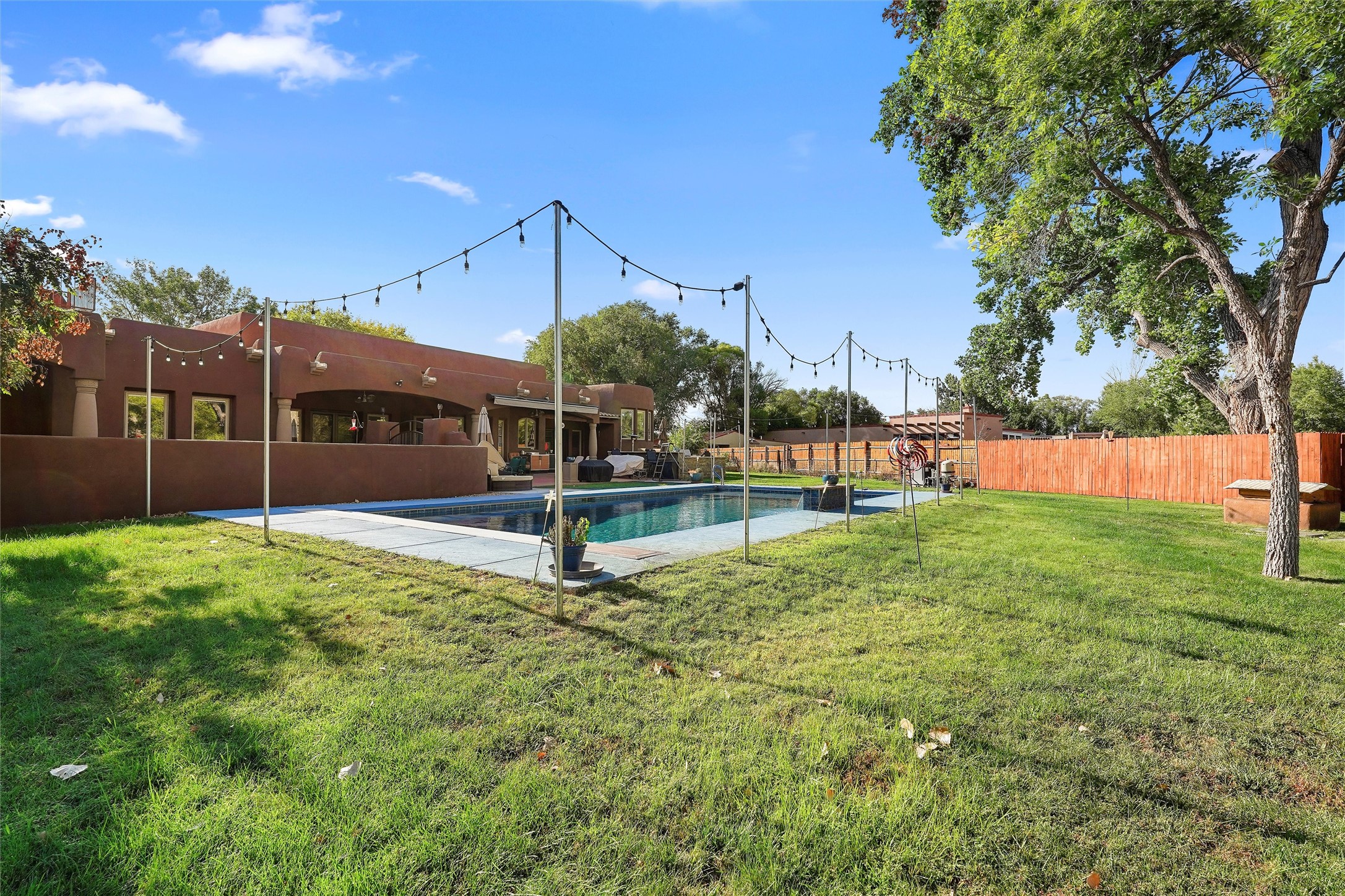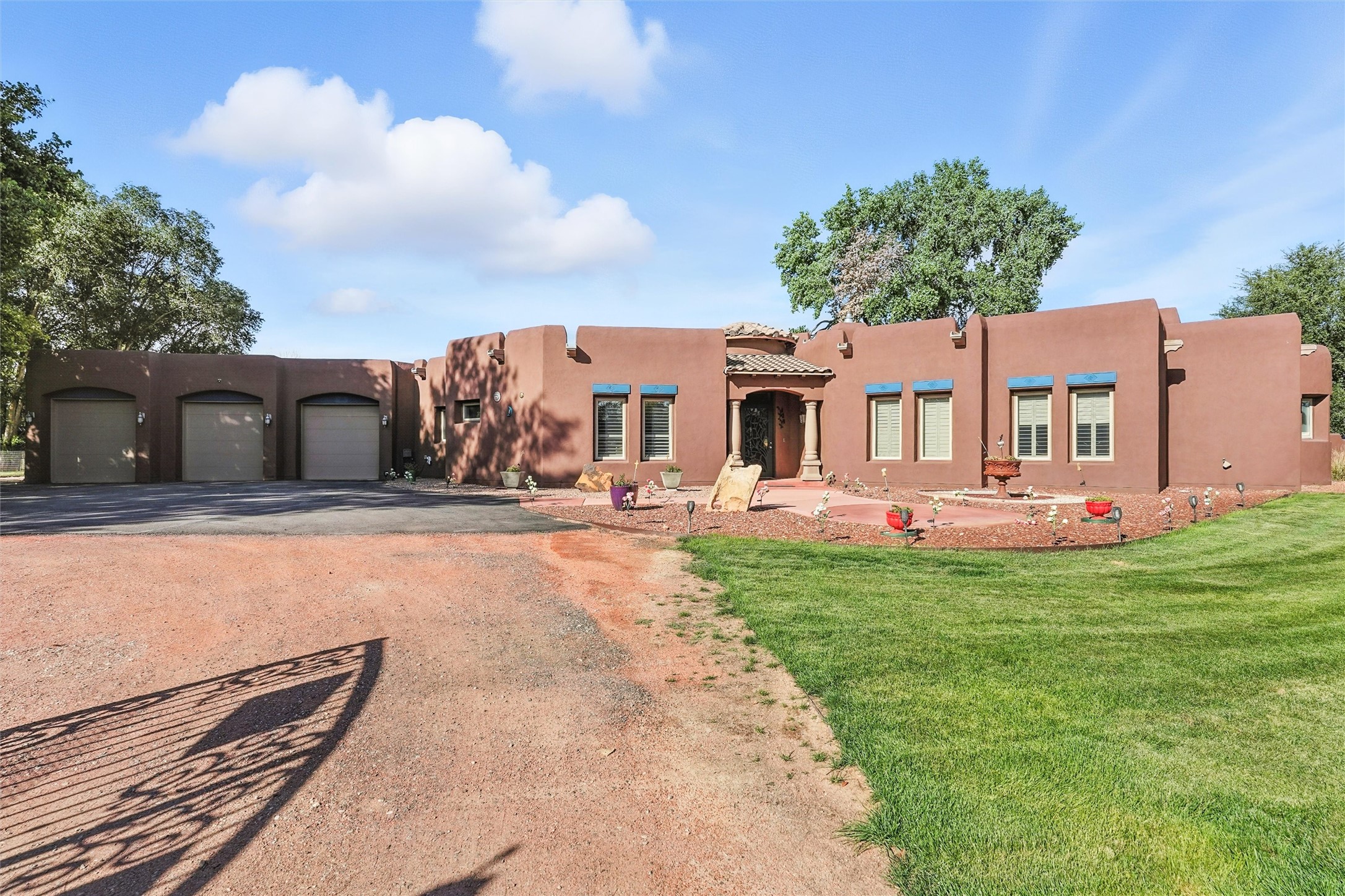 IMAGINE WAKING TO THE BOSQUE'S COTTONWOODS AT YOUR DREAM HOME! Nestled on a quiet cul-de-sac in NM's coolest village with PAID OFF SOLAR, this custom adobe exudes luxury. Sunlight streams thru clerestory windows and beam ceilings, lighting travertine floors in a vast great room with a fireplace. The gourmet kitchen boasts granite counters, prep sink, WOLF six-burner cooktop, oven, micro, and warming drawer--its huge island ideal for gatherings. A separate outdoor kitchen awaits. The master suite features a loft for an office, plus a spa-like bath with steam shower, jetted tub, and double sinks. Four beds + office and 4.5 baths ensure room for all. Pella windows frame deck views; a heated 4-car garage awaits. Dive into the inground pool or relax on an open patio. Seize the day and call!
