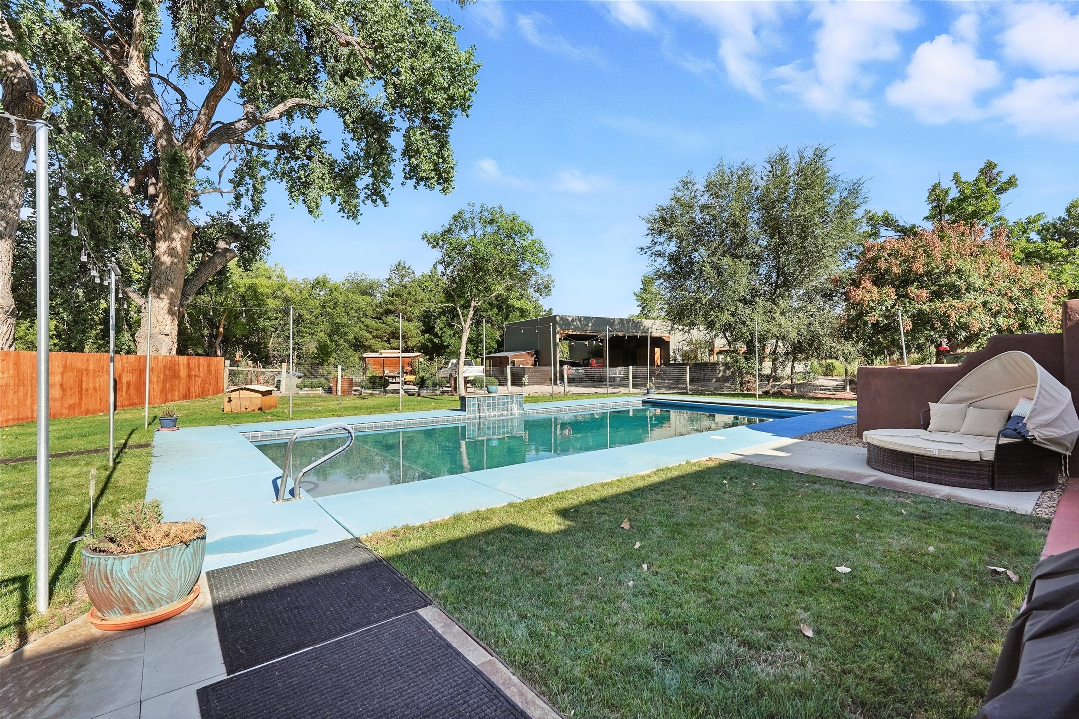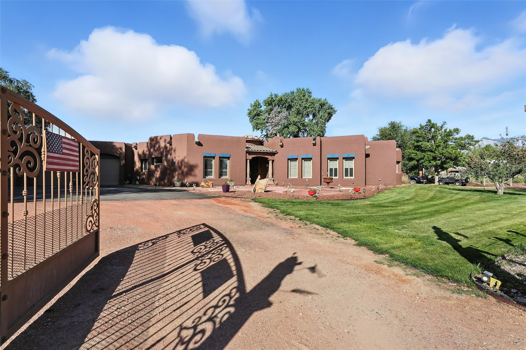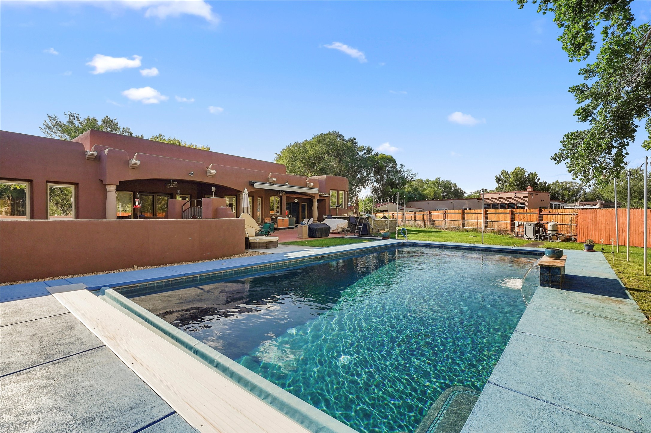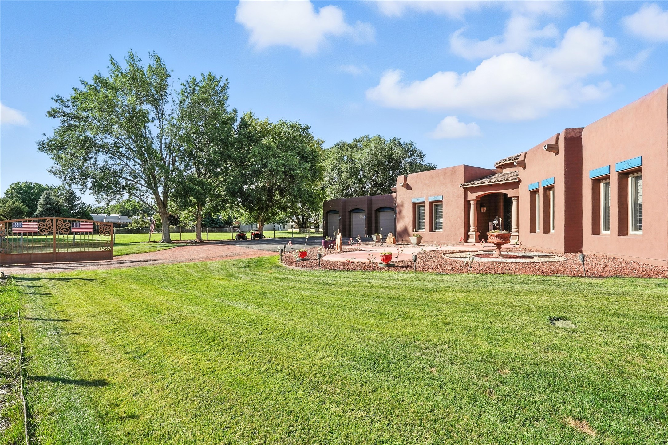 IMAGINE WAKING TO THE BOSQUE'S COTTONWOODS AT YOUR DREAM HOME! Nestled on a quiet cul-de-sac in NM's coolest village with PAID OFF SOLAR, this custom adobe exudes luxury. Sunlight streams thru clerestory windows and beam ceilings, lighting travertine floors in a vast great room with a fireplace. The gourmet kitchen boasts granite counters, prep sink, WOLF six-burner cooktop, oven, micro, and warming drawer--its huge island ideal for gatherings. A separate outdoor kitchen awaits. The master suite features a loft for an office, plus a spa-like bath with steam shower, jetted tub, and double sinks. Four beds + office and 4.5 baths ensure room for all. Pella windows frame deck views; a heated 4-car garage awaits. Dive into the inground pool or relax on an open patio. Seize the day and call!