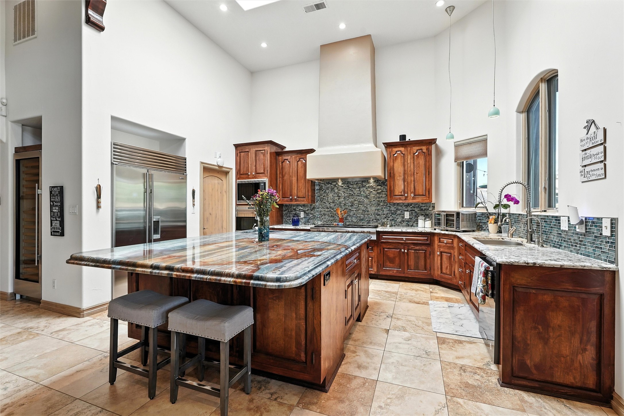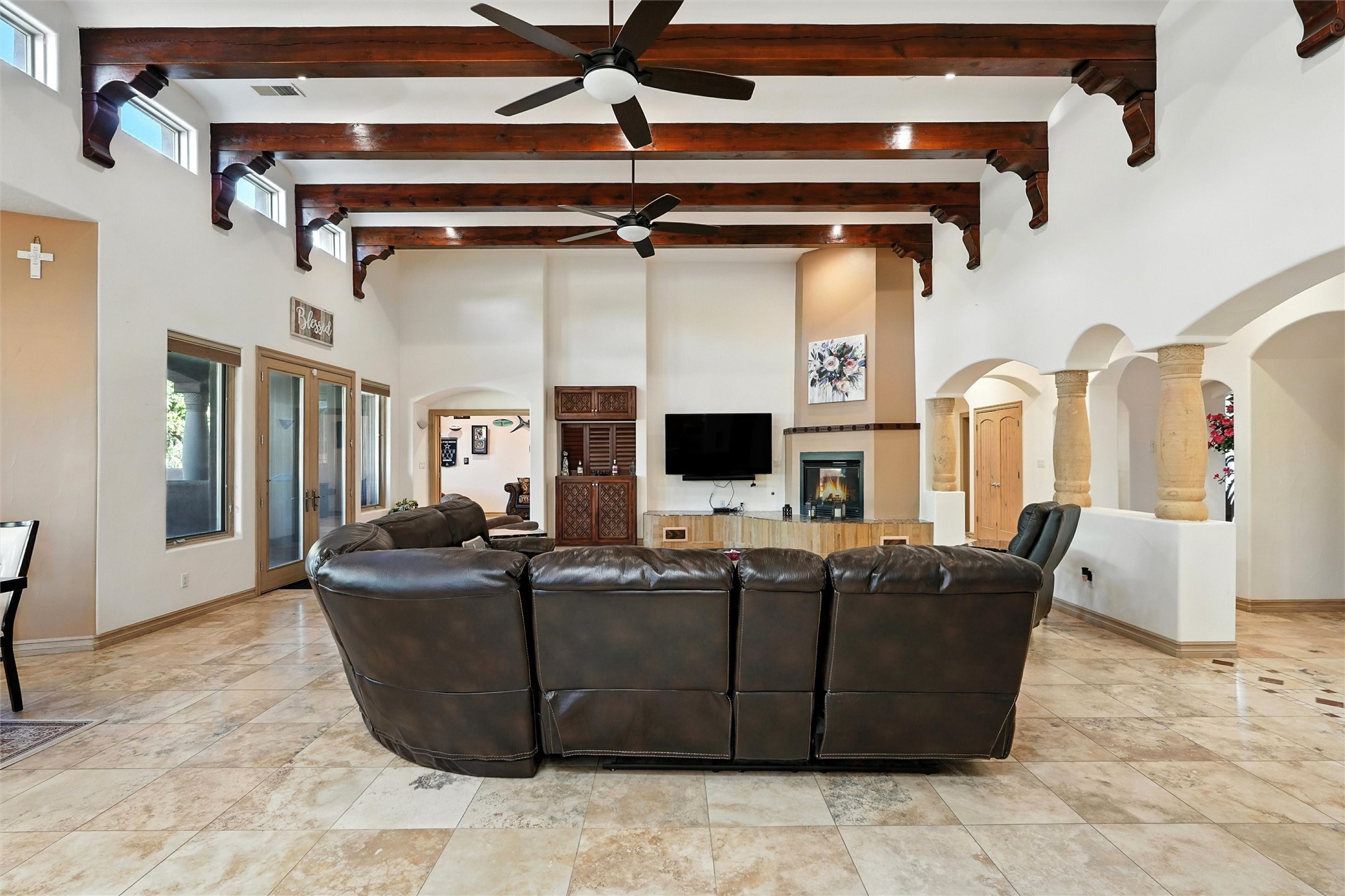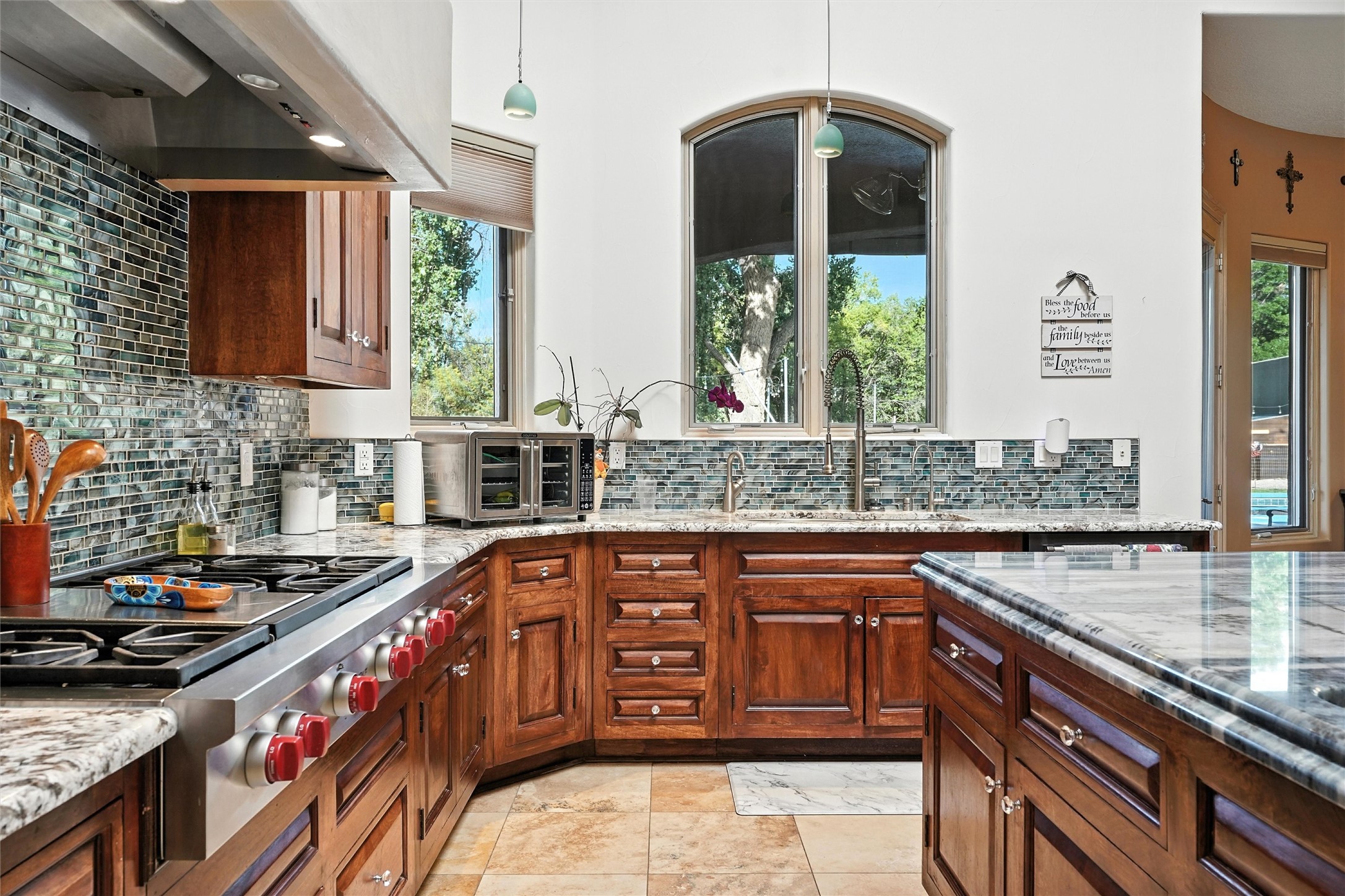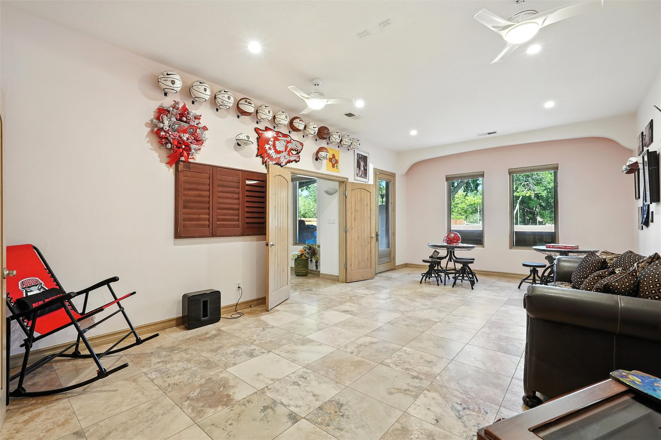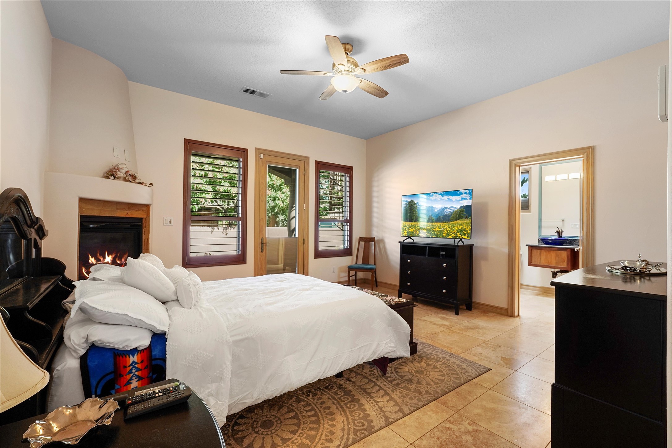 IMAGINE WAKING TO THE BOSQUE'S COTTONWOODS AT YOUR DREAM HOME! Nestled on a quiet cul-de-sac in NM's coolest village with PAID OFF SOLAR, this custom adobe exudes luxury. Sunlight streams thru clerestory windows and beam ceilings, lighting travertine floors in a vast great room with a fireplace. The gourmet kitchen boasts granite counters, prep sink, WOLF six-burner cooktop, oven, micro, and warming drawer--its huge island ideal for gatherings. A separate outdoor kitchen awaits. The master suite features a loft for an office, plus a spa-like bath with steam shower, jetted tub, and double sinks. Four beds + office and 4.5 baths ensure room for all. Pella windows frame deck views; a heated 4-car garage awaits. Dive into the inground pool or relax on an open patio. Seize the day and call!