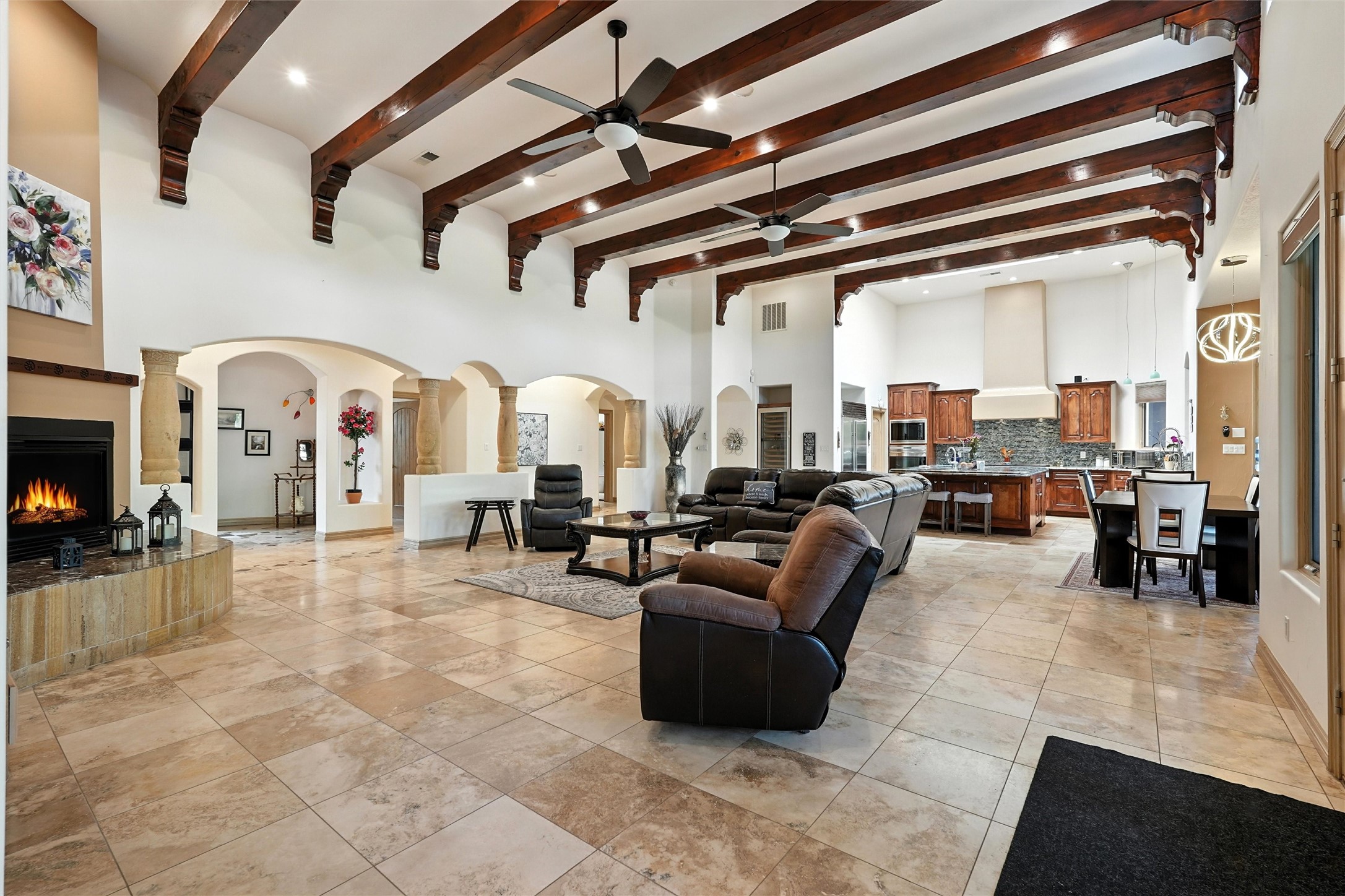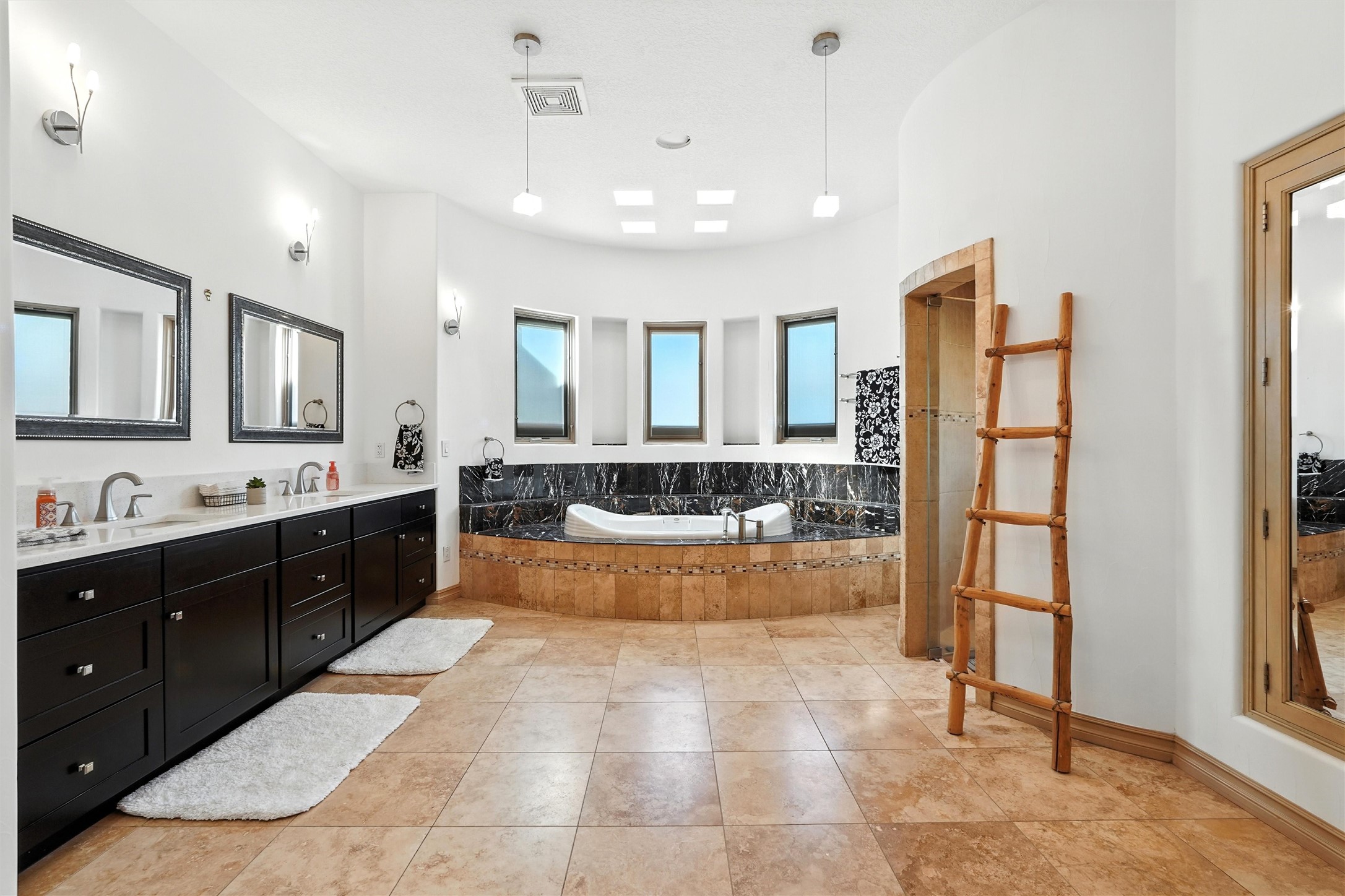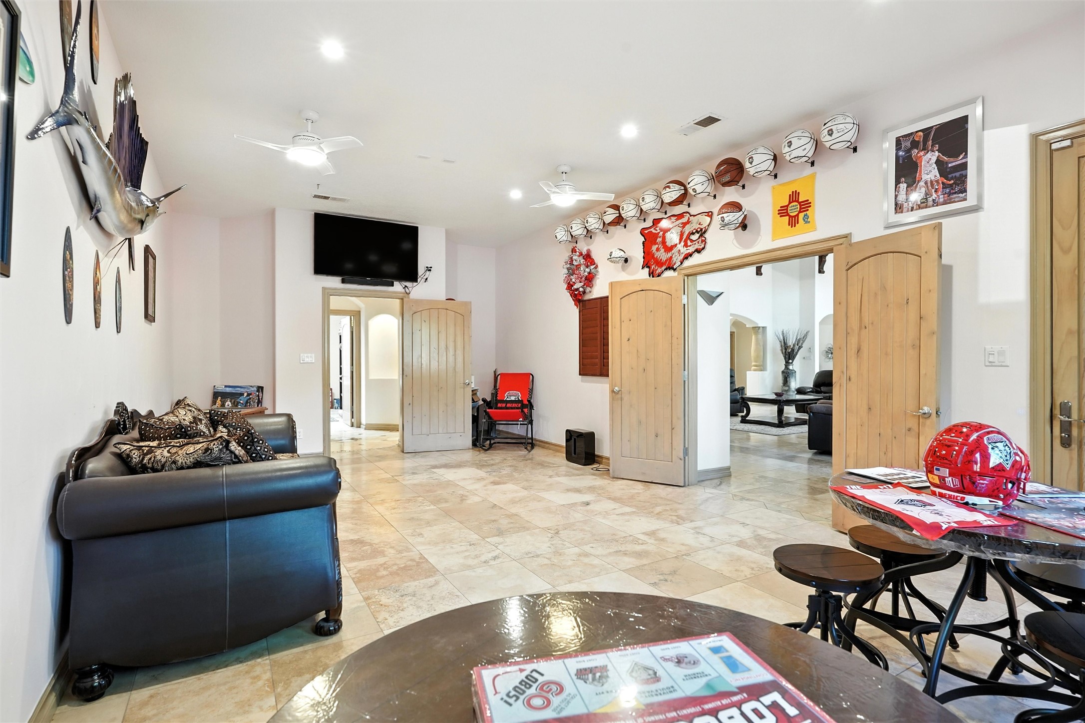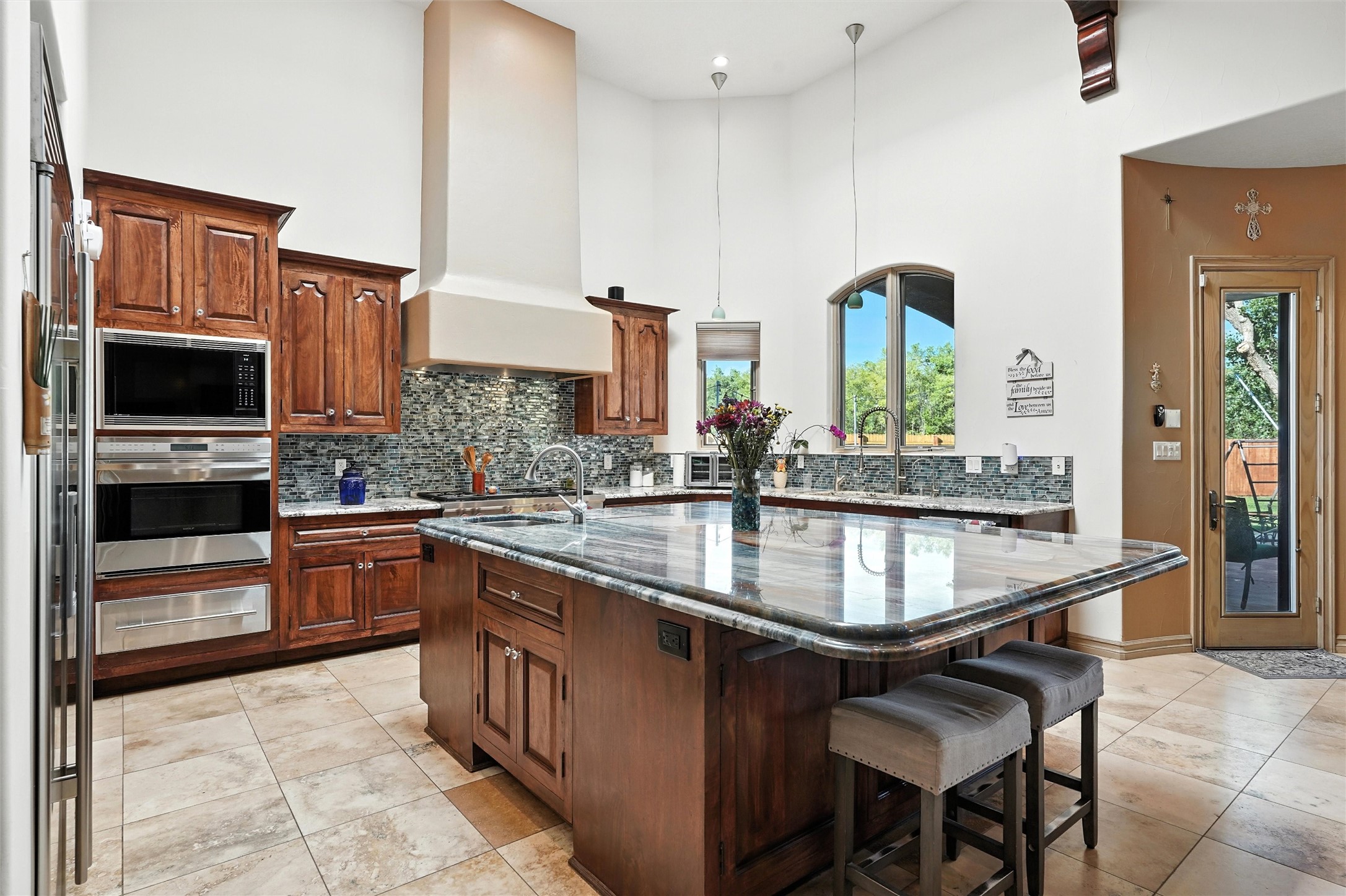 IMAGINE WAKING TO THE BOSQUE'S COTTONWOODS AT YOUR DREAM HOME! Nestled on a quiet cul-de-sac in NM's coolest village with PAID OFF SOLAR, this custom adobe exudes luxury. Sunlight streams thru clerestory windows and beam ceilings, lighting travertine floors in a vast great room with a fireplace. The gourmet kitchen boasts granite counters, prep sink, WOLF six-burner cooktop, oven, micro, and warming drawer--its huge island ideal for gatherings. A separate outdoor kitchen awaits. The master suite features a loft for an office, plus a spa-like bath with steam shower, jetted tub, and double sinks. Four beds + office and 4.5 baths ensure room for all. Pella windows frame deck views; a heated 4-car garage awaits. Dive into the inground pool or relax on an open patio. Seize the day and call!
