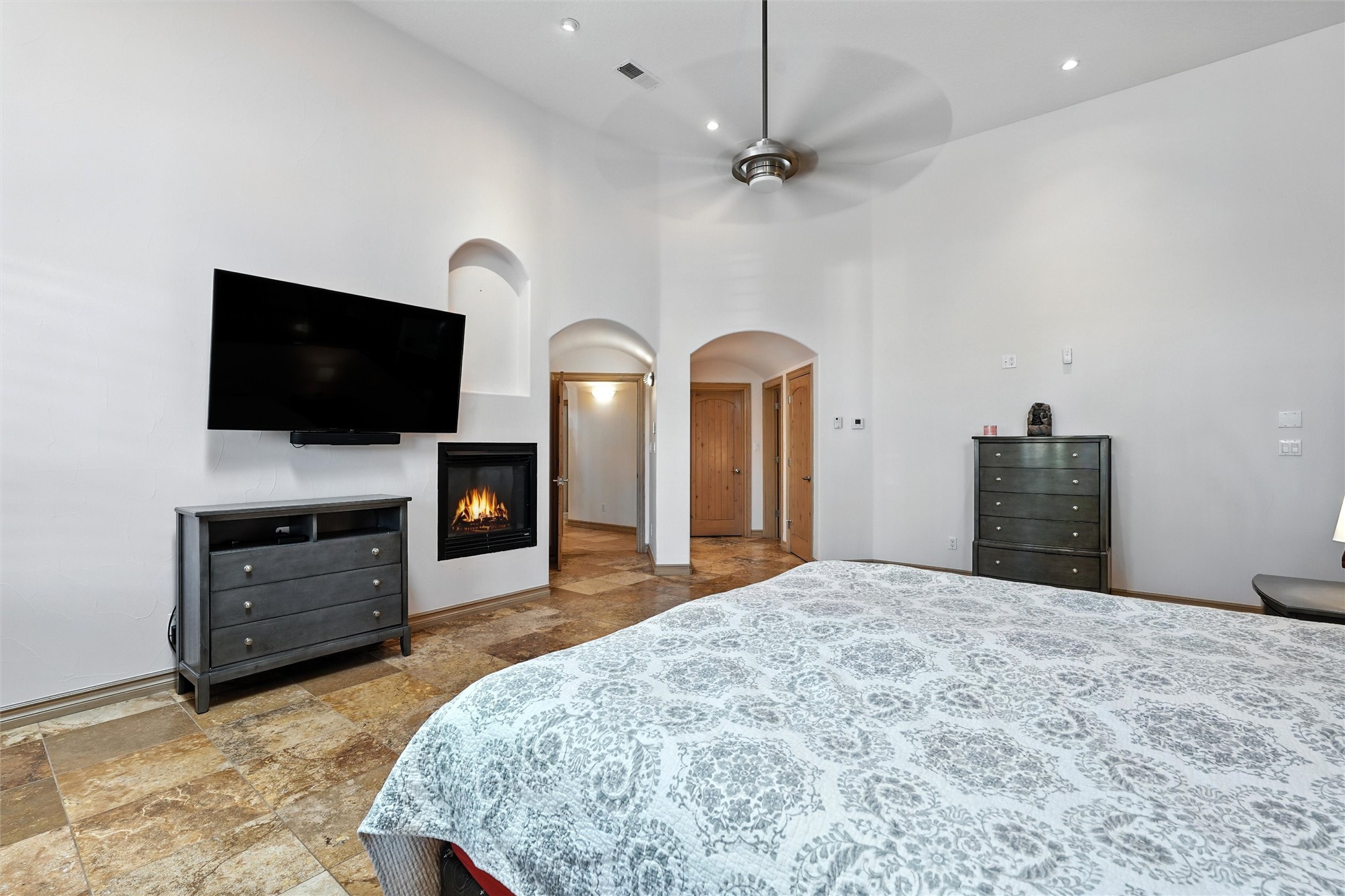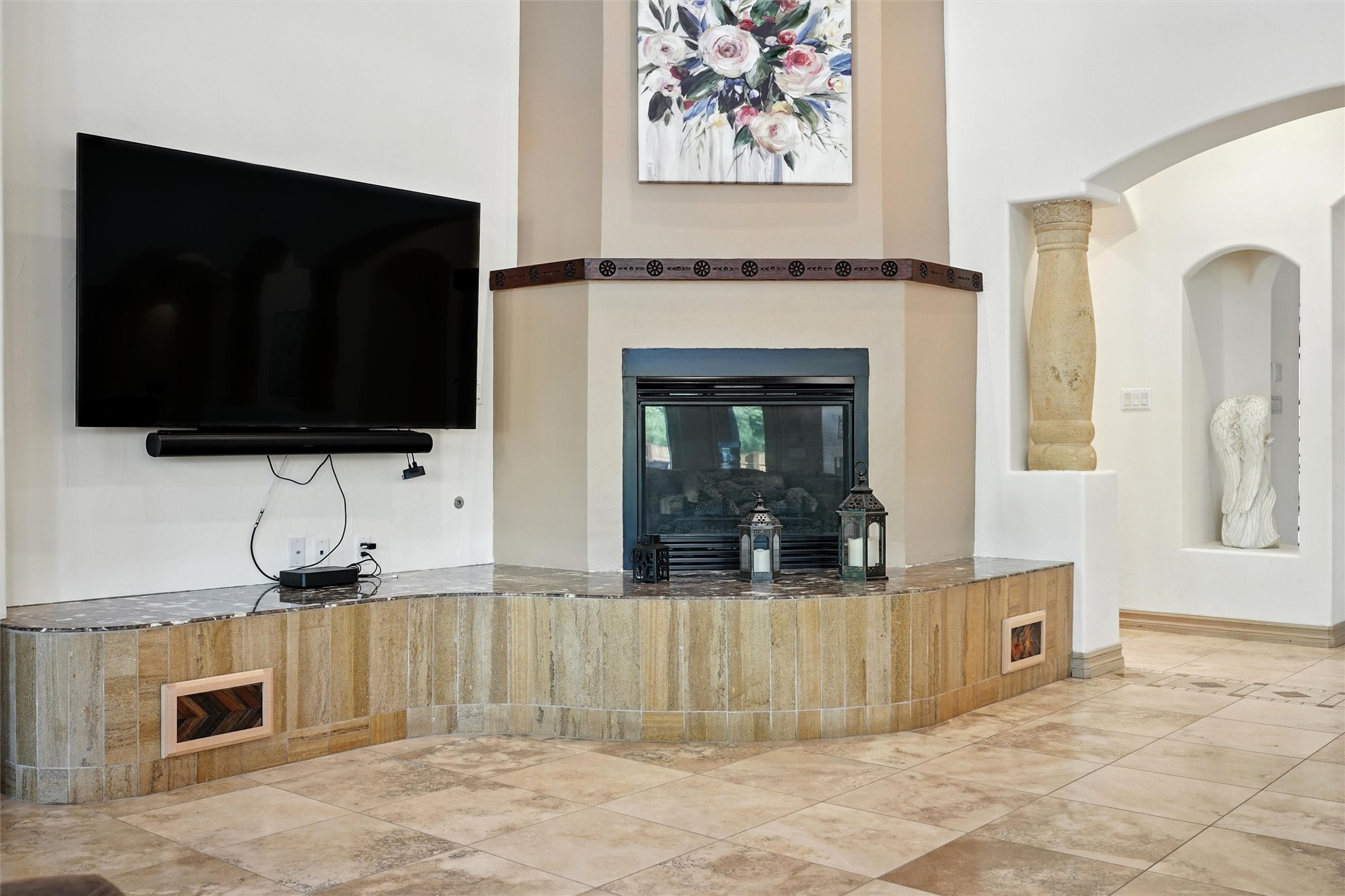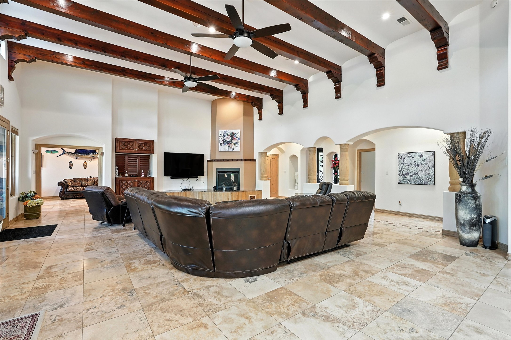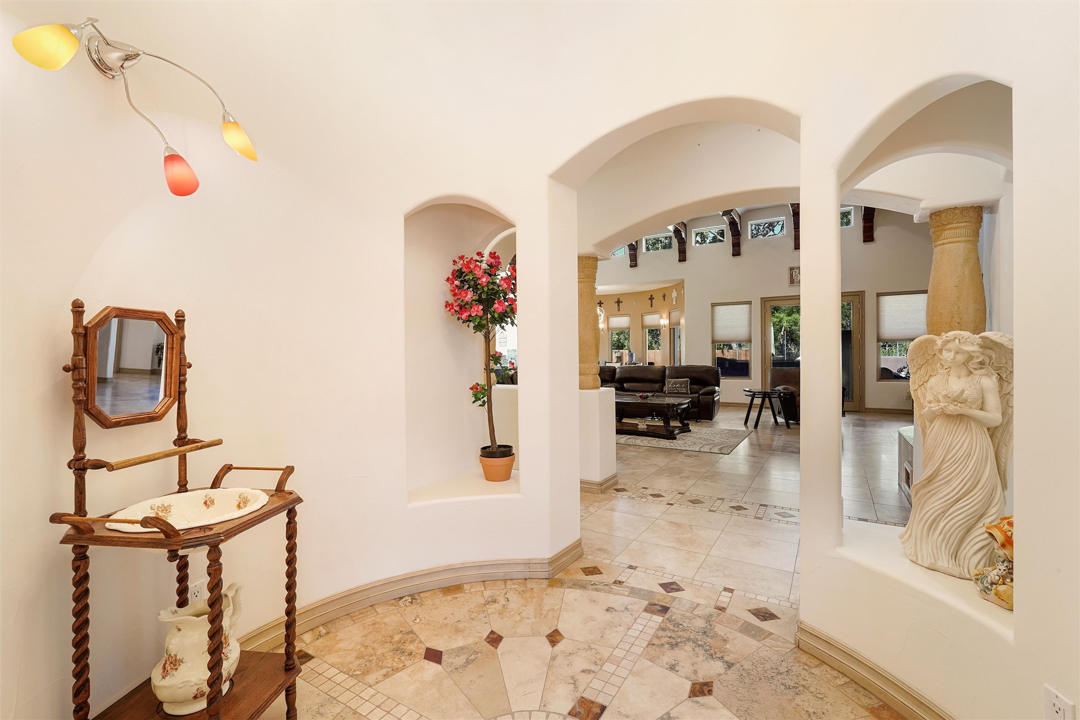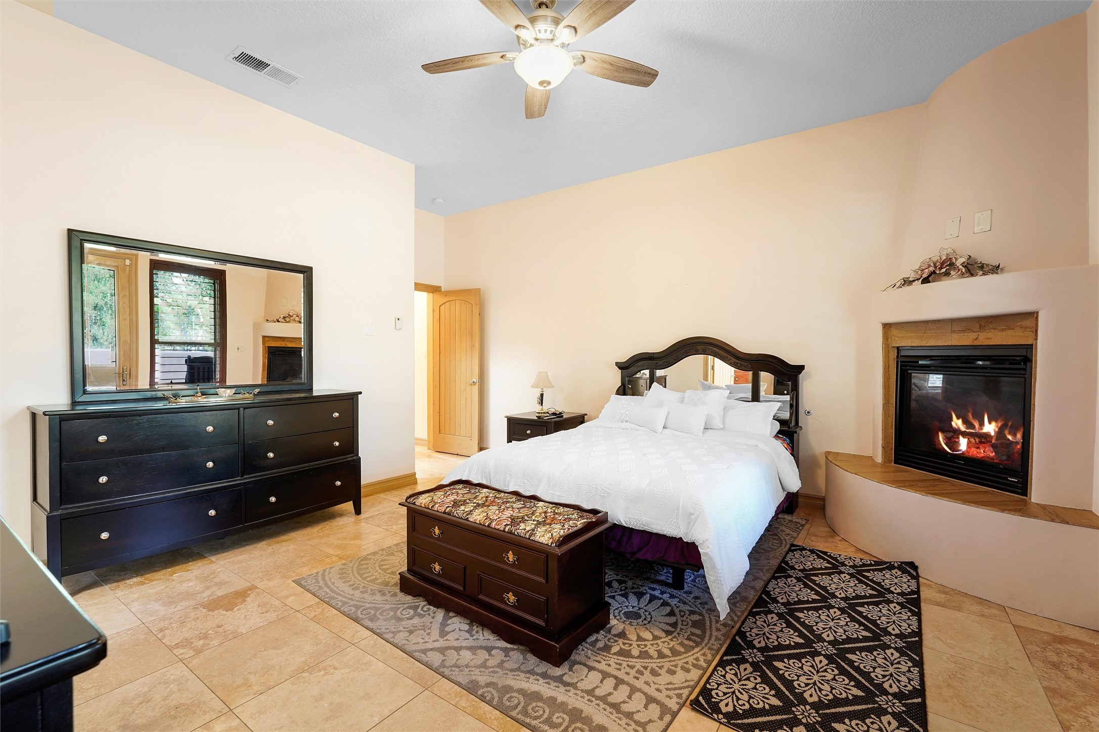 IMAGINE WAKING TO THE BOSQUE'S COTTONWOODS AT YOUR DREAM HOME! Nestled on a quiet cul-de-sac in NM's coolest village with PAID OFF SOLAR, this custom adobe exudes luxury. Sunlight streams thru clerestory windows and beam ceilings, lighting travertine floors in a vast great room with a fireplace. The gourmet kitchen boasts granite counters, prep sink, WOLF six-burner cooktop, oven, micro, and warming drawer--its huge island ideal for gatherings. A separate outdoor kitchen awaits. The master suite features a loft for an office, plus a spa-like bath with steam shower, jetted tub, and double sinks. Four beds + office and 4.5 baths ensure room for all. Pella windows frame deck views; a heated 4-car garage awaits. Dive into the inground pool or relax on an open patio. Seize the day and call!