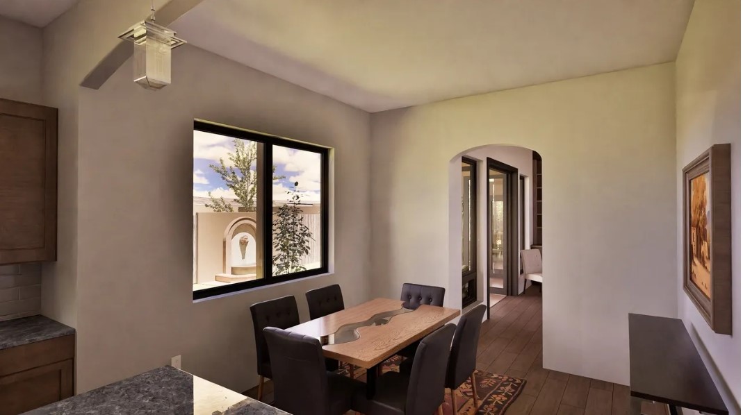 New custom home 5 minutes from the plaza! The latest quality build from award winning green builder Arch Sproul is under construction with an estimated completion date of April 2026. A stones throw from the Santa Fe river trail, this new, energy efficient home has much to offer. Finishes include timeless Santa Fe accents like wood ceiling areas, solid wood doors, wood window sills, built in shelving in the living room, tile flooring and a gourmet kitchen with hardwood cabinetry. Modern amenities like a cozy gas fireplace and sharp clean lines creates a perfect fusion of classic Santa Fe and contemporary style that fits any lifestyle. Please visit https://virginiandesigns.com for more information.