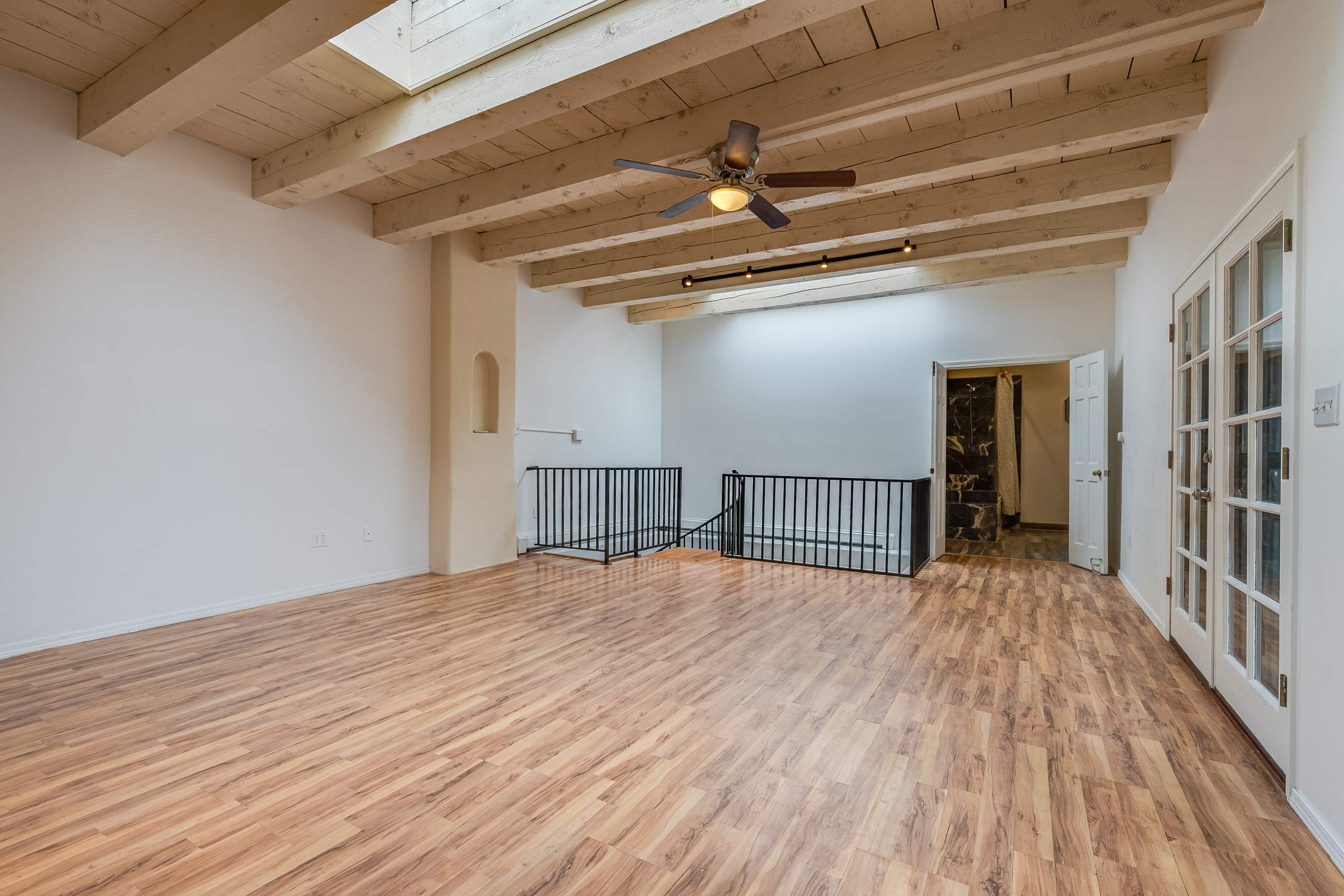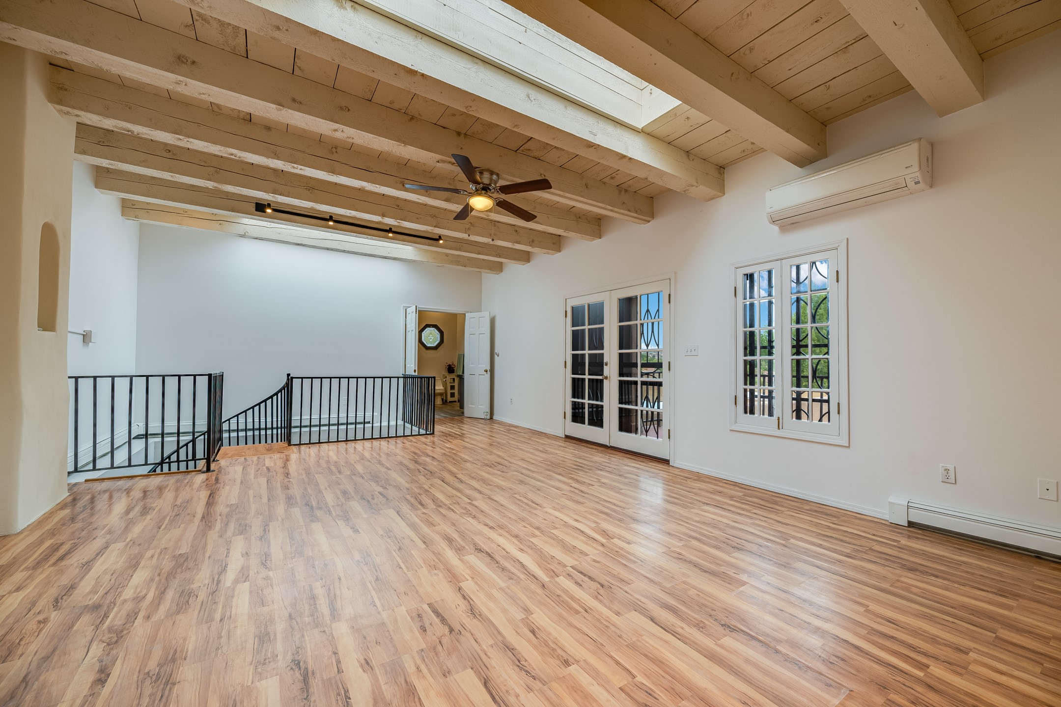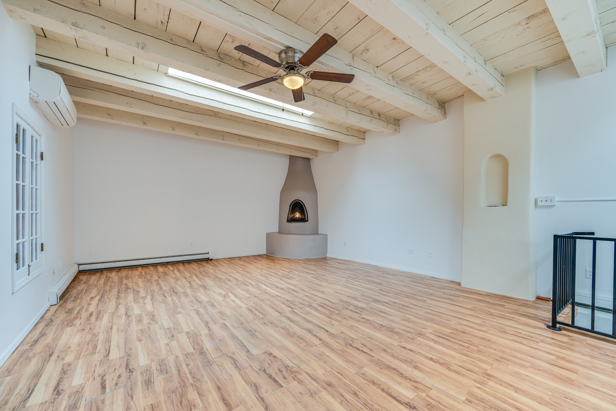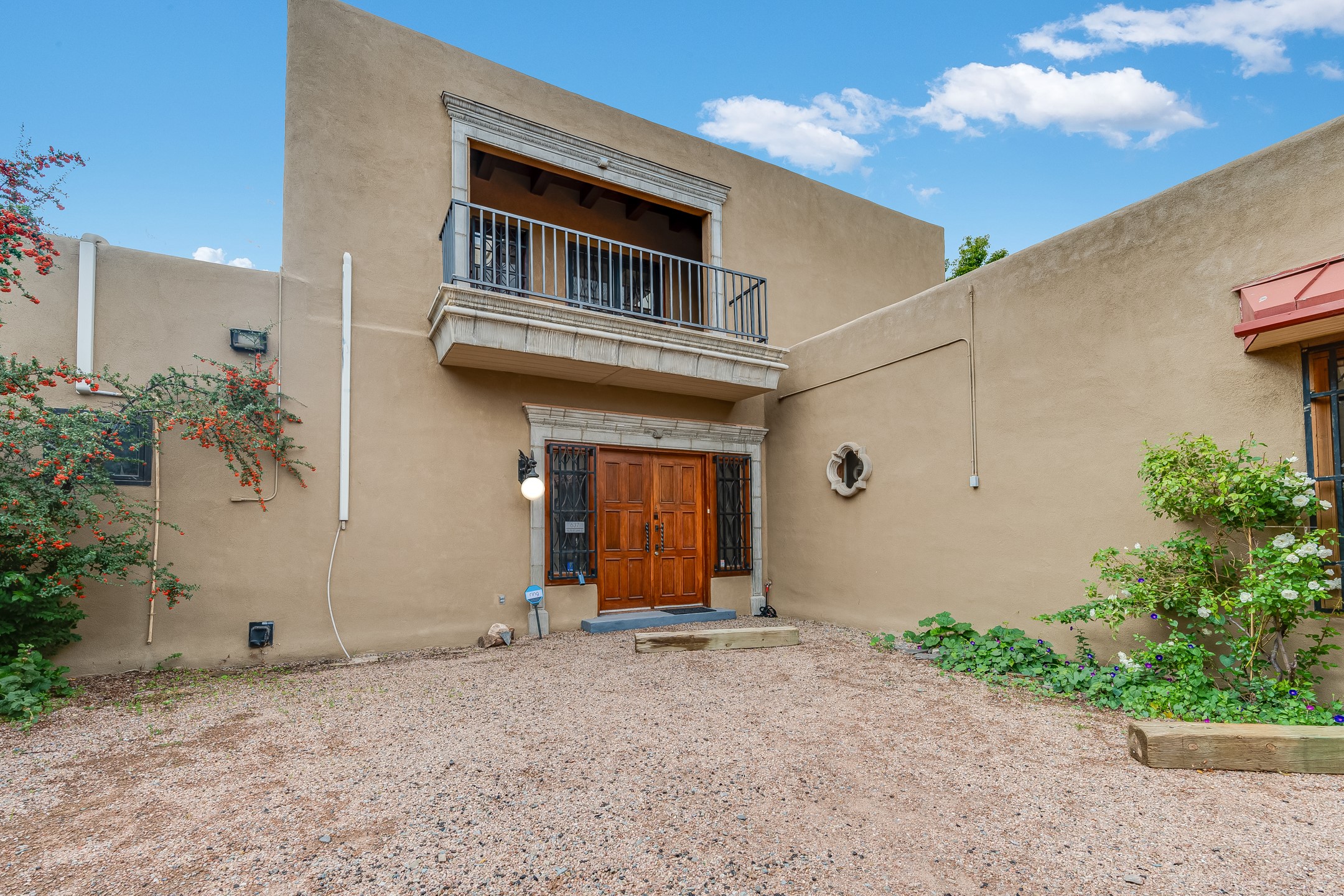This Guadalupe District home is in a prime location along the Santa Fe River and the River Trail System! A quick 10 minute walk puts you at the Santa Fe Plaza or The Santa Fe Farmer's Market and the Railyard District! Imagine just how close you will be to all that the vibrant uptown Santa Fe scene has to offer! World class restaurants, galleries, and stellar museums are within minutes by foot or car! This special property is within a Gated Enclave of only 4 units and is quiet and cozy. The kitchen has been updated and offers abundant storage and an open and inviting floor plan great for entertaining. The upstairs primary suite and spacious balcony is the perfect private retreat to enjoy a view of the Sangre de Cristo Mountains. This home is ideal as a primary residence or second home.