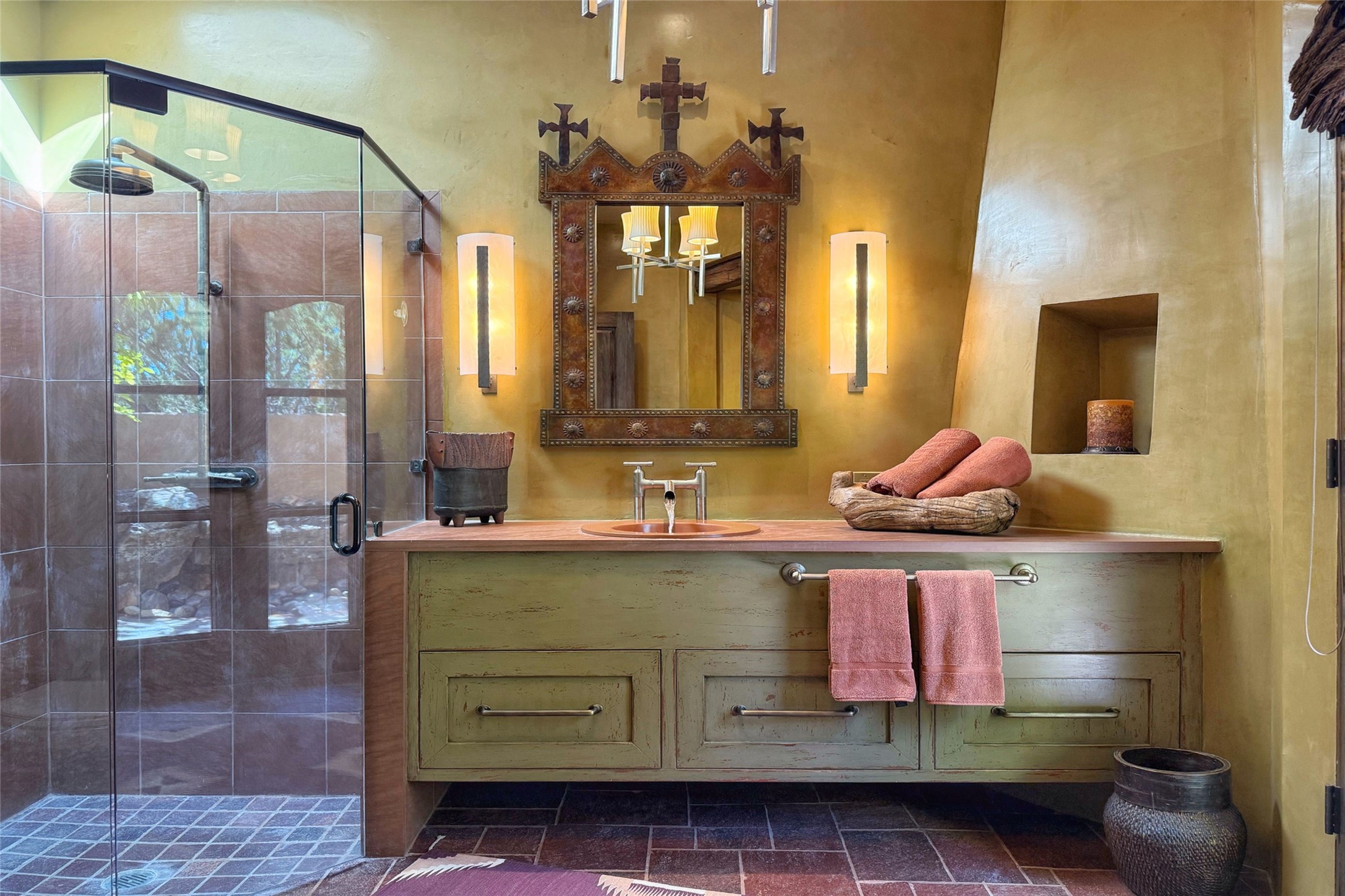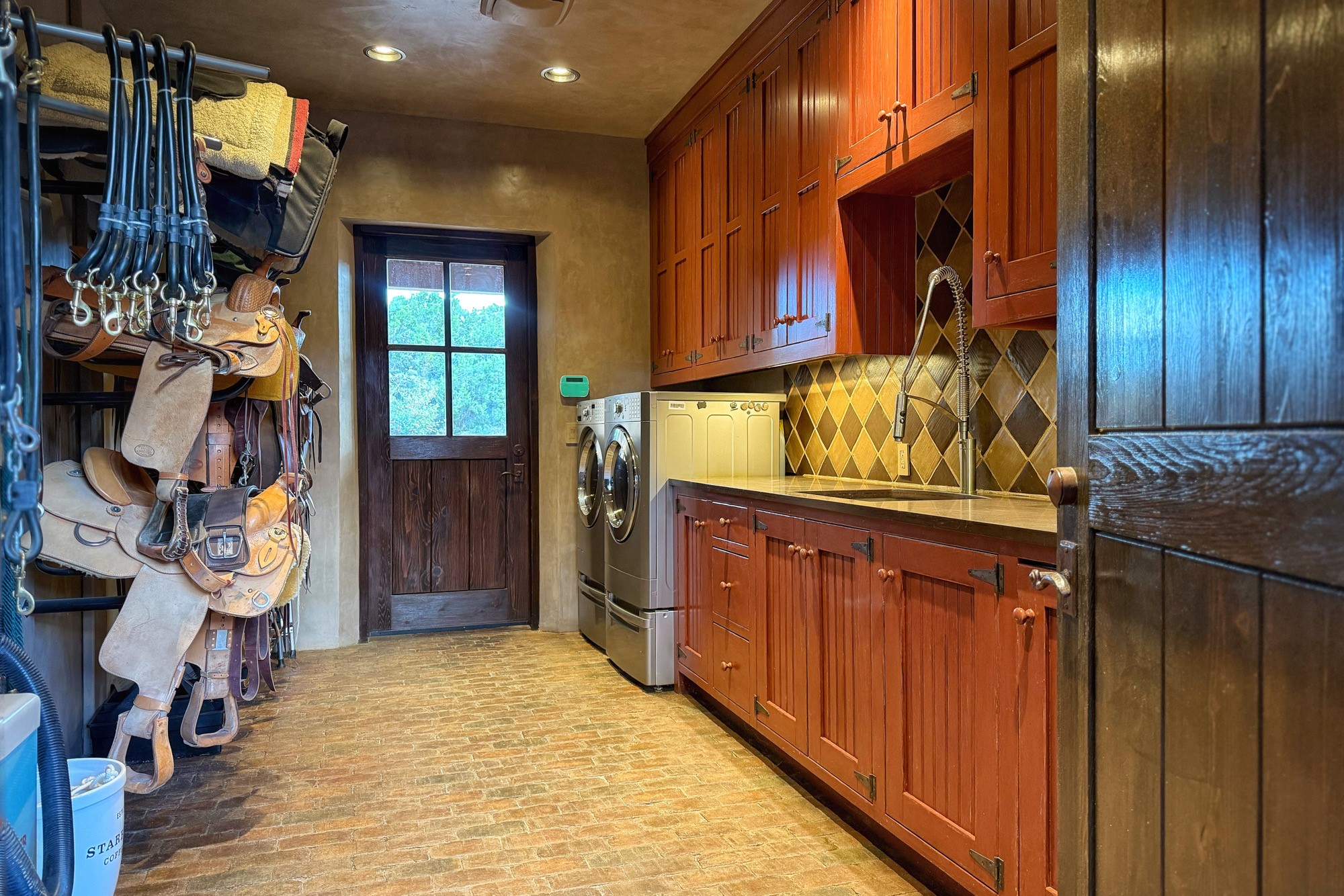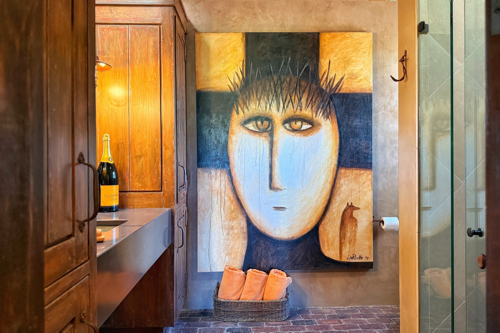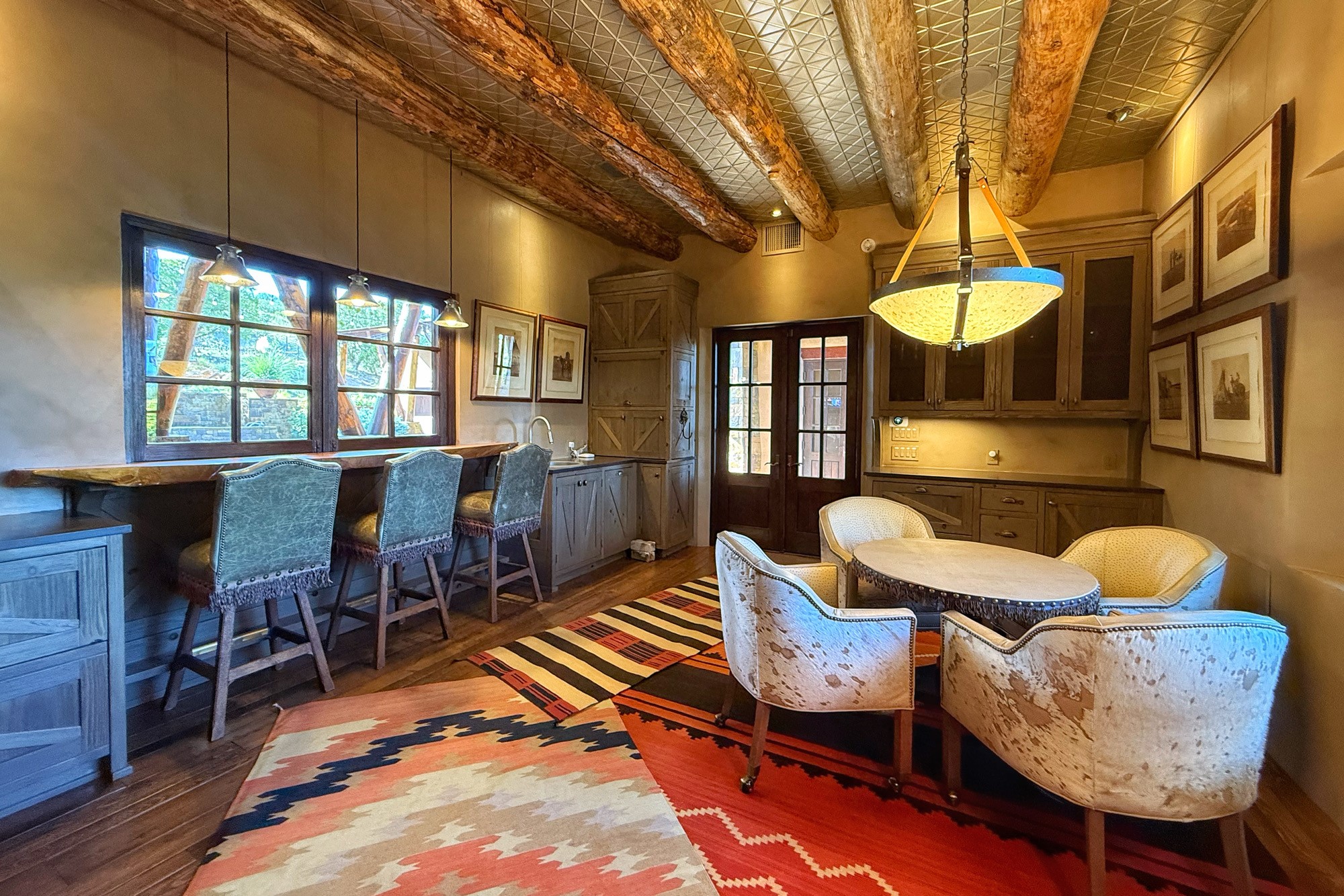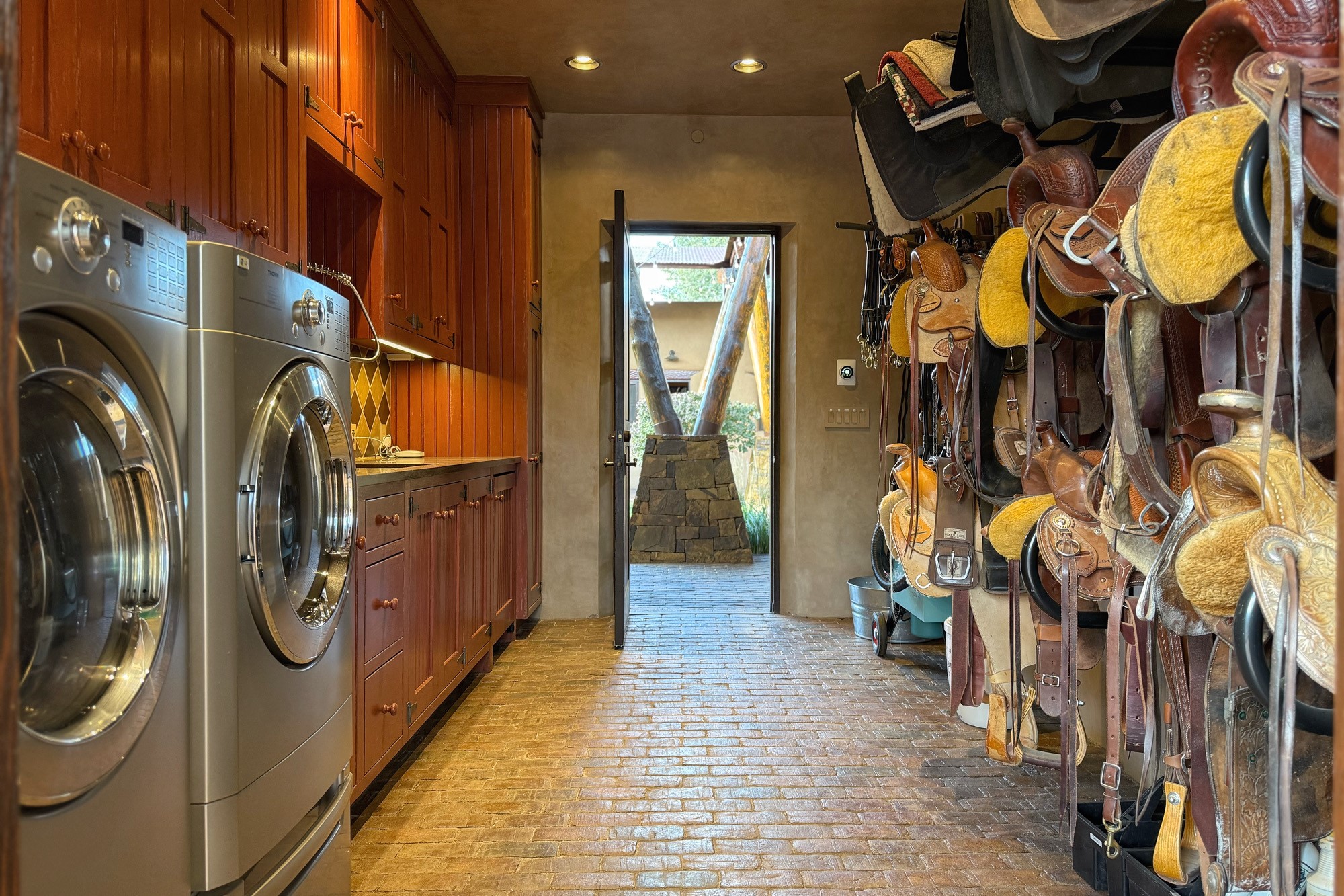 Welcome to 'The Dusty Boot', a 25.3-acre sanctuary where the spirit of the Old West meets the artistry of modern living. Set on a buildable ridgetop with sweeping 360 views of the Sangre de Cristo and Jemez Mountains, this 5,186 sqft estate combines a luxury residence, guest compound, and world-class equestrian facility within the gated community of La Tierra Nueva, minutes from Santa Fe and The Club at Las Campanas. Designed by Steven Samuelson Studio and built in 2007, the Pueblo-revival residence (2 BD/3BA) radiates rustic sophistication: a grand great room centered on a stone-and-copper fireplace beneath soaring ceilings, an infinity patio that seems to float above the desert horizon, and an outdoor chef's kitchen anchored by a wood-fired pizza oven. Your guests will enjoy comfort and hospitality in a cozy standalone guest house (1BD/2BA) just steps from the main living area. The equestrian compound (1 BD/2BA), envisioned by Pedro Marquez, extends far beyond function. Four oversized heated stalls with turnouts, automatic waterers, tack room, horse wash, arena, round pen, and horse walker support the finest in equine care. Cantilevered vigas and lush courtyards with a sala, double water-trough waterfall, and firepit create a striking architectural setting for entertaining. At the heart of the stable complex lies a spacious studio and office suite, climate-controlled, connected, and light-filled space ideal for various endeavors: a fully integrated, executive-level remote office, professional art studio, music recording and production studio, or a serene environment for yoga, pilates, tai chi, or fitness. This flexible environment bridges creativity and productivity, all within the serenity of Santa Fe's high desert. Completing the lifestyle and integrated with the exquisite landscaping are orchards, gardens, water features, and a hen house. The 'Dusty Boot' is more than a property, it is a private world where work, creativity, and leisure thrive in harmony.