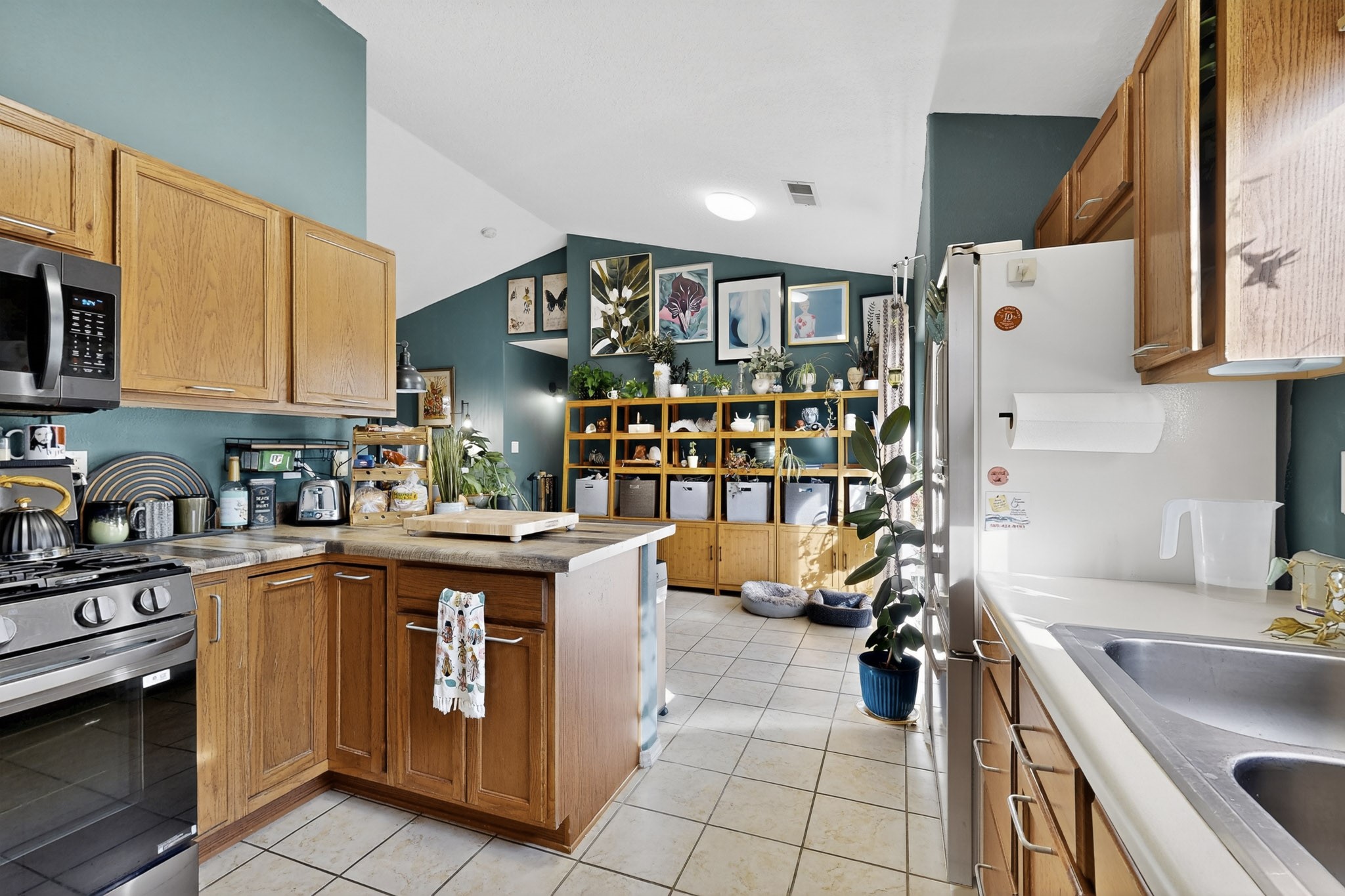 Come see this fantastic 3 bedroom, 2 bathroom gen! It's move-in ready and close to everything!This well-maintained, approximately 1,200 square foot, single-level home offers 3 bedrooms and 2 full bathrooms, and an open floorplan that features vaulted ceilings, natural light, and a beautiful gas kiva fireplace! With an enclosed front porch and patio doors that extend from the bright kitchen to the fully fenced, cozy and private back yard, perfect for outdoor living and entertaining! The private main bedroom is located at the rear of the home and includes a spacious ensuite bathroom with double vanities and generous closet space.Additional features include an attached 2-car garage, central A/C, tile floors, a dedicated laundry room, and a durable pro-panel roof. Conveniently situated near shopping, restaurants, and entertainment, this property also offers quick access to commuting routes in all directions! Come and see all this beautiful home has to offer! Schedule your private tour today!