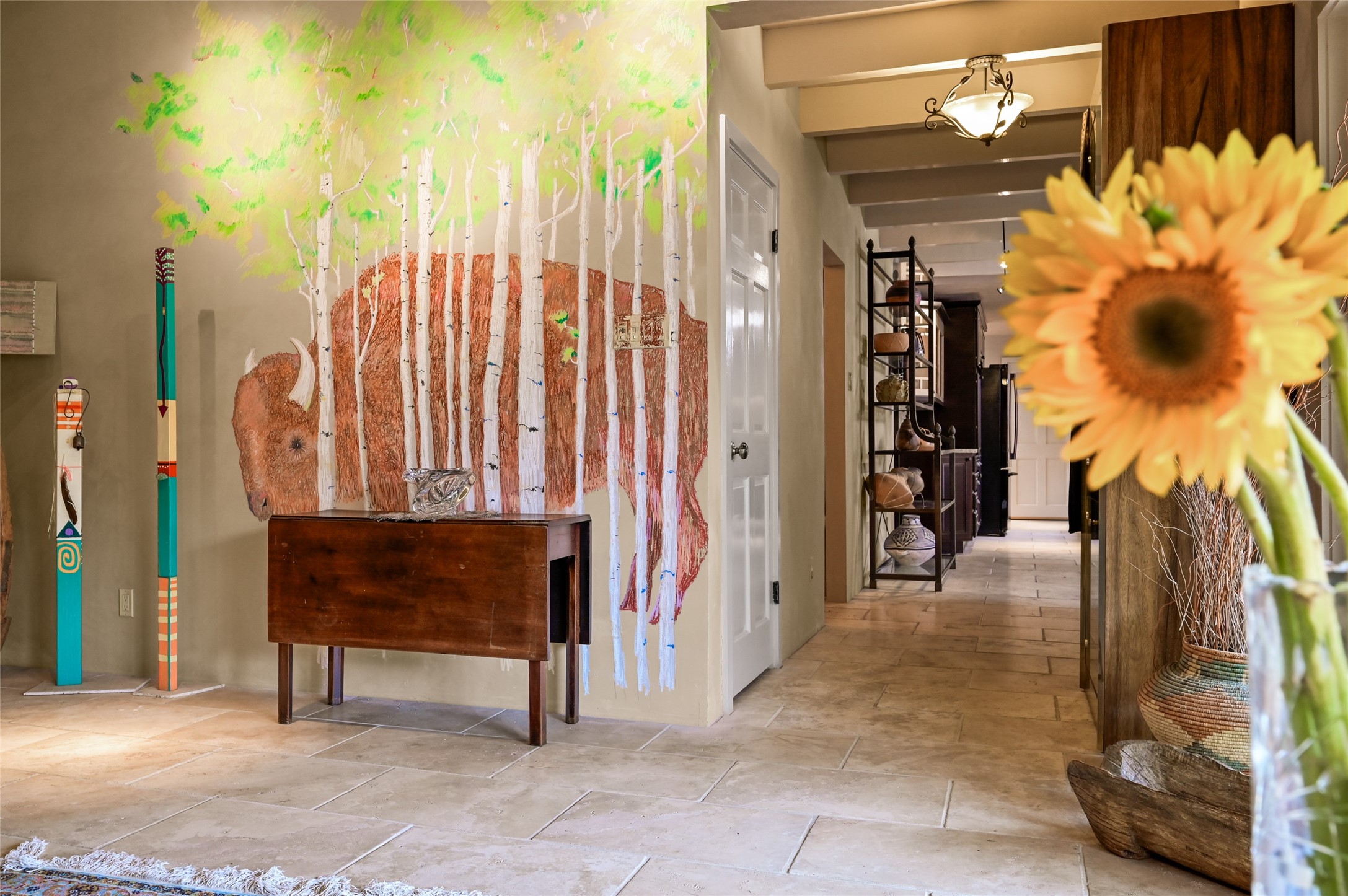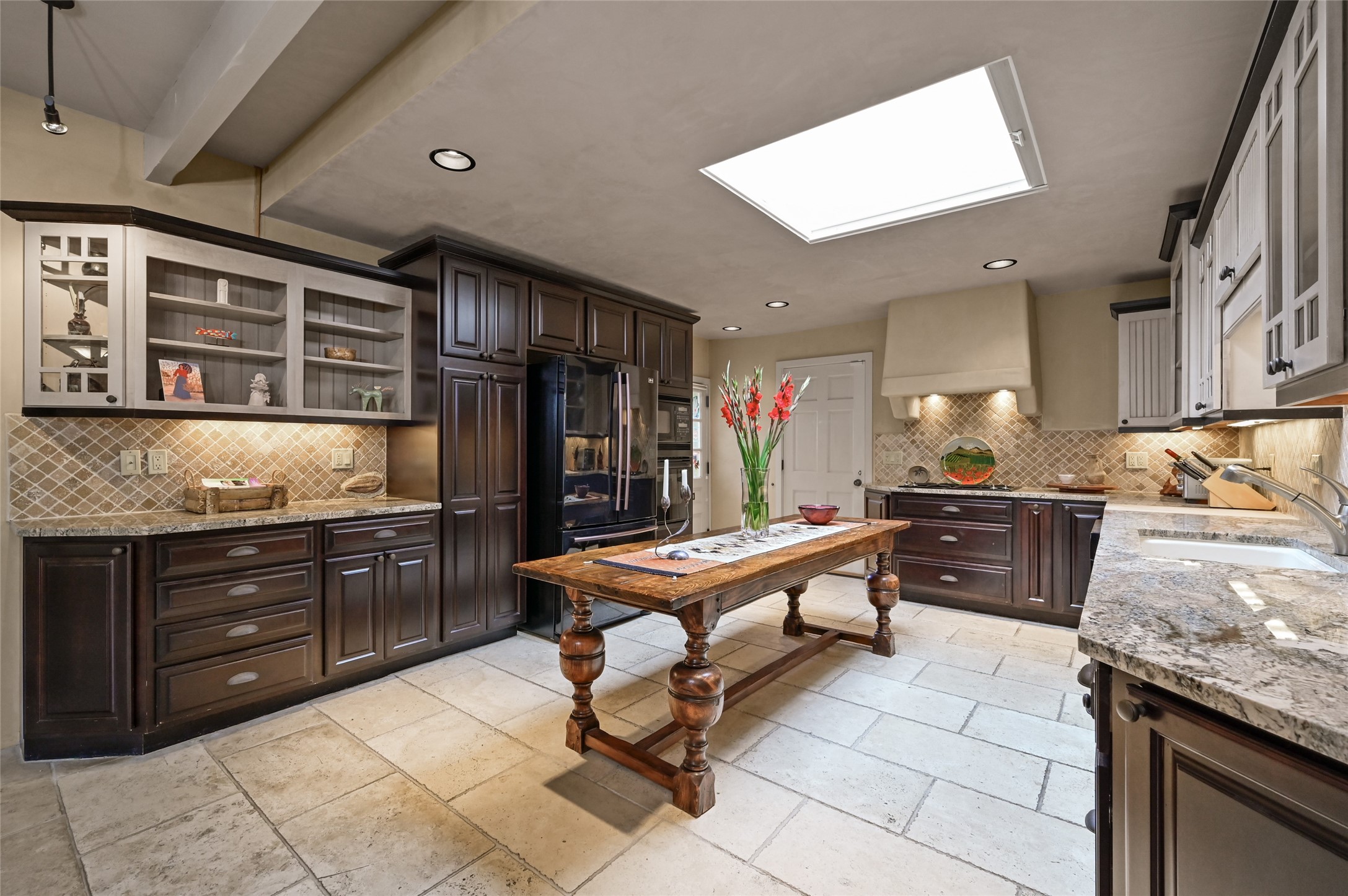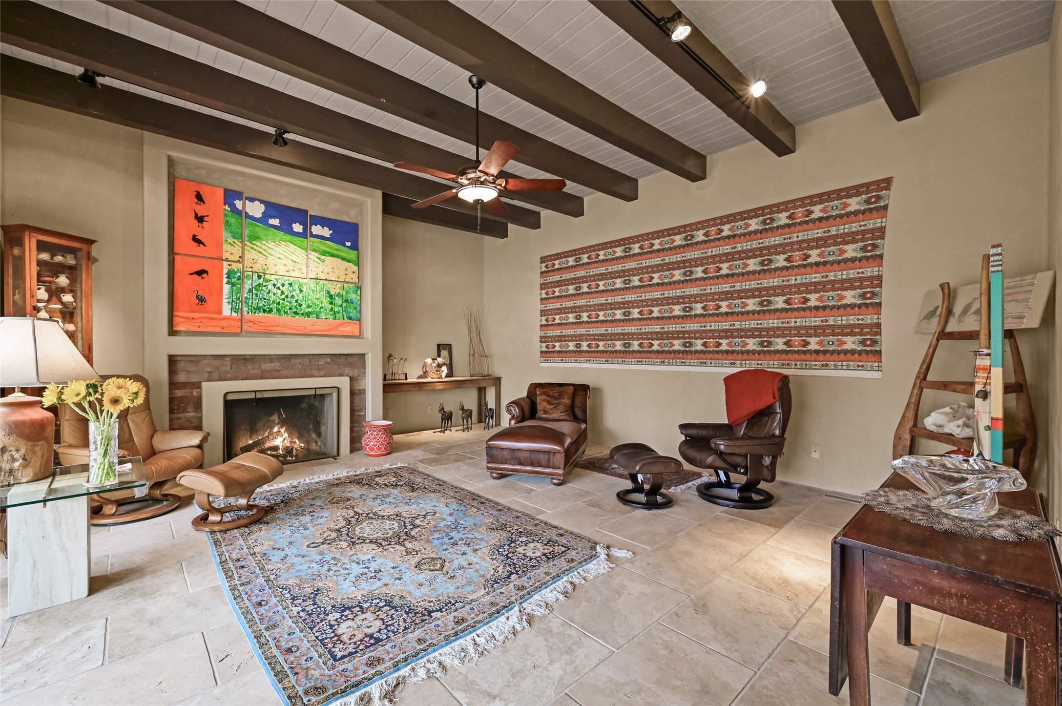 In the heart of Santa Fe, where art, culture, and cuisine intertwine, lies a hidden gem within the exclusive gates of The Compound Condos. Sheltered by graceful old trees and surrounded by lush, mature gardens, this residence offers a quiet escape moments from Canyon Road and the pulse of downtown. A private courtyard welcomes you inside, where sunlight pours through large windows and sliding doors, illuminating a warm living space anchored by a classic fireplace. Here, mornings begin with the scent of brewed coffee and evenings drift easily into fireside conversations. The open country kitchen, complete with generous counter space, vigas, and skylights, feels like the heart of the home. The primary suite, which captures the soft glow of the eastern light includes a kiva fireplace, a spacious dressing area, laundry, and full bath. A comfortable guest suite with walk-in closet and 3/4 bath ensures everyone feels at home. A heated two-car garage with an extra storage room adds practicality to this serene and private haven. A rare offering, where every detail reflects the timeless charm and understated feel of Santa Fe living.