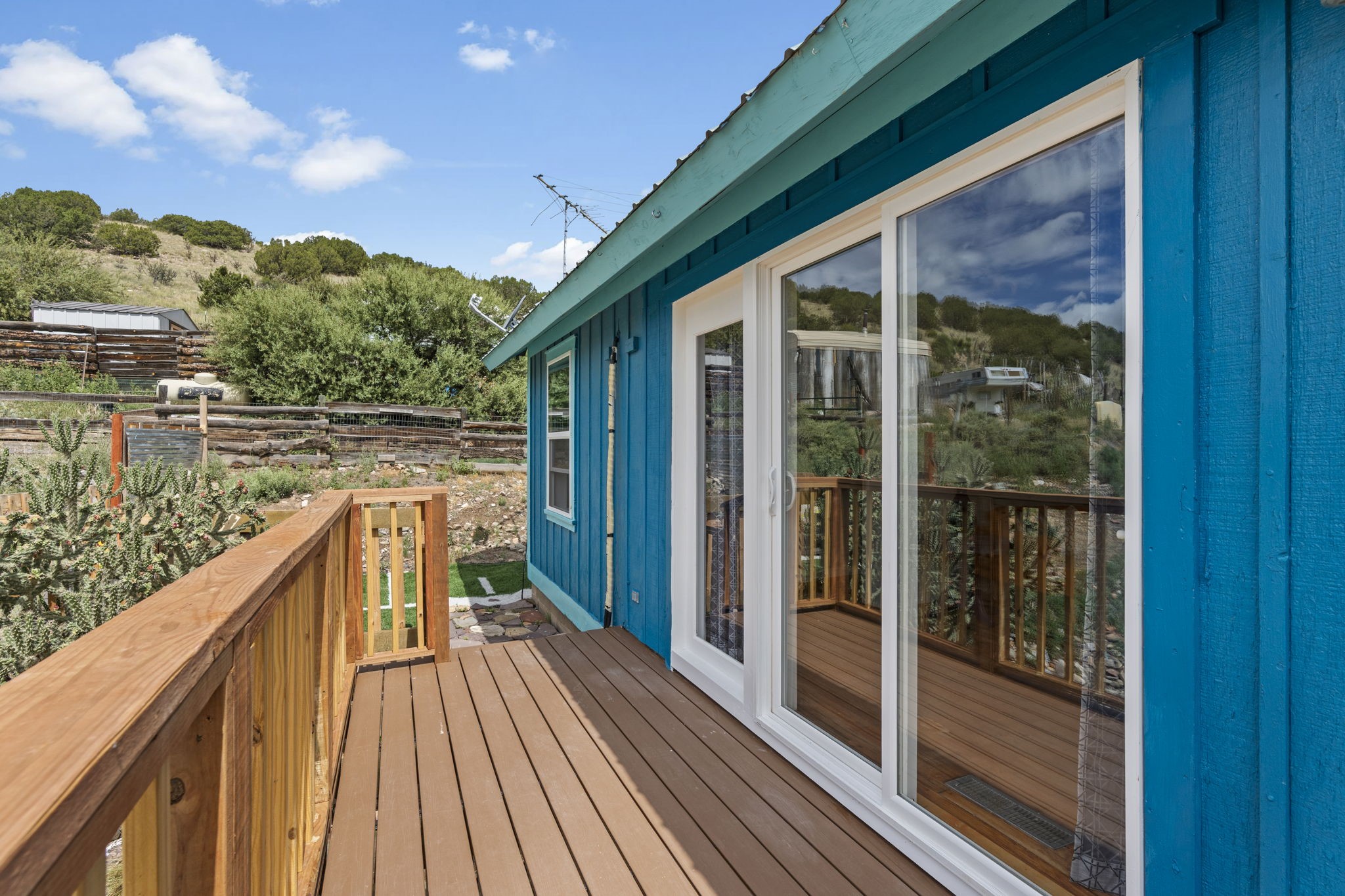 Authentic Magical Madrid Cottage with Creative Spaces! This sun-soaked gem blends possibility with artistic living. The upper level features a one-bedroom, one full bathroom, full kitchen owner's suite with a private deck perfect for morning coffee or stargazing. Below, features a flex space like no other. Open floorplan with one bathroom and full kitchen. Great family home. With a separate entrance, the downstairs is perfect for a full-time rental or a short-term rental. Commercial space to display your unique art, local jewelry, homemade candles, local apparel, or anything your heart desires, while living upstairs and walking to enjoy all that Madrid has to offer! PLUS, lot next door is included. Perfect for additional parking or bldg. Amy Biehl Elem, Milagro Middle, SF High. YOU'RE HOME!