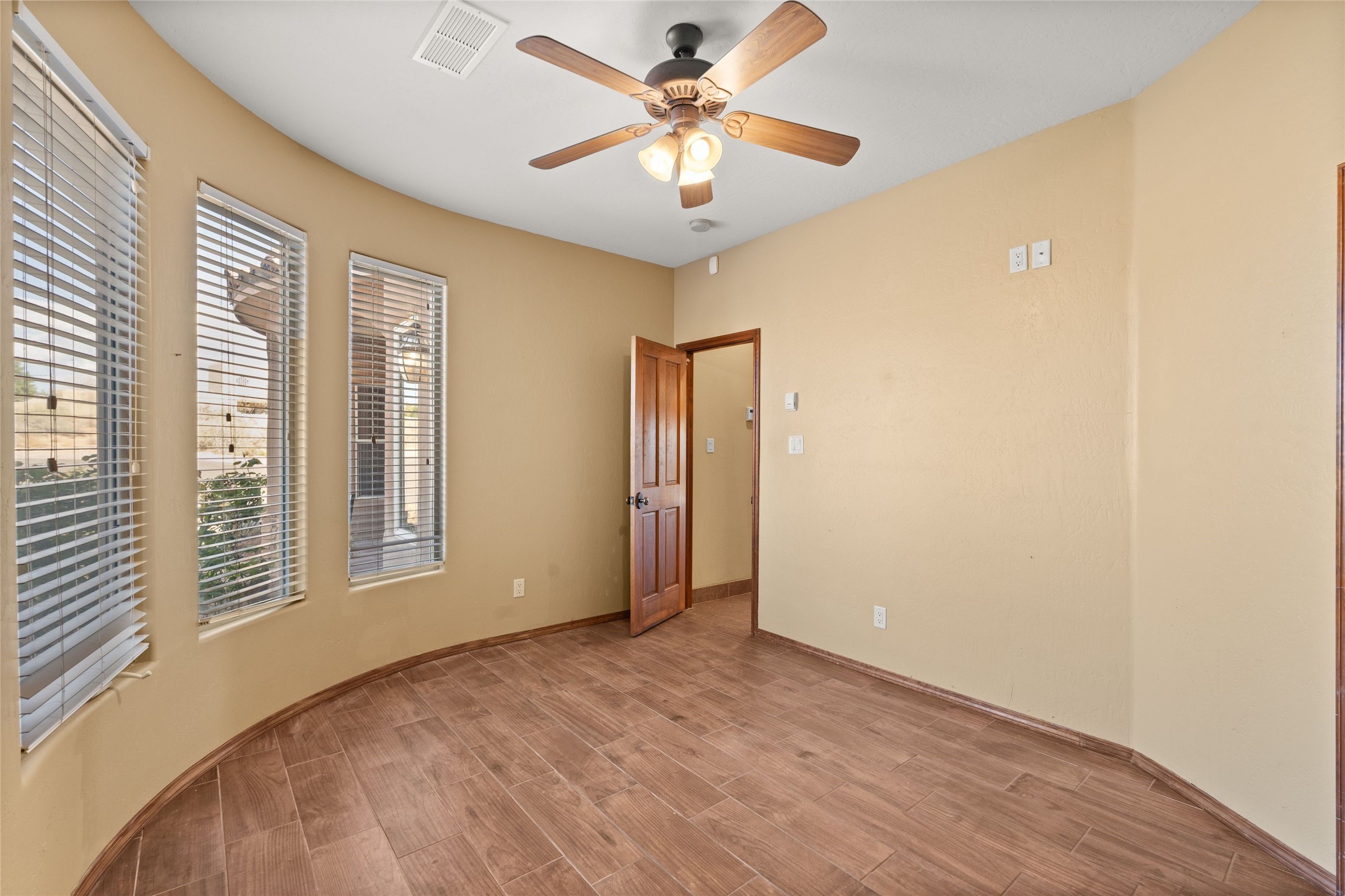 Seller owned solar and a private well! Enjoy the space without the high costs. Nestled on a lush and generous .52-acre lot in Rio Rancho, this property delivers expansive indoor-outdoor living, and countless features including a separate living area/casita. The home includes an oversized 3-car garage (1,488 SF) with extended depth, a dedicated hobby/game room, a 10x15 woodworking space, and a separate storage shed -- perfect for every project or pastime. The main house is designed with community and comfort in mind. The chef's kitchen boasts a gas cooktop, double convection ovens, dual sinks, a walk-in pantry, and flows effortlessly into the dining and living areas -- perfect for entertaining.A stacked stone custom gas log fireplace with banco seating adds cozy ambiance. The primary suite features southern views and private access to the extended covered back patio, a snail shower, garden tub, dual sinks, and a walk-in closet. Three additional bedrooms and two bathrooms provide ample room for children, guests, or office space.18-panel owned solar system installed in 2016. A central vacuum system adds further convenience. A standout feature is the spacious attached 800 SF casita, offering a full kitchen, living room, walk-in closet, and ensuite bathroom with linen storage. All on one level with no carpet, this private space is ideal for in-laws, guests, or even potential rental income.Outdoors, create unforgettable memories in the pergola-covered patio wrapped in grapevines, with a custom wood-burning fireplace and banco seating -- ideal for BBQs, al fresco dinners, and relaxing evenings. The property's mature vineyard includes Cabernet Sauvignon, Chardonnay, and more. Owners and past owners have previously had local farmers care for the grapes in exchange for the fruit at harvest time making this lush landscaping easy to enjoy.Edible landscaping surrounds you with fruit trees and raised garden beds for vegetables and herbs. New roof (2019).