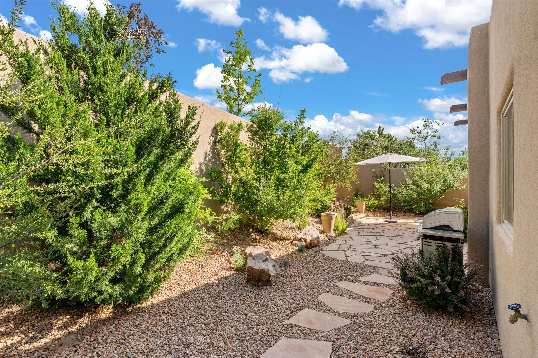 With a flawless new sewer line inspection report available, this home is move-in ready! Showcasing a functional design in one of the most desirable locations in Santa Fe, this stunning home is a rare opportunity to own a home UNDER 1 million dollars in Las Campanas. The home maintains a warm, welcoming feel, filled with natural light and surrounded by native landscaping, and walled backyard for privacy and pet safety. Just minutes from downtown Santa Fe, a quick trip to the airport and easy highway access, this property offers the best of Southwestern living - spacious, secluded, and perfectly situated. This home has been beautifully updated with new kitchen cabinets, a luxurious primary walk-in closet, a full wall of husky cabinets and 2 additional benches in the garage, a new tankless water heater, a reverse osmosis water treatment system and many more upgrades. A private enclosed patio is showcased in this elegant design that seamlessly combines easy living with the rugged Santa Fe views and sunsets that our state has to offer. Beautiful, established landscaping with drip irrigation, flagstone patio and walk ways makes for an enjoyable and low maintenance outdoor space. The open kitchen and living area, framed by a peaceful garden (perfect for pets), offer an inviting space for gathering with friends and family. Complete with a detached studio, this property offers unmatched versatility in a beautiful gated community with 24 hours security/EMS, and designated path walks few steps from your front door. Owners have the option to gain access to The Club at Las Campanas, which provides exclusive access to two Jack Nicklaus Signature Golf Courses, pools, a state-of-the-art fitness facility, and fine dining. Broker can provide a list of all the incredible upgrades and updates that come with this move-in ready home!