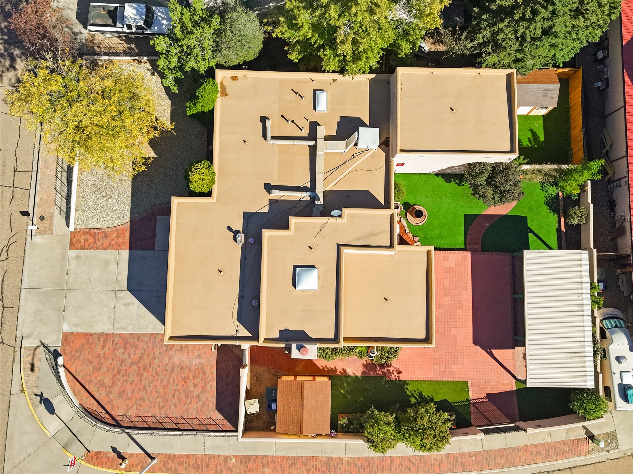 This house feels like a home. It's the real estate equivalent of comfort food! From the mid century modern details in the living/dining area to the updated kitchen to a lovely sunroom opening onto the large, private patio and rose garden, everything about this place is welcoming. The primary suite offers many options with a spacious bedroom, ensuite bath, huge walk-in closet and two adjoining rooms that can be configured to suit many needs -- home office, media room, workout space, nursery, play room, yoga shanti, you name it! Two additional bedrooms and another full bath, all with ample storage, complete the picture. On a corner lot in a true neighborhood where people watch out for one another, you will be minutes from grocery shopping, schools, restaurants, healthcare facilities with easy access to the Railrunner and I-25. Take advantage of the recent price reduction and start your new chapter in this versatile and meticulously maintained home.