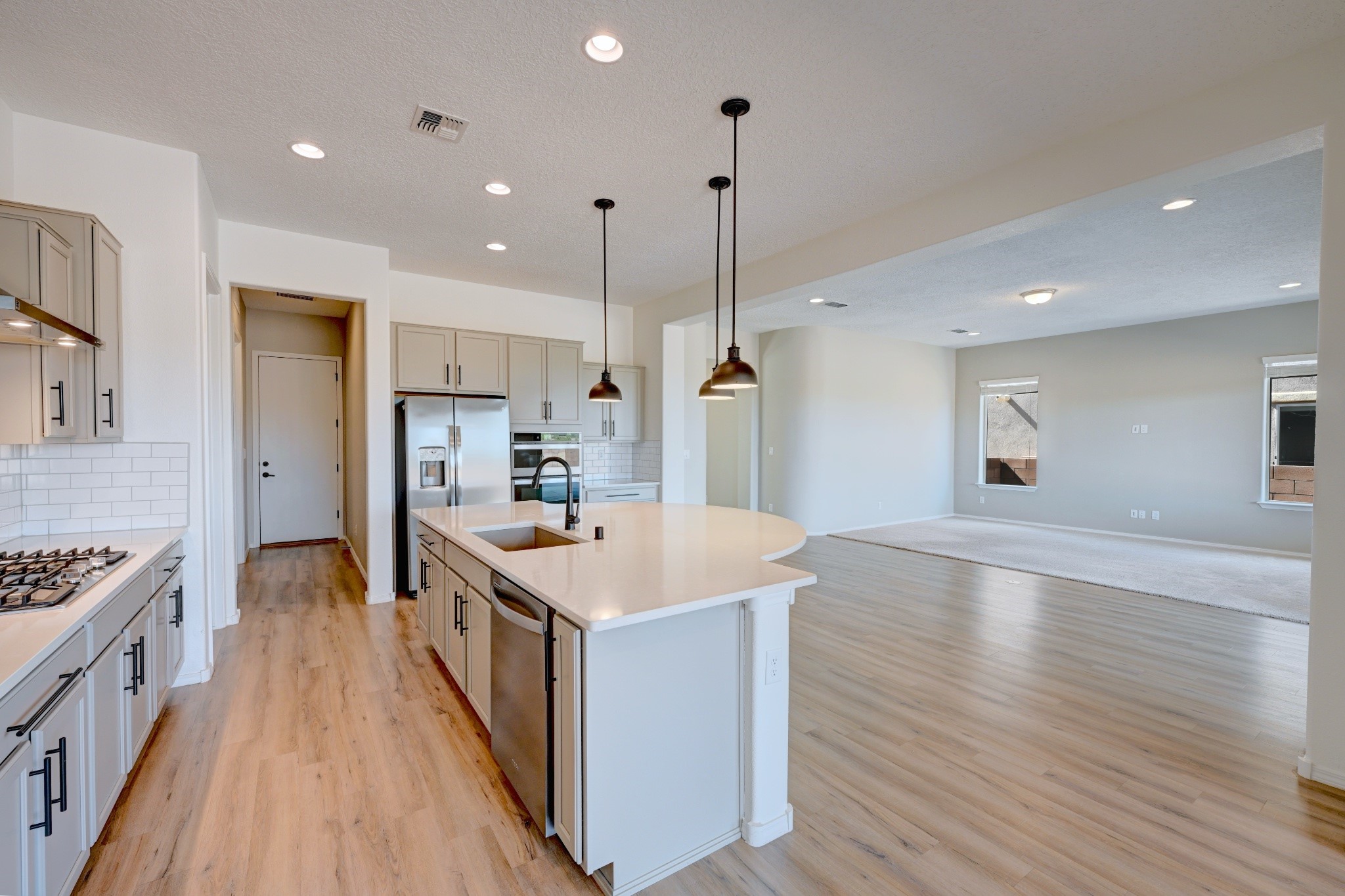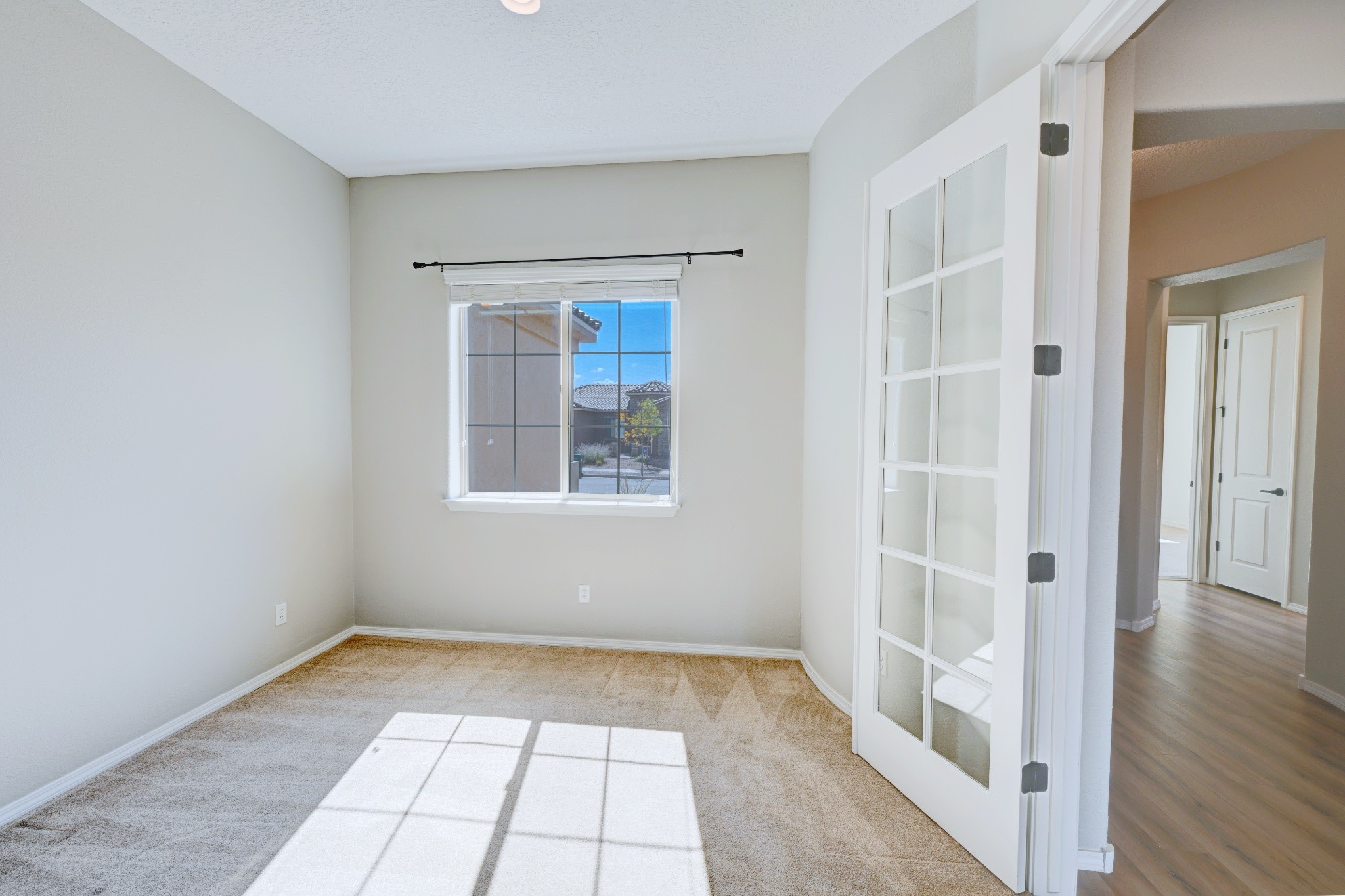 Welcome to this exceptional Pulte-built home nestled in the sought-after Estancias de Las Soleras subdivision, where quality meets comfort in perfect harmony. This thoughtfully designed 3-bedroom, 2-bathroom residence spans 2394 square feet of well-planned living space that flows seamlessly from room to room.The heart of this home showcases an open-concept design connecting the living room, dining room, and kitchen - perfect for both everyday living and entertaining guests who might actually stay past dessert. High-end finishes throughout elevate every corner, while the well-thought-out floor plan maximizes both functionality and style.A versatile room with elegant double glass doors offers endless possibilities as a fourth bedroom, home office, or den - because life is too unpredictable to box yourself into just one use. The convenience of tankless instant hot water means no more cold shower surprises on Monday mornings.This peaceful neighborhood provides an ideal blend of suburban tranquility and urban convenience. Families will appreciate the proximity to Monte del Sol Charter School, just a short distance away. The location offers easy access to Villa Linda Park for outdoor recreation and Target Grocery for all your shopping needs. Public transportation connections make commuting throughout Santa Fe effortless.The subdivision itself reflects careful community planning, creating an environment where neighbors become friends and property values remain strong. With convenient parking and the solid construction quality that Pulte is known for, this home represents both immediate comfort and long-term investment potential.Don't forget to check out the 3-D virtual tour https://my.matterport.com/show/?m=Lyrc9dHqfdh and the drone video flyover of the area.