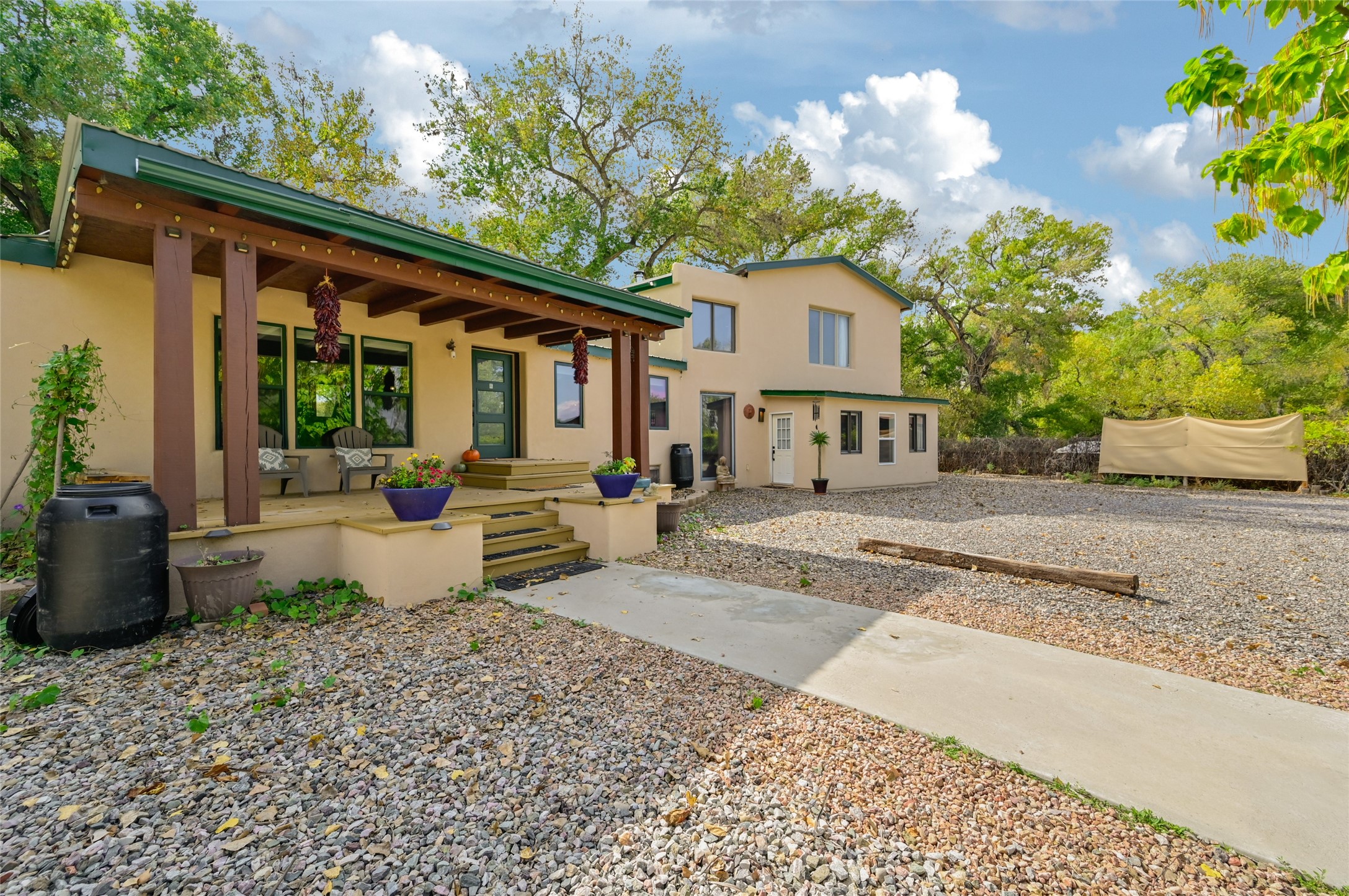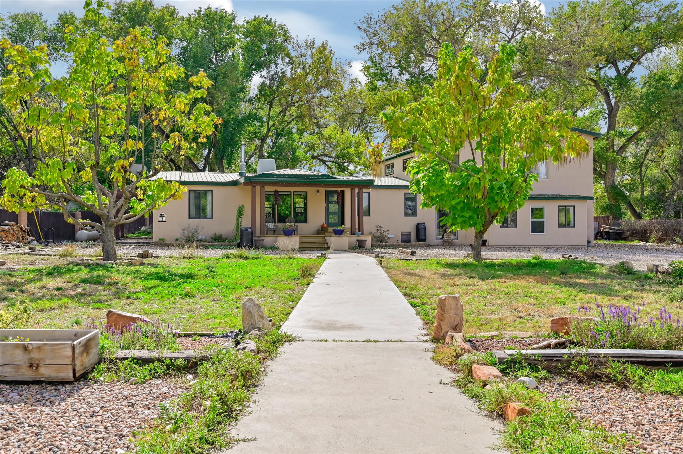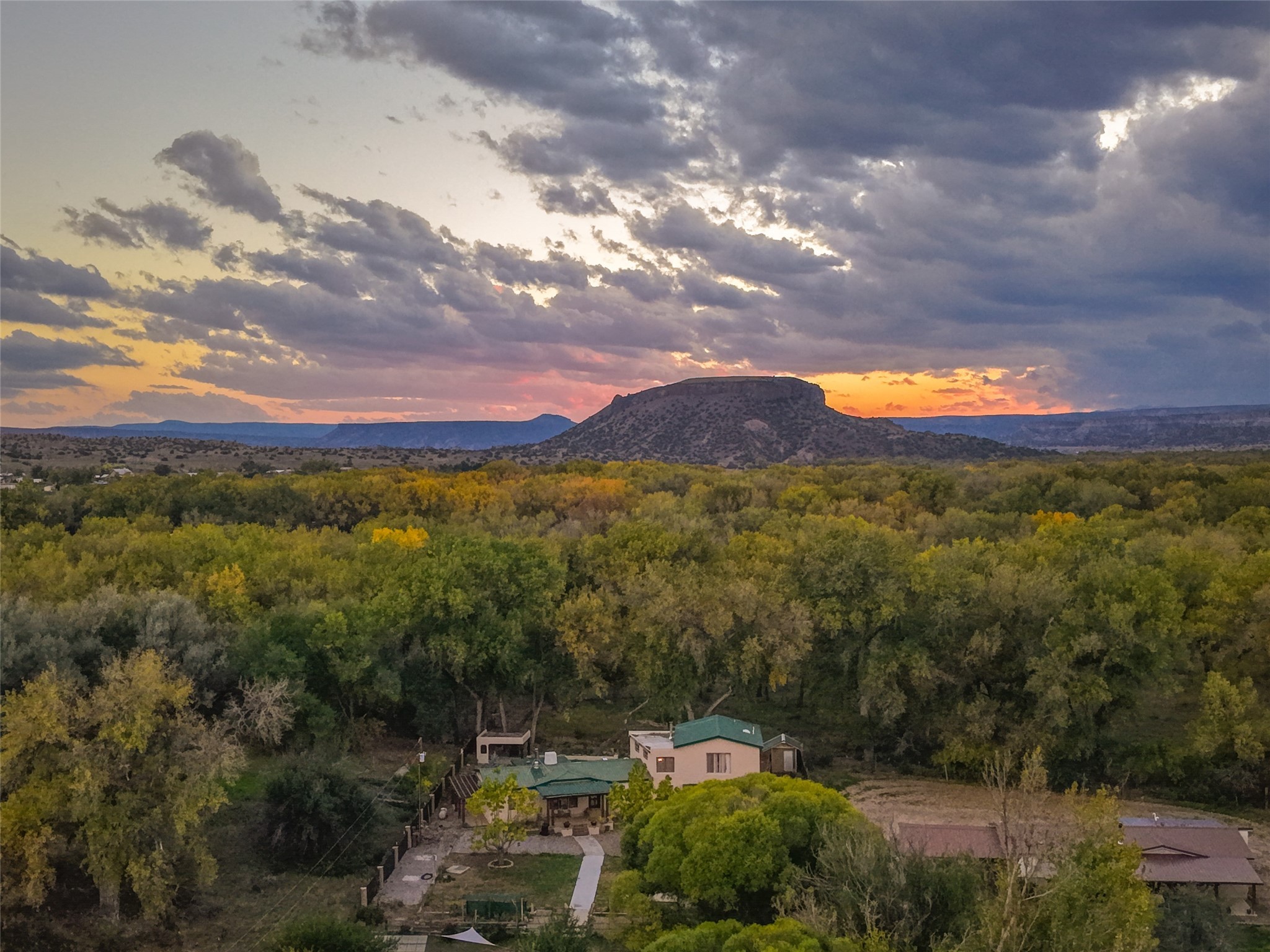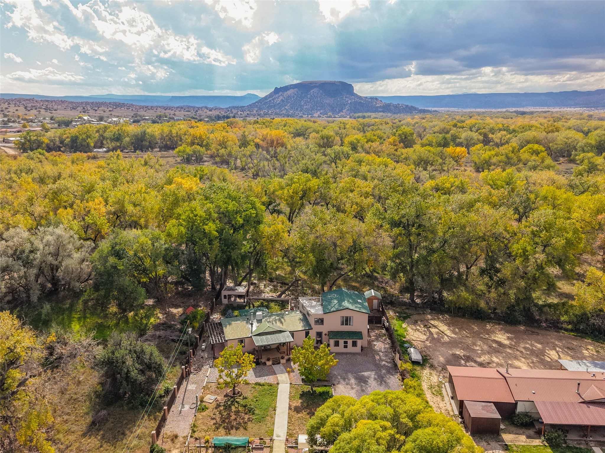 Welcome to this beautifully updated home nestled on just under an acre in serene La Mesilla. With 3,238 sq. ft. of inviting living space--including 3 bedrooms, 4 bathrooms, and 2 spacious living rooms--there's plenty of room for family and friends. The attached 800 sq. ft. studio offers a perfect private retreat for guests, work, or creativity.Originally a modular home on a permanent foundation, the lovely addition features a spacious upstairs master suite with a private balcony that overlooks the peaceful Bosque and stunning Black Mesa views.The thoughtfully converted garage studio, with warm hardwood floors and its own bathroom, adds even more comfort and flexibility.Enjoy the tranquility of a private well along with recent updates like all new stucco, a new septic system, roof, appliances, and water softener. This charming La Mesilla home is a perfect blend of comfort, style, and nature--ready to welcome you.