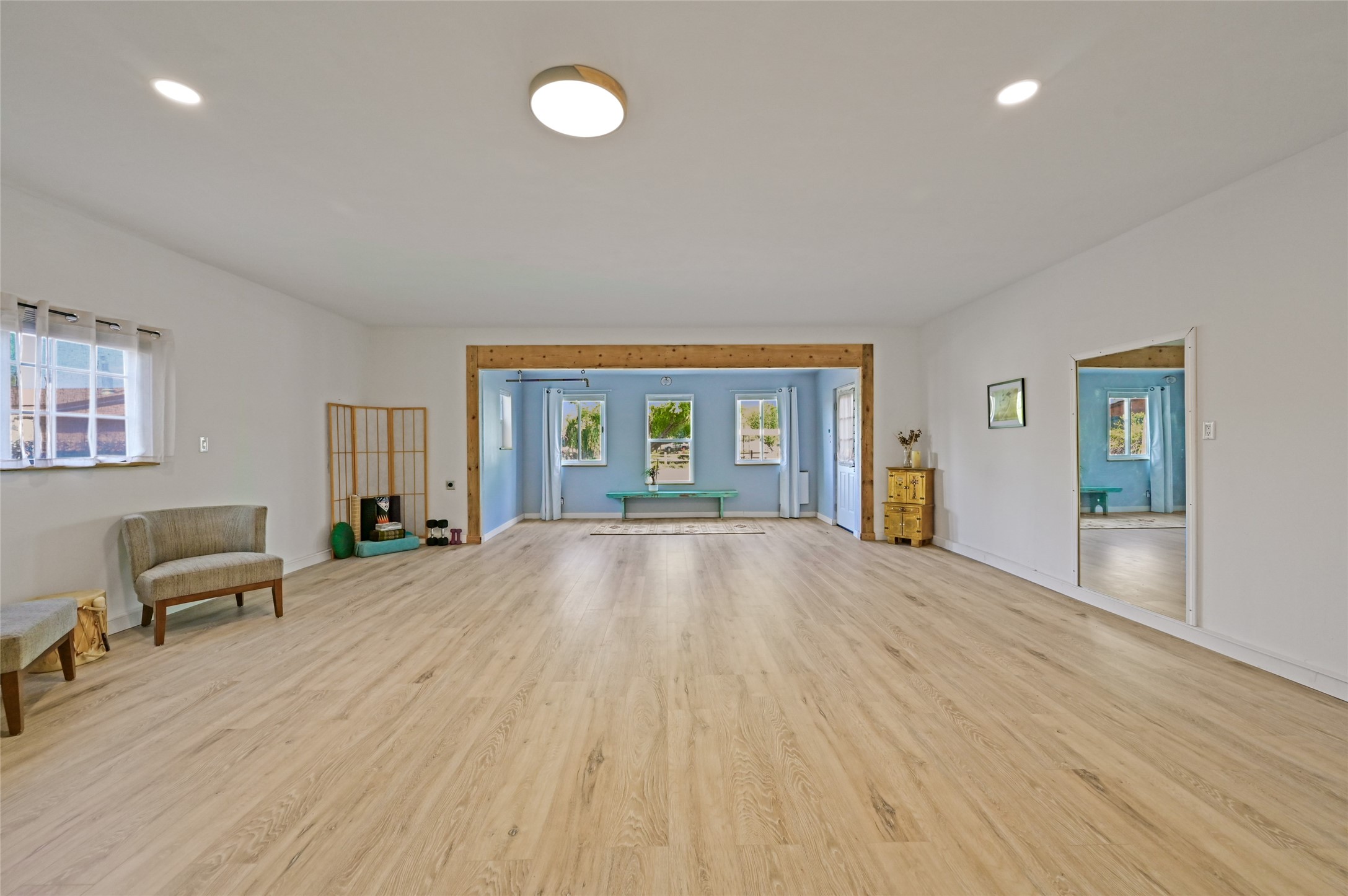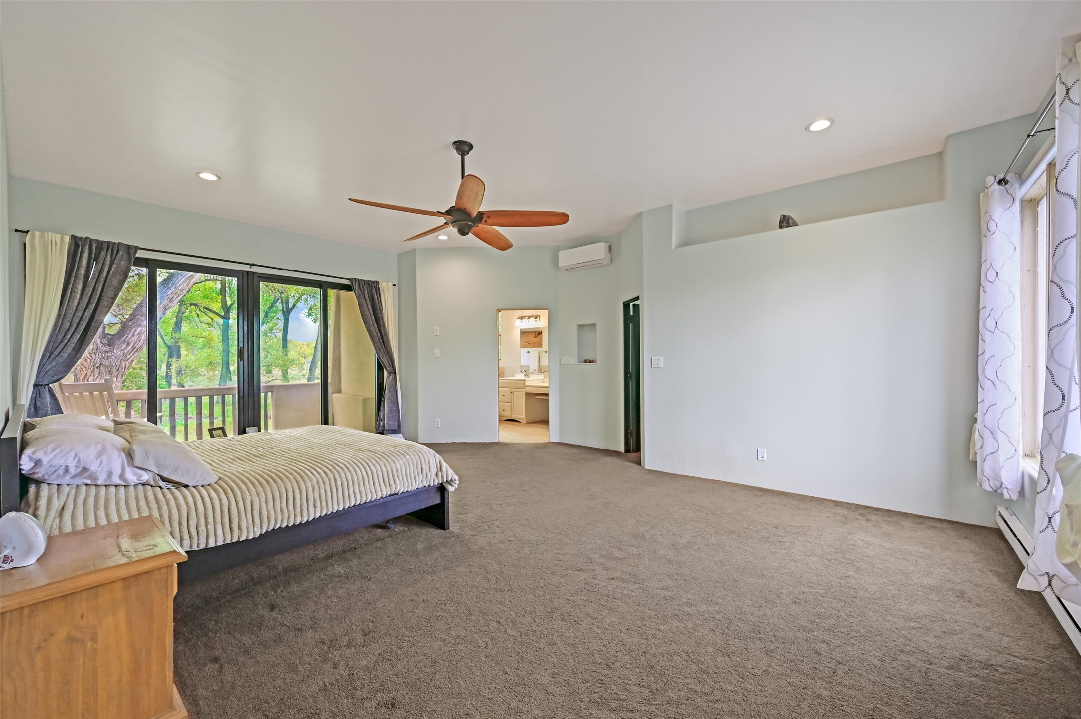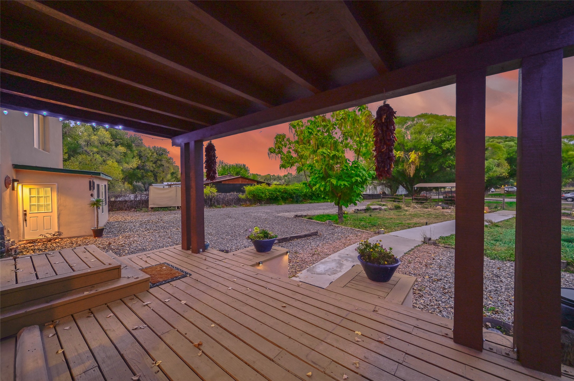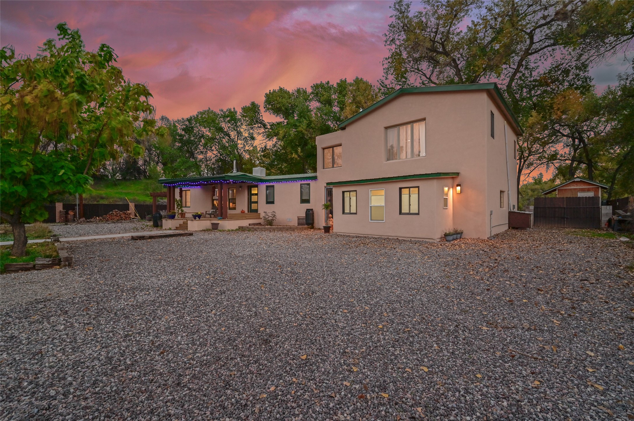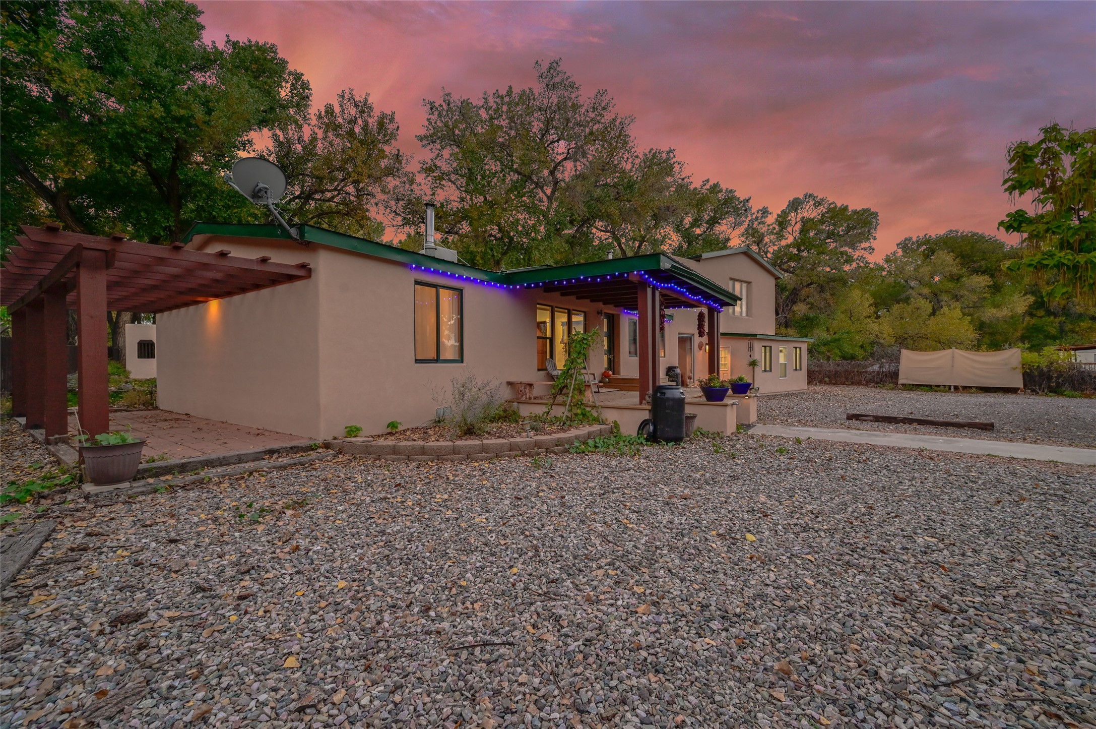 Welcome to this beautifully updated home nestled on just under an acre in serene La Mesilla. With 3,238 sq. ft. of inviting living space--including 3 bedrooms, 4 bathrooms, and 2 spacious living rooms--there's plenty of room for family and friends. The attached 800 sq. ft. studio offers a perfect private retreat for guests, work, or creativity.Originally a modular home on a permanent foundation, the lovely addition features a spacious upstairs master suite with a private balcony that overlooks the peaceful Bosque and stunning Black Mesa views.The thoughtfully converted garage studio, with warm hardwood floors and its own bathroom, adds even more comfort and flexibility.Enjoy the tranquility of a private well along with recent updates like all new stucco, a new septic system, roof, appliances, and water softener. This charming La Mesilla home is a perfect blend of comfort, style, and nature--ready to welcome you.