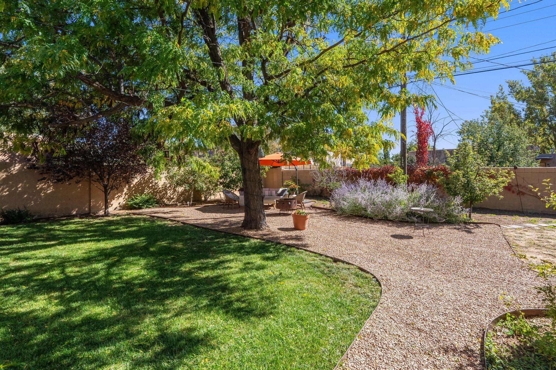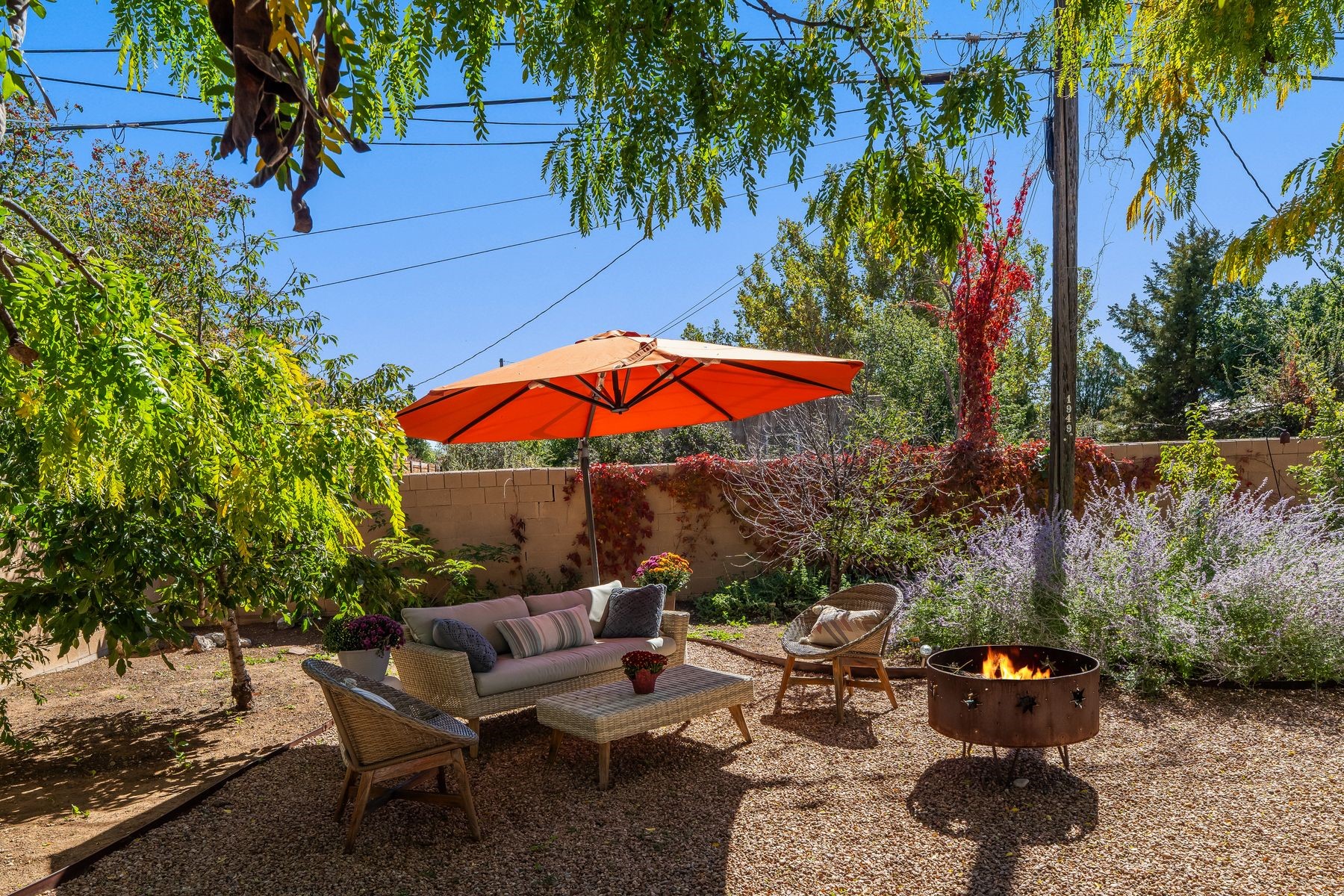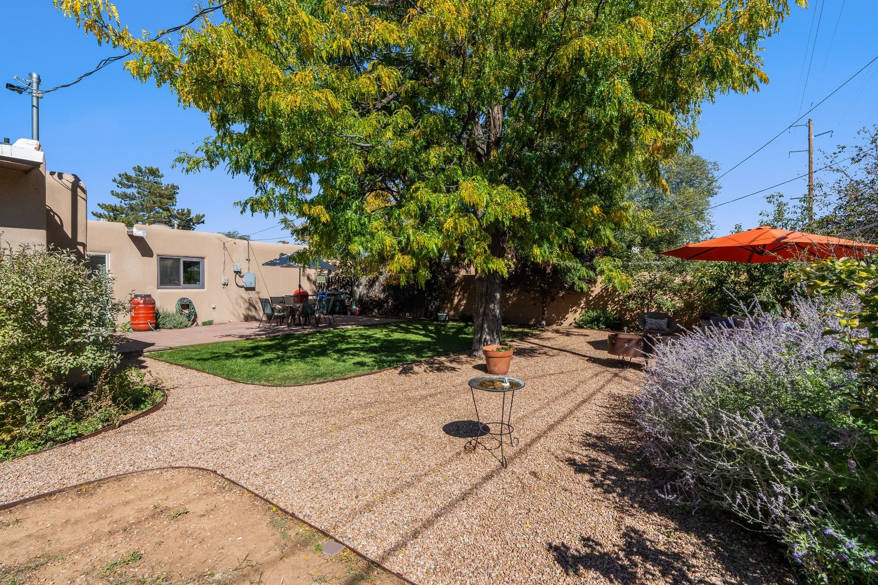 With much of its original design beautifully preserved, this Casa Alegre Stamm home radiates timeless Southwestern charm. Built in 1954, it showcases hallmark Stamm features - original hardwood floors, vigas, and handcrafted doors - while incorporating thoughtful modern updates for today's comfort and convenience. The inviting floor plan includes two bedrooms plus a versatile third room ideal for an office, den, or guest space, along with two bathrooms, a warm welcoming living room, a dedicated dining area, and an updated kitchen with tasteful finishes. The spacious primary suite offers an ensuite bath and walk-in closet. An attached one-car garage provides added functionality and storage options. Outdoors, a large brick patio opens to a fully enclosed yard featuring lush grass, mature shade trees, fruit trees, and a colorful array of perennials - perfect for entertaining, gardening, or simply relaxing in your own private oasis. Nestled on a quiet street in the heart of Casa Alegre, this home enjoys one of Santa Fe's most desirable and convenient locations. Residents can easily access Frenchy's Field, the River Trail, Ashbaugh Park, and the Acequia Trail, while being just a short drive from shops, restaurants, and other local amenities. With its ideal blend of character, modern livability, and prime location, this turnkey Santa Fe classic offers comfort, style, and connection to all "The City Different" has to offer.