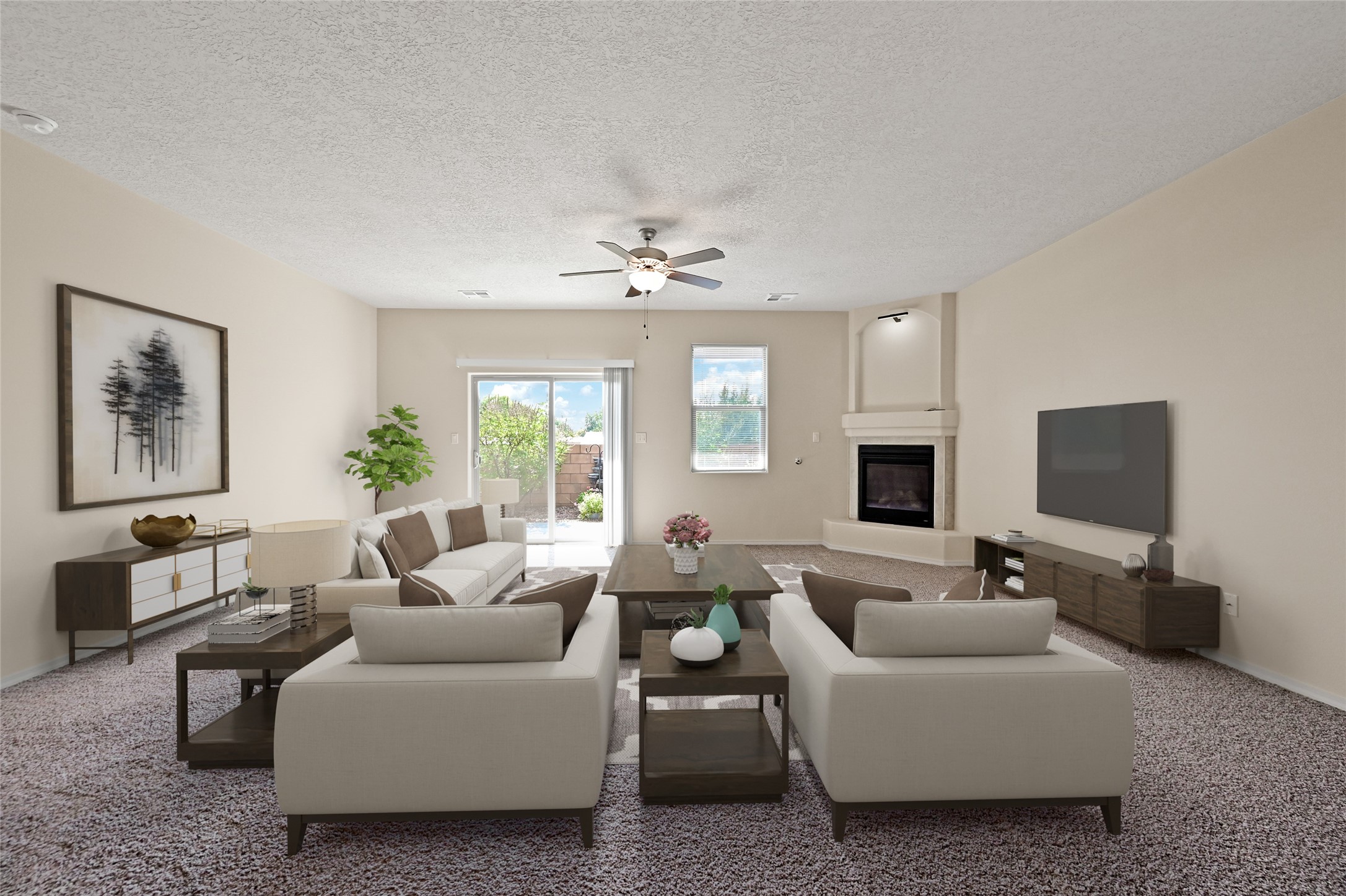 Built in 2020, this beautifully maintained single-level home blends modern design with everyday comfort. Offering 3 bedrooms, 2 bathrooms, and an open-concept layout, it's ideal for both relaxation and entertaining.The spacious kitchen features granite countertops, stainless steel appliances, and a generous pantry, opening seamlessly to the dining and living areas. A cozy gas fireplace and abundant natural light enhance the living room, while sliding glass doors lead to a private, fenced backyard with a soothing fountain and covered patio.The primary suite provides a peaceful retreat with a walk-in closet, dual sinks, and a walk-in shower. Two additional bedrooms and a full bath offer flexibility for guests, family, or a home office. Thoughtful touches include tile and carpet flooring, refrigerated air, forced-air heating, a tankless hot water system, and a two-car garage with custom epoxy-finished flooring.Located on Santa Fe's southwest side, this move-in-ready home is minutes from shopping, dining, schools, and Highway 599, with a neighborhood park just a short stroll away.