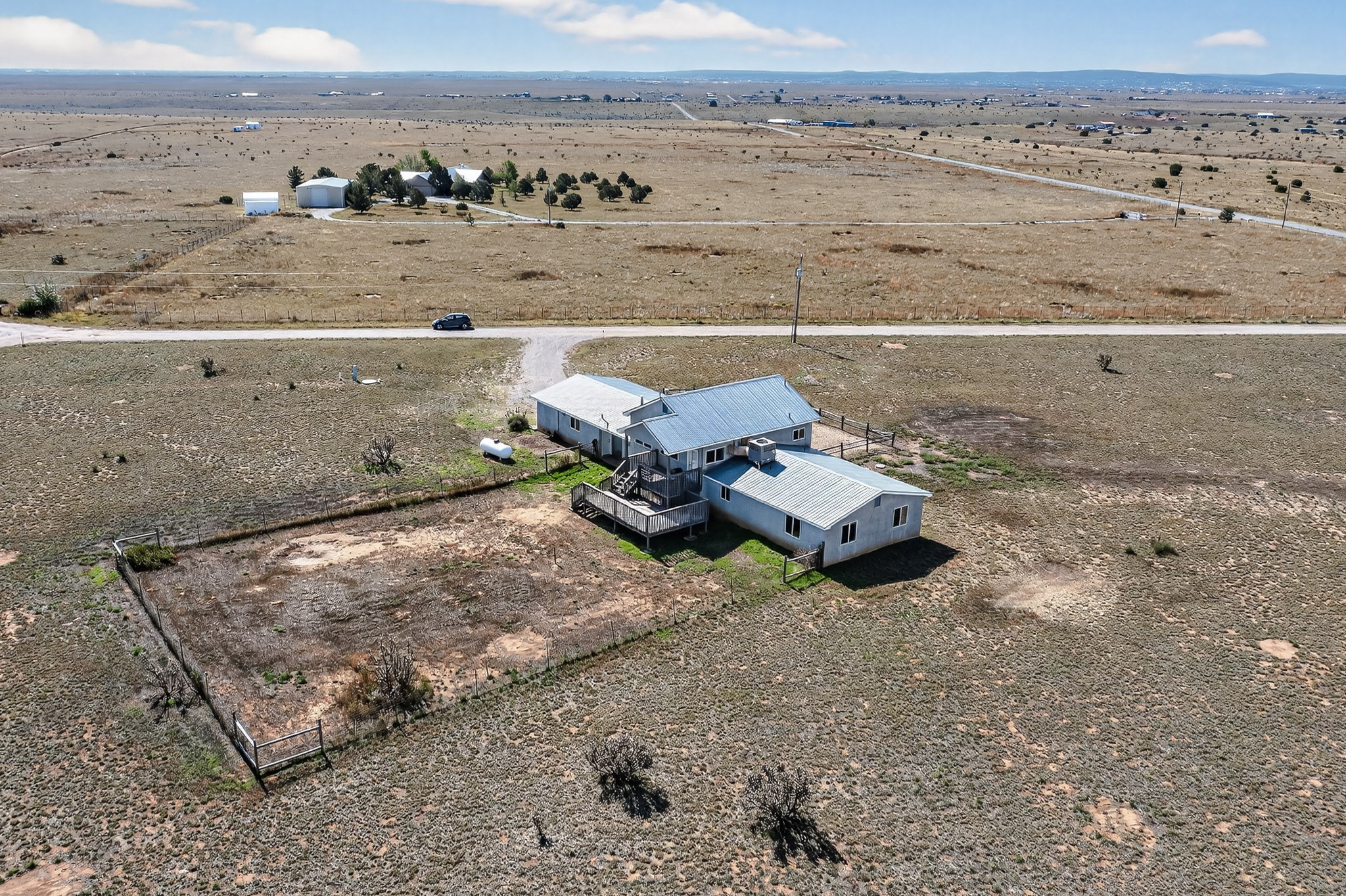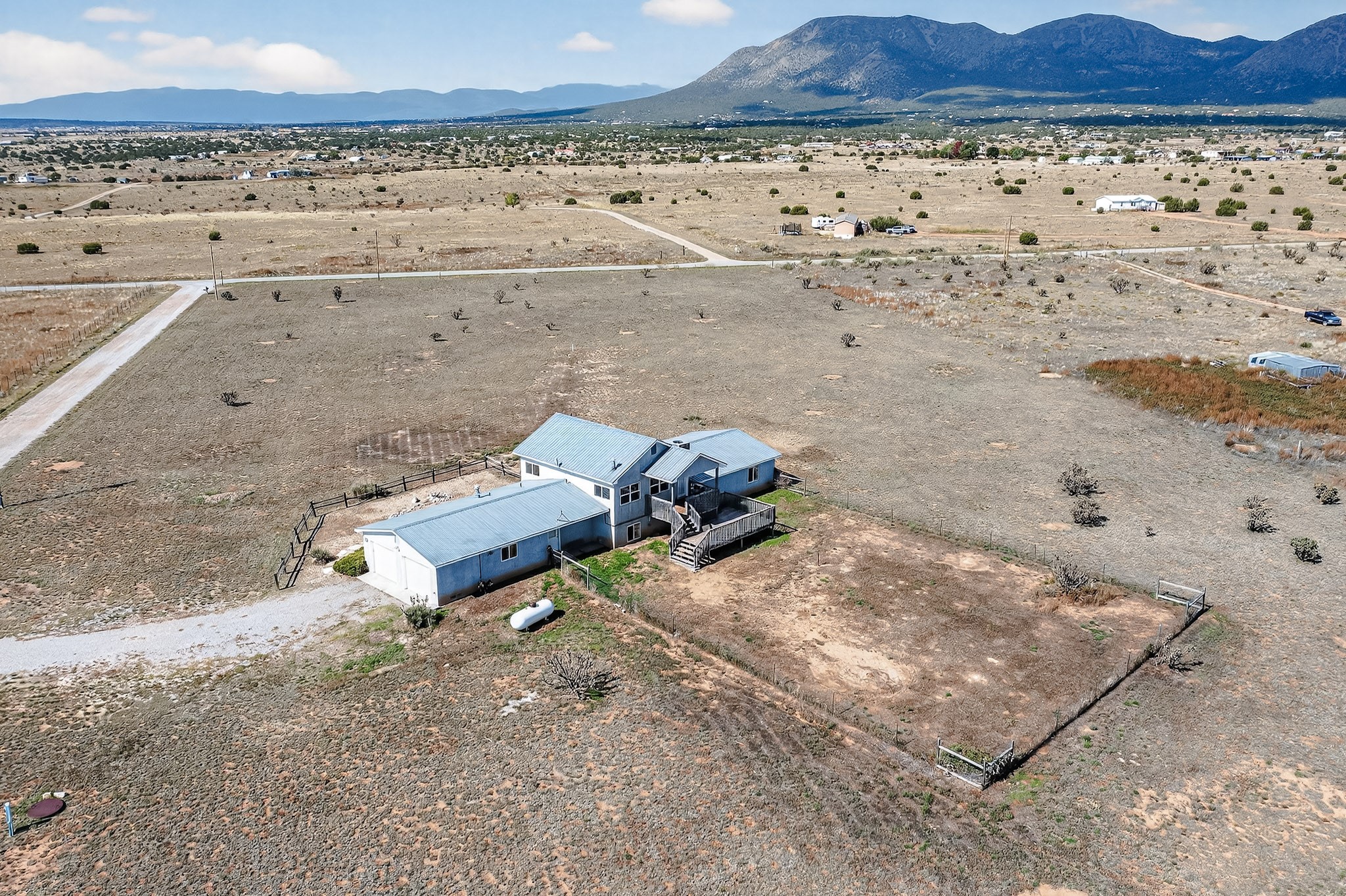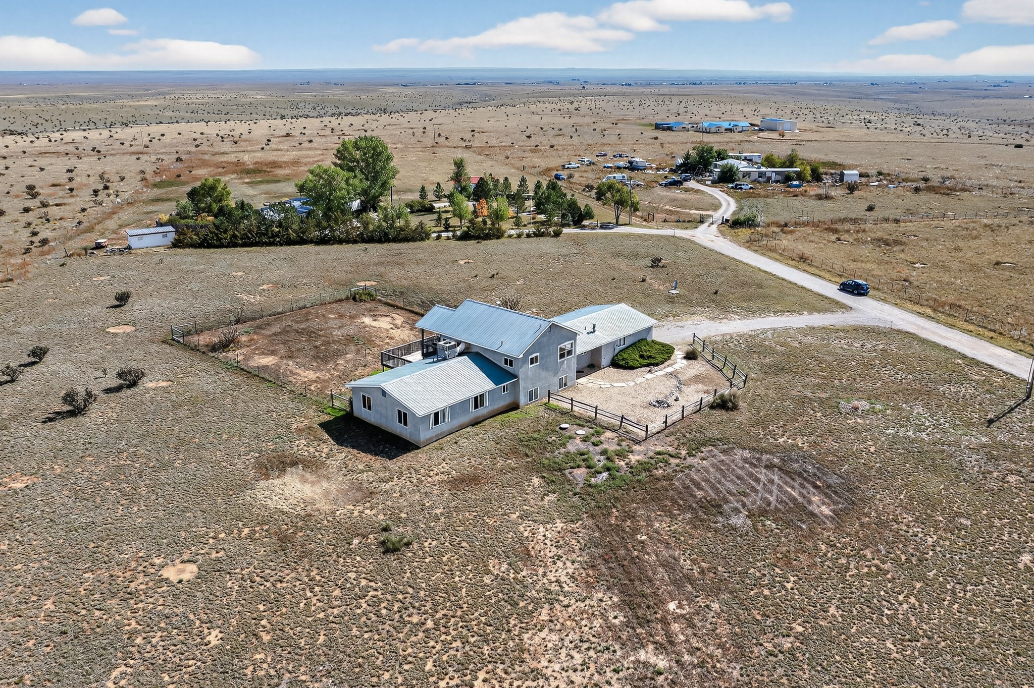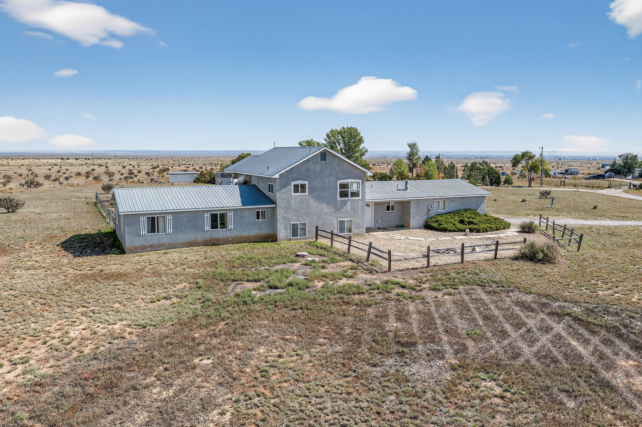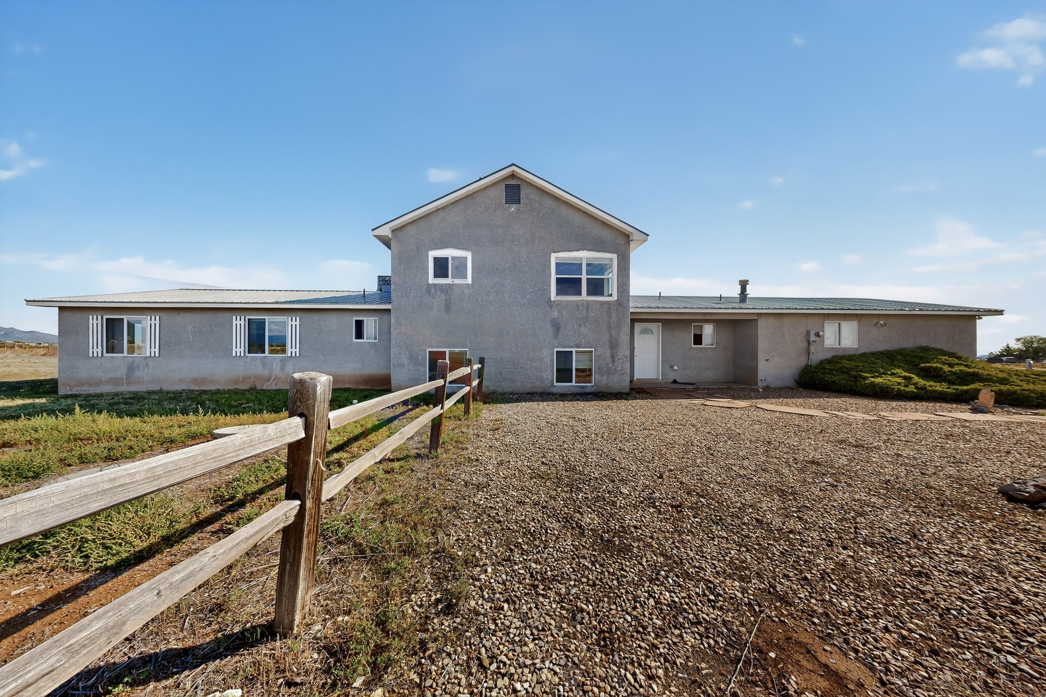Discover this distinctive multi-level home nestled in the tranquil landscape of Stanley, New Mexico. Situated on nearly 5 acres, this spacious 5-bedroom, 2.5-bath residence offers sweeping views of the surrounding countryside and endless potential. The unique floor plan provides versatile living spaces ideal for a variety of lifestyles, with room to grow, work, or entertain. Whether you're seeking a quiet retreat or a property with room to expand, this Northern New Mexico home combines privacy, space, and character--all within easy reach of city conveniences. Priced to sell--schedule your showings today!