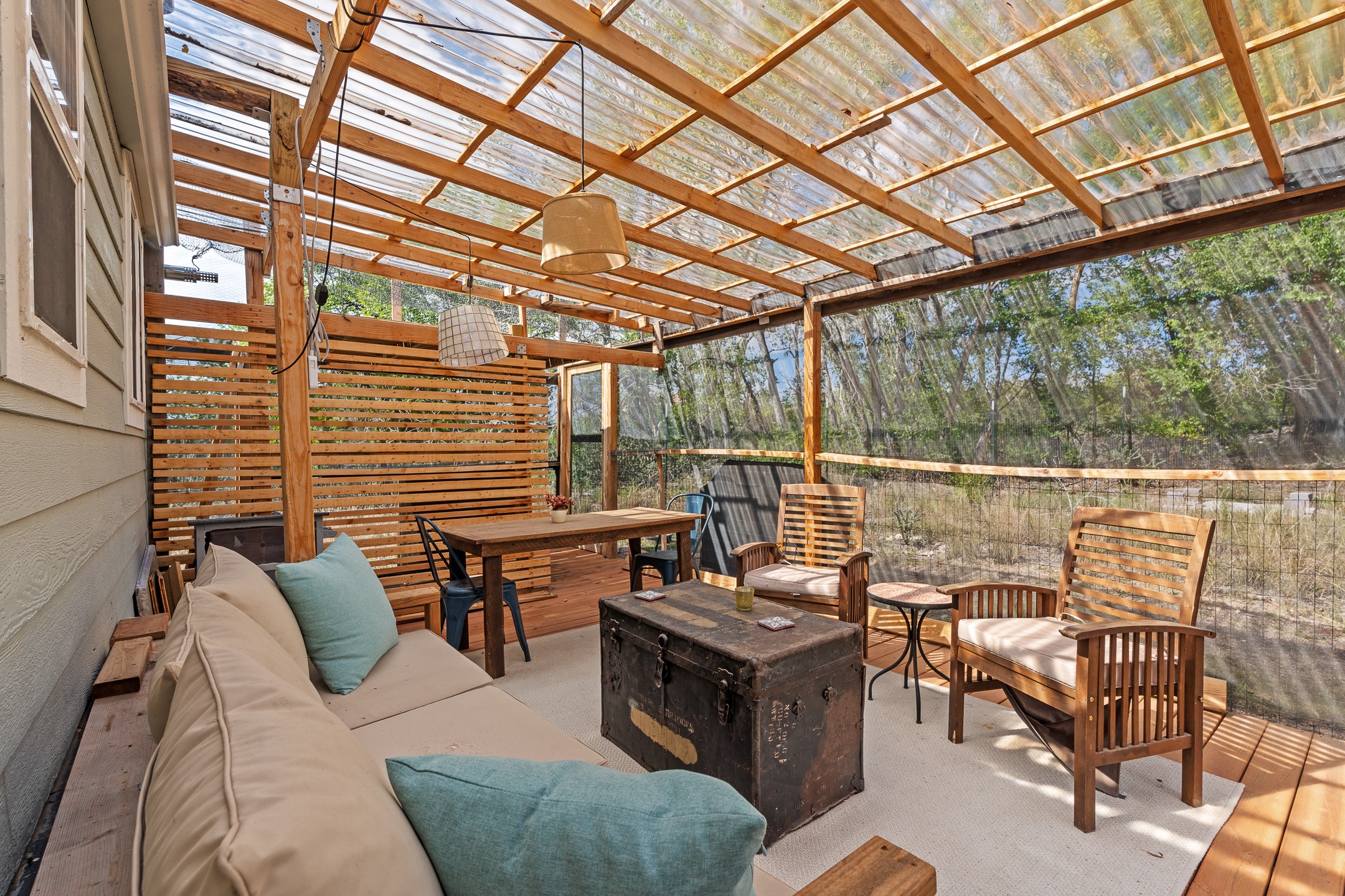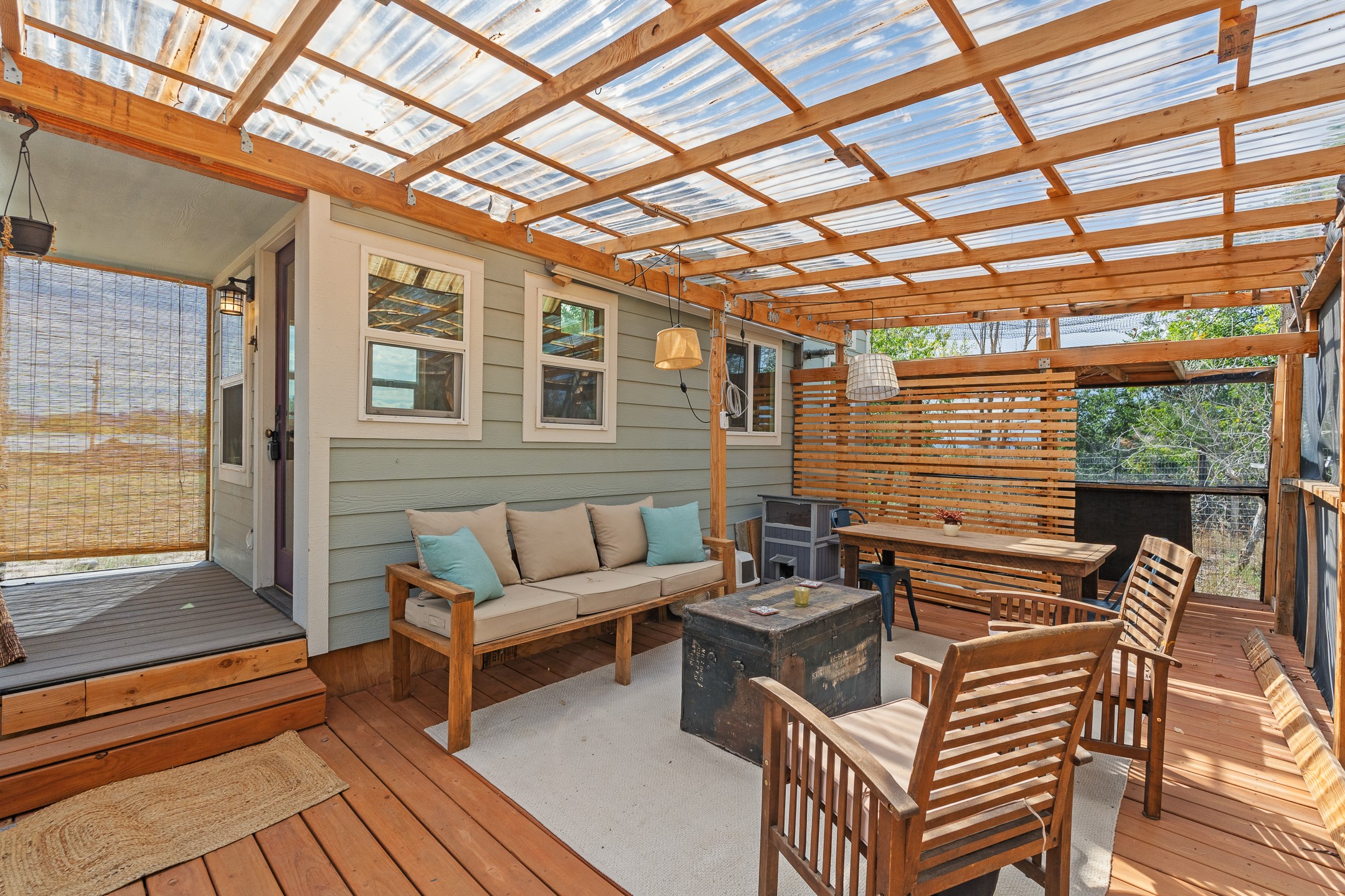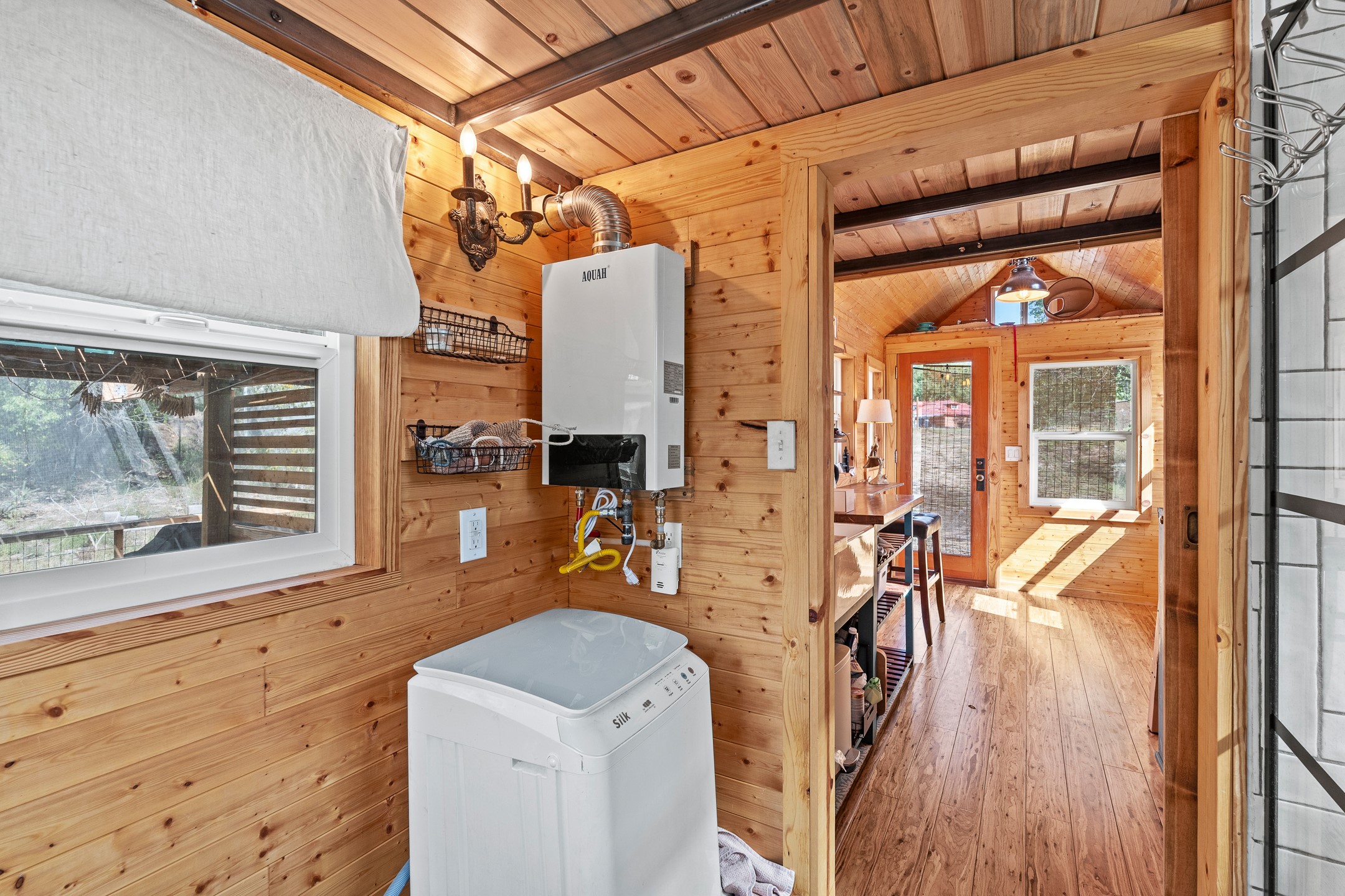 Escape to this beautifully crafted 28' x 8' tiny home, offering the perfect balance of comfort, efficiency, and seclusion. Nestled just a short drive from Santa Fe, Los Alamos, and Espaola, this thoughtfully designed retreat is functional for full-time living, a weekend getaway, or an off-grid workspace. Step inside to discover a bright and functional layout featuring a well-appointed kitchenette, a 3/4 bath connected to its own septic system, and a 72 sq ft sleeping loft perfect for restful nights. The home is fully powered by solar energy and equipped with a mini-split system for year-round heating and cooling, along with a high-efficiency water heater to keep utilities low and comfort high. Whether you're seeking solitude, sustainability, or a simplified lifestyle, this tiny home offers it all in a peaceful and private setting -- with the convenience of nearby cities just minutes away.