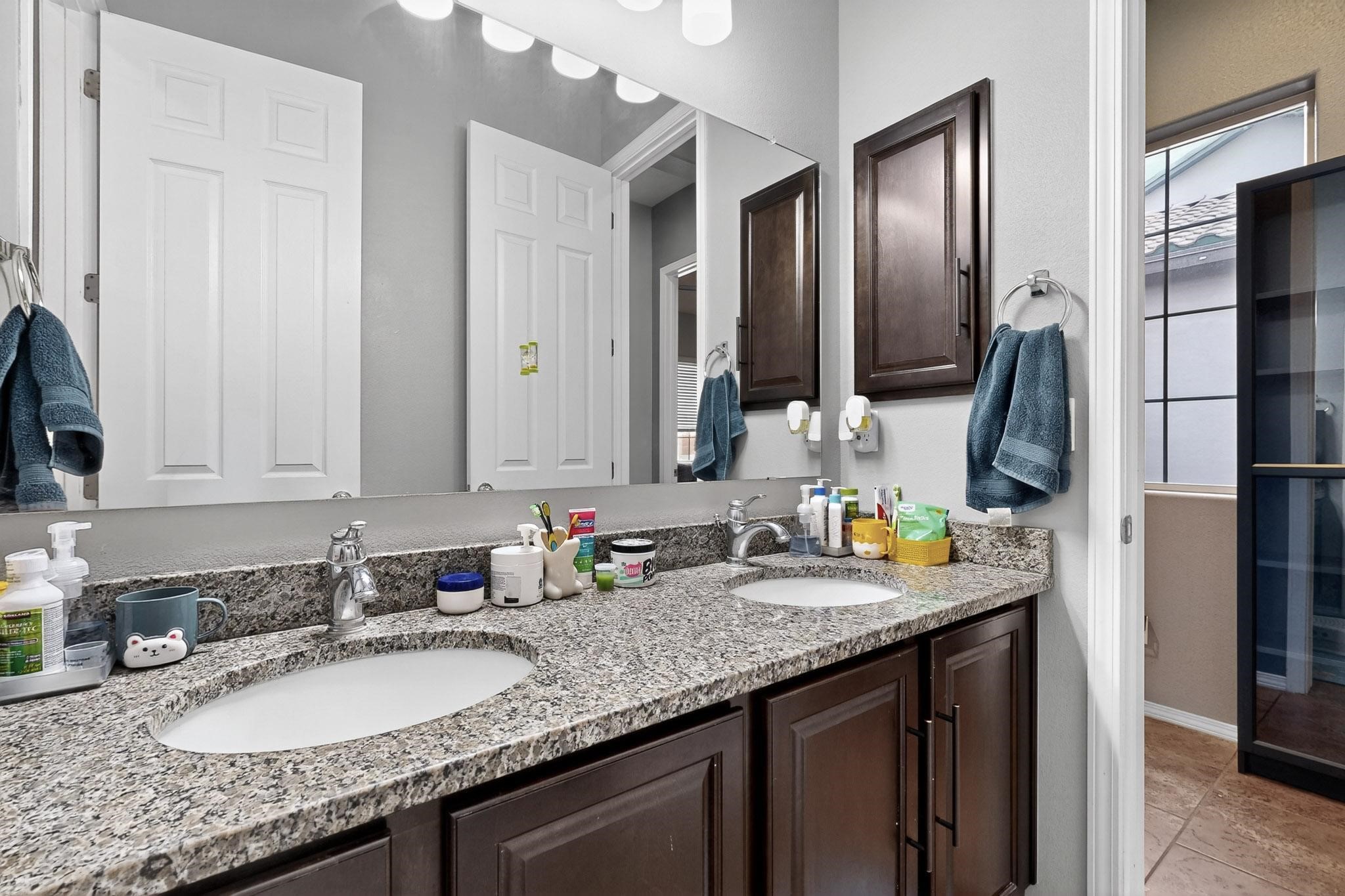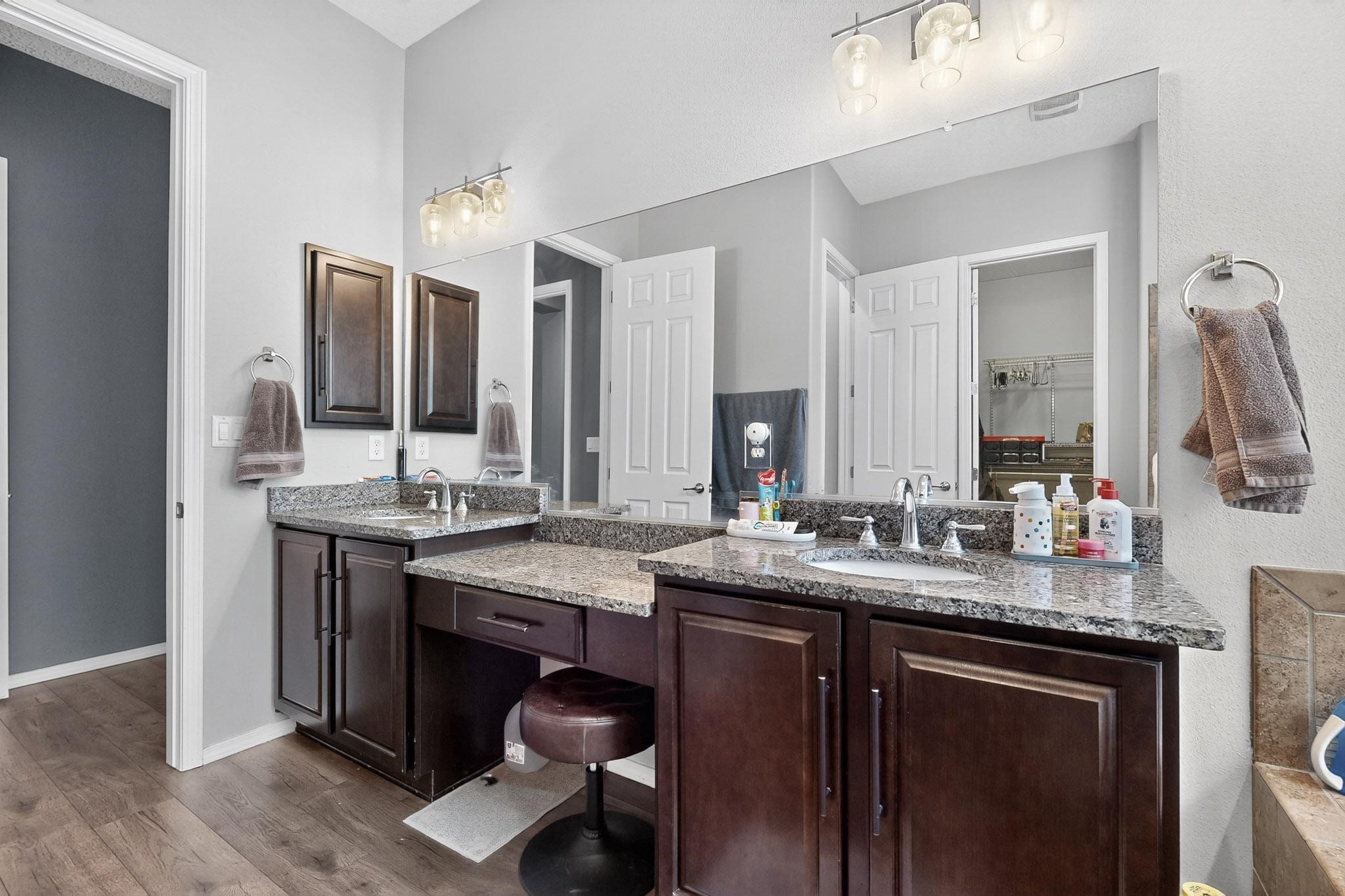 Nestled in the esteemed Loma Colorado community, this stunning single-story residence is an architectural sanctuary, ready for immediate occupancy. An open-plan living space flows effortlessly, anchored by a gourmet kitchen featuring granite countertops and stainless steel appliances & oversized island. Glass doors invite the outdoors in, leading to a sprawling, professionally landscaped backyard. This private retreat boasts custom-installed patios, sophisticated raised brick walls, and a serene water feature, designed for elegant al fresco living. Luxury Vinyl Flooring (2022) graces the master suite, living, and dining areas. The master bath is a spa-like escape. A dedicated flex space, perfect as an office or gym, showcases chic bamboo flooring. A 3-car garage and huge laundry room.