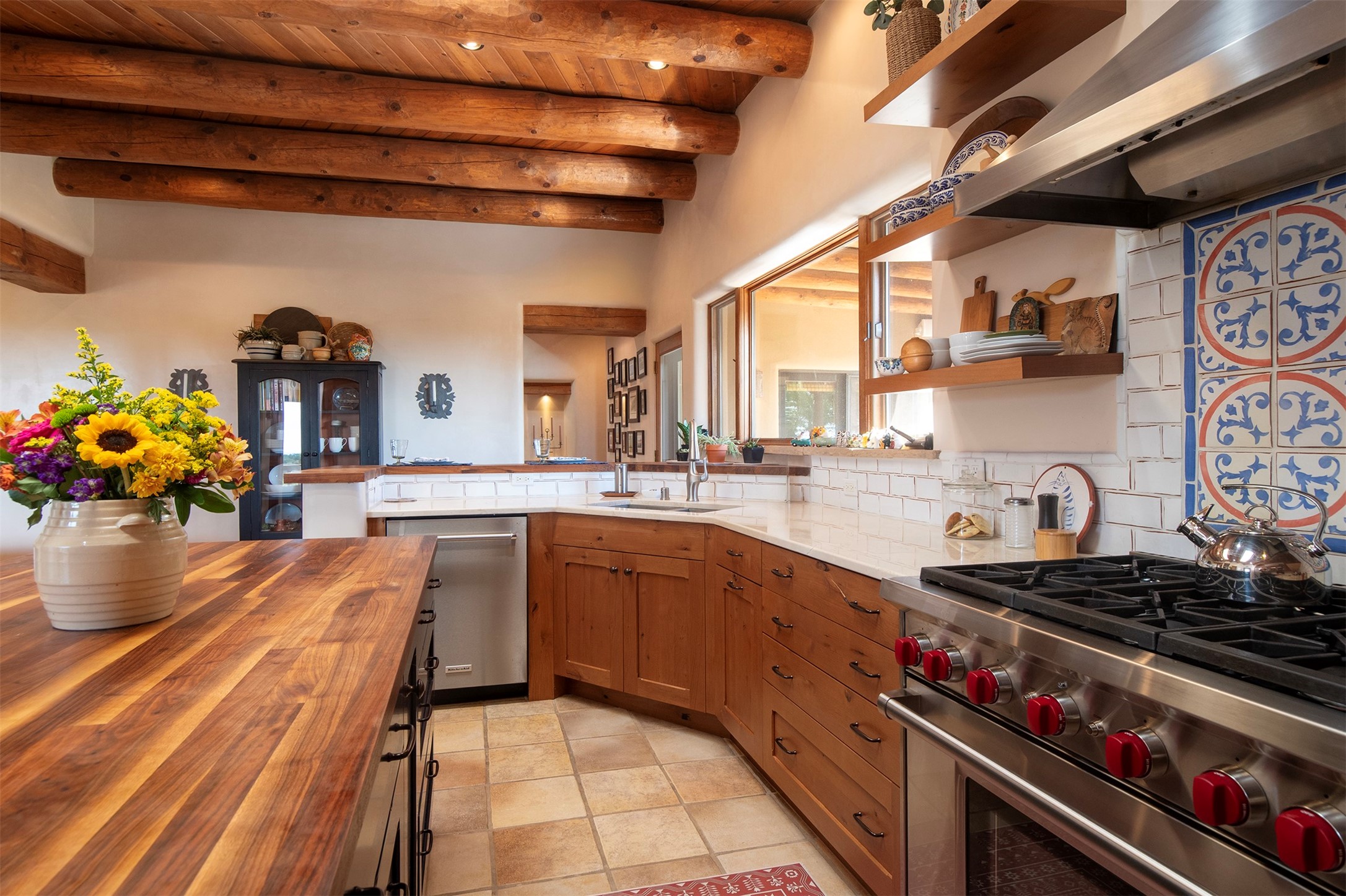 Set within the prestigious Las Campanas community, this exceptional 4-bedroom, 4-bathroom Santa Fe home showcases timeless Southwestern architecture blended with modern sophistication. Thoughtfully updated, the residence features numerous recent improvements. Expansive living spaces with soaring ceilings and large windows capture breathtaking mountain and sunset views. The gourmet kitchen, elegant dining area, and inviting outdoor patios create a seamless flow for entertaining or peaceful retreat. Offering access to world-class amenities, golf, and fine dining, 18 Arriba Circle represents the best of luxury living in Las Campanas--a perfect harmony of comfort, style, and Santa Fe charm.