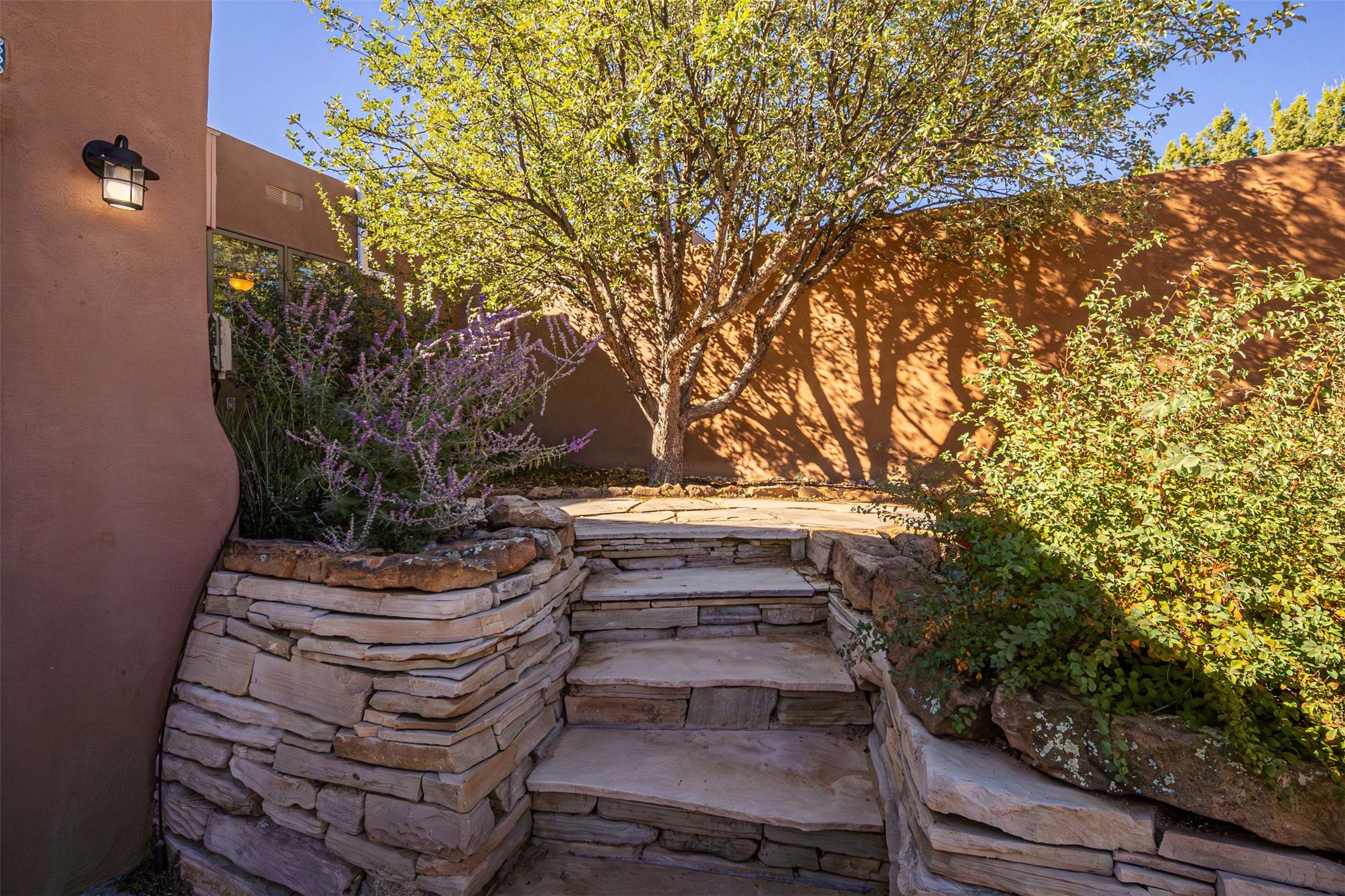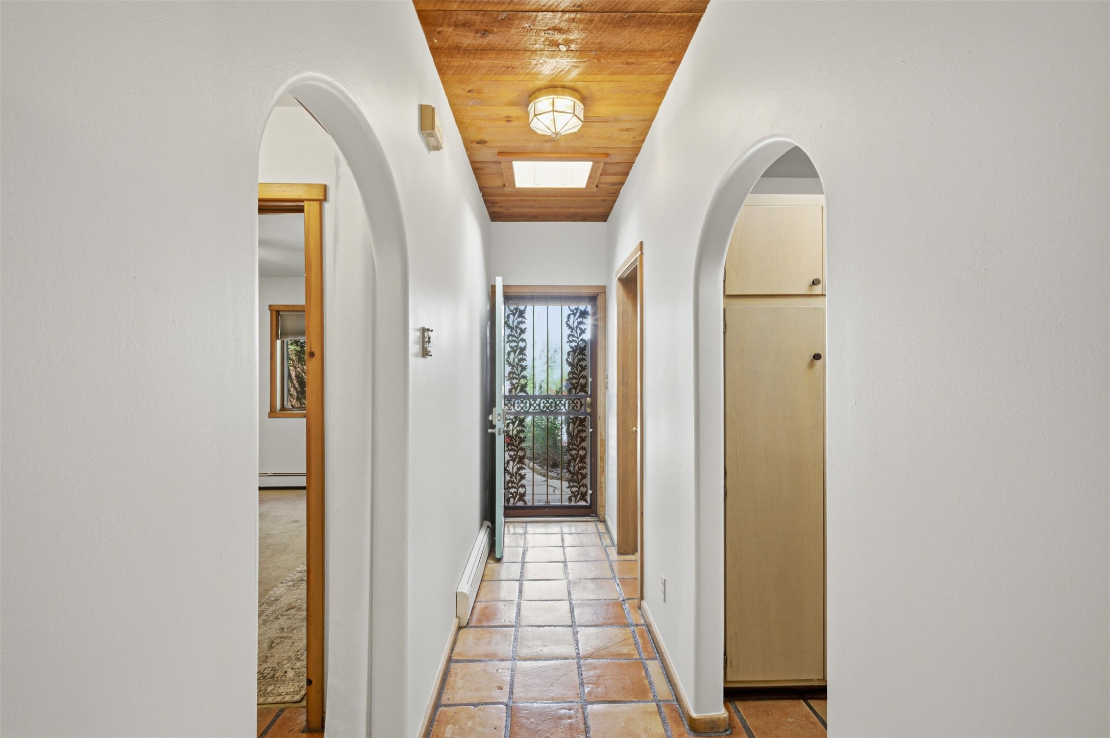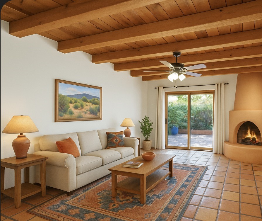 Cozy Santa Fe Charm with Modern Comforts built by Jim Hays. As the days grow cooler, imagine yourself relaxing by the warmth of a Kiva fireplace in this charming and well-maintained townhome in the heart of Santa Fe. This sweet 2-bedroom, 2-bath home offers timeless Spanish-style finishes, including classic Saltillo tile floors and hand stamped-painted wall tiles that add a touch of authentic Santa Fe character.The home features a one-car garage, nearly new appliances, and updated mini-splits for efficient heating and cooling -- with optional radiant heat available for added comfort. Step outside into your spacious, private yard -- perfect for quiet mornings, entertaining guests, or enjoying Santa Fe's beautiful skies.Located within walking distance to the Geneva Chavez Community Center and just minutes from summer rodeos, local parks, shopping, and dining -- you'll be right where the action is while still enjoying a peaceful neighborhood setting. The community also offers a small dog park with a friendly gathering area where neighbors meet and connect. Whether you're looking for a primary residence, a Santa Fe getaway, or an investment opportunity, this delightful property is sure to inspire.All information on this page is considered reliable, but not guaranteed. Please verify these property details with your agent.
