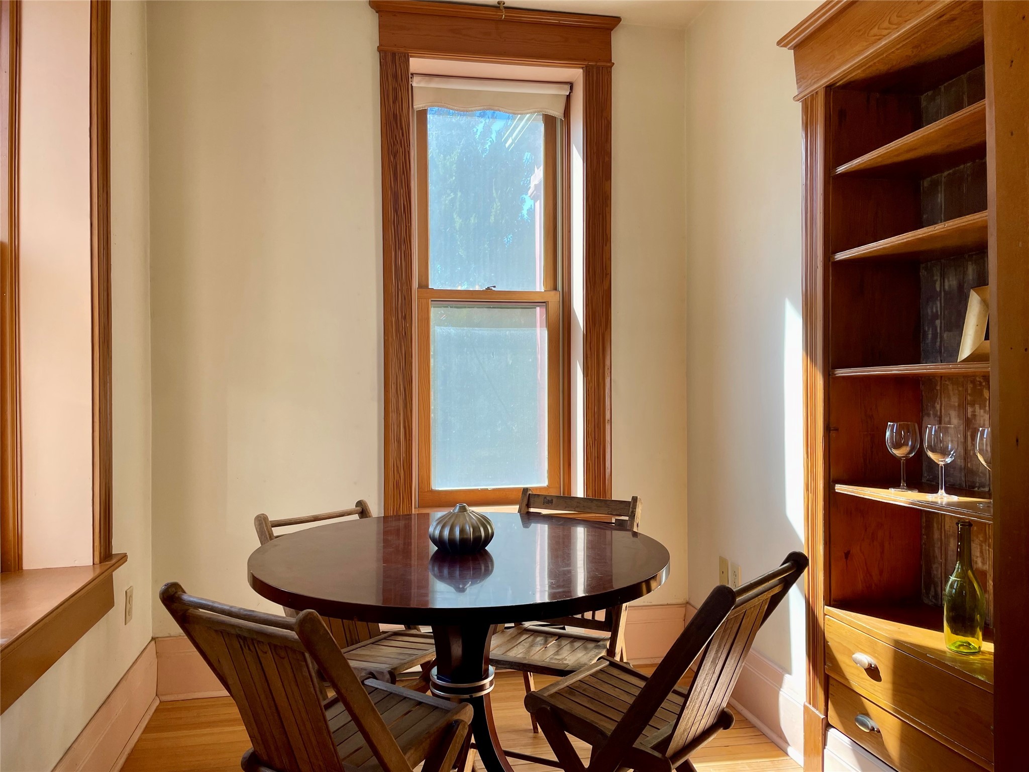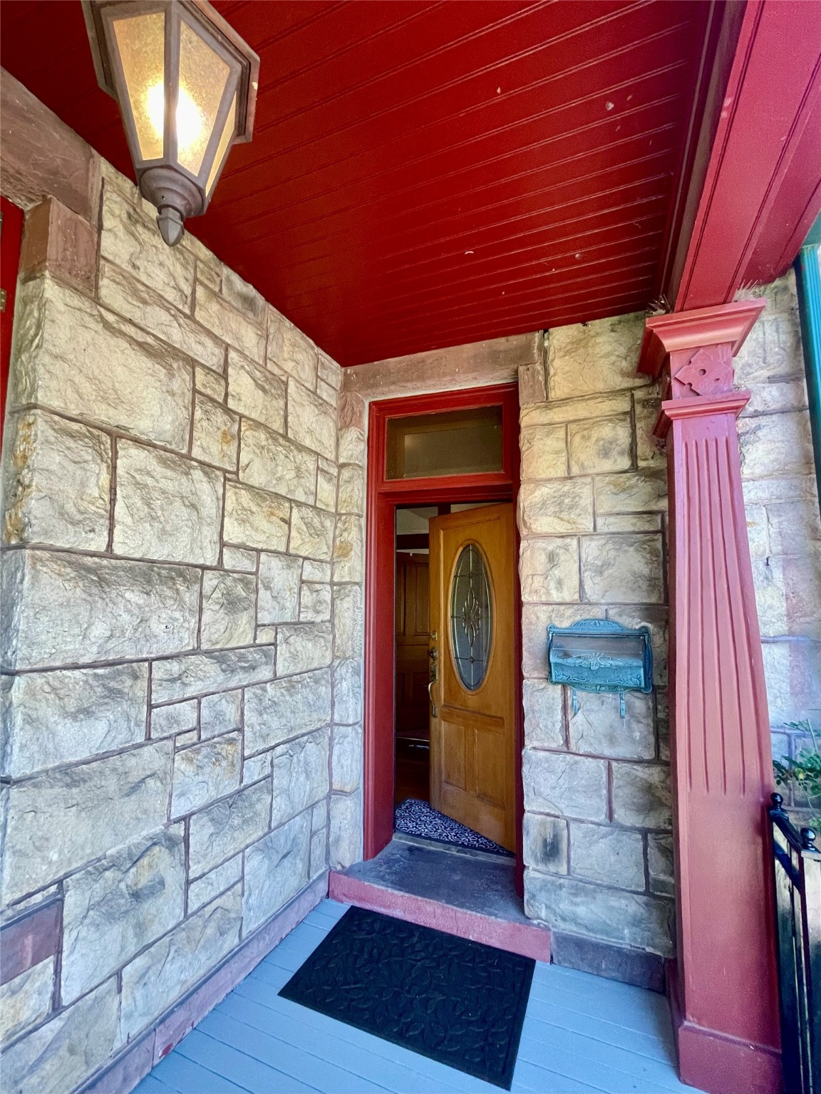 Stunning 1898 stone Queen Anne style home has a history of being the residence and office of the first female doctor in New Mexico, Dr. Alice Rice. The main part of the house has 3 bedrooms and one and a half bathrooms, with hard wood floors, built in display cabinets, transom windows, large pocket doors, a spacious living room and eat-in kitchen, as well as a little dining room/office. The downstairs bedroom has a laundry area in the closet. The attached home has a living room, large kitchen, office/den, two bedrooms, one and a half bathrooms, and was formerly the office space for Dr. Alice Rice, but was converted to an accessory dwelling unit in the 1990s when the home was completely updated, including double paned windows, new wiring, new plumbing, new insulation, and drywall. The ADU is currently rented on a month to month basis and comes complete with separate electric meter, separate water heater, and laundry in the half bathroom, Charm abounds with a truly park like yard with numerous covered porches and balconies, antique style metal fencing, covered grape trellis, many perennials, pathways, and stone patio. The basement is easily accessible and spacious. And with a Propanel roof, 3 car garage, and large alley access what more could you ask for?
