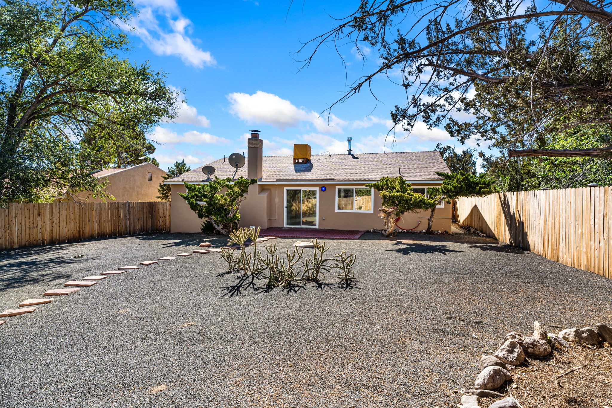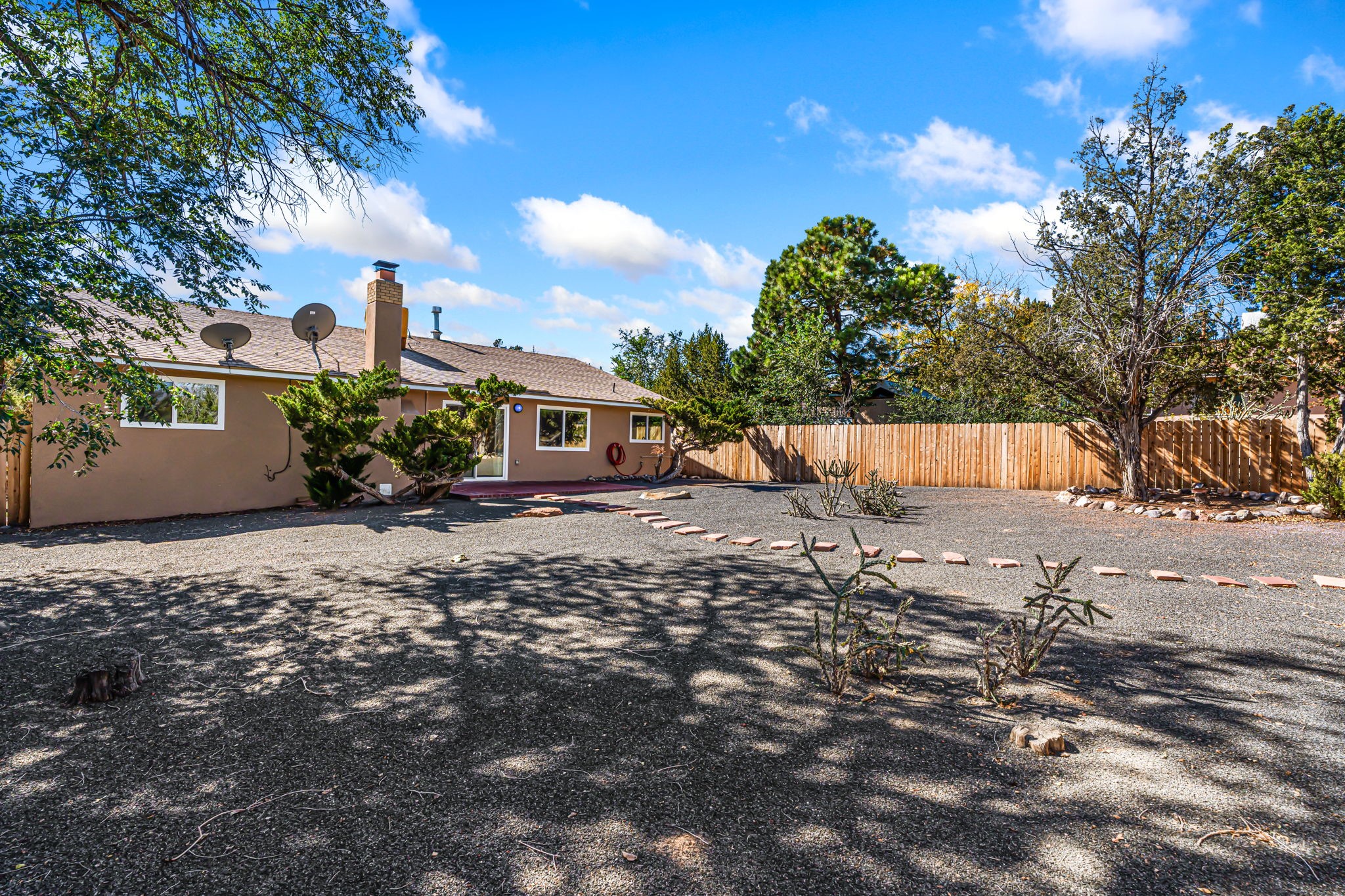 Love golfing and fishing? The Village of Cochiti Lake is perfect for you with one of Northern New Mexico's best public golf courses and fantastic fishing. This impeccably maintained Cochiti Lake home is close to both with lovely landscaping and backyard views of the Jemez Mountains. Featuring two-bedrooms, two baths, and a two-car garage, this lovely home is on a quiet cul-de-sac with an inviting open plan living and dining area and gas log fireplace. Flooring throughout the home is lovely and well-maintained Saltillo tile and the kitchen is updated with granite countertops and updated appliances. The living room opens onto an easy-to-maintain back yard that is fenced. Pride of ownership is evident throughout the home.