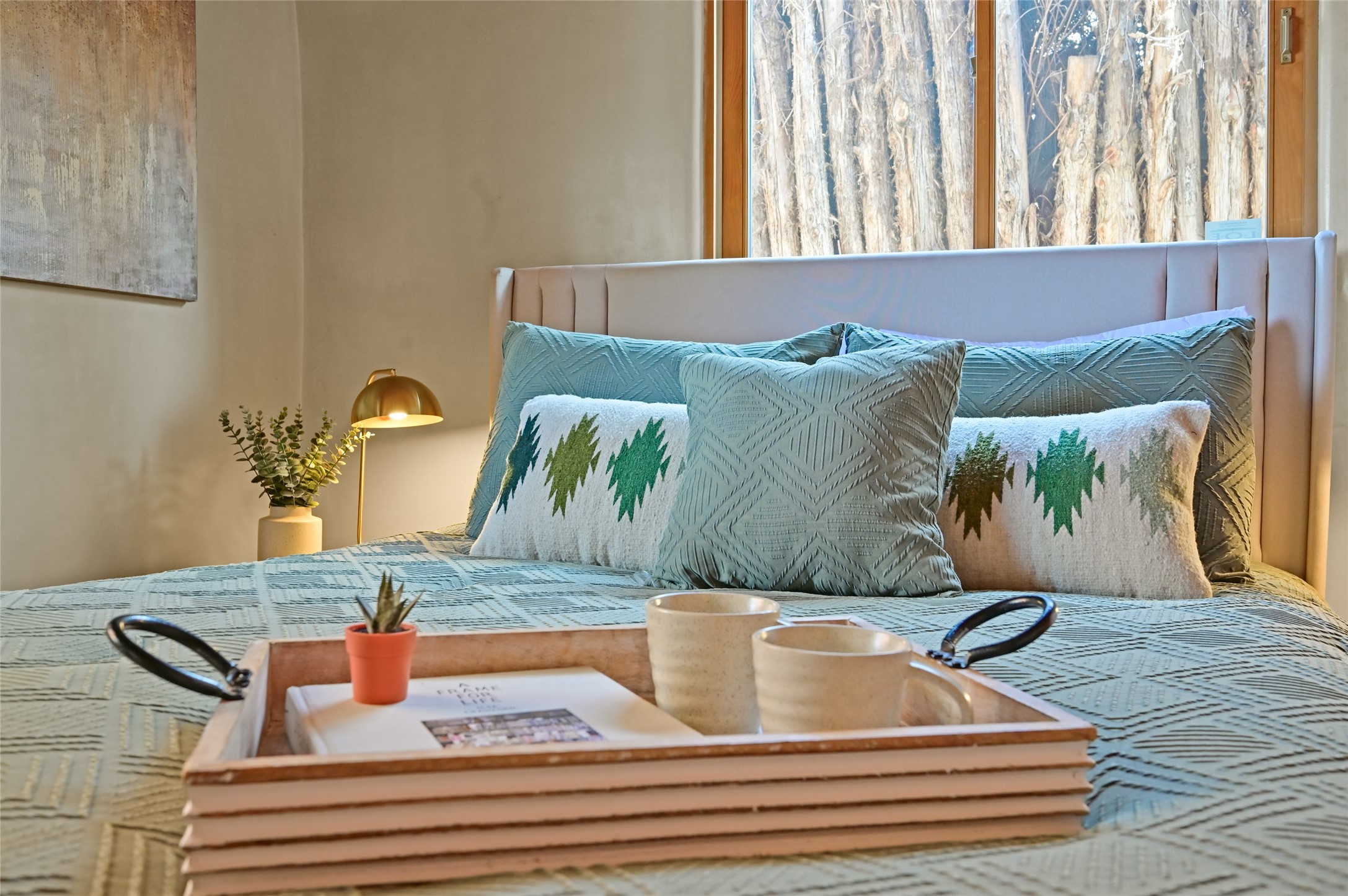 This eastside location cannot be better for quickly accessing Canyon Road and all that it has to offer. The upper level is the main living level consisting of the living room with kiva fireplace and a wall of windows facing towards the front deck. One bedroom and one full bath. A large well appointed kitchen that any chef would enjoy. A large dining area with even more room for an office, art space, yoga area, meditation space, library etc...Upper level is all wood flooring. The lower level can be a bedroom, flex space, office, studio and more. Brick floors on the ground level with one full bath, laundry, storage and mechanical room. The refrigerator, microwave, tankless water heater, washer and dryer are all less than 6 years old.