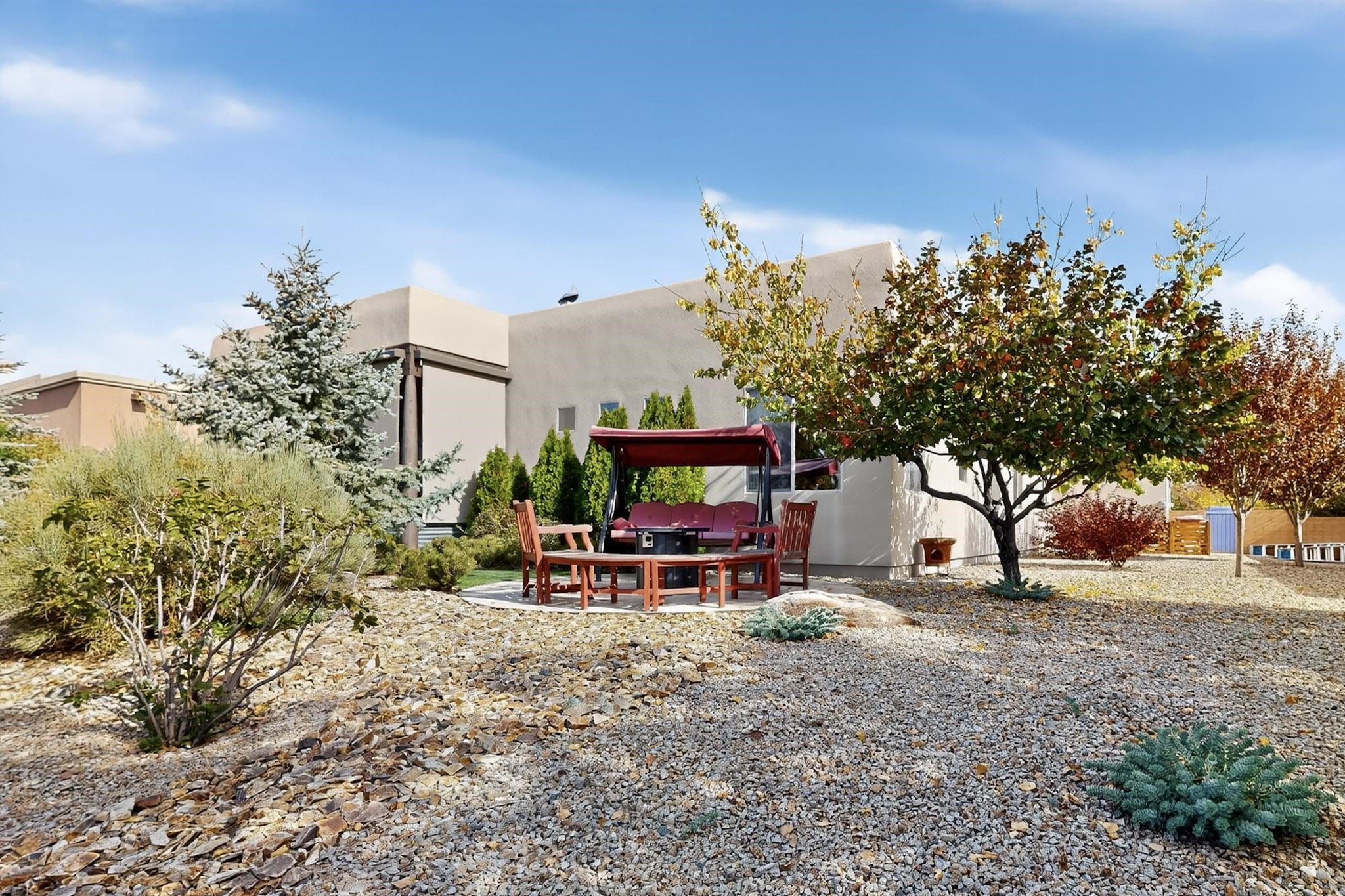 Welcome to this beautifully maintained 3-bedroom, 2-bath home in the sought-after Rancho Viejo community. Thoughtfully designed, this residence offers both comfort and flexibility -- featuring a rare 3-car garage and a versatile attached studio space, ideal for a home office, art studio, or guest suite.Enjoy the inviting open-concept living area with abundant natural light, high ceilings, and seamless flow to the outdoor spaces. The beautifully landscaped yard provides a serene retreat with sweeping views toward open space, perfect for relaxing or entertaining and watch the sunsets. Located in one of Santa Fe's most desirable neighborhoods, Rancho Viejo offers miles of walking trails, parks, and community charm -- all just a short drive from shopping, dining, and historic downtown Santa Fe.