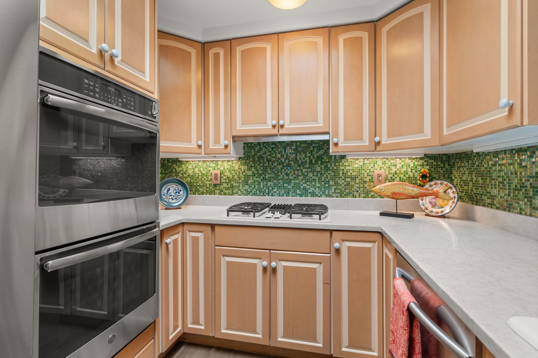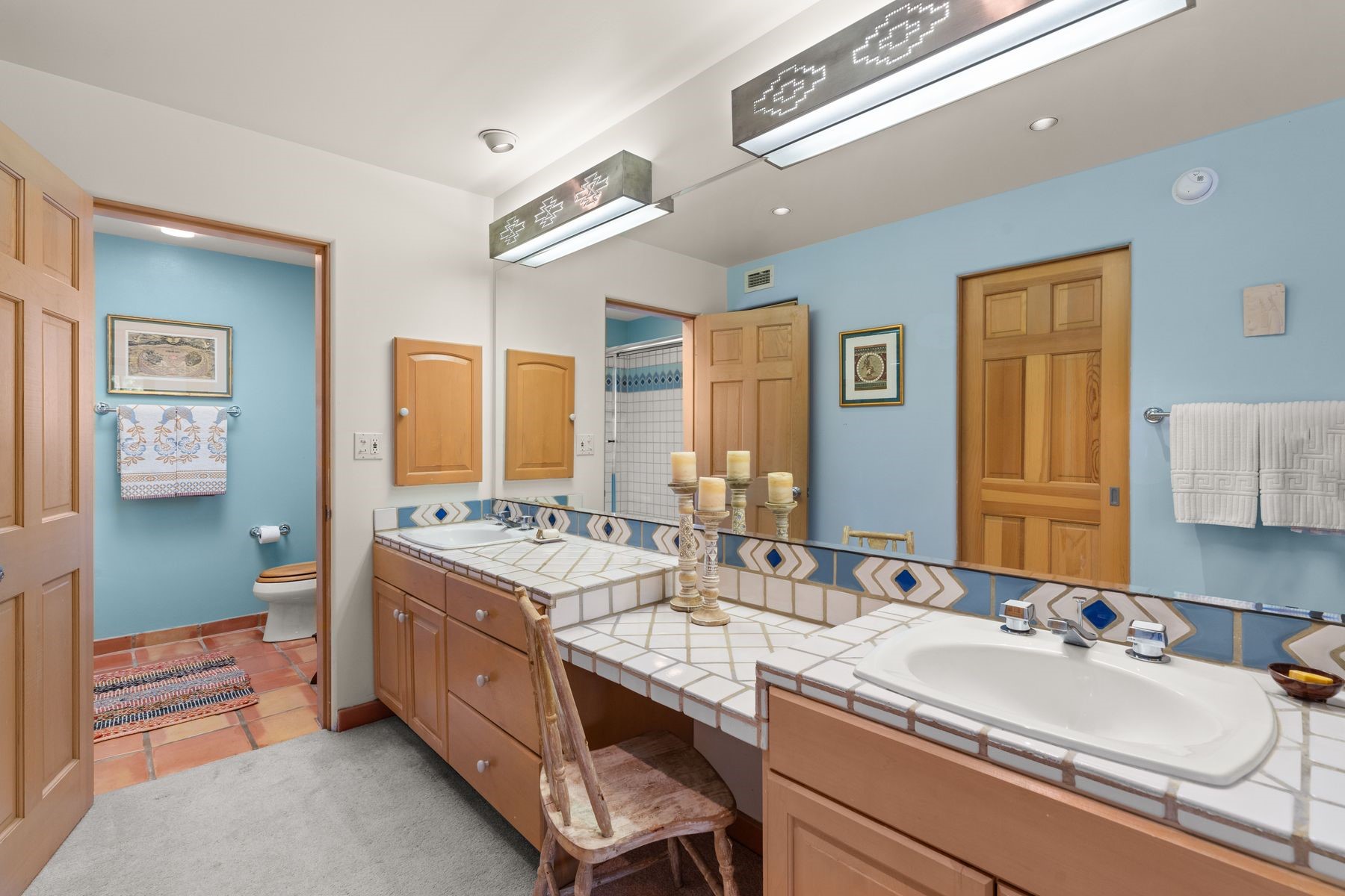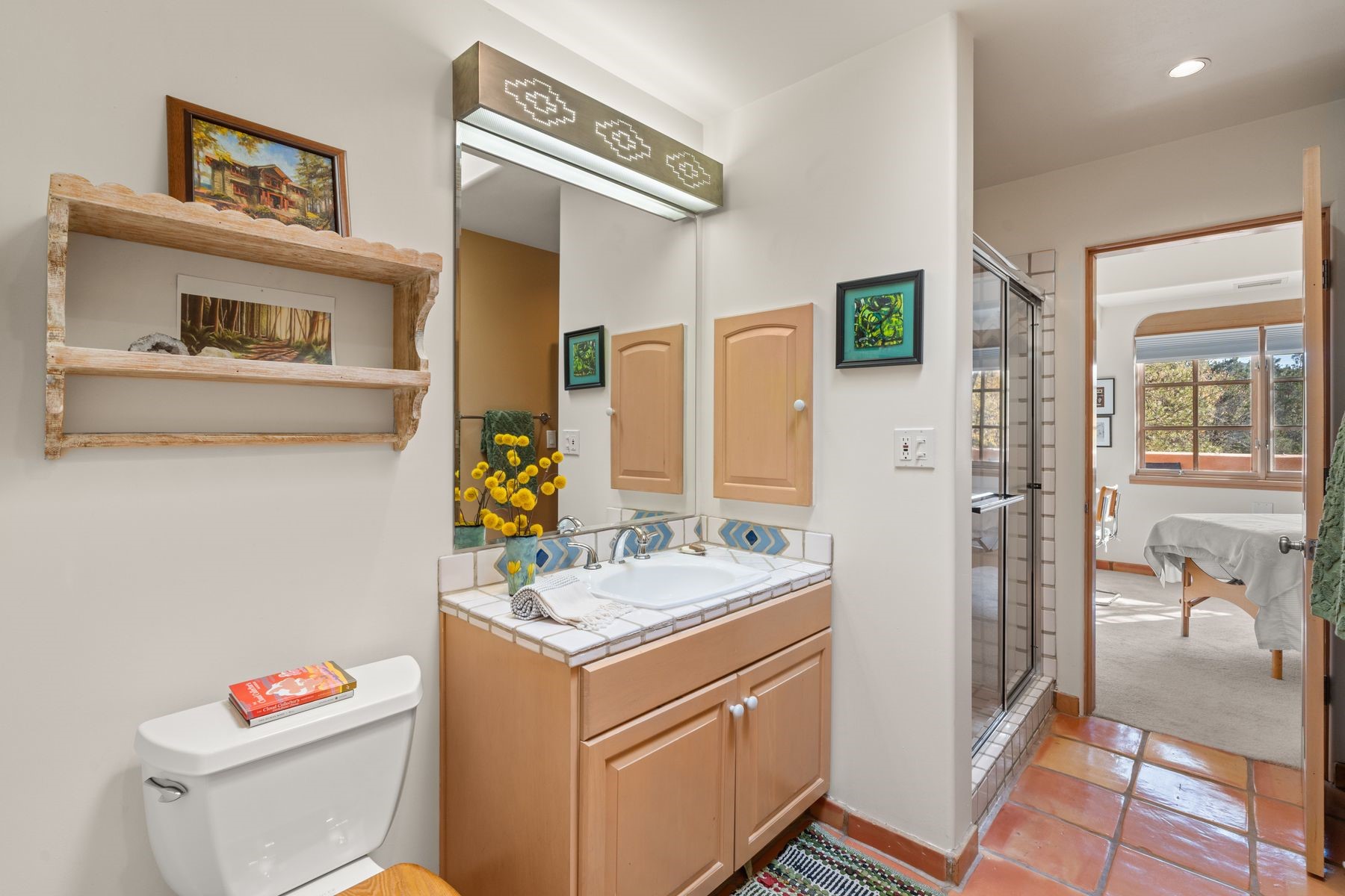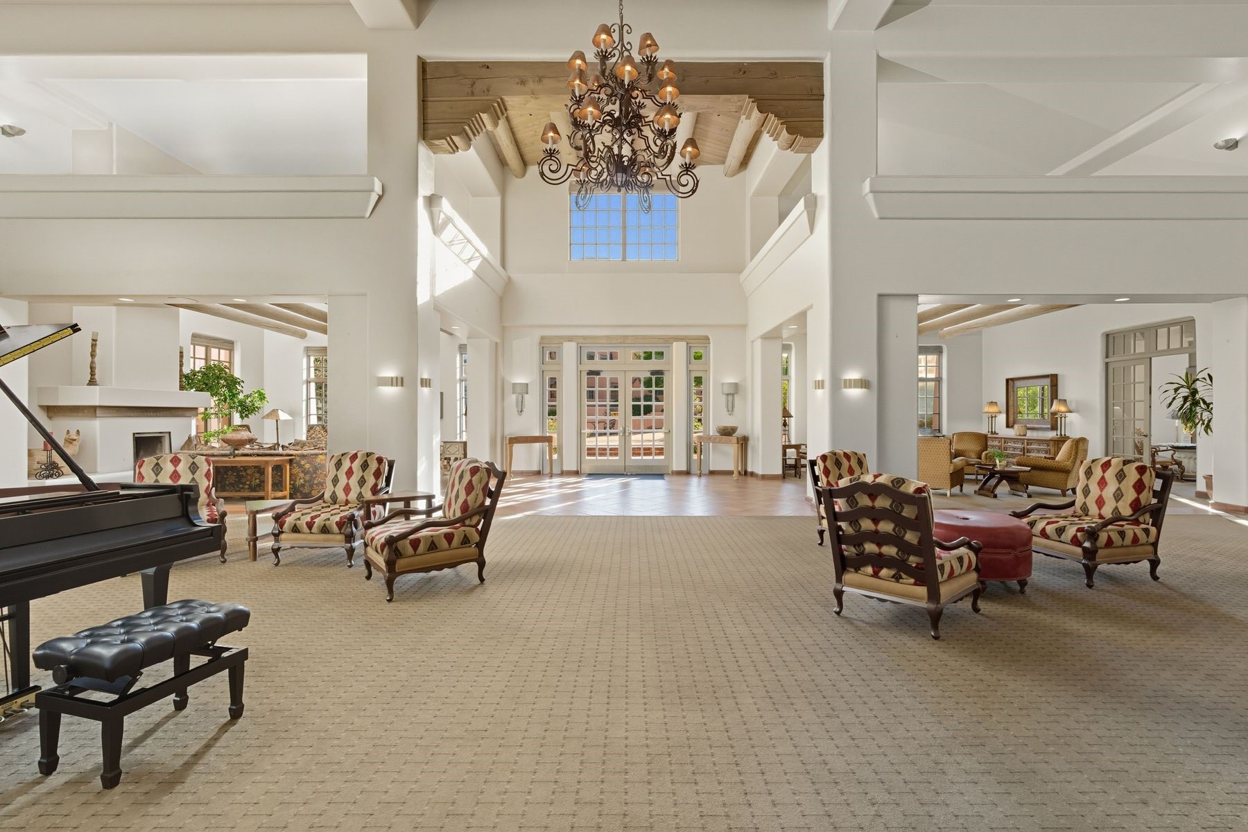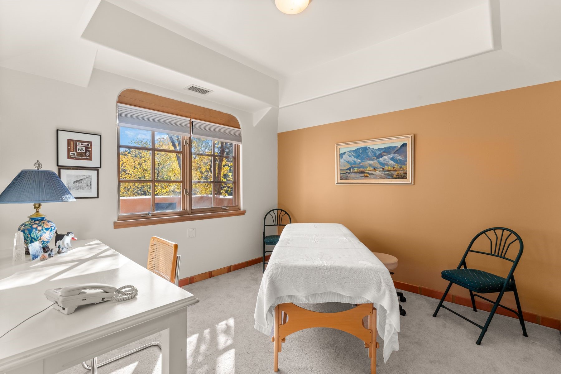 Enjoy easy living in this beautiful second-story end unit surrounded by trees and natural light. With two peaceful balconies, it feels like your own private retreat. Inside, the open layout is bright and welcoming, featuring vigas, skylights and a cozy gas fireplace. A private entry enclave with a banco adds a touch of inviting Santa Fe charm. Designed for comfort and convenience, you'll find tile and carpet flooring, air conditioning and step-in shower. Relax knowing underground parking and resort-style amenities are just steps away, including a clubhouse, pool, tennis, golf, spa, fitness center, restaurant and 24-hour hosted gate. Low-maintenance, light-filled and perfectly serene -- this is Santa Fe living made easy.