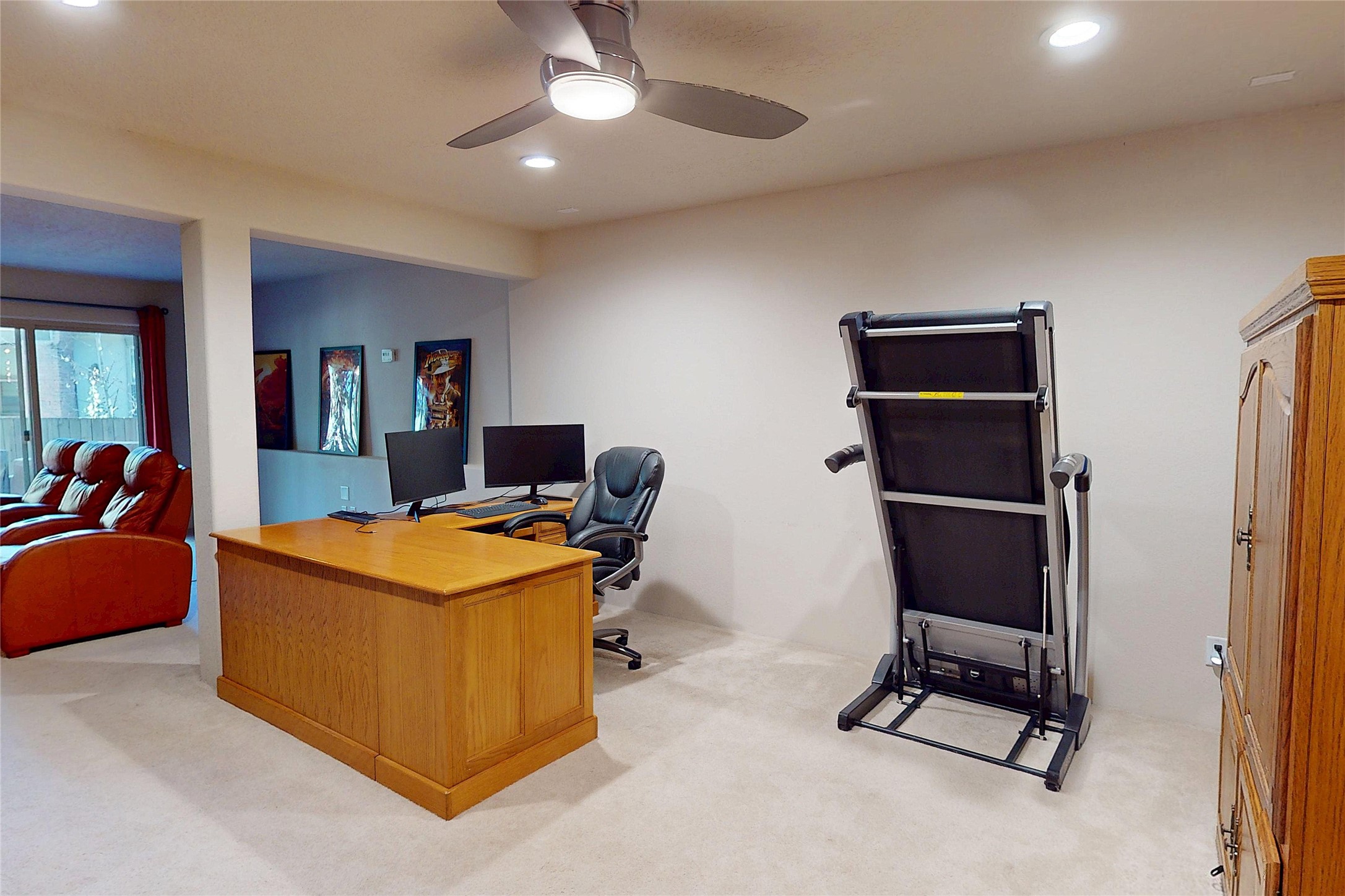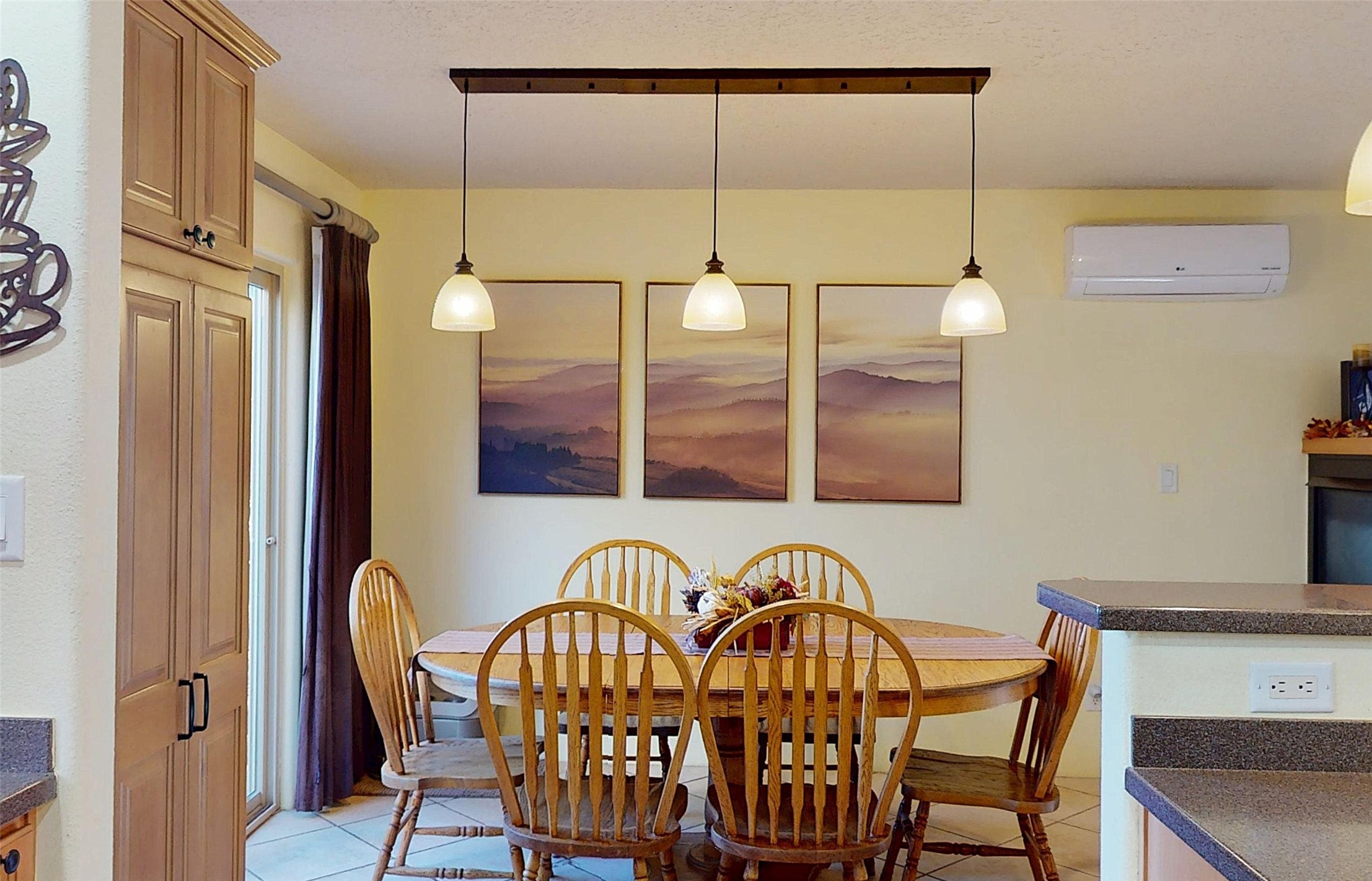 Beautiful, spacious home with modern comforts and canyon-side privacy. This stunning four-bedroom, four-bathroom townhome offers everything on your wish list -- modern style, thoughtful design, and an unbeatable Los Alamos location close to downtown, schools, parks, and trails. Come inside to a bright, open main level where the living, dining, and kitchen areas flow seamlessly together. The living room features soaring cathedral ceilings, a gas fireplace, and large windows that fill the space with natural light. The spacious kitchen includes solid-surface countertops, stainless steel appliances, a full pantry, and warm maple cabinetry -- perfect for everyday cooking or entertaining. The primary suite is conveniently located on the main floor, complete with a walk-in closet and a private bath featuring dual vanities and a deep soaking tub. Upstairs, you'll find two generously sized bedrooms, a full bath, and a versatile loft -- ideal as an office, reading nook, or play area. The fully finished walk-out basement adds incredible flexibility with a large family room, a guest bedroom, full bathroom, and an oversized storage room. Enjoy outdoor living on the expansive deck, or relax in the private, fully fenced backyard surrounded by mature trees. Additional highlights include six-zone radiant heating, solid pine doors, wood-clad windows, tile flooring in high-traffic areas, and ceiling fans throughout. Beautifully maintained and designed for comfort, this home is ready for you to move in and enjoy Los Alamos living at its best!