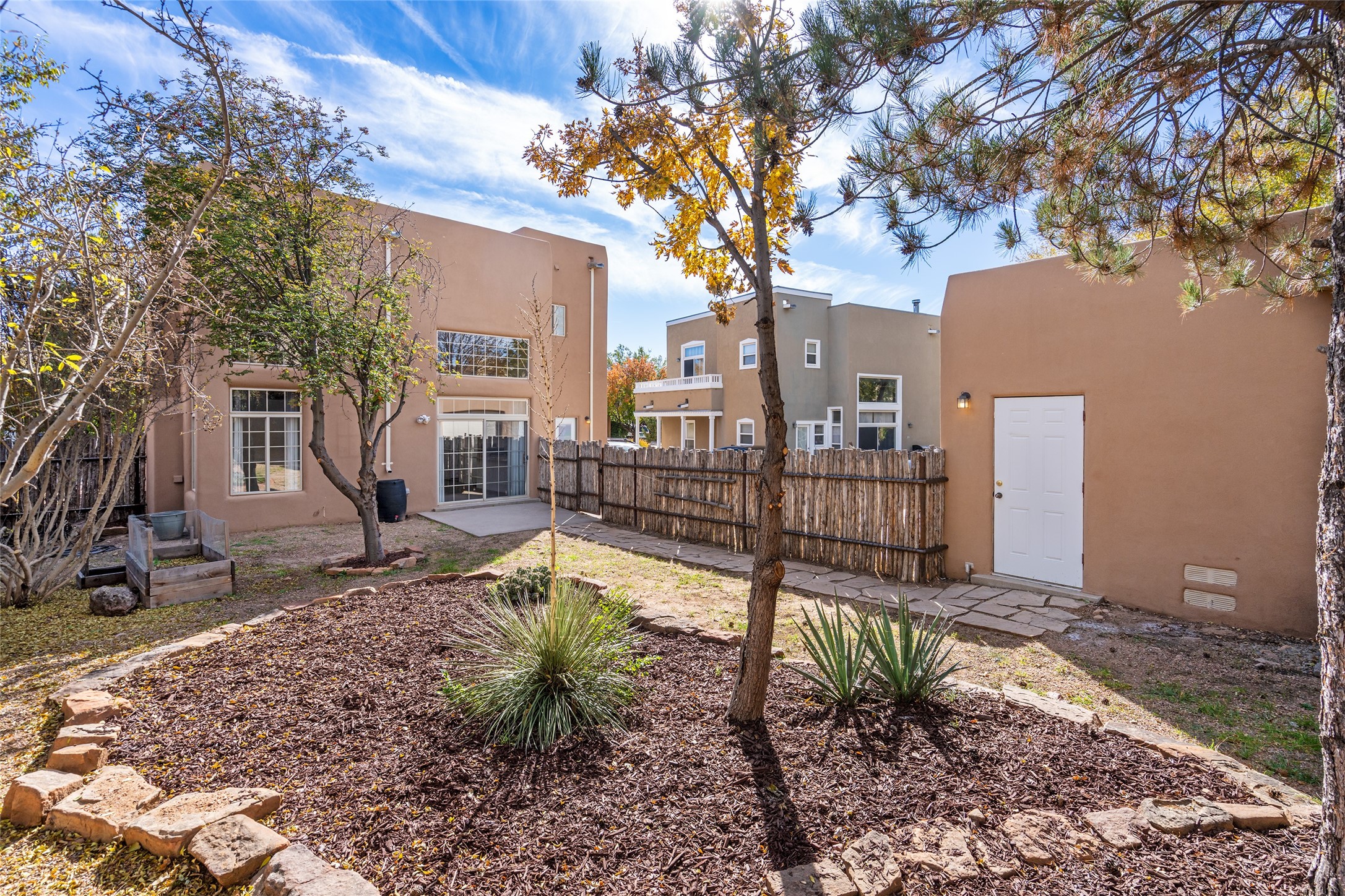 Prepare to be impressed! Tons of huge improvements by the owner make this home a show stopper, including new HVAC (heating and a/c) plus SOLAR which is designed so your monthly electric bill is insignificant! Other notable improvements include a brand new hot water heater (2022); complete kitchen and flooring updates (2023); and fresh paint, balcony, and bathroom upgrades (2025). This home is truly move-in ready and shines with pride of ownership in the highly sought-after Nava Ade community! A custom front door welcomes you inside, where soaring ceilings and plentiful windows fill the great room with natural light and warmth. Wood-look tile floors provide a grounding complement to the freshly painted modern palette, while the rock-tiled fireplace adds texture and character. The kitchen is a delight with new cabinetry, granite countertops and backsplash, and newer stainless steel appliances. Throughout the home, wood accents create a sense of harmony and style, and the thoughtful floor plan offers excellent bedroom separation. Upstairs, the spacious primary suite features a large walk-in closet and an elegantly updated bath with a new walk-in shower, soaking tub, and dual vanities. Step onto the private deck to take in views of the distant mountain ranges--a perfect spot for morning coffee or evening sunsets. Downstairs, two comfortable guest bedrooms share a full bath, and the laundry room adds everyday convenience. The detached two-car garage offers extra storage, and the fully fenced backyard is beautifully landscaped for easy outdoor living. Nava Ade residents enjoy access to a community clubhouse with fitness facilities and a pool, and the neighborhood's walking trails and nearby parks make it easy to enjoy Santa Fe's outdoor lifestyle. Shopping, dining, and services are all just minutes away.