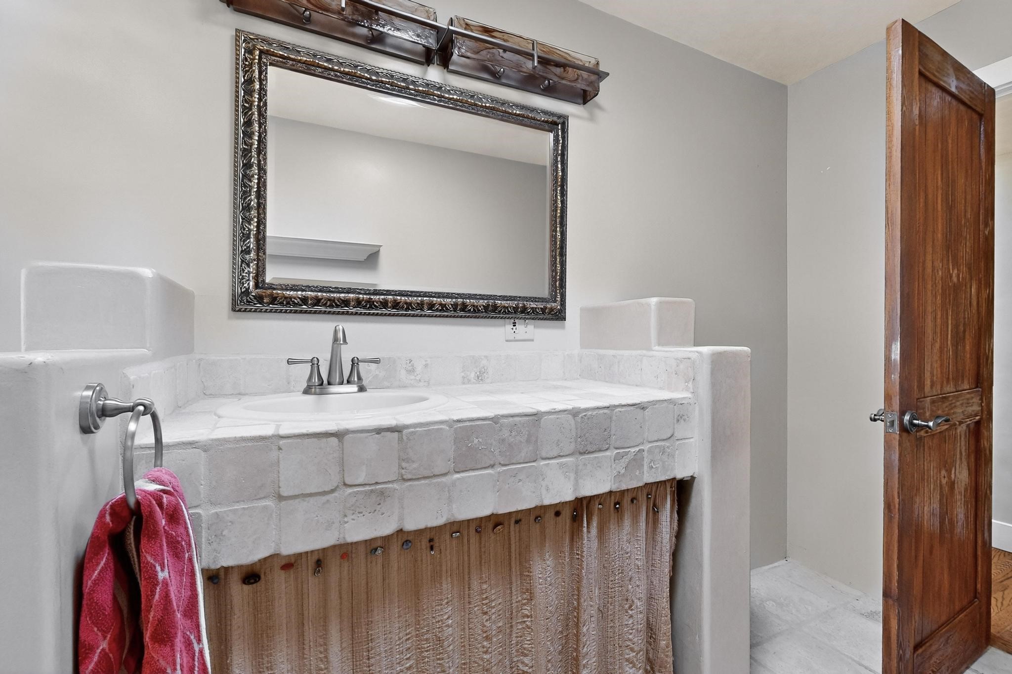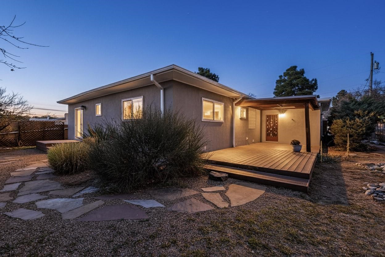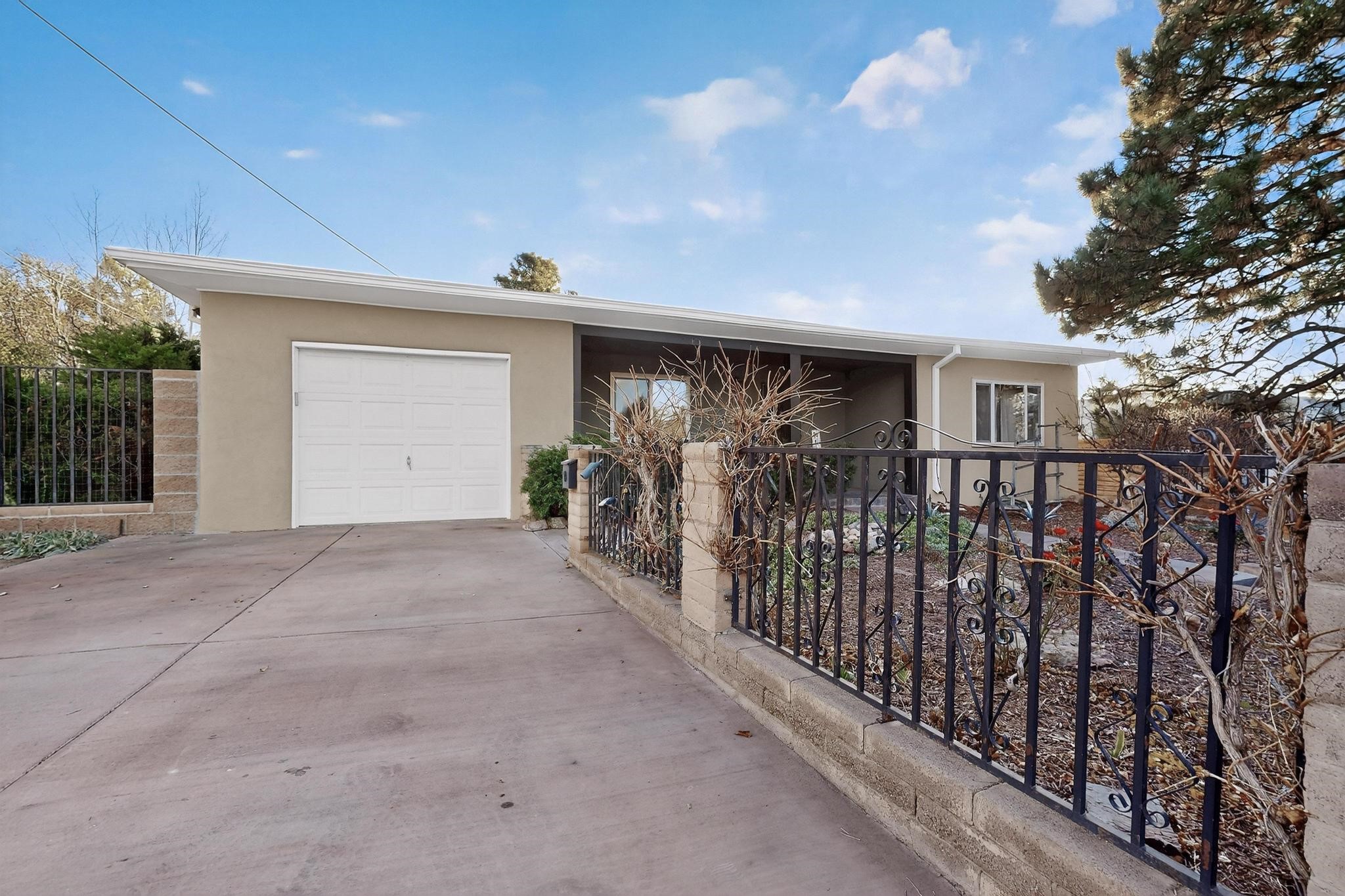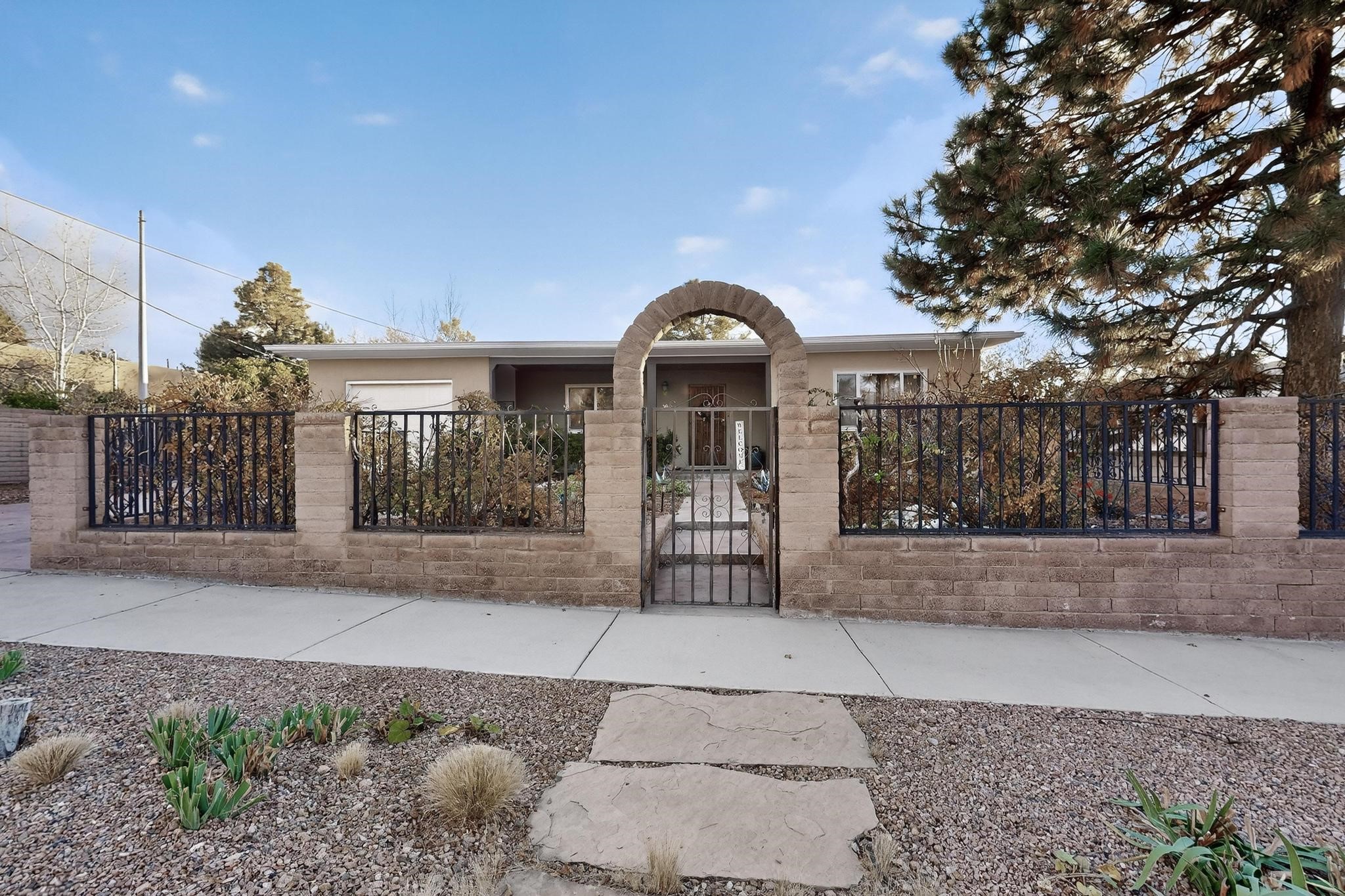 Welcome to this delightful Southwest Mid Century Modern home on .18 acres in the South Capital neighborhood! Enter the front garden gate to find an oasis with nice landscaping and a front porch where you can enjoy the outdoors. Inside you'll find hardwood floors, wood beamed ceilings, and a stacked stone fireplace for cosy evenings. Good for entertaining, an updated kitchen is open to the dinning room, then flows into the living room, and down the hall where there are spacious bedrooms, custom doors and light fixtures, solar tubes for extra light, updated windows, and a laundry/mechanical room, as well as some fun vintage MCM features indicative of the era. The attached garage is great to have as well. Through the third bedroom, french doors lead to a fully landscaped backyard with flowering plants, trees and so much space. There are flagstone paths leading to nooks for private conversation and places to host gatherings. The home has been well cared for, and a happy place for its current owner. Its move in ready and ready for you to make more great memories of your own.