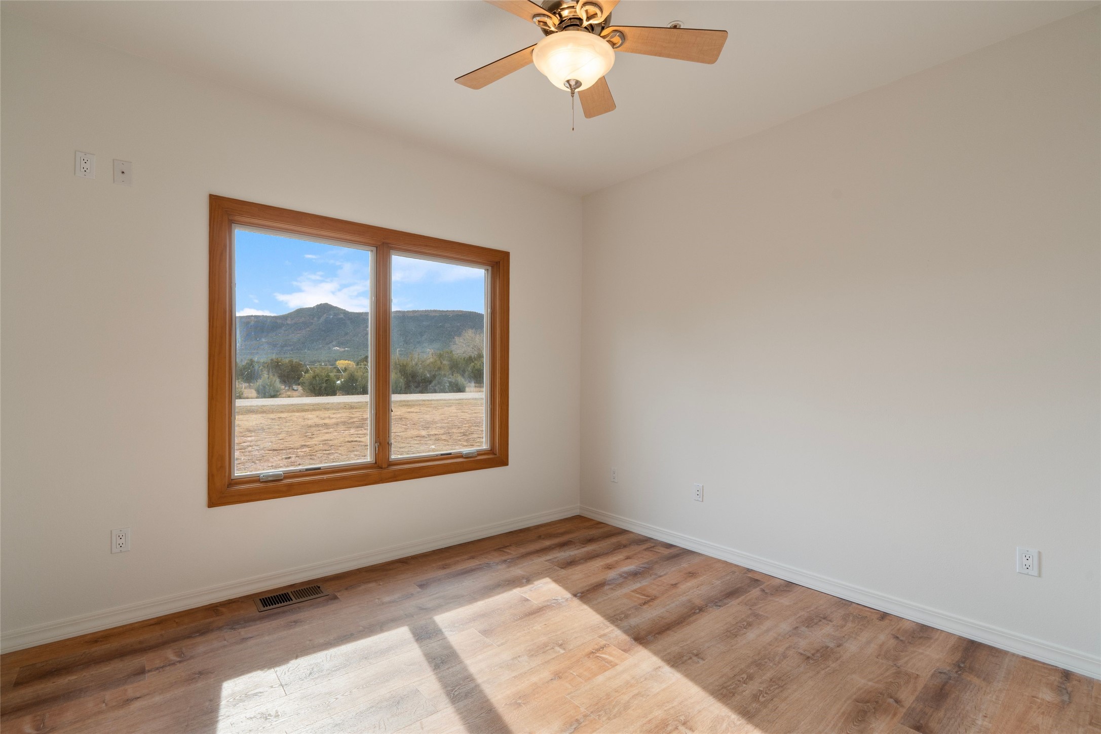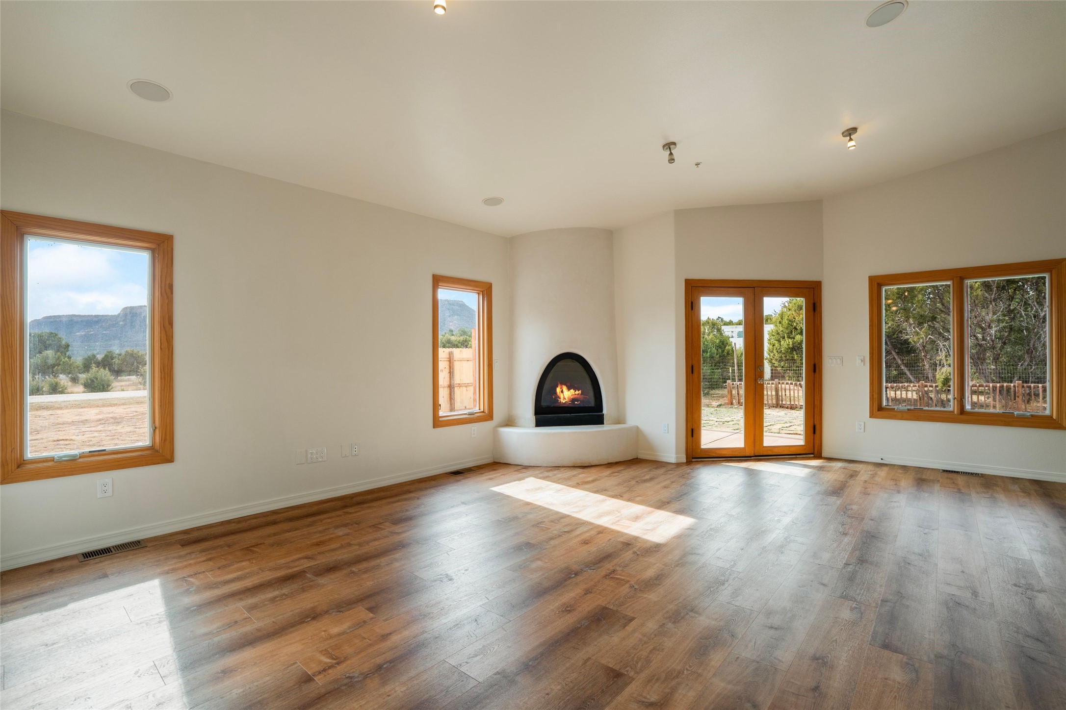 Discover the perfect blend of mountain tranquility and convenient living in this beautifully updated 4-bed, 2-bath home set on 1.3 acres with sweeping views of the Pecos Mountains. Located just 32 minutes from the historic Santa Fe Plaza, this property offers both privacy and an easy commute.Step inside to an inviting open concept living, dining, and kitchen area, anchored by a charming gas kiva fireplace in the great room, that adds warmth and Southwestern character. The smart floor plan provides excellent bedroom separation, with the primary suite privately situated away from the additional bedrooms.Enjoy the confidence of recent upgrades, including new paint and flooring in 2025 and a new pro-panel roof installed in 2020. The home also features a two-car garage and a covered back patio, the perfect spot to relax and enjoy our wonderful outdoor lifestyle.With its generous acreage, thoughtful layout, and fresh updates, this property offers comfort, beauty, and true New Mexico living.